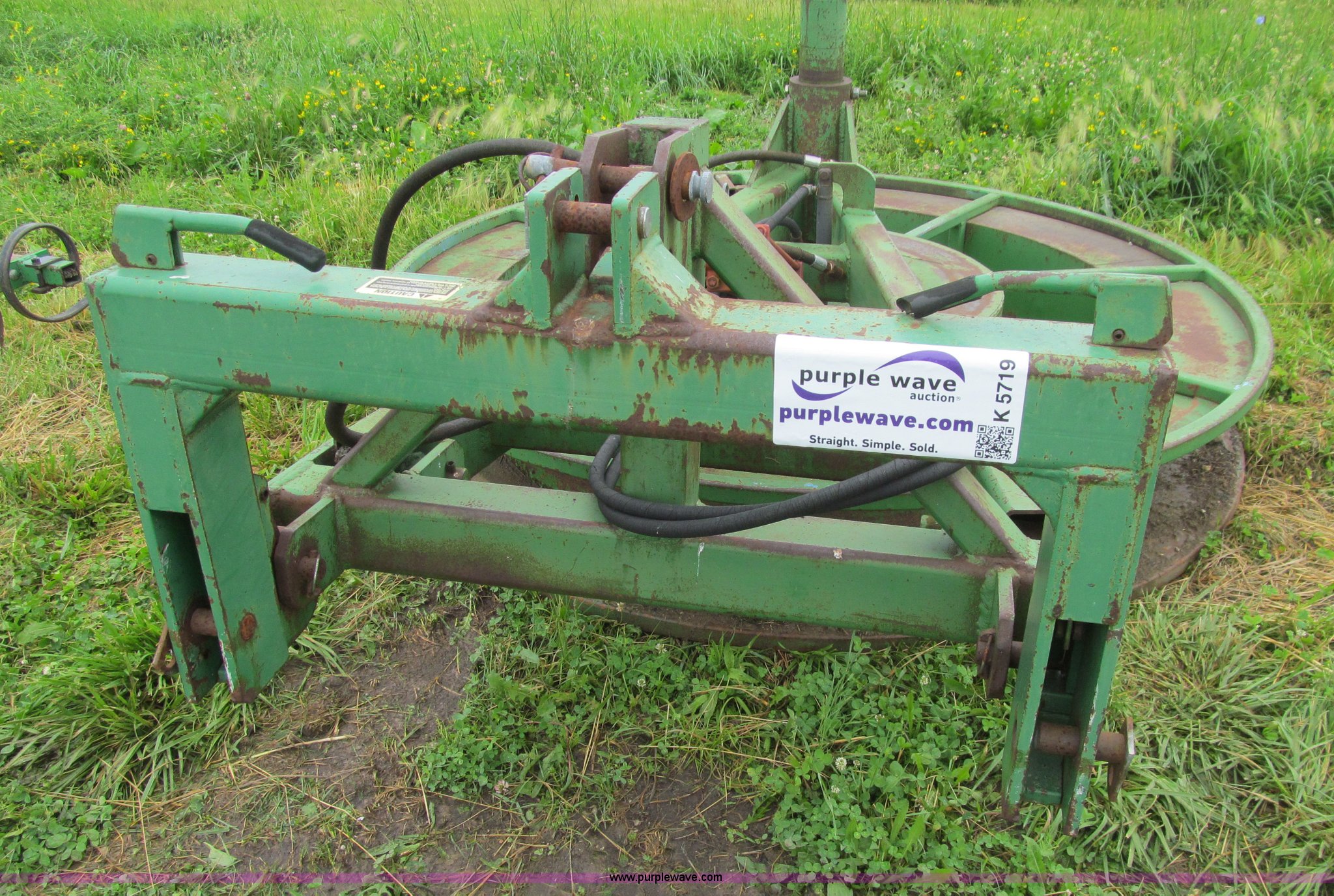 Purple Wave is selling a used Hose Reel in Iowa. This item is a John Deere hose reel with the following: Approx. 84" reel diameter, Approx. 10" interior hose width, Hydraulic brake, John Deere quick attach