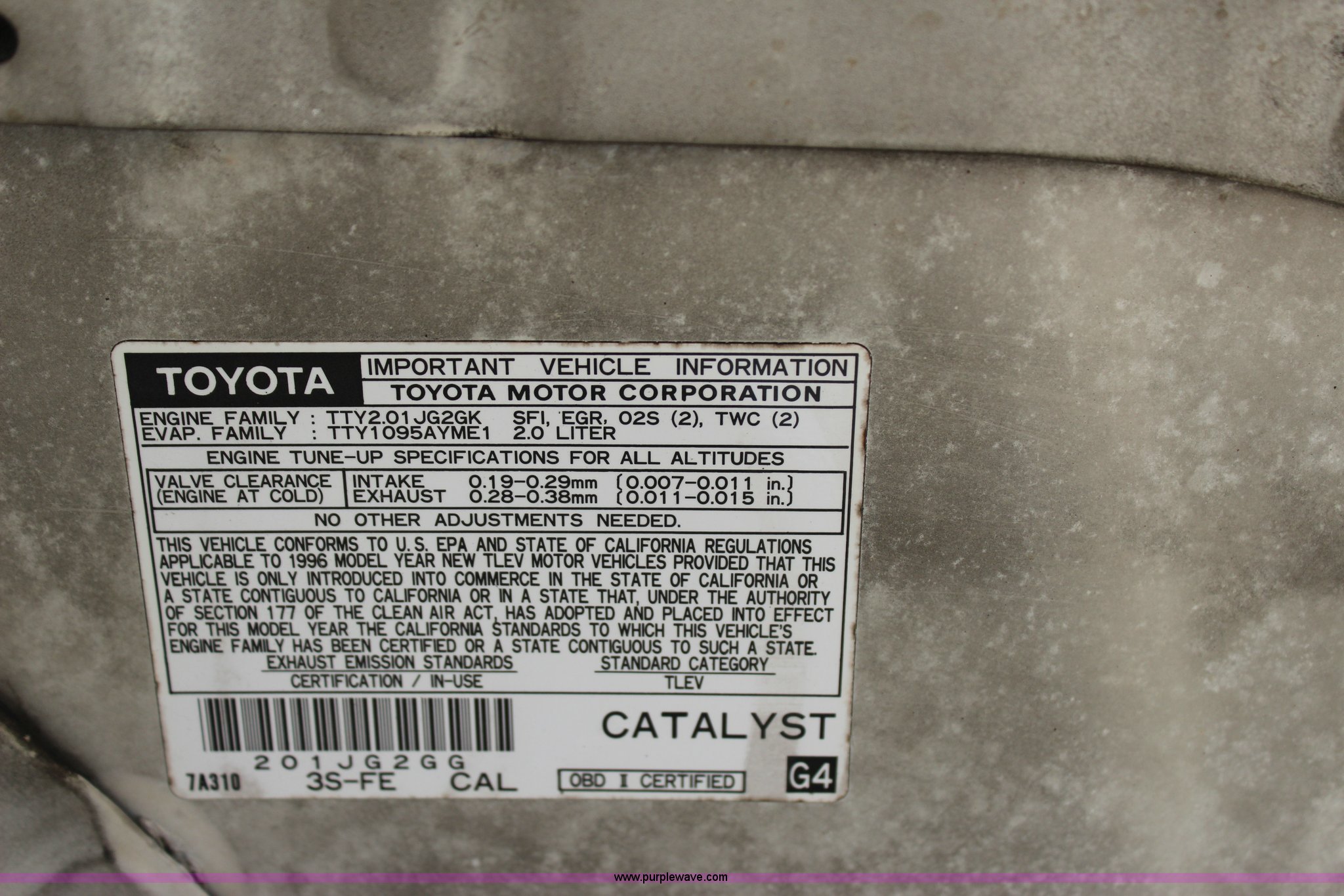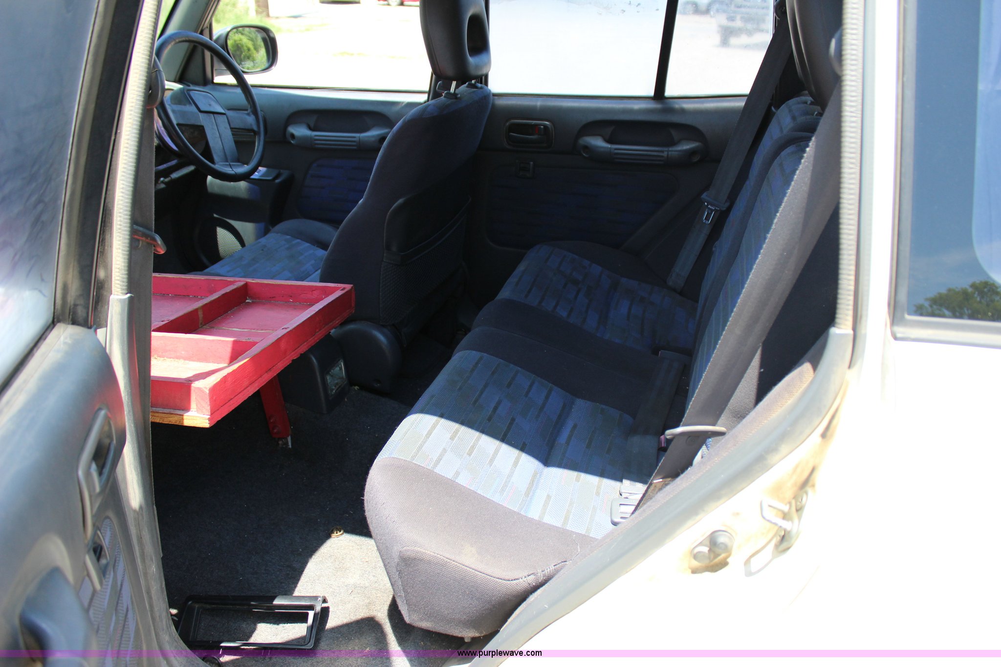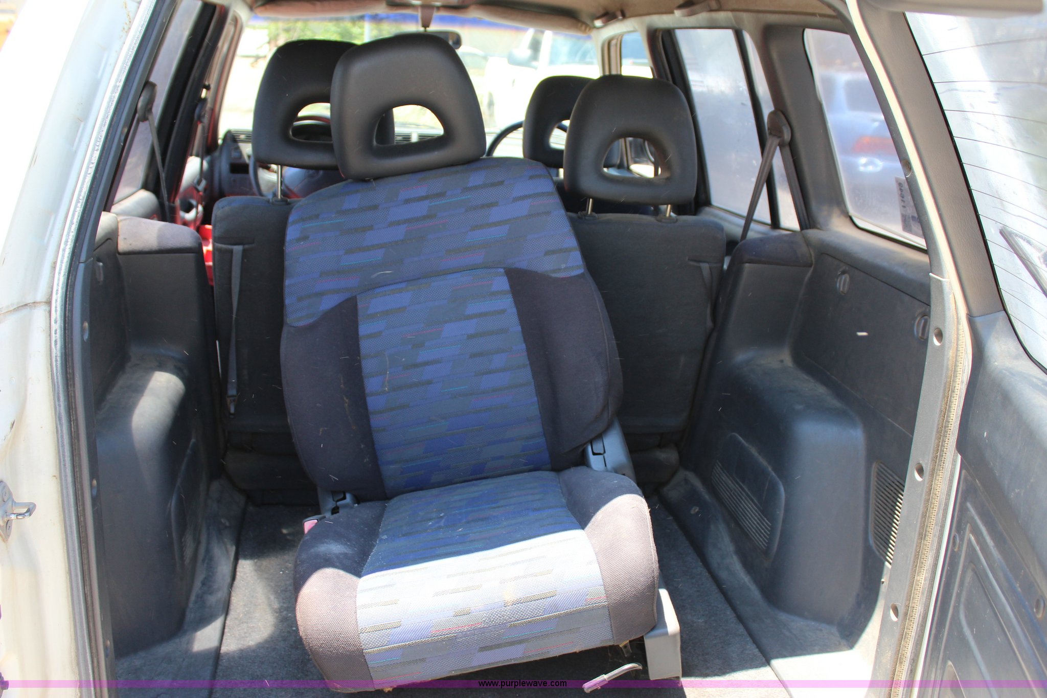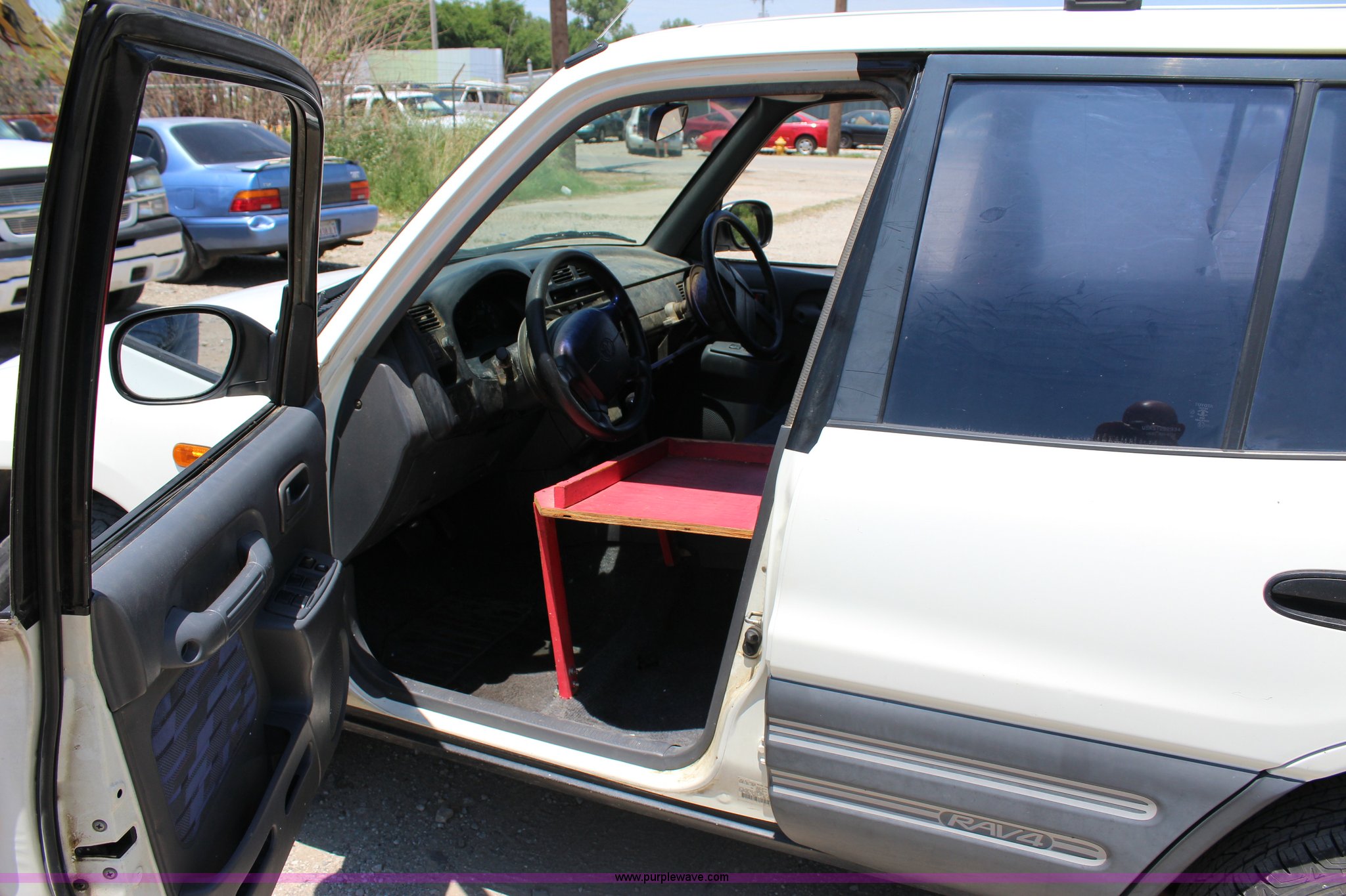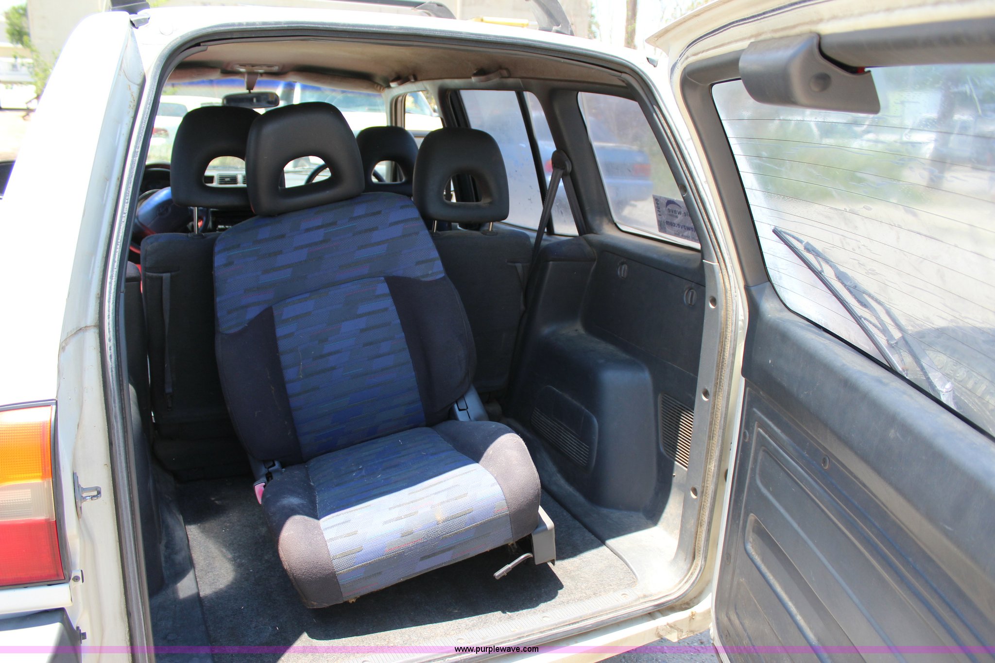 Purple Wave is selling a used Passenger Vehicle in Oklahoma. This item is a 1996 Toyota RAV4 mail car with the following: 103,886 actual miles, 2.0L L4 SOHC 16V gas engine, Automatic transmission, AC and heat, Tilt, Cruise, AM/FM/CD/cassette, Power windows, locks, and mirrors, Cloth interior, Right hand steering, Luggage rack, P215/70R16 tires, Front seat removed, but included