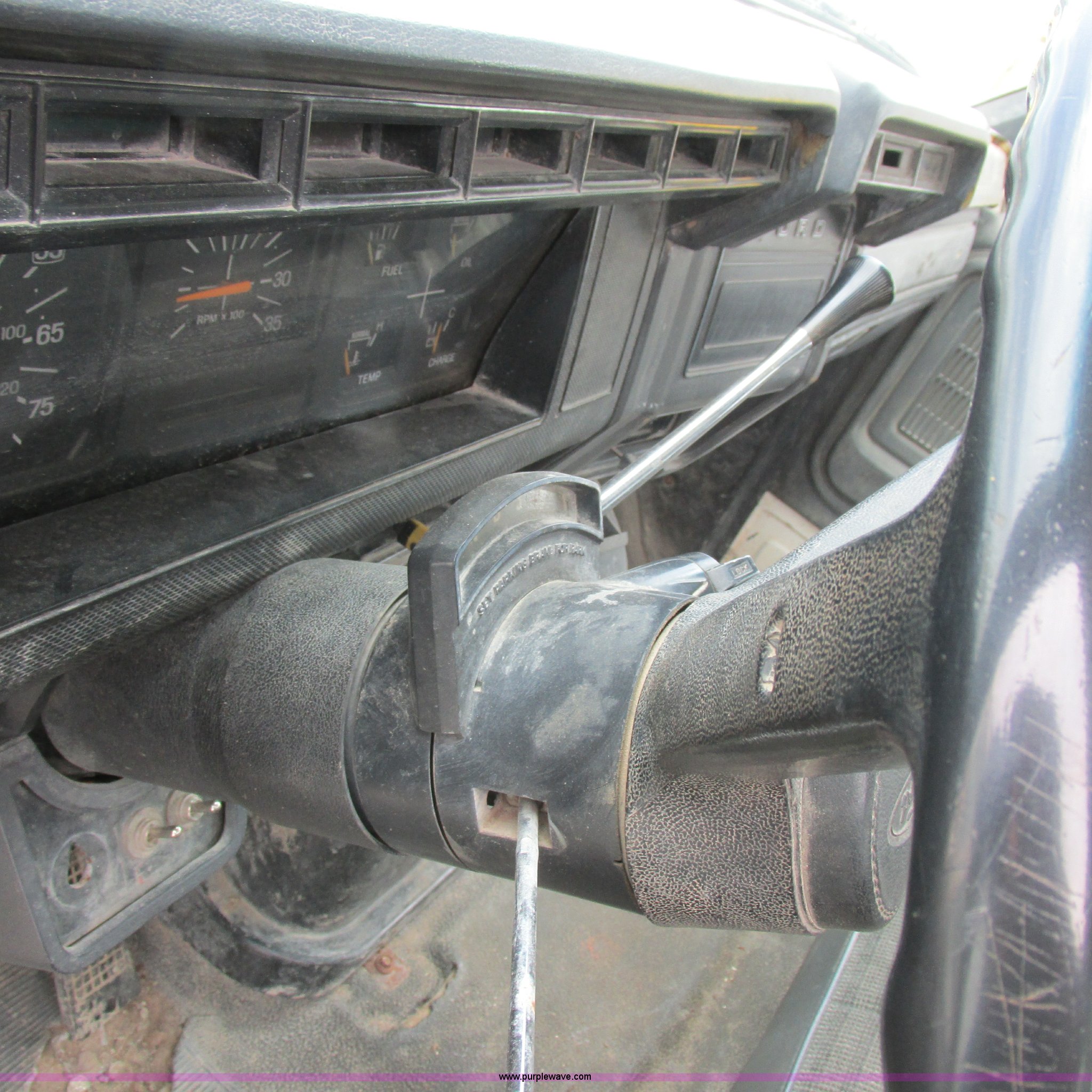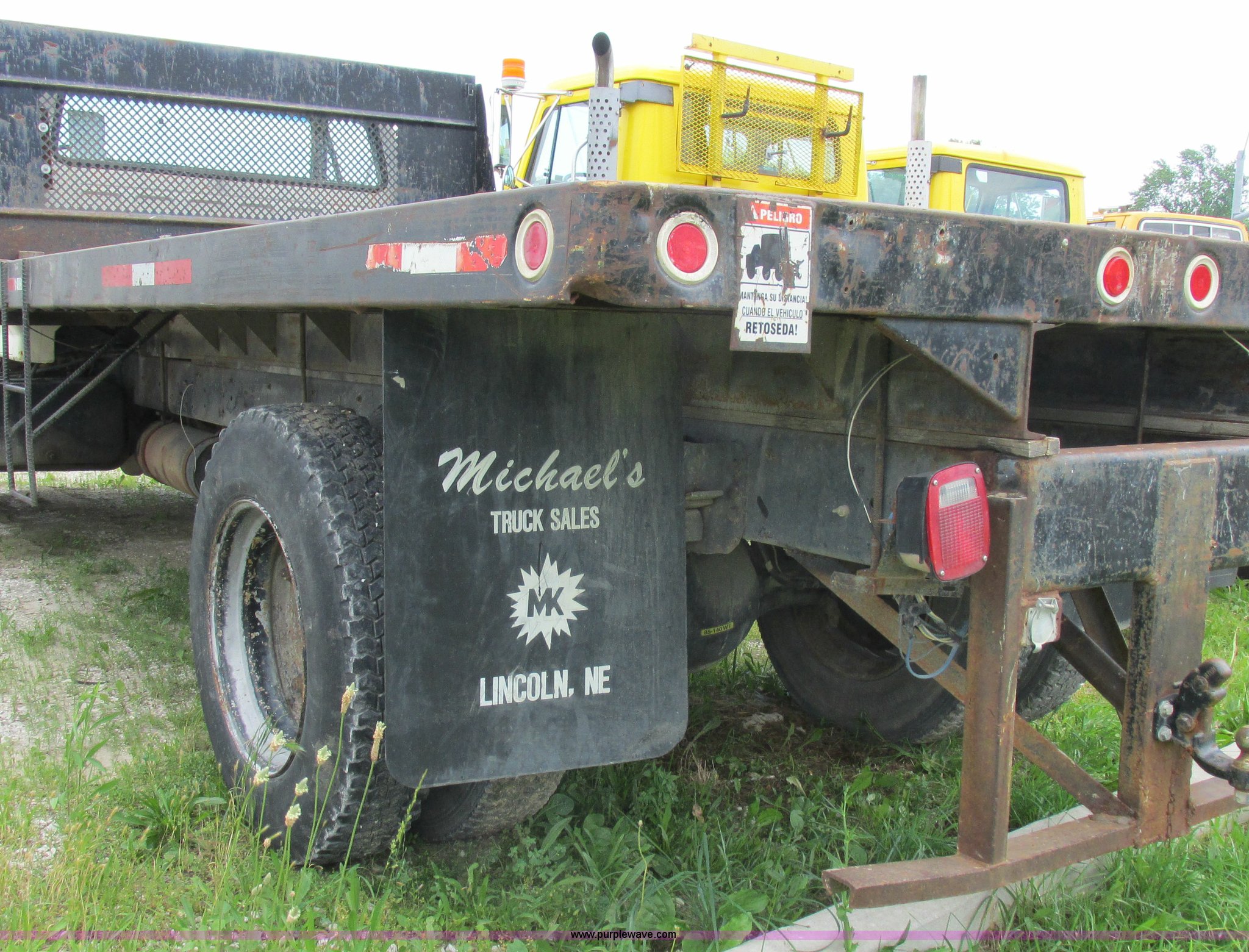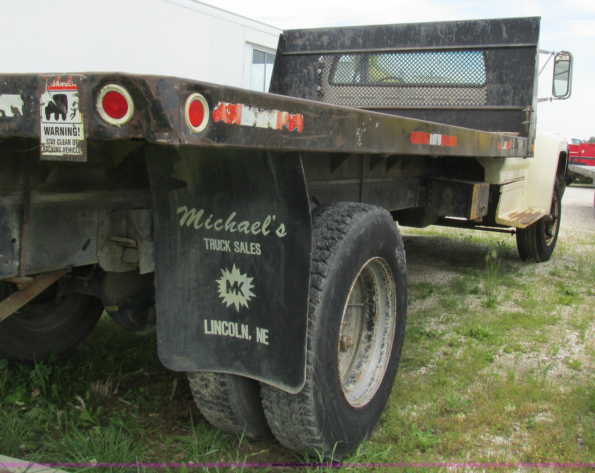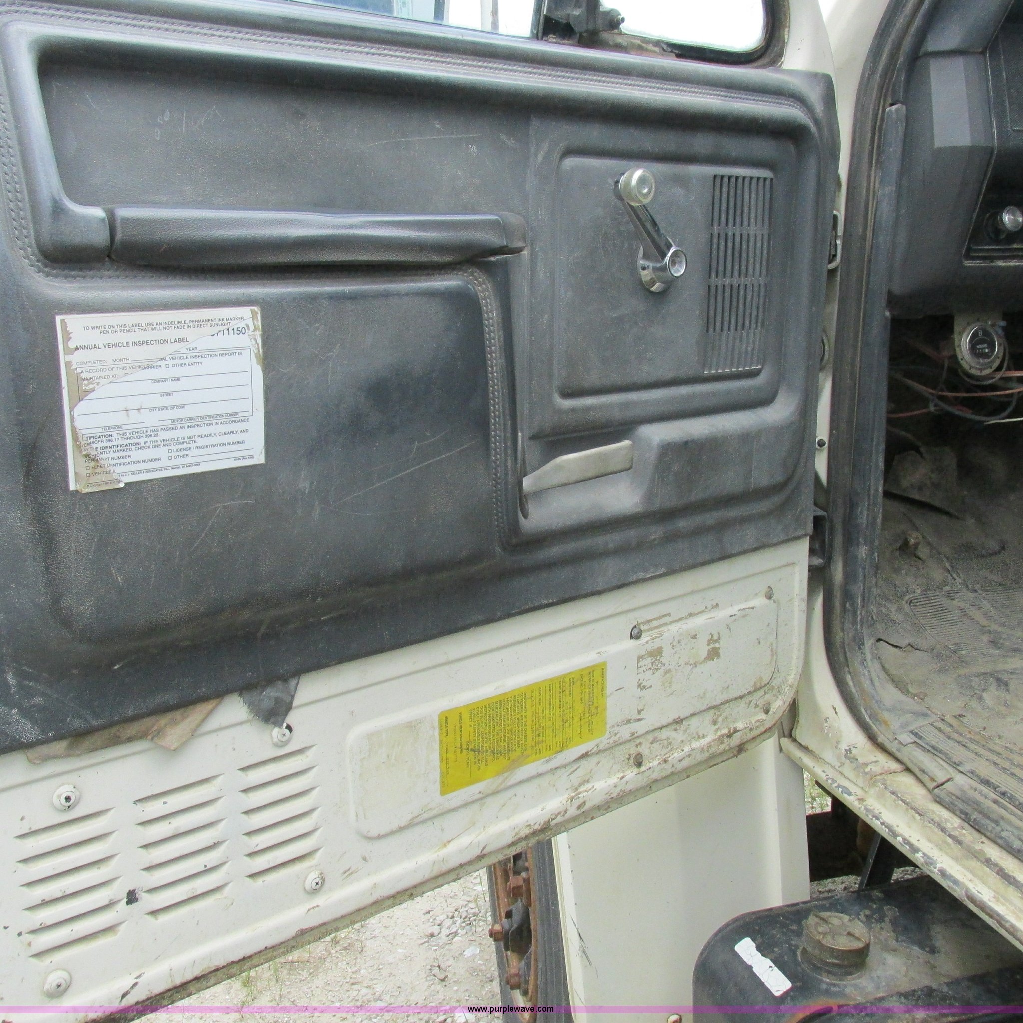 Purple Wave is selling a used Flat Bed Truck in Missouri. This item is a 1988 Ford F600 flatbed truck with the following: 66,907 miles on odometer, 2,540 hours on meter, 6.6L six cylinder diesel engine, Automatic transmission, Heat, Spring suspension seat, 16'L flatbed, Pintle hitch, Trailer wiring, Spring suspension, Hydraulic brakes, 10R22.5 tires, Interior/exterior cosmetic damage