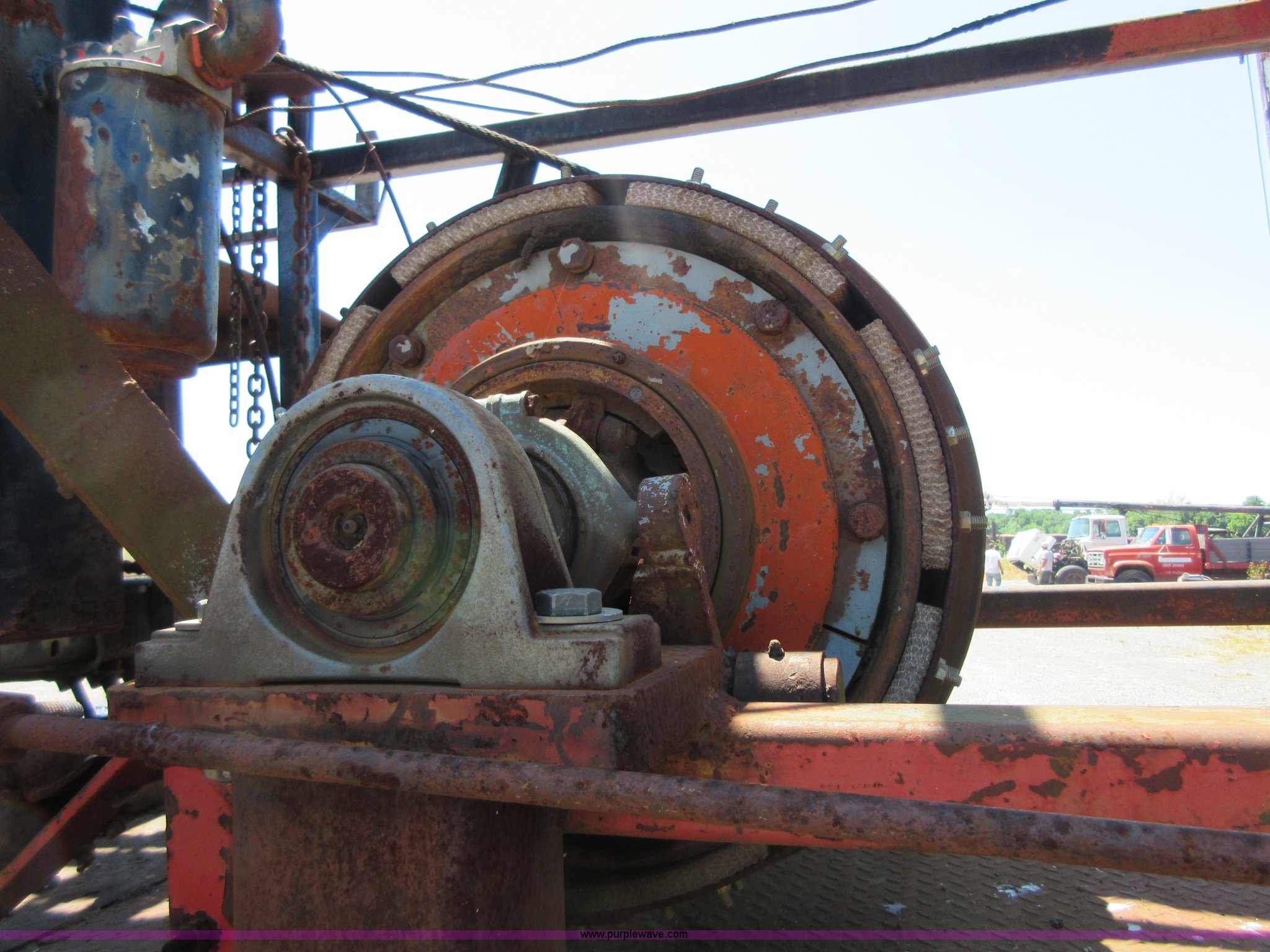 Purple Wave is selling a used Drilling Rig Truck in Oklahoma. This item is a 1991 International 4600 modified swab rig with the following: 144,893 miles on odometer, 8,509 hours on meter, International DT444 7.3L V8 diesel engine, Five speed manual transmission, Heat, AM/FM/cassette, 16'L steel bed, Smeal Draw Works, Model 5T, 2,000'L sand line, 1/2" diameter, Recently replaced,, Chevrolet 305 gas engine, Four speed transmission, Air compressor, Hydraulic lift pole, 5/8" main line, Hydraulic outriggers, Pulls up to 700'L x 2 3/8" diameter tubing, Can swab up to 1,500', Swivel hook, Single fuel tank, Single exhaust stack, Spring suspension, Hydraulic brakes, 170" wheelbase, 245/75R22.5 front tires, 255/70R22.5 rear tires, Rod elevators are not included
