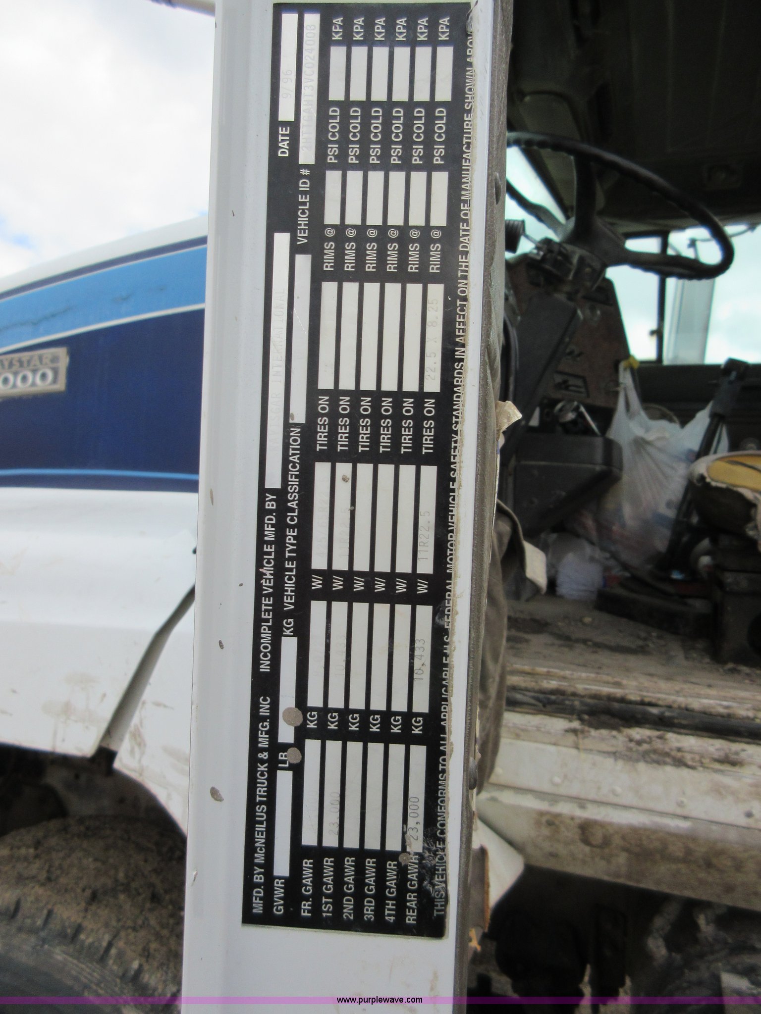 Purple Wave is selling a used Ready Mix or Pump Truck in Oklahoma. This item is a 1997 International 1840 mixer truck with the following: Unknown miles on odometer, Cummins M11 10.8L L6 turbo diesel engine, Eaton Fuller nine speed manual transmission, Full locking differential, Heat, AM/FM/cassette, Air suspension seat, Live PTO, McNeilus mixer drum, 10.5 cubic yard capacity, Rear discharge, (3) chute extensions, 4'L, 125 gallon water tank, Serial 42652, Mud flaps, Front tow hooks, Single rear exhaust stack, Single fuel tank, Walking beam suspension, Air brakes, Double frame, 215" wheelbase, 385/60R22.5 front tires, 11R22.5 rear tires, GVWR 66,000 lbs, FAWR 20,000 lbs, IAWR 23,000 lbs, RAWR 23,000 lbs, Unit # R10401
