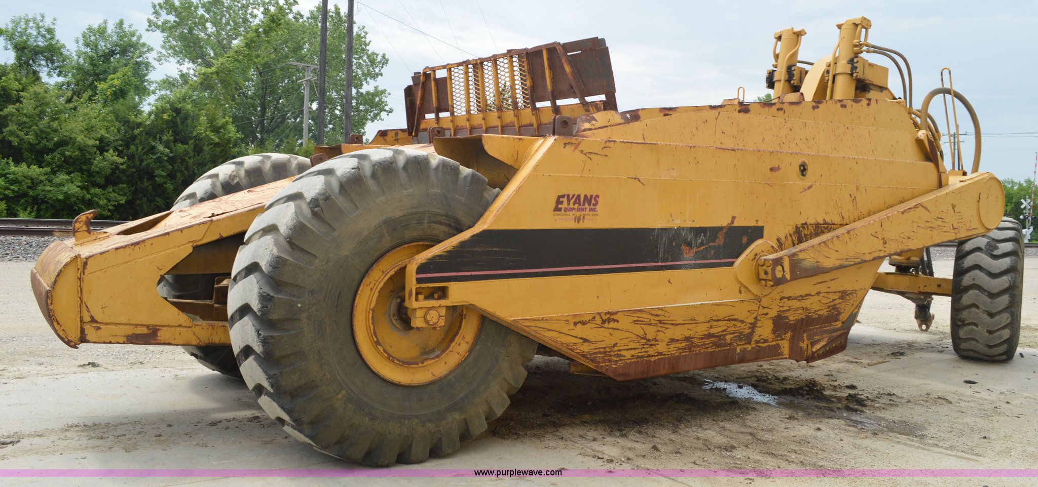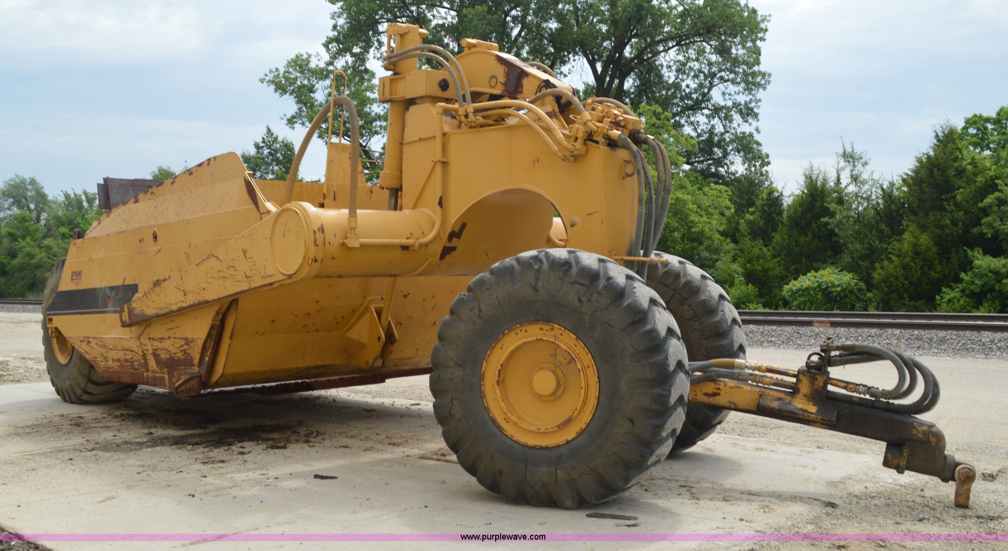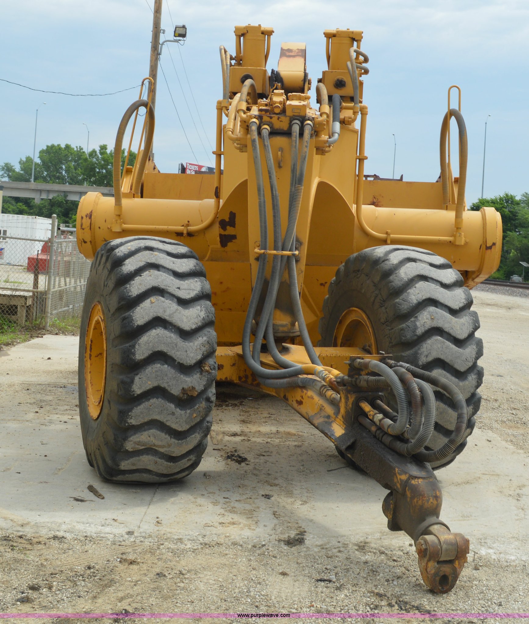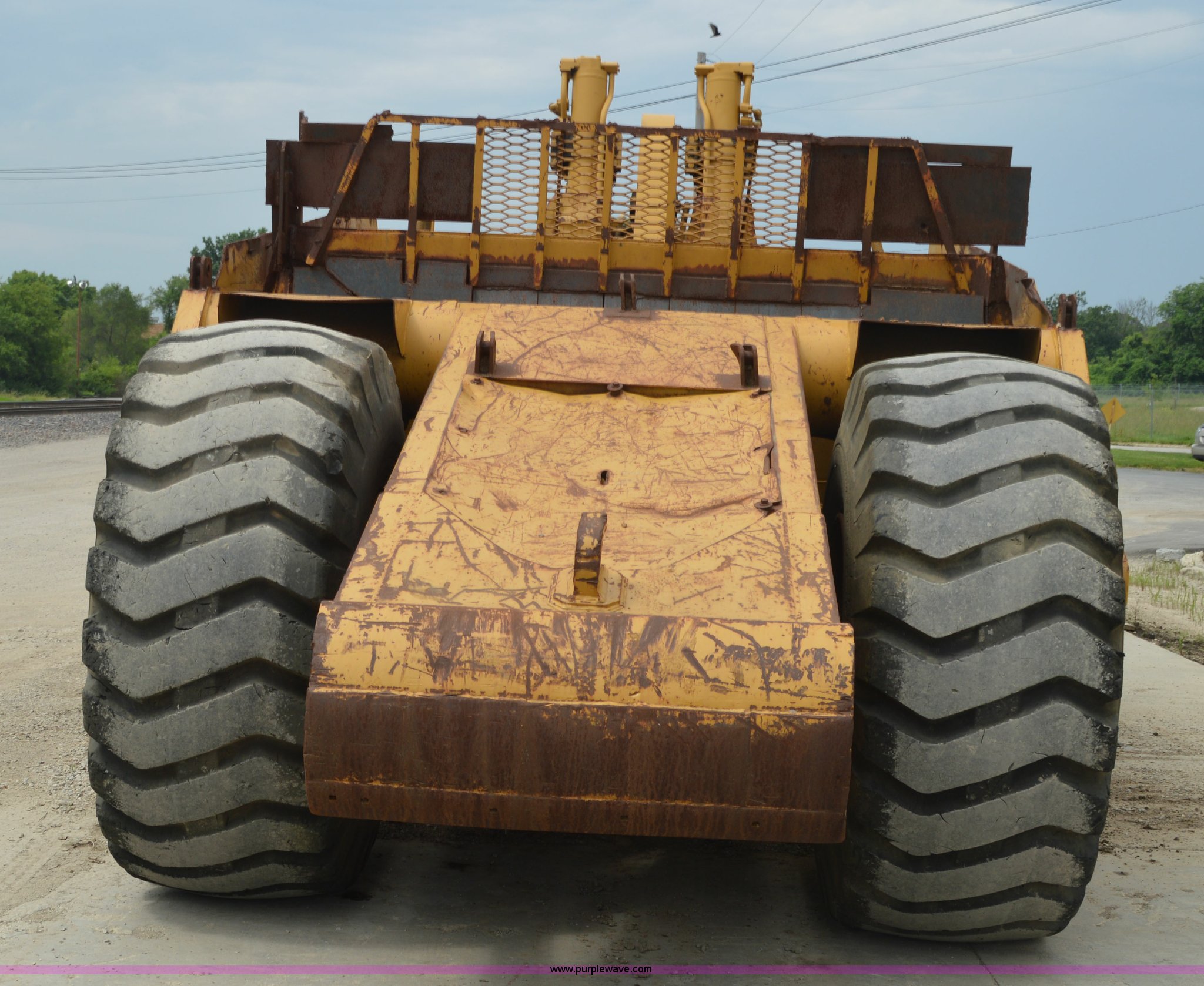 Purple Wave is selling a used Pull Type Scraper in Missouri. This item is a Kokudo 23SB pull type scraper with the following: 10'W bowl, 11'9" total width, Rear push block, Pin hitch, 26.5-25 front tires, 29.5-25 rear tires, Serial 8684