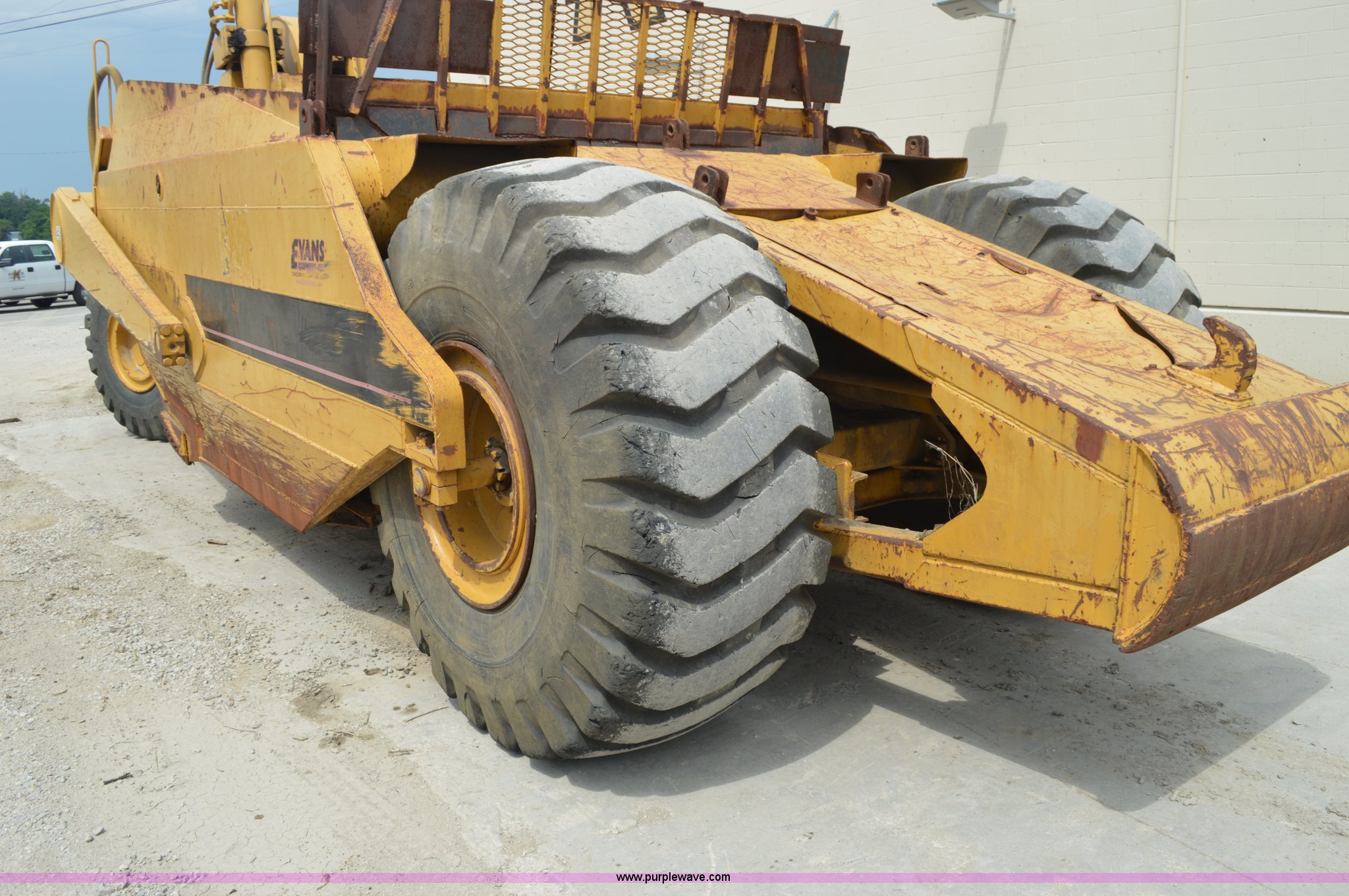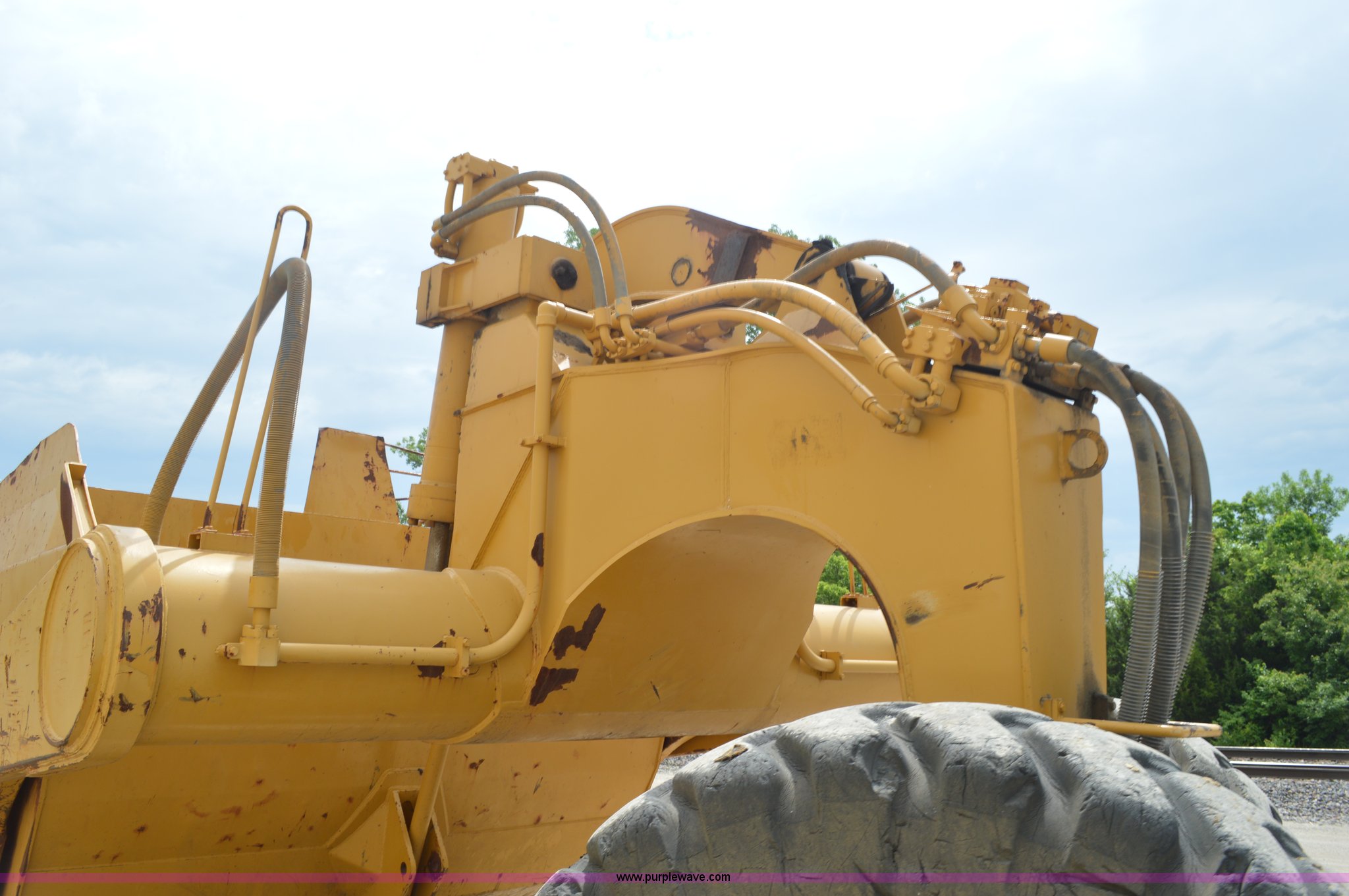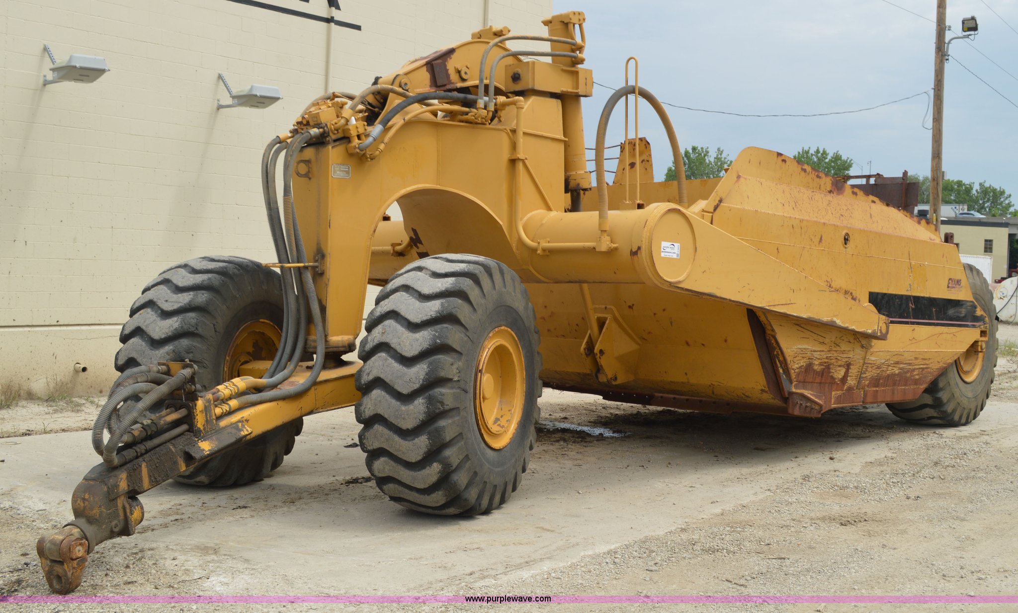 Purple Wave is selling a used Pull Type Scraper in Missouri. This item is a Kokudo 23SB pull type scraper with the following: 10'W bowl, 11'9" total width, Rear push block, Pin hitch, 26.5-25 front tires, 29.5-25 rear tires, Serial 8684