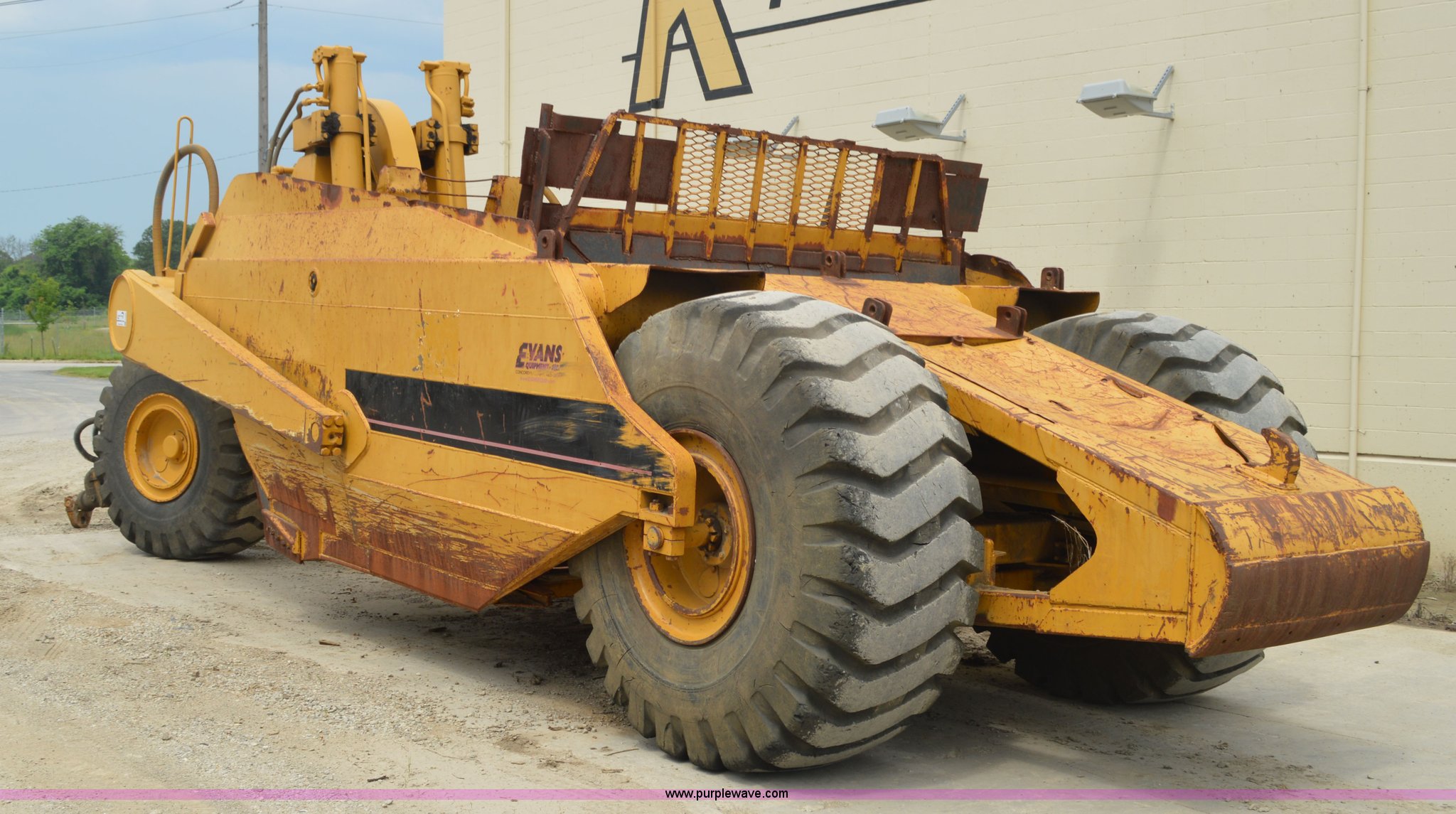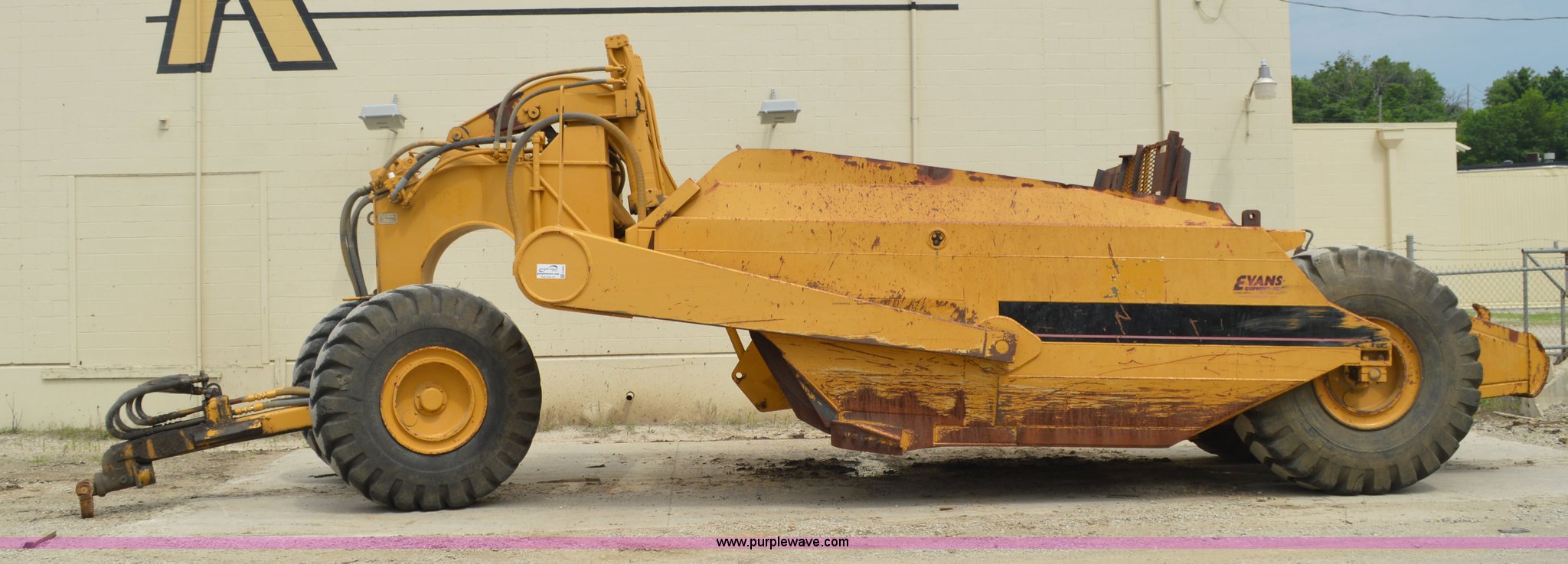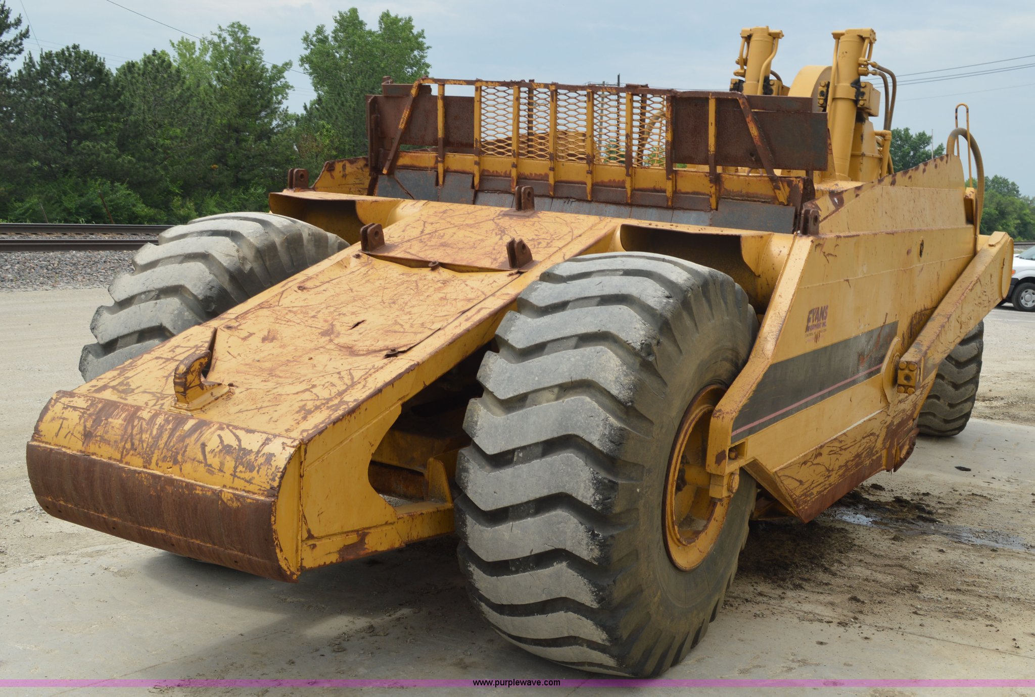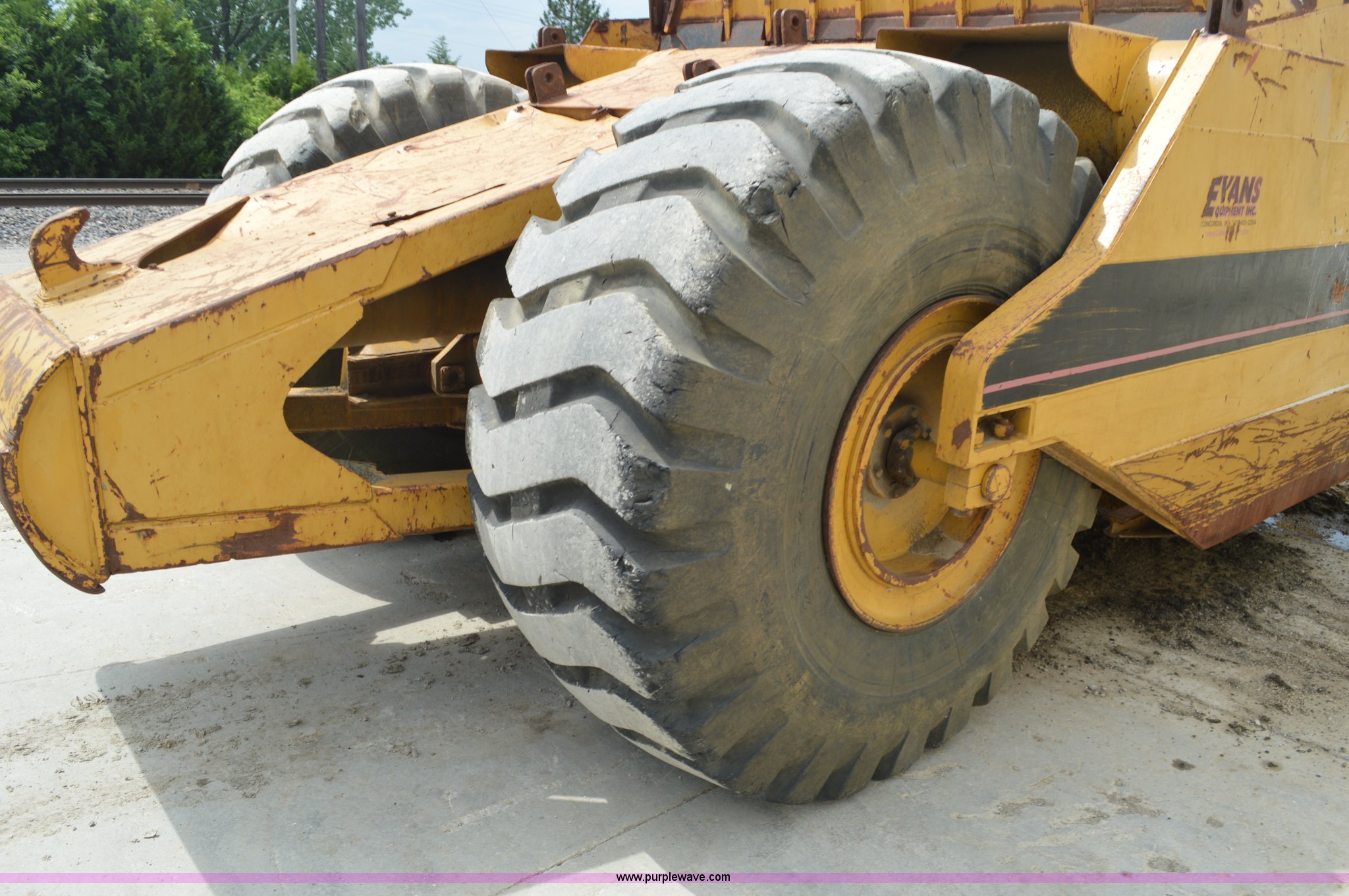 Purple Wave is selling a used Pull Type Scraper in Missouri. This item is a Kokudo 23SB pull type scraper with the following: 10'W bowl, 11'9" total width, Rear push block, Pin hitch, 26.5-25 front tires, 29.5-25 rear tires, Serial 8684