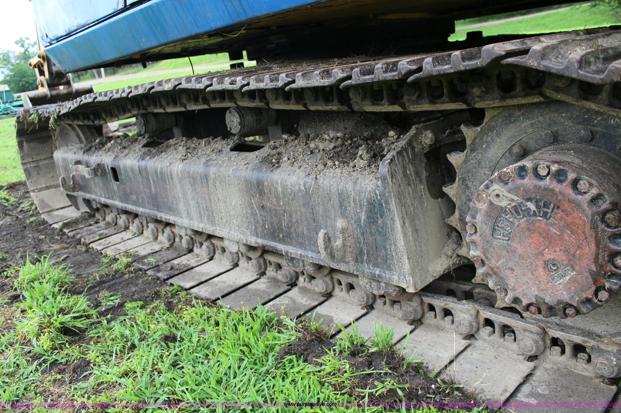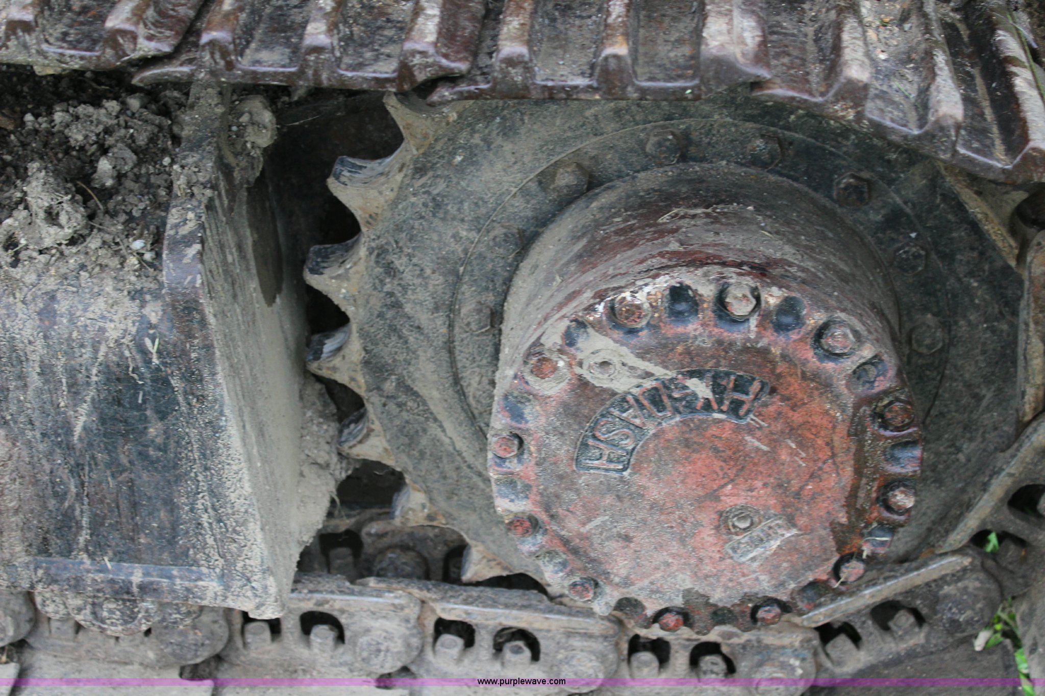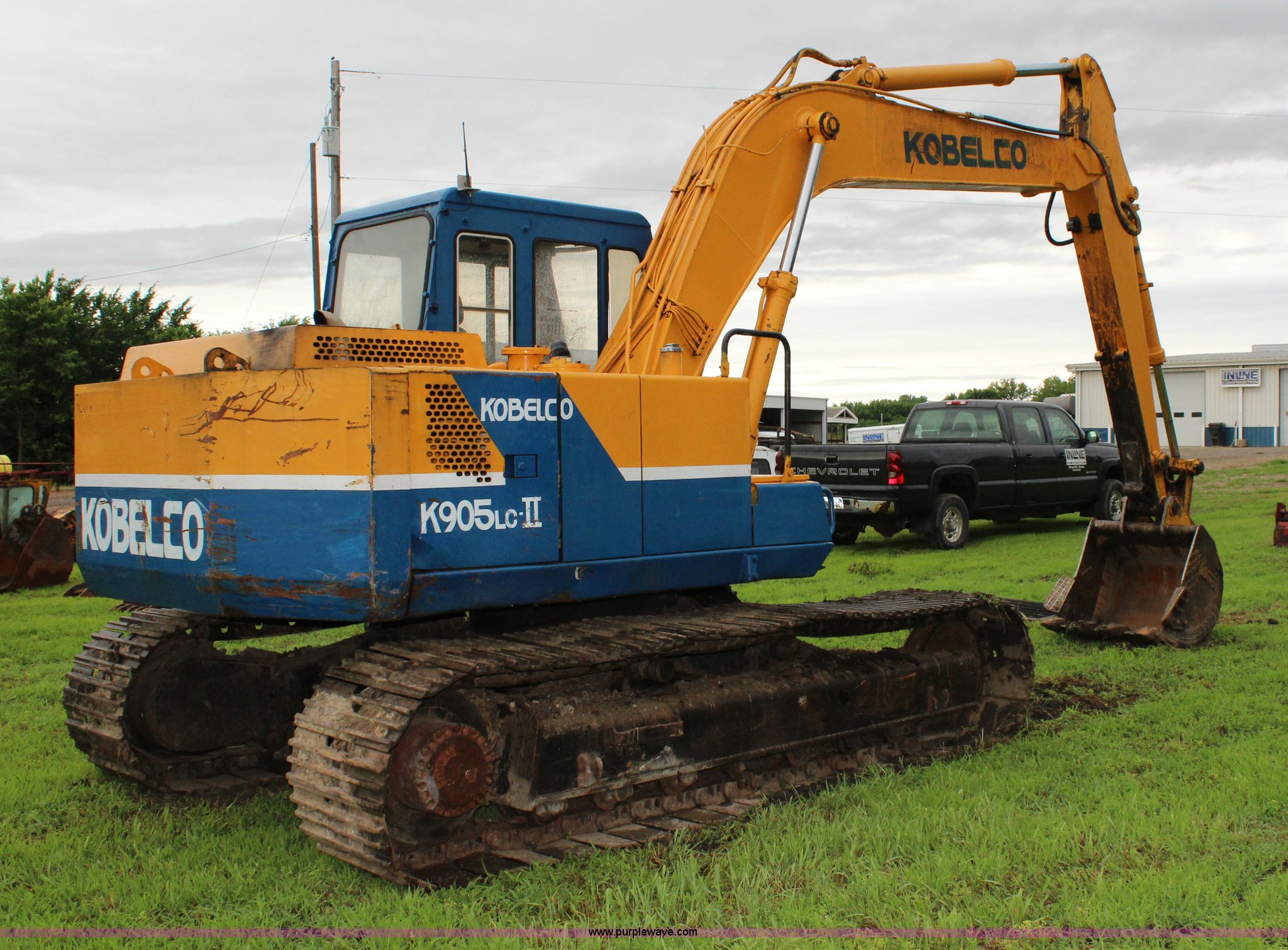 Purple Wave is selling a used Hydraulic Excavator in Kansas. This item is a Kobelco K905LC-II excavator with the following: 7,410 hours on meter, Mitsubishi four cylinder diesel engine, Hydrostatic transmission, Heat, Suspension seat, Standard boom, 8'2" stick length, Hendrix 36"W bucket, 5/8 cubic yard capacity, Manual thumb, Seven bottom rollers, 23.5"W steel triple grouser track pads, Windshield guard included