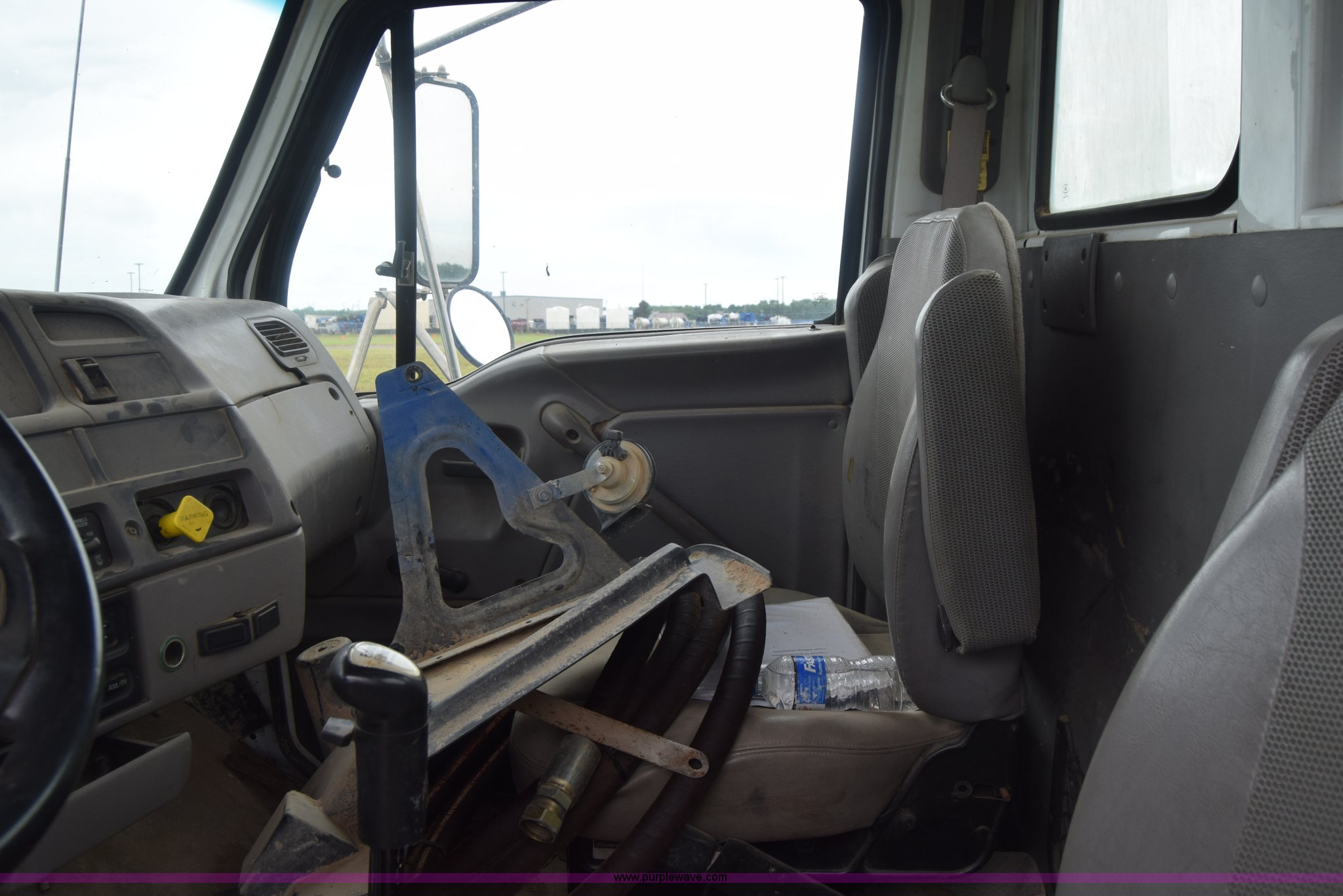 Purple Wave is selling a used Ready Mix or Pump Truck in Oklahoma. This item is a 2000 Sterling L8500 pump truck with the following: 170,760 miles on odometer, Caterpillar 3126 7.2L L6 diesel engine, 300 HP, Eaton Fuller Road Ranger nine speed manual transmission, AC and heat, AM/FM, Air suspension seat, Chelsea PTO, 21'L x 8'W bed, Single exhaust stack, Dual fuel tanks, Air suspension, Yokohama 385/65R22.5 front tires, Yokohama 11R22.5 rear tires, GVWR 56,000 lbs, Non-operational unit, Unit has not been operated in more than five years, Drive shaft removed, Outside tires removed, Pump disassembled, Parts missing, Unit # 393