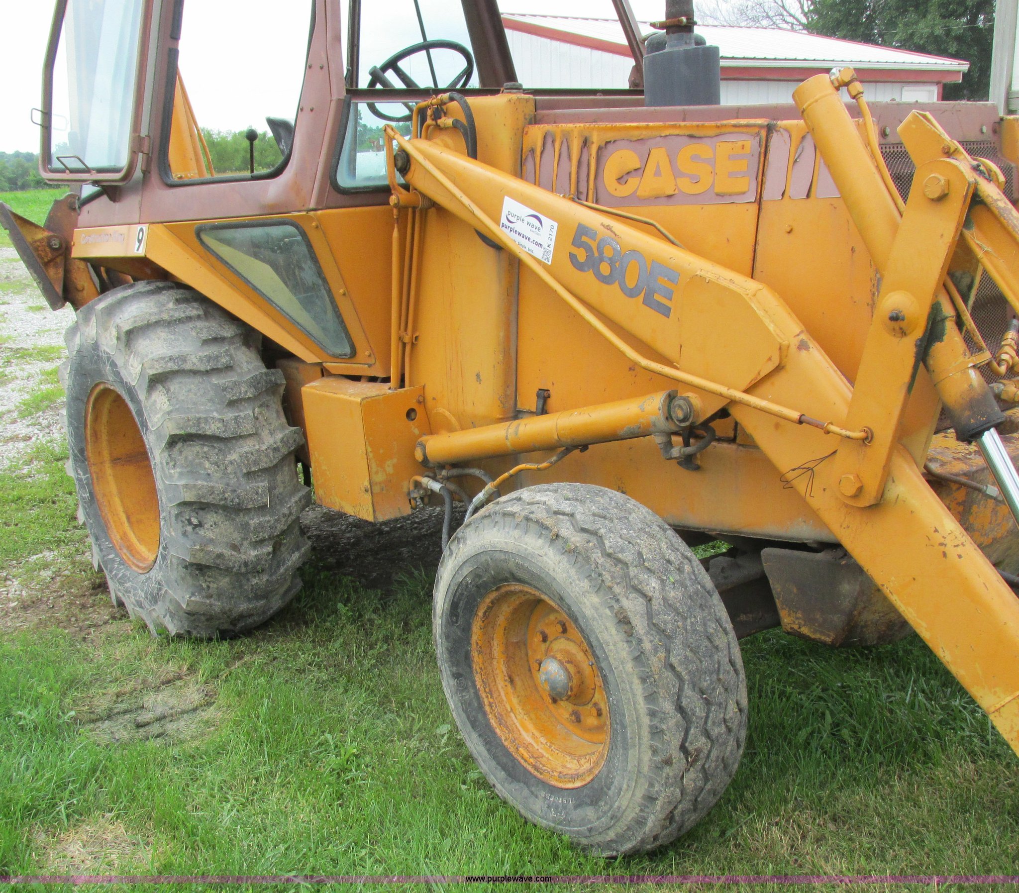 Purple Wave is selling a used Tractor Loader Backhoe in Missouri. This item is a Case 580E backhoe with the following: 3,565 hours on meter, Four cylinder diesel engine, Serial 44137527, Shuttle shift transmission, 4F-4R gears, Suspension seat, Wobble stick backhoe controls, Front and rear work lights, 81"W loader bucket, Weld-on cutting edge, E-stick, 24"W backhoe bucket, Teeth, Front counter weights, 11L-16 front tires, 17.5-24 rear tires, Serial 12116393