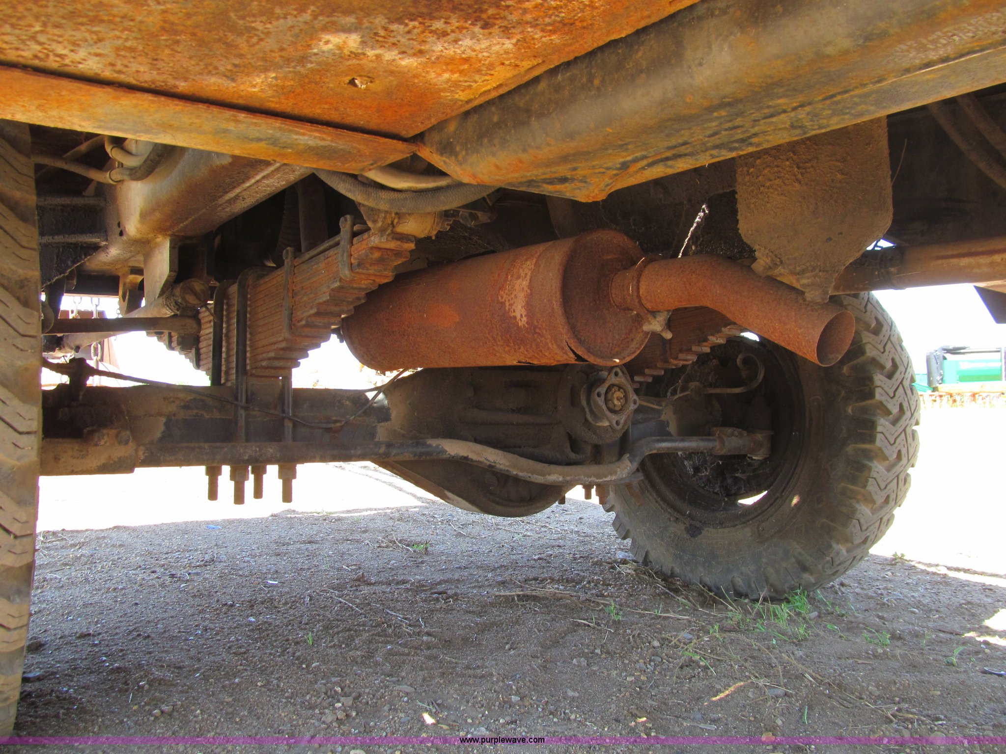 Bantam T350 truck crane. 9,554 miles on odometer, Chrysler gas engine, Manual transmission 5F-2R gears, Rear hydraulic outriggers, 8.25 x 20 tires, Detroit Diesel diesel crane engine, Approximately 45'boom Channel lattice, Fairlead, 34"W drag line bucket (6) teeth, One tire has cords showing, Front axle drive line removed, Serial 12131. View equipment video. 1924 Highway 141. Bayard, IA 50029