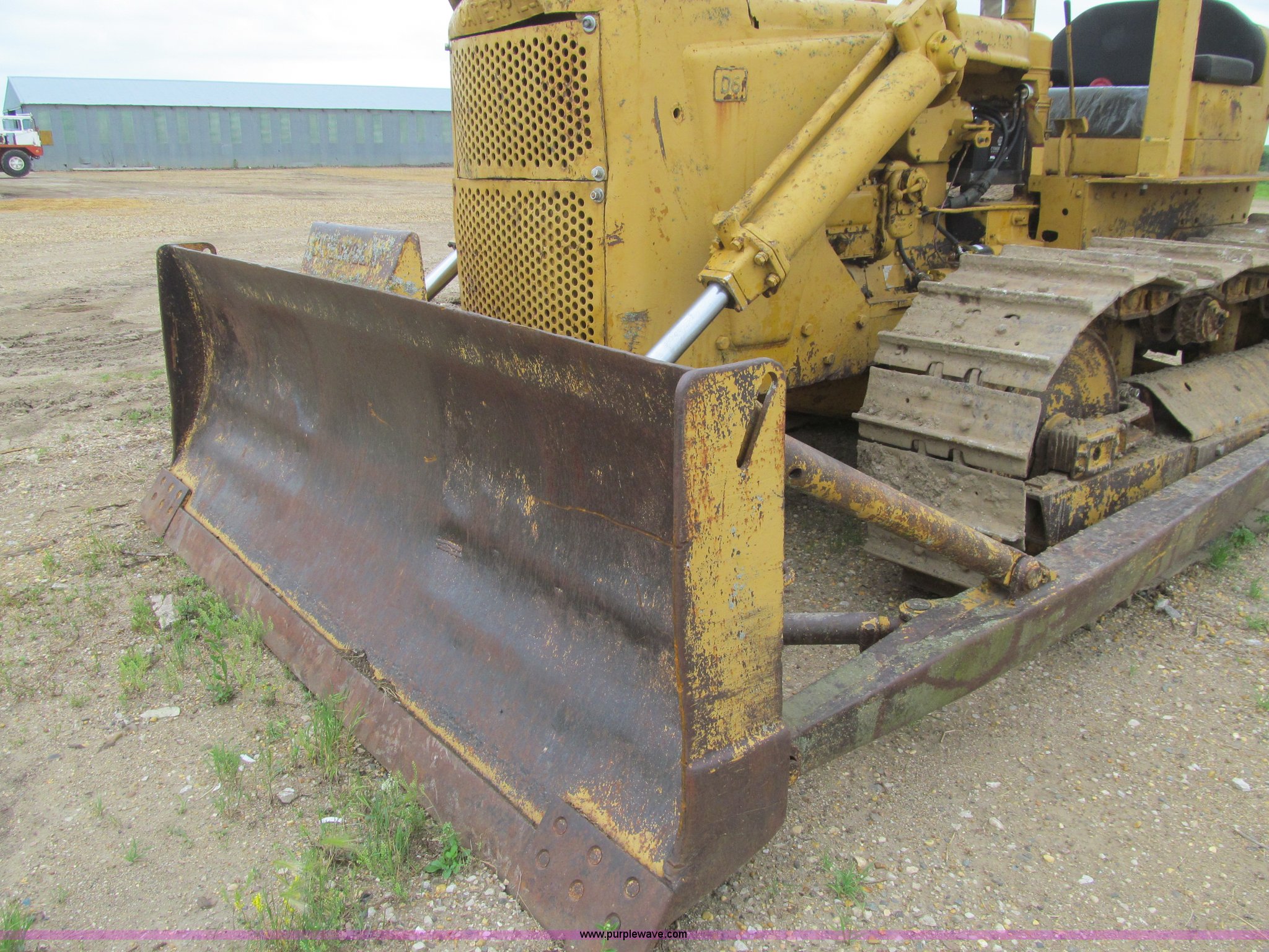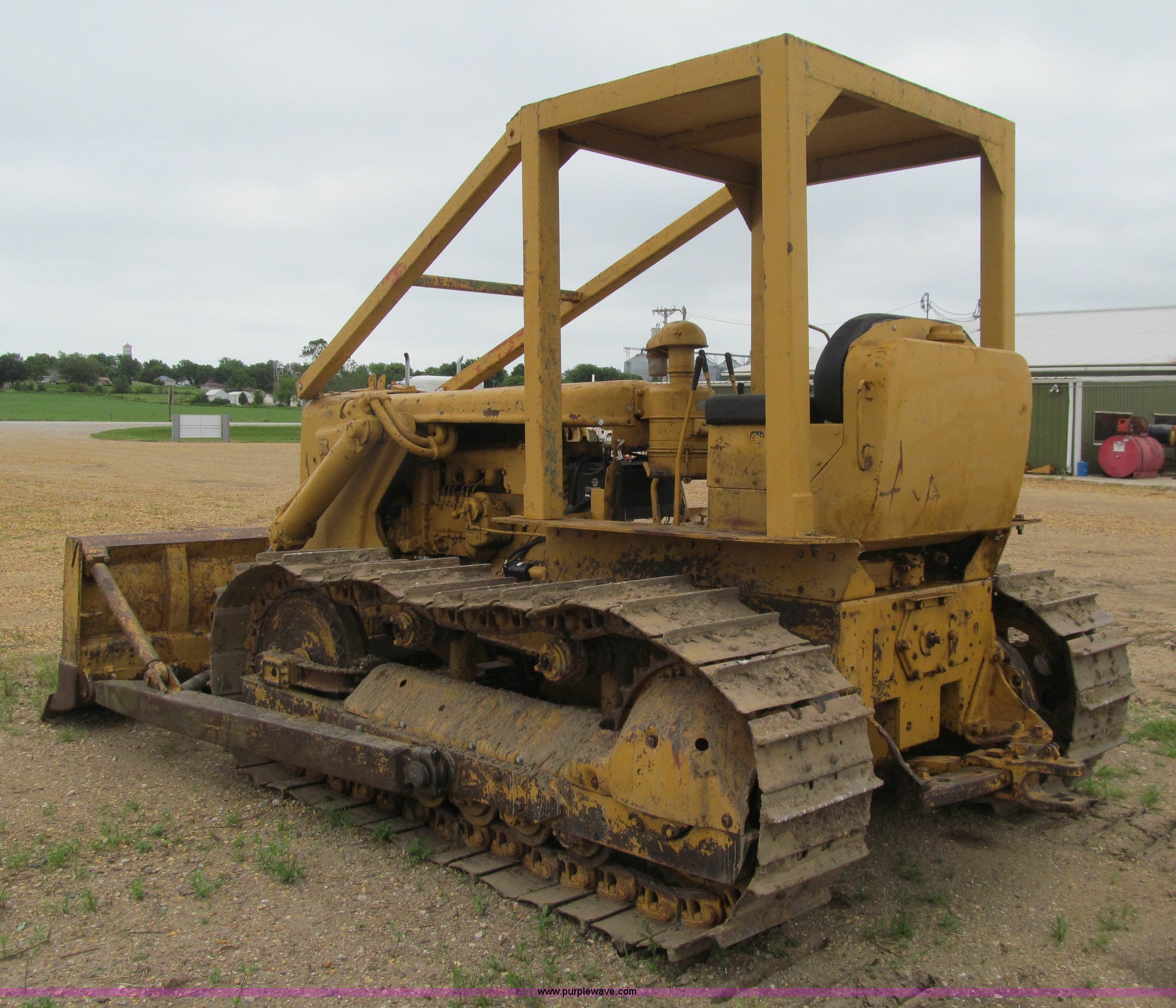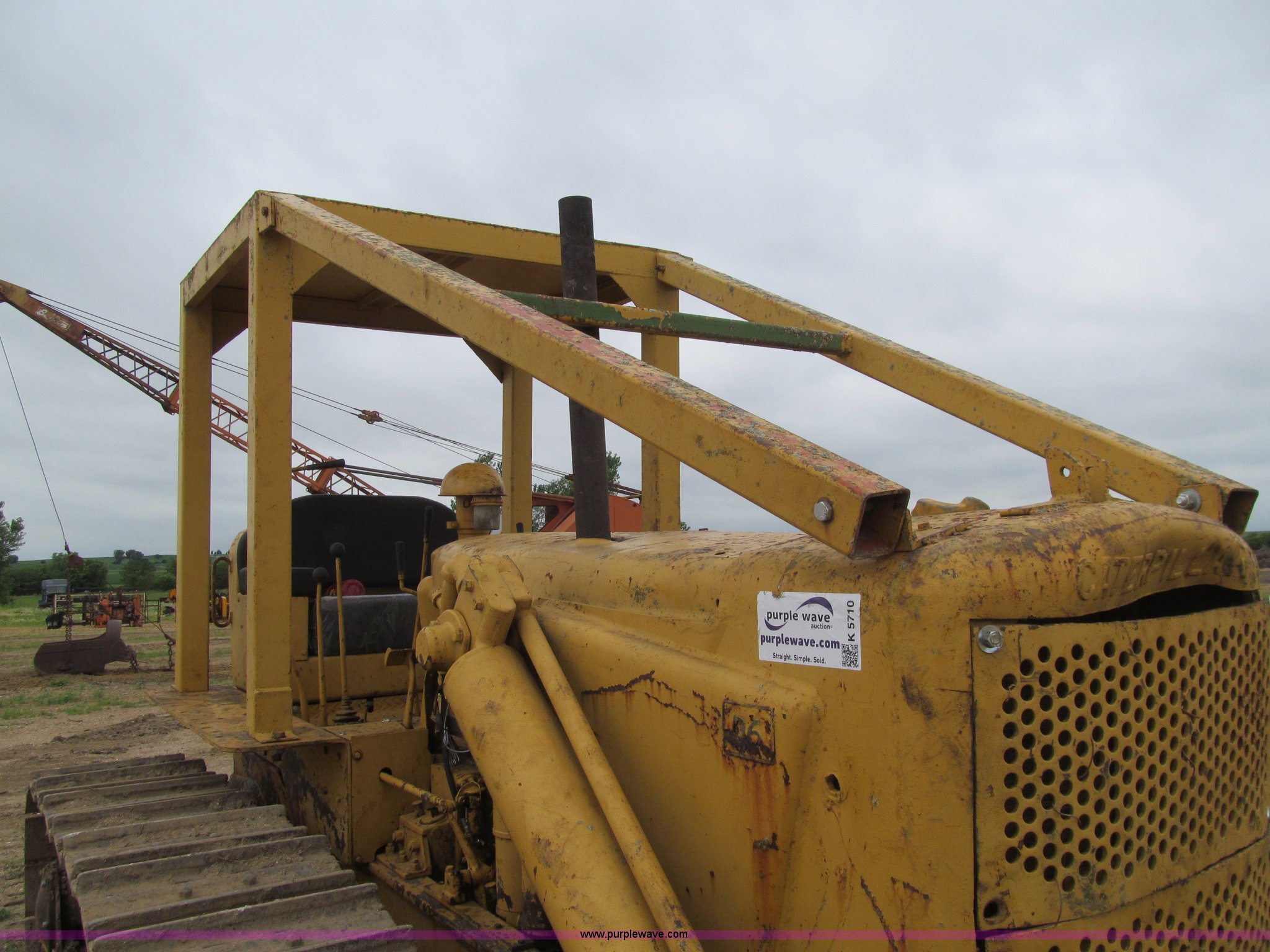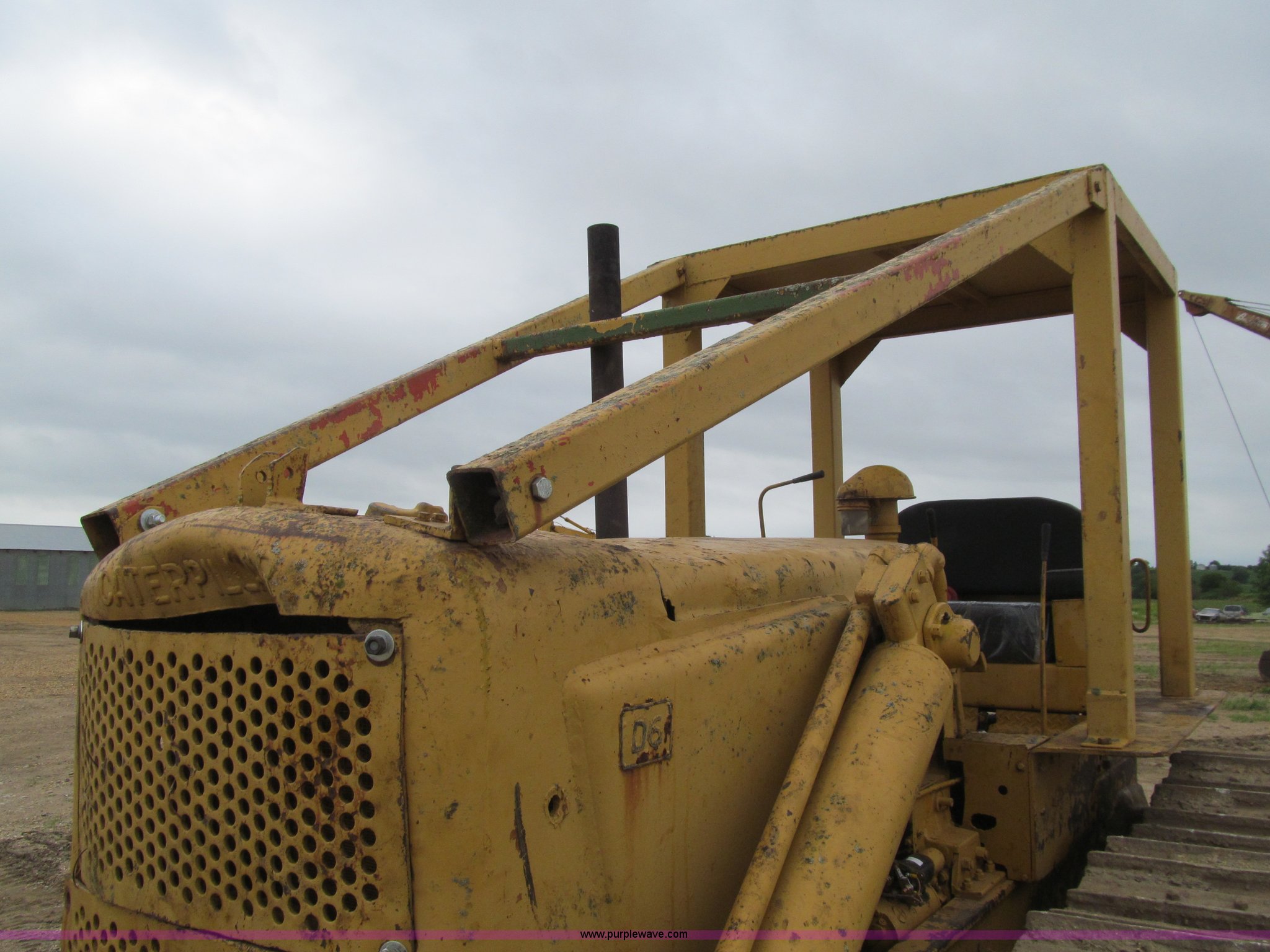 Purple Wave is selling a used Crawler Dozer in Iowa. This item is a 1956 Caterpillar D6 dozer with the following: Caterpillar six cylinder diesel engine, Serial 9U22726, Direct drive transmission, 4F-1R gears, Canopy, Clutch brake steering, Sweeps, 109" straight dozer blade, Rear drawbar, Rear PTO, Six bottom rollers, 20"W single grouser track pads, Rails stiff, Serial 16C644
