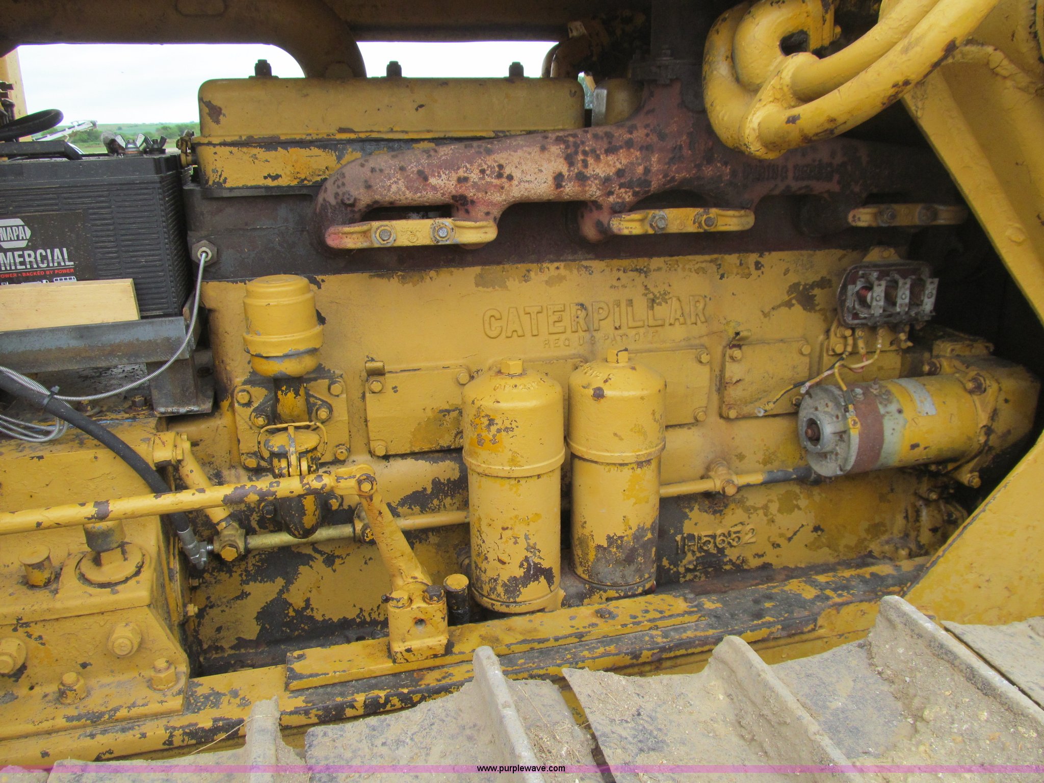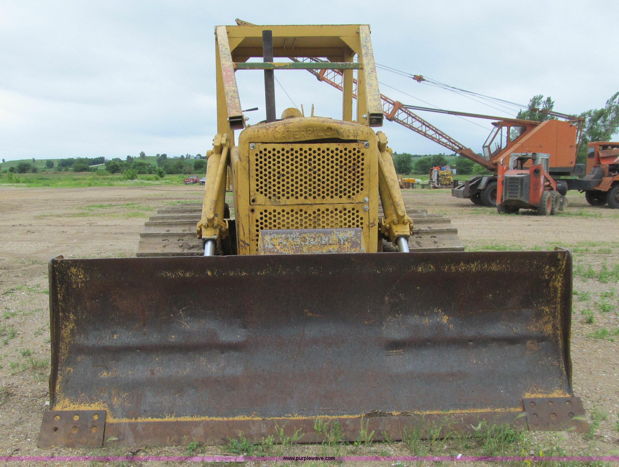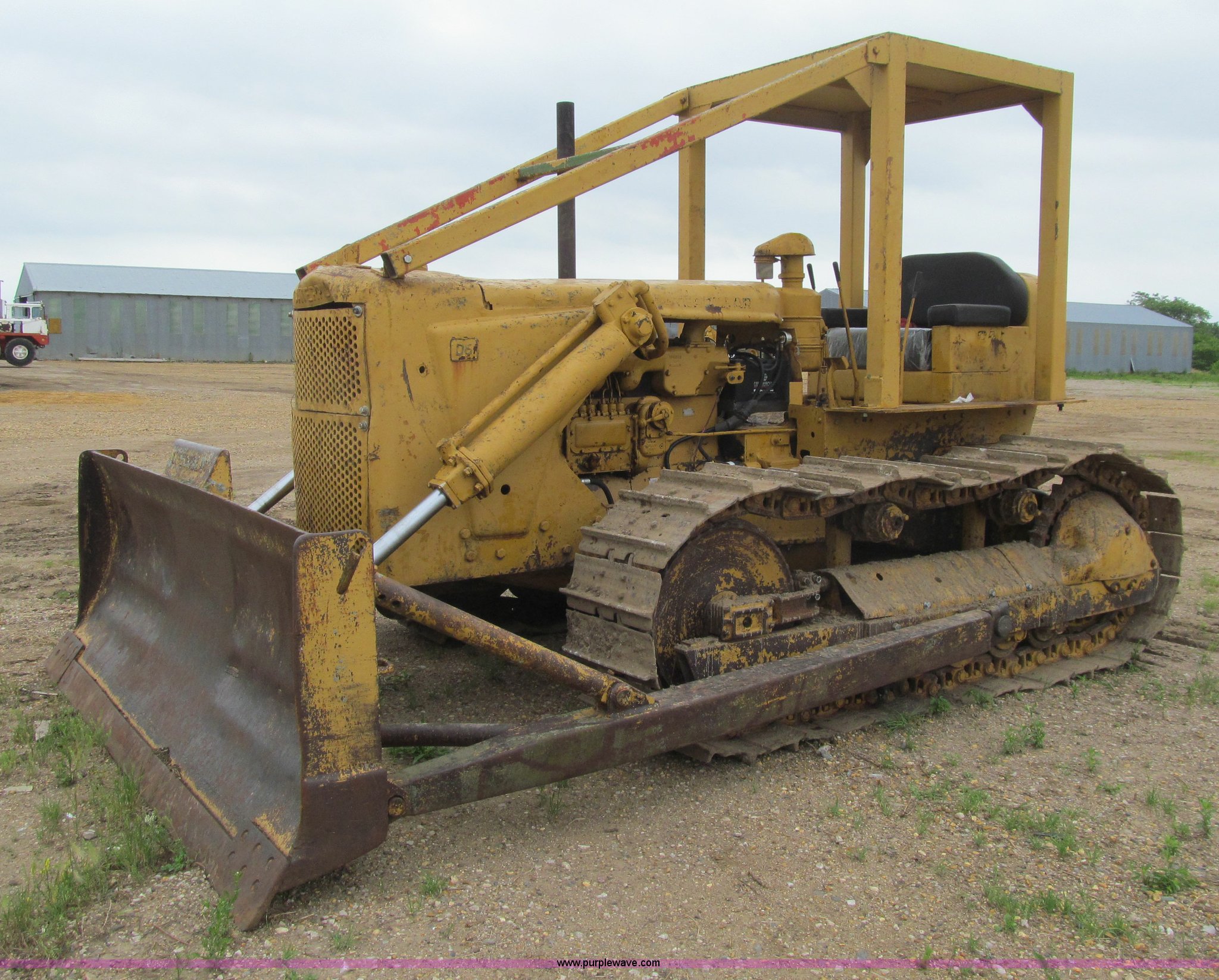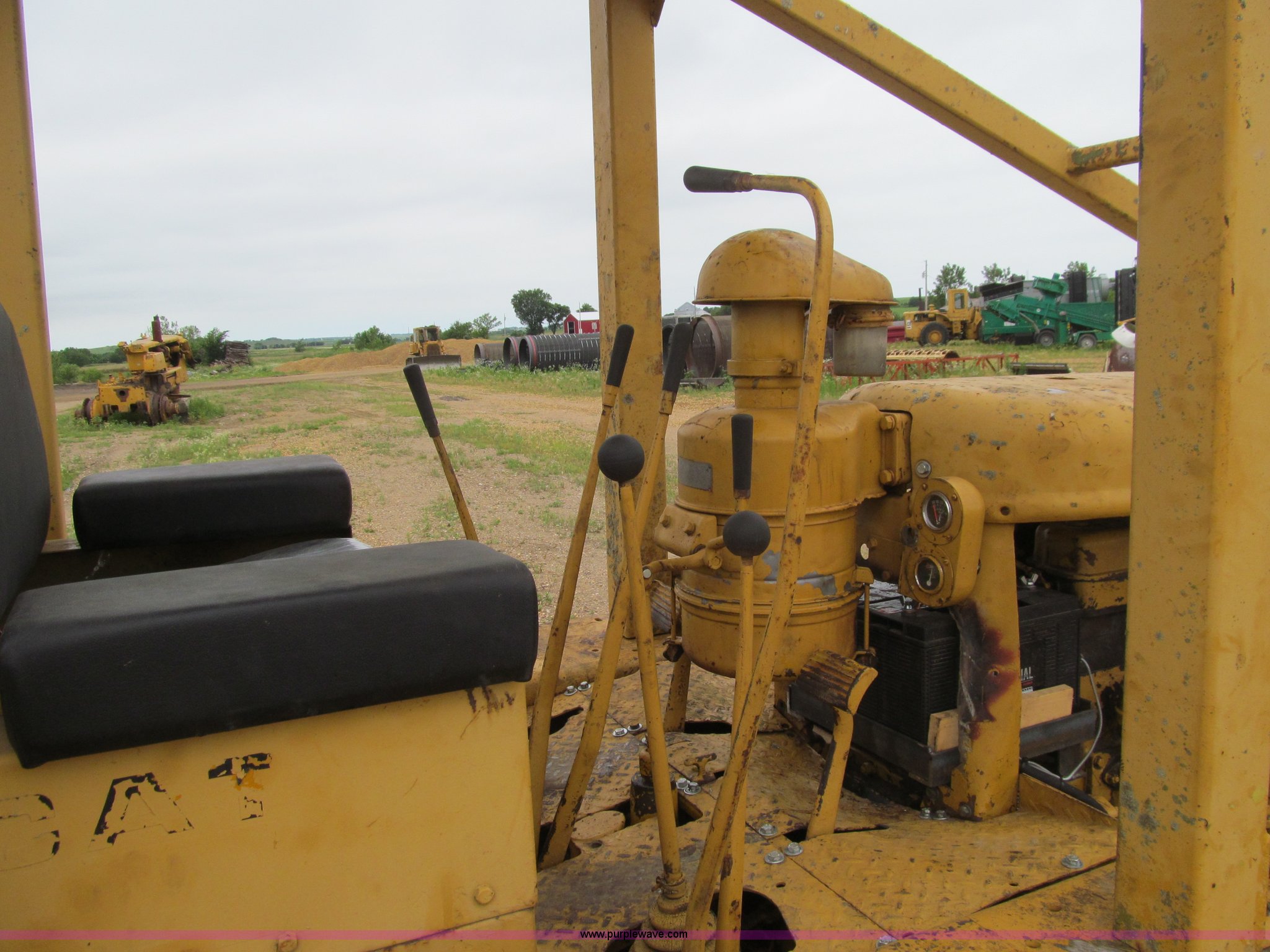 Purple Wave is selling a used Crawler Dozer in Iowa. This item is a 1956 Caterpillar D6 dozer with the following: Caterpillar six cylinder diesel engine, Serial 9U22726, Direct drive transmission, 4F-1R gears, Canopy, Clutch brake steering, Sweeps, 109" straight dozer blade, Rear drawbar, Rear PTO, Six bottom rollers, 20"W single grouser track pads, Rails stiff, Serial 16C644
