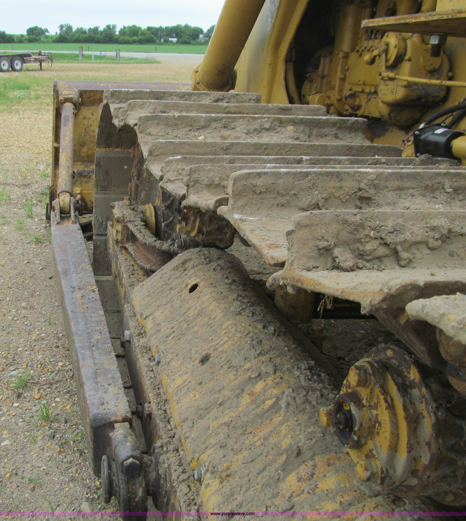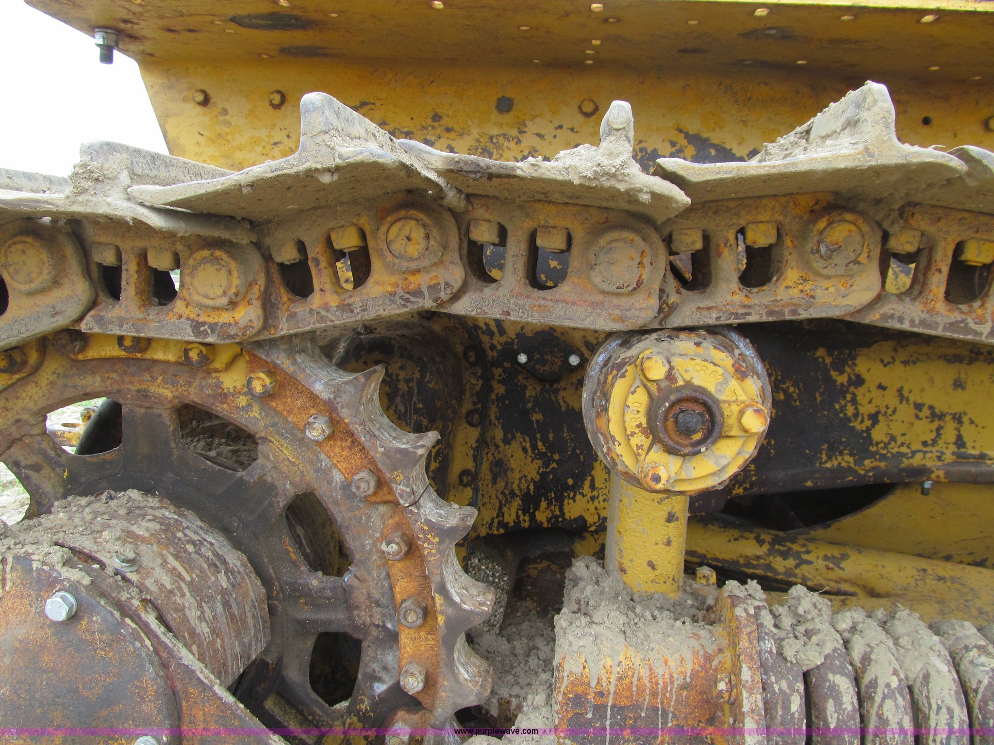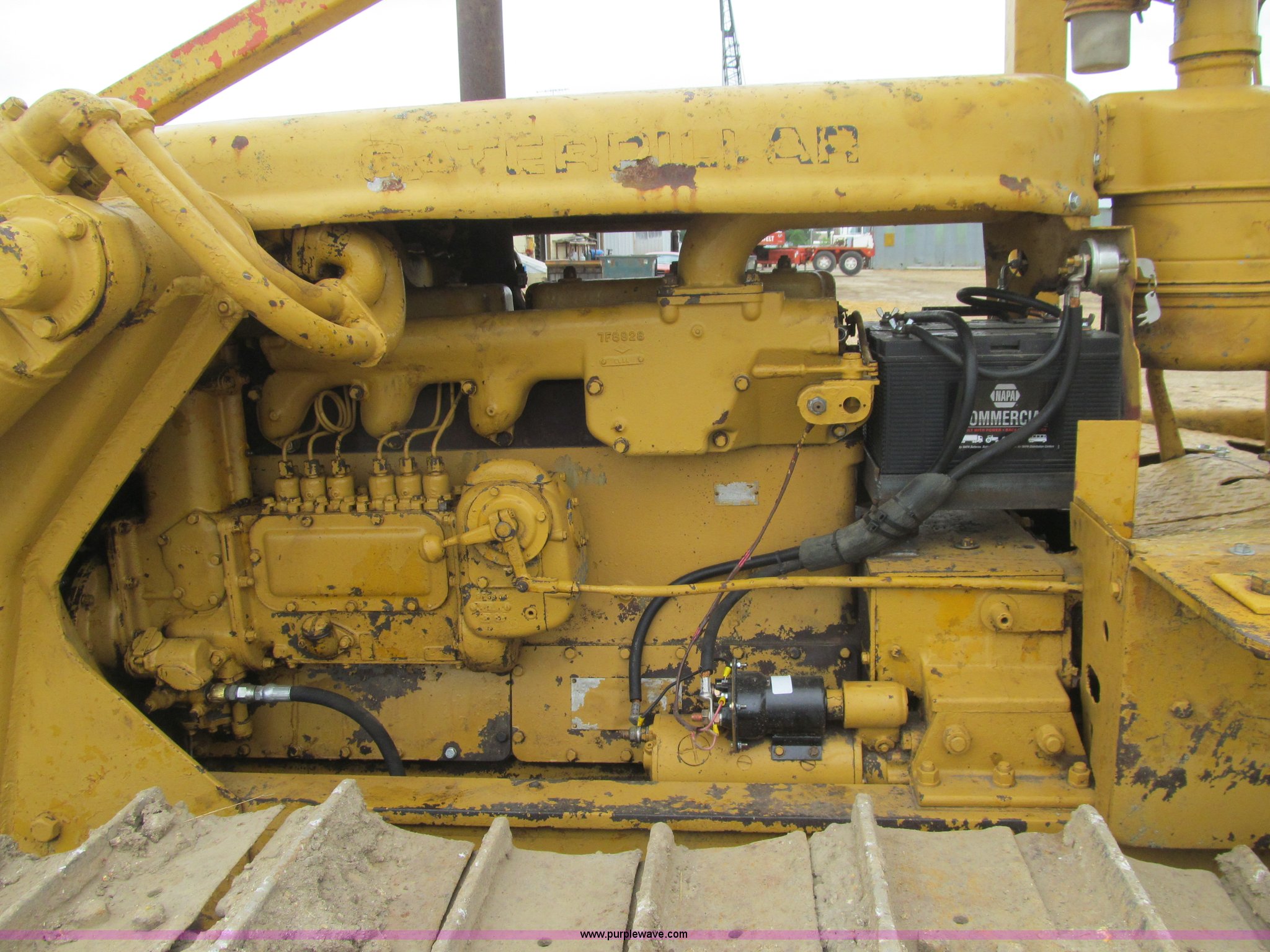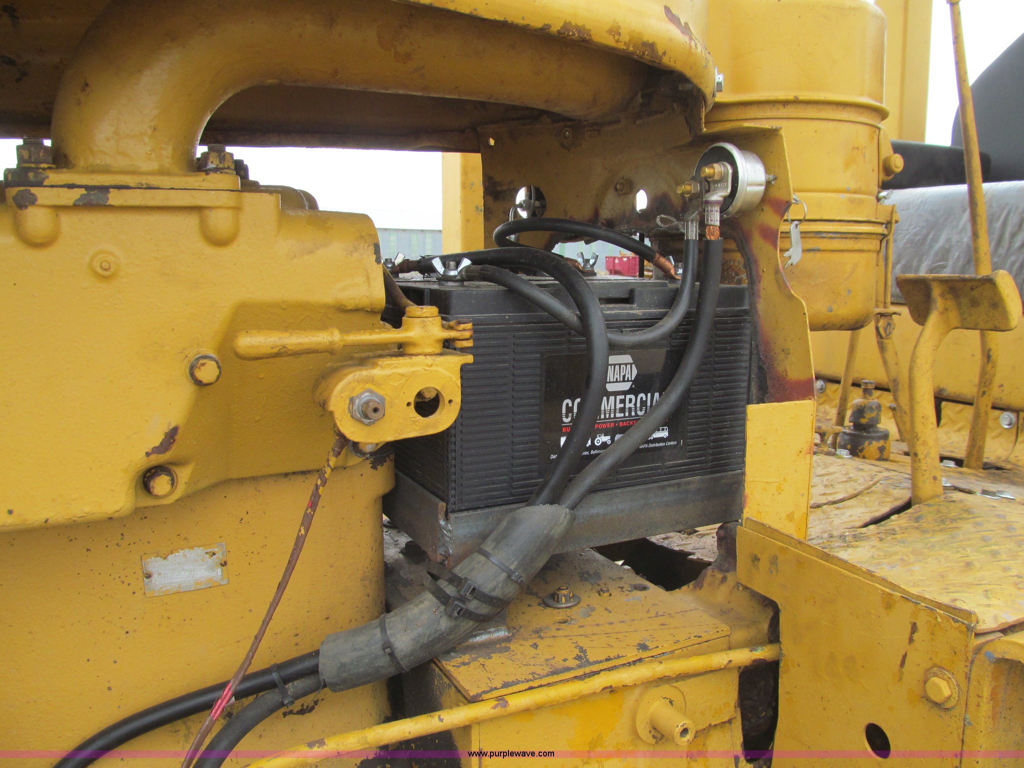Purple Wave is selling a used Crawler Dozer in Iowa. This item is a 1956 Caterpillar D6 dozer with the following: Caterpillar six cylinder diesel engine, Serial 9U22726, Direct drive transmission, 4F-1R gears, Canopy, Clutch brake steering, Sweeps, 109" straight dozer blade, Rear drawbar, Rear PTO, Six bottom rollers, 20"W single grouser track pads, Rails stiff, Serial 16C644