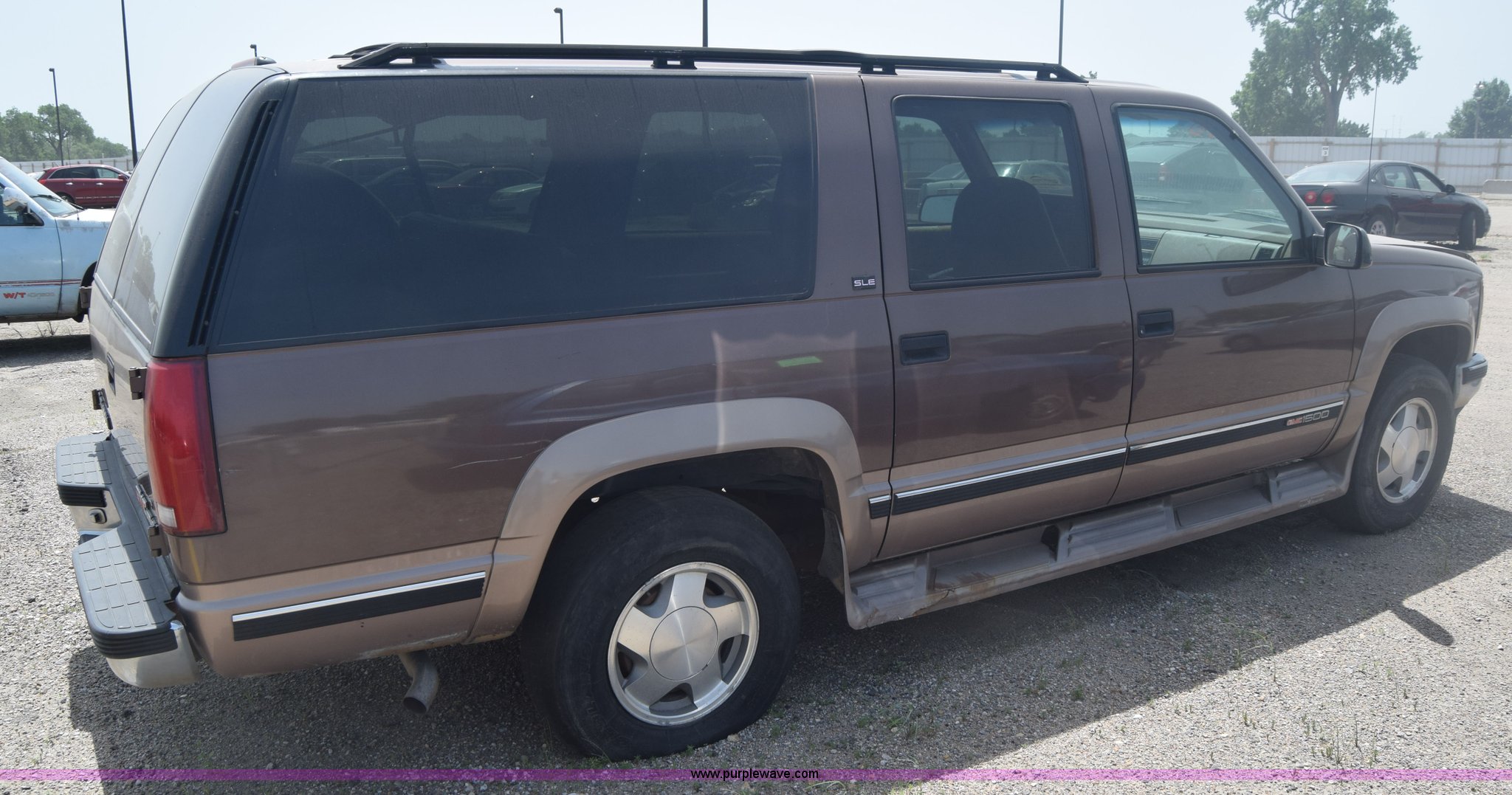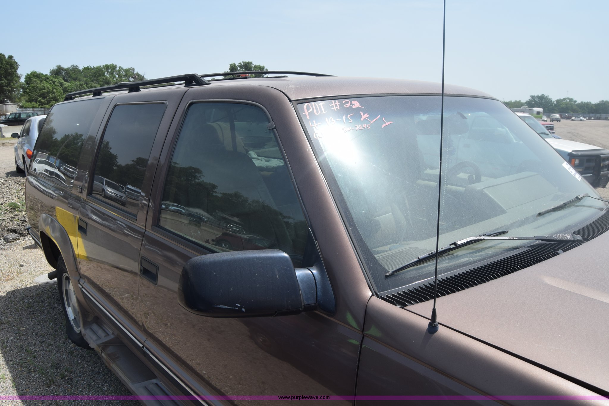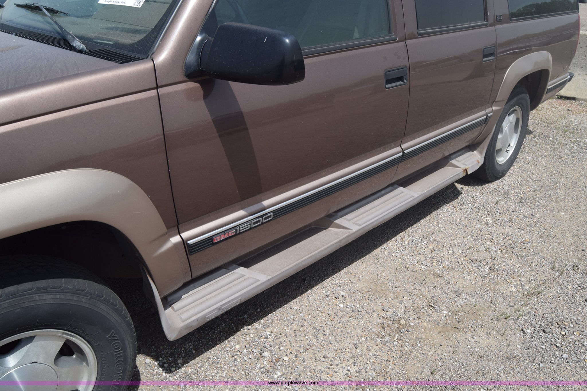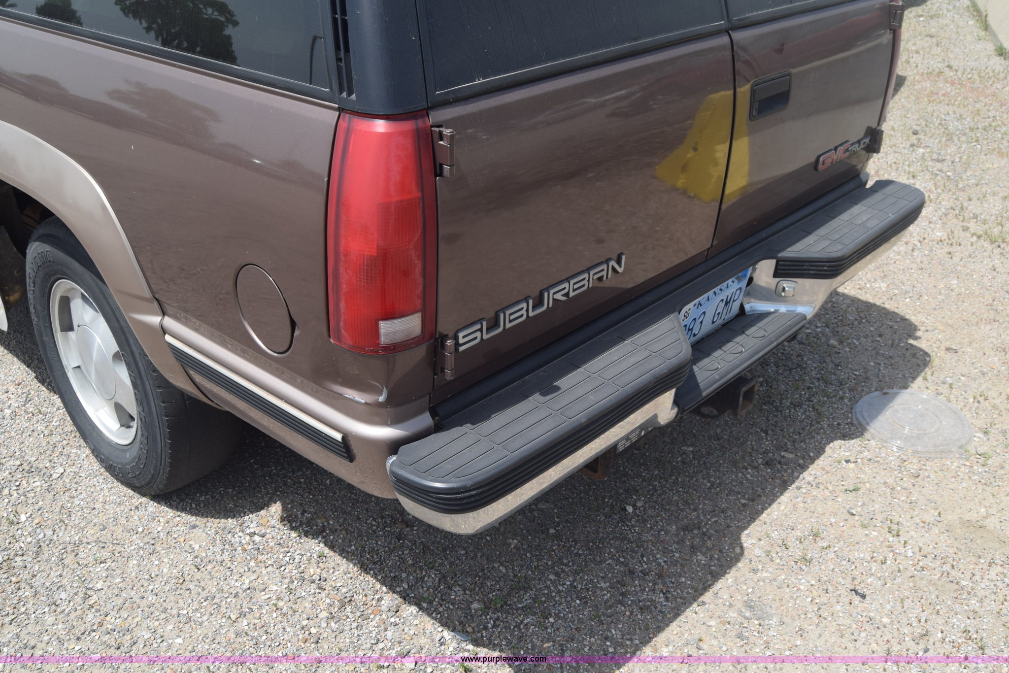 Purple Wave is selling a used Passenger Vehicle in Kansas. This item is a 1994 GMC Suburban 1500 SUV with the following: 340,141 miles on odometer, 5.7L V8 OHV 16V gas engine, Automatic transmission, Four wheel drive, AC and heat, Tilt, Cruise, AM/FM/cassette, Power windows and locks, Vinyl interior, Front tow hooks, Running boards, Receiver hitch, 245/75R16 tires, Hood will not open, Interior/exterior cosmetic damage, Dents and scratches, Rust, Case# 15C023035