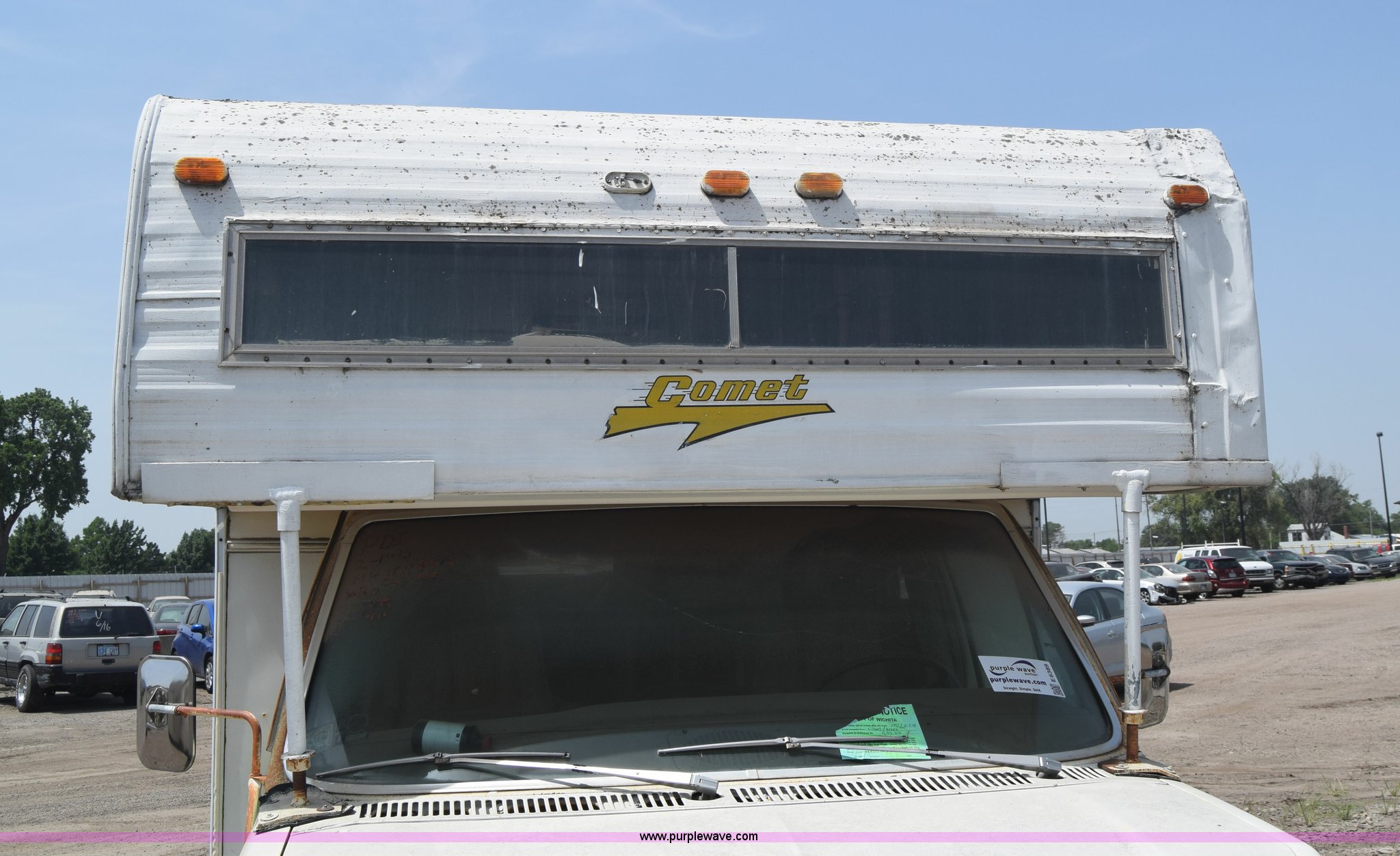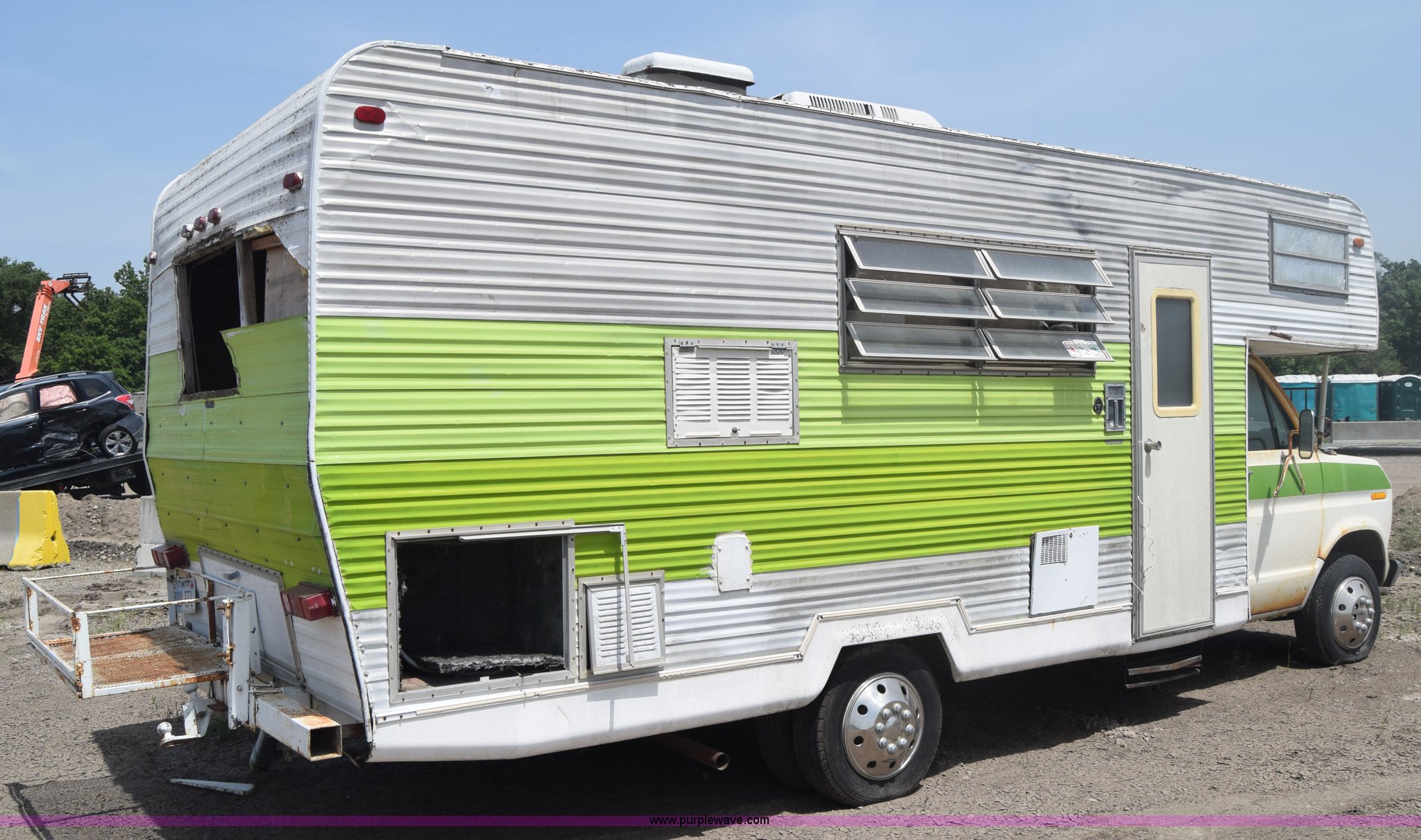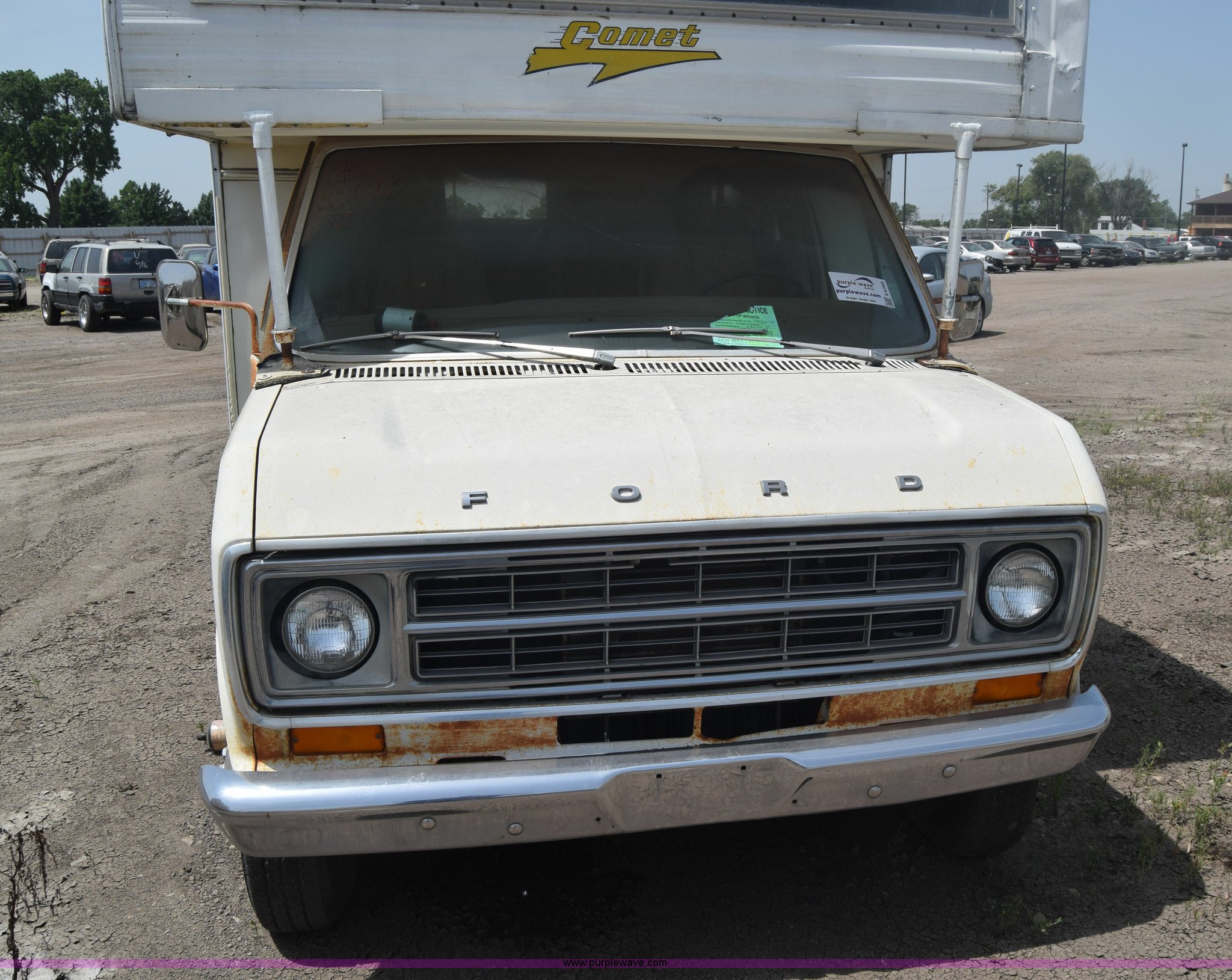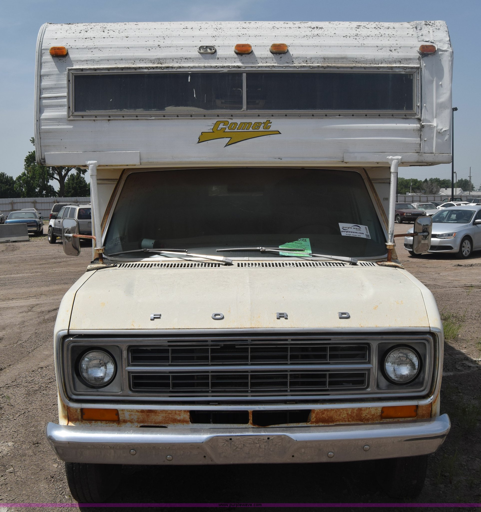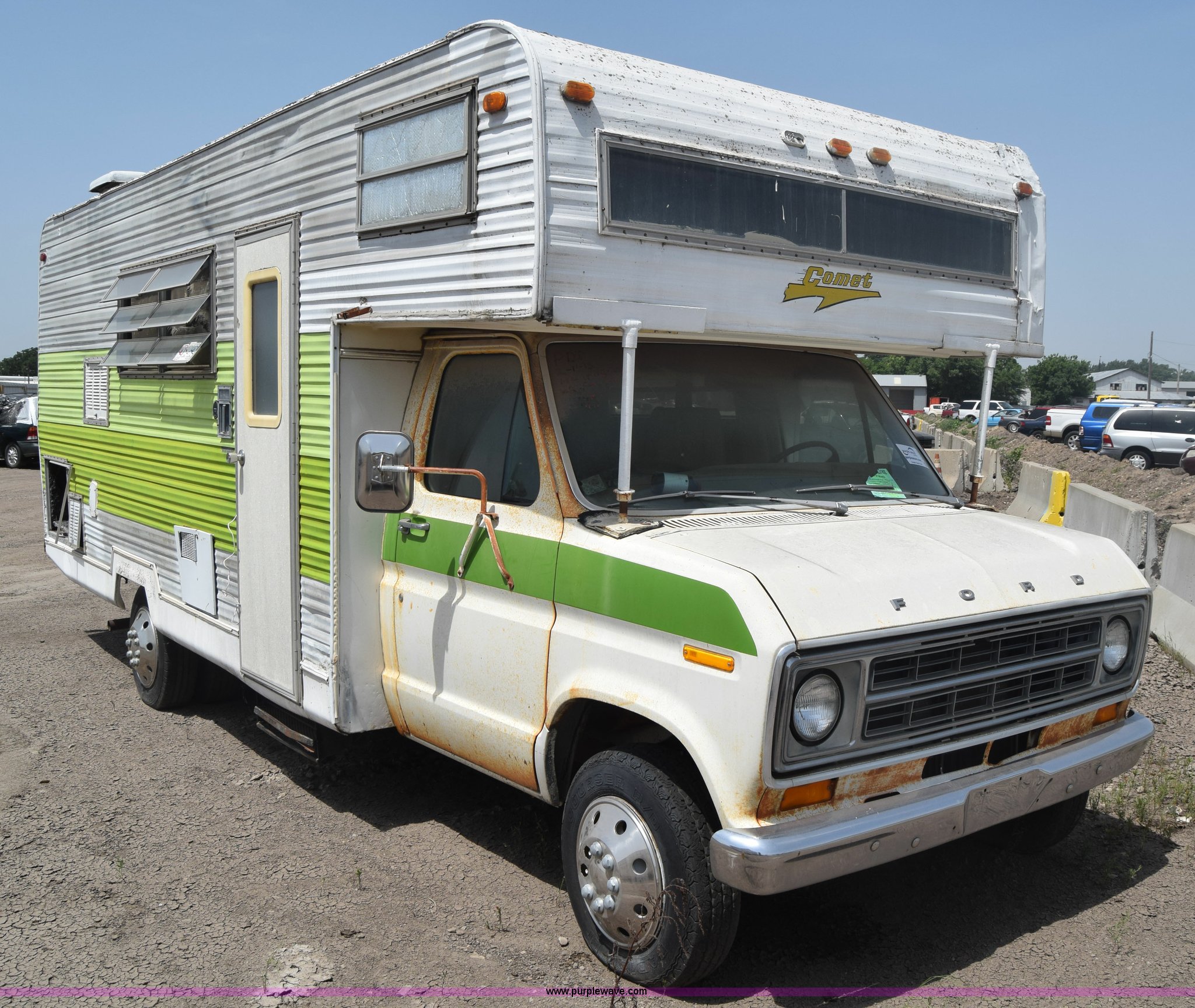 Purple Wave is selling a used RV or Camper in Kansas. This item is a 1977 Ford Comet RV with the following: 37,016 miles on odometer, Actual mileage unknown, Gas engine, Automatic transmission, Heat, AM/FM, Manual windows and locks, Cloth interior, 8.00R16.5LT tires, Interior/exterior cosmetic damage, Window broken, Rust, Case# 15C009021