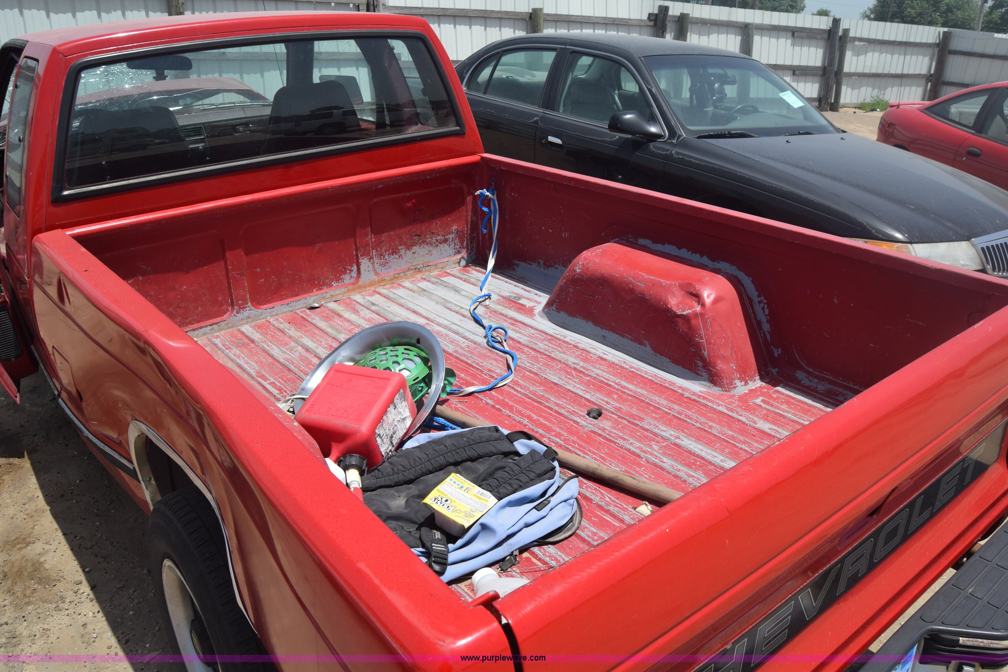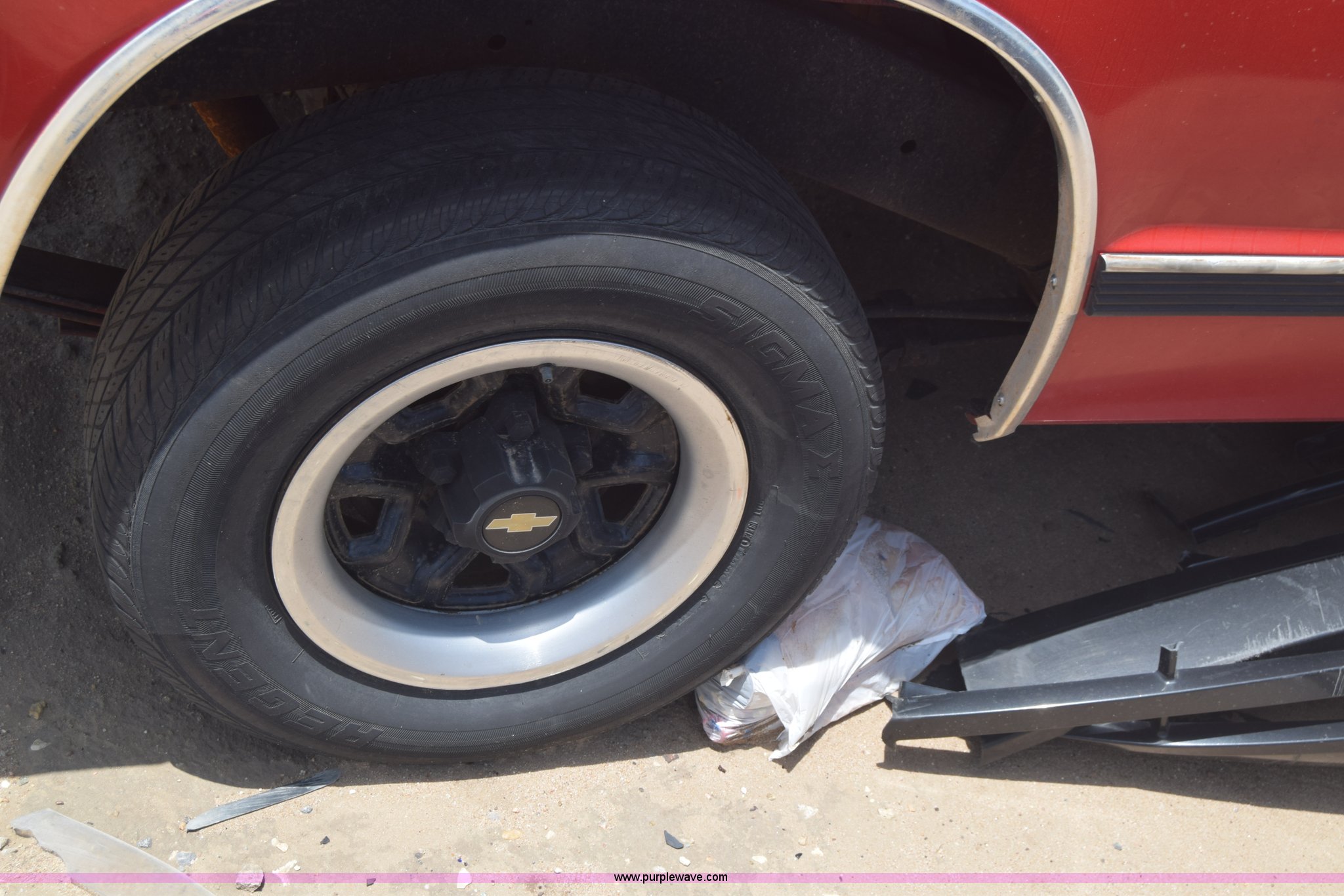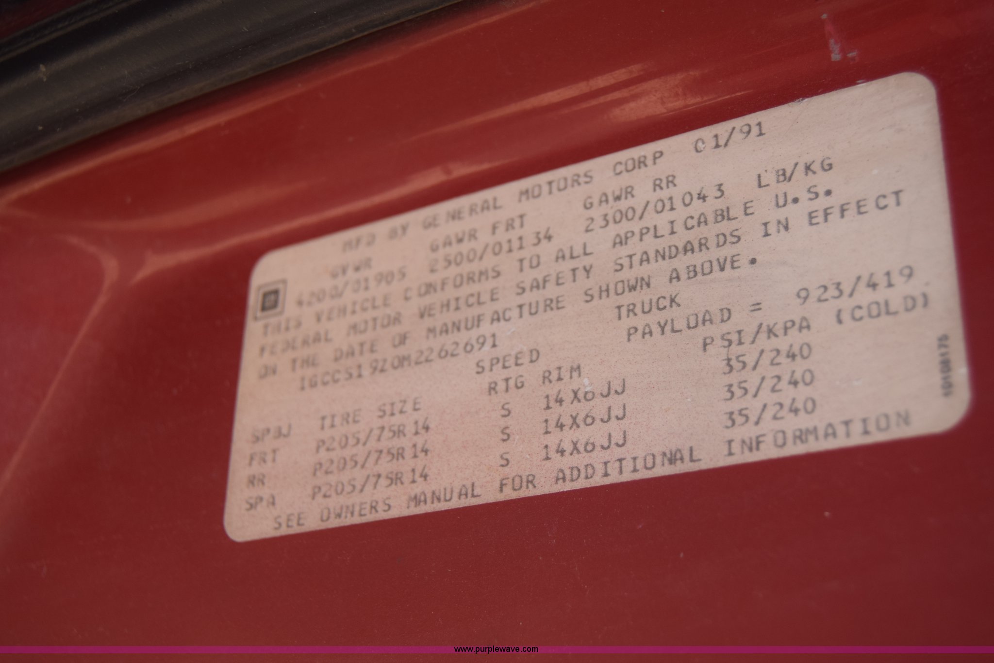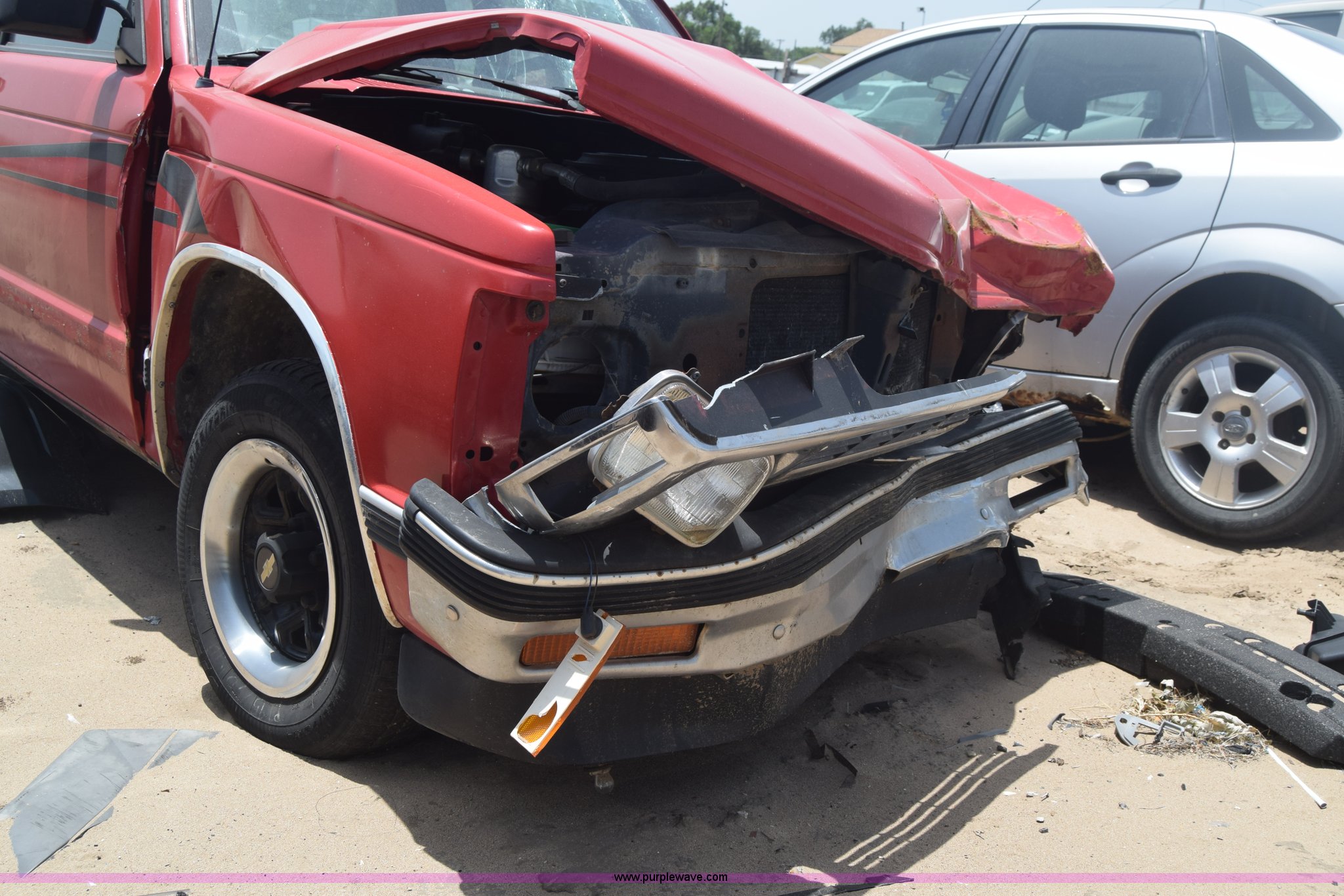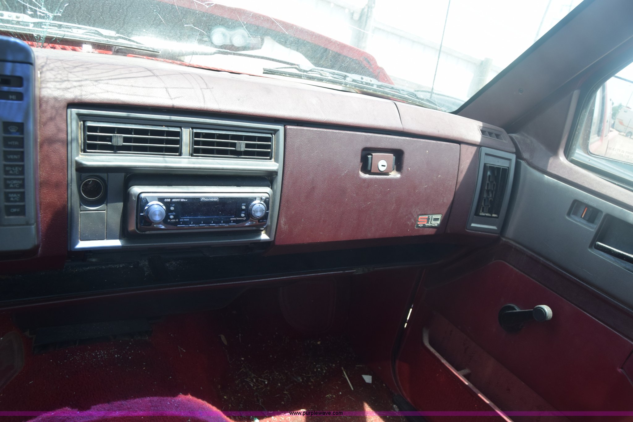 Purple Wave is selling a used Compact Pickup or Van in Kansas. This item is a 1991 Chevrolet S10 Ext. Cab pickup truck with the following: 159,601 miles on odometer, 4.3L V6 OHV 12V gas engine, Automatic transmission, AC and heat, Tilt, AM/FM, Manual windows and locks, Cloth interior, 195/70R14 tires, Interior/exterior cosmetic damage, Dents, Scratches, Front end damage, Cracked windshield, One tire damage, Driver's door will not open, Case# 15C020587