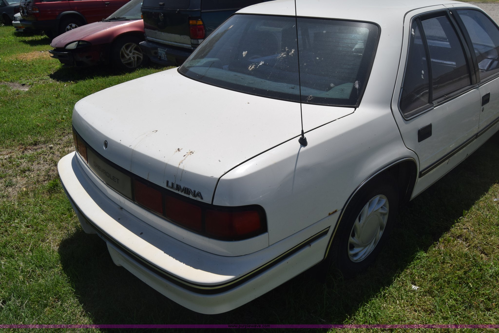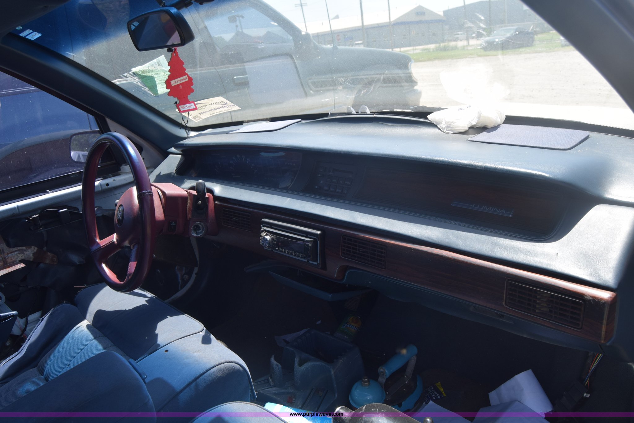 Purple Wave is selling a used Passenger Vehicle in Kansas. This item is a 1992 Chevrolet Lumina with the following: 216,793 miles on odometer, 3.1L V6 OHV 12V gas engine, Automatic transmission, AC and heat, Tilt, Cruise, AM/FM/CD, Manual windows and locks, Cloth interior, 205/70R14 tires, Interior/exterior cosmetic damage, Dents and scratches, Driver's door will not open, Driver's door panel removed, Driver's door handle missing, Headlight broken, Rust, Case# 15C19679