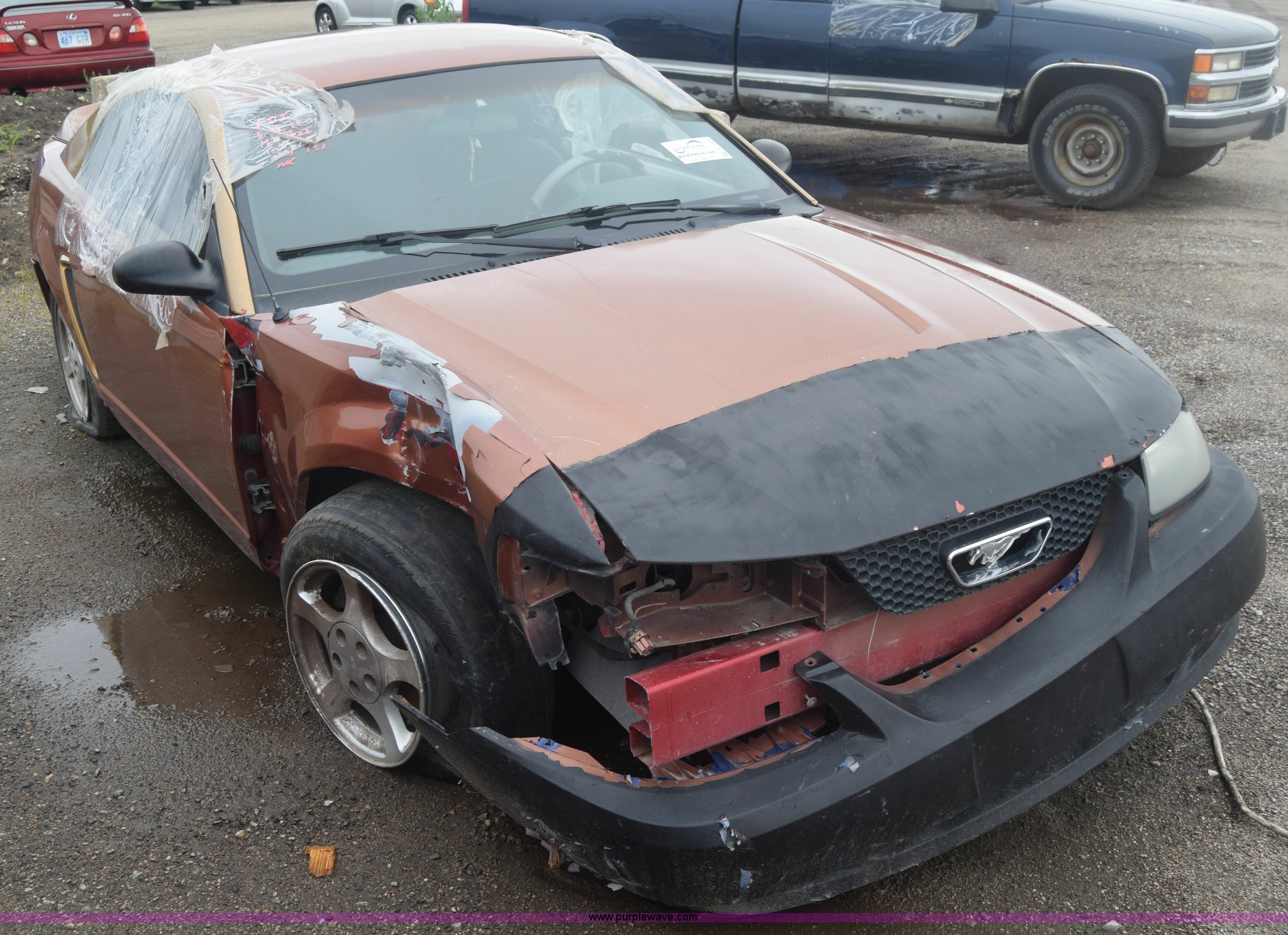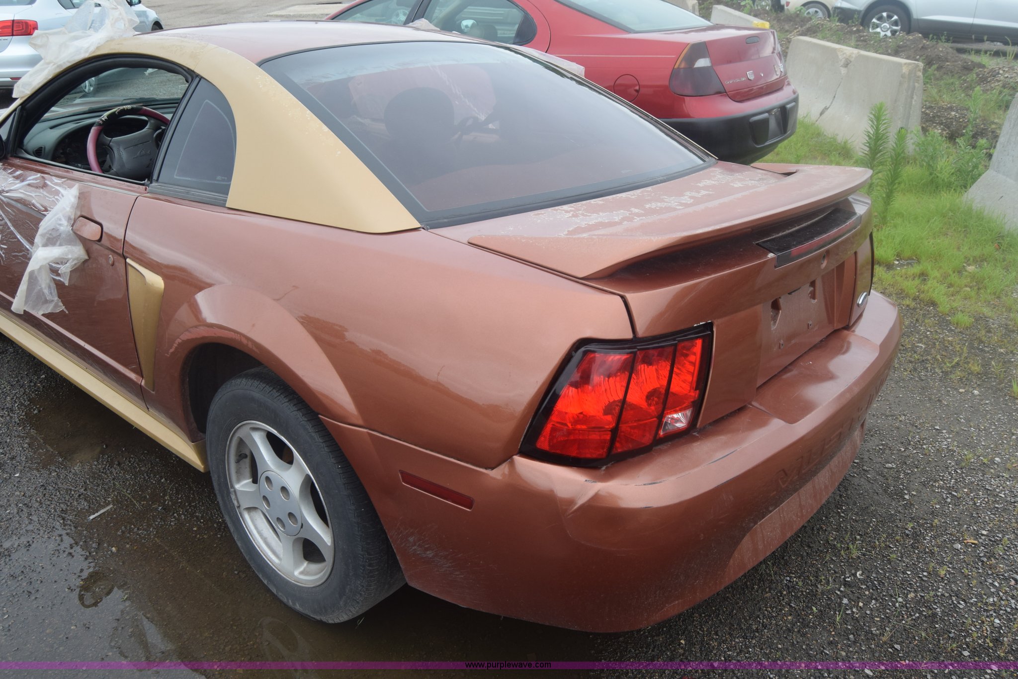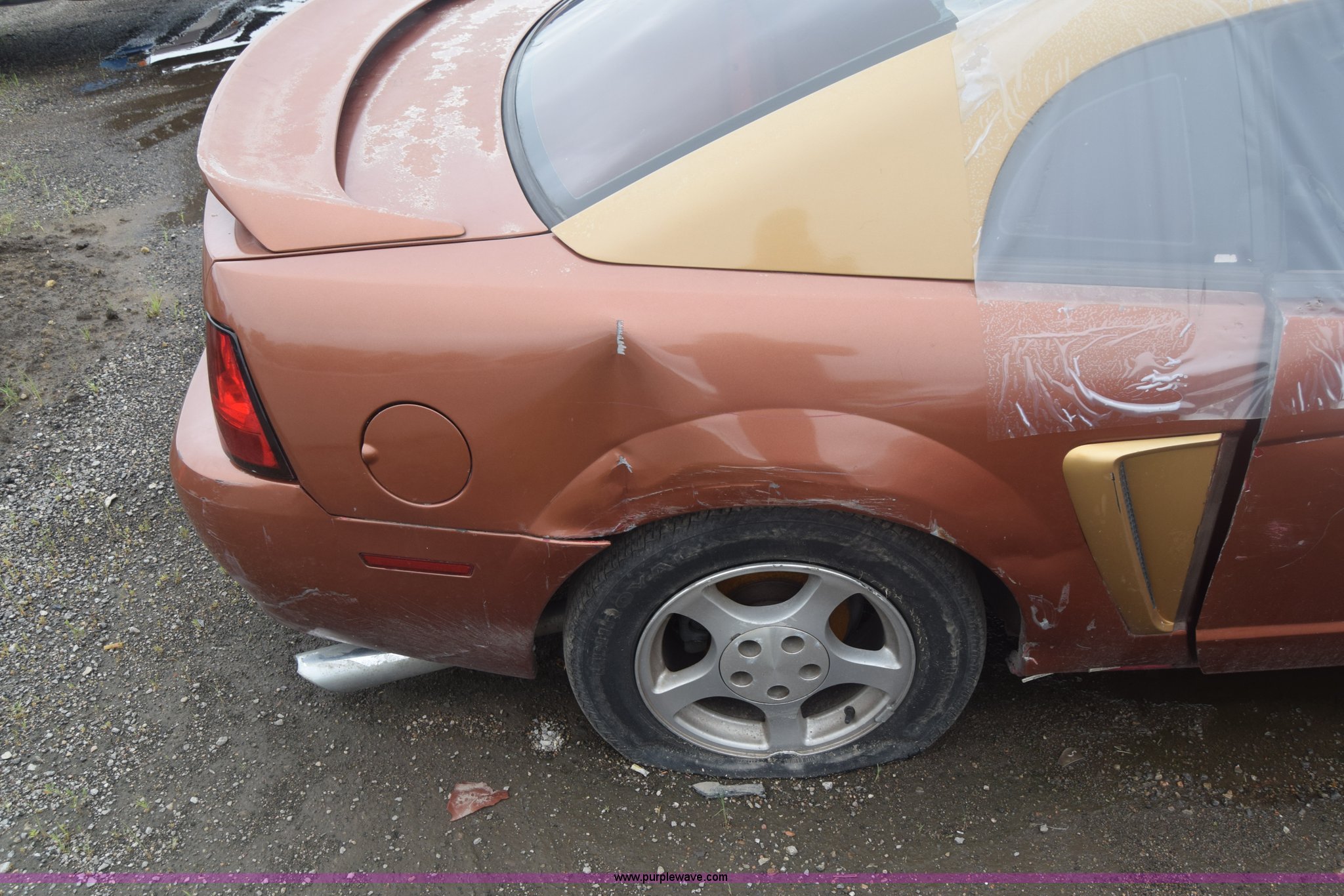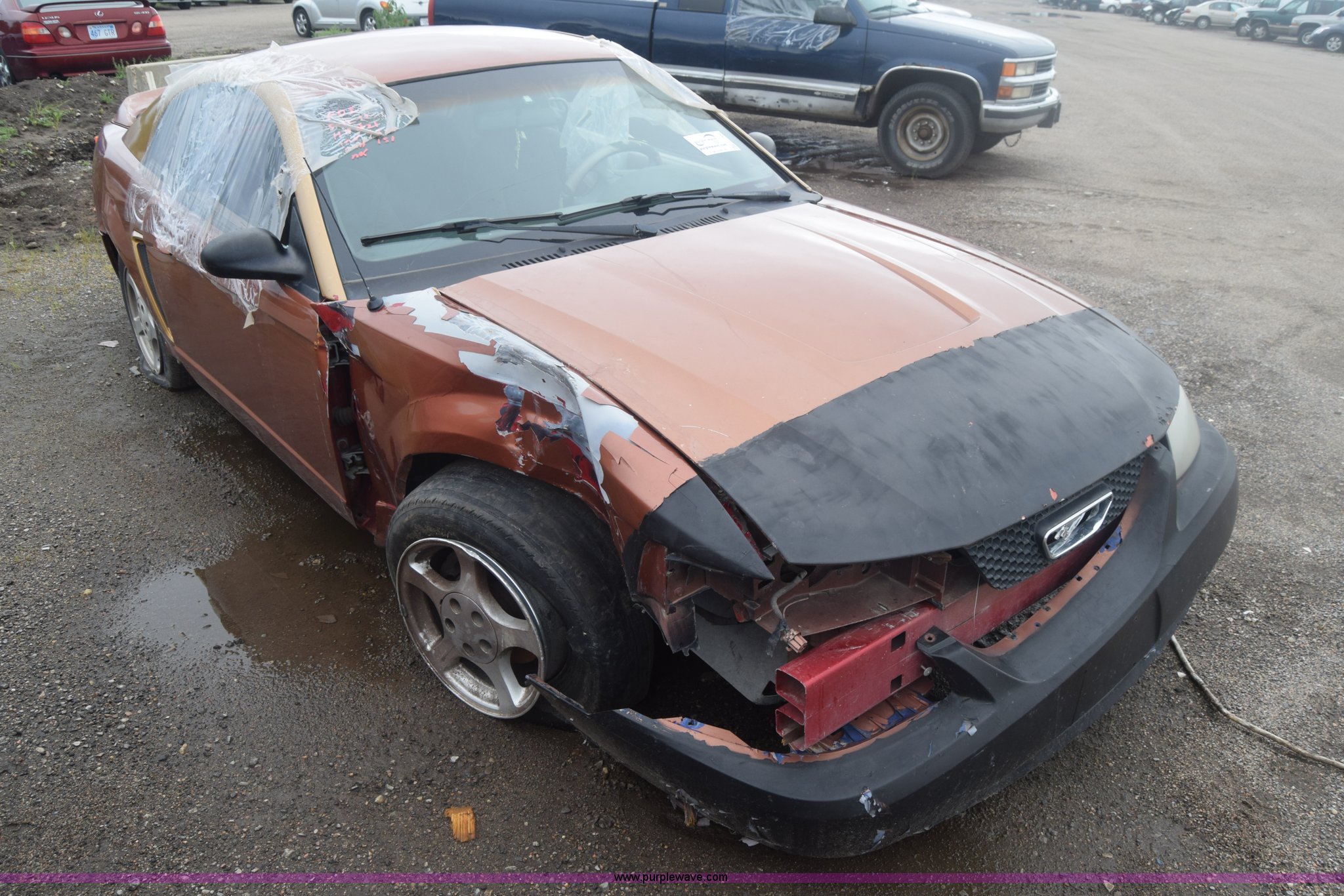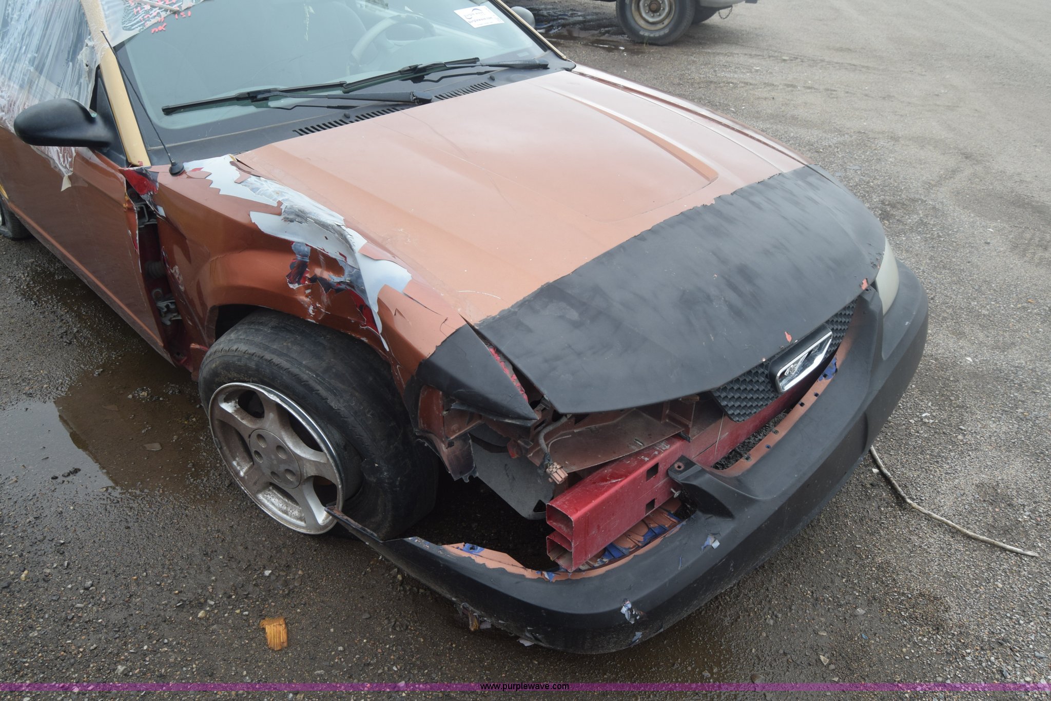 Purple Wave is selling a used Passenger Vehicle in Kansas. This item is a 1999 Ford Mustang with the following: Unknown miles on odometer, 3.8L V6 OHV 12V gas engine, Five speed manual transmission, AC and heat, Tilt, Power windows, locks, and mirrors, Cloth interior, 225/60R16 tires, Substantial body damage, Front end damage, Passenger side damaged, Interior/exterior cosmetic damage, Stereo face plate missing, Seat torn, One tire flat, One tire off wheel, Case# 15C029992