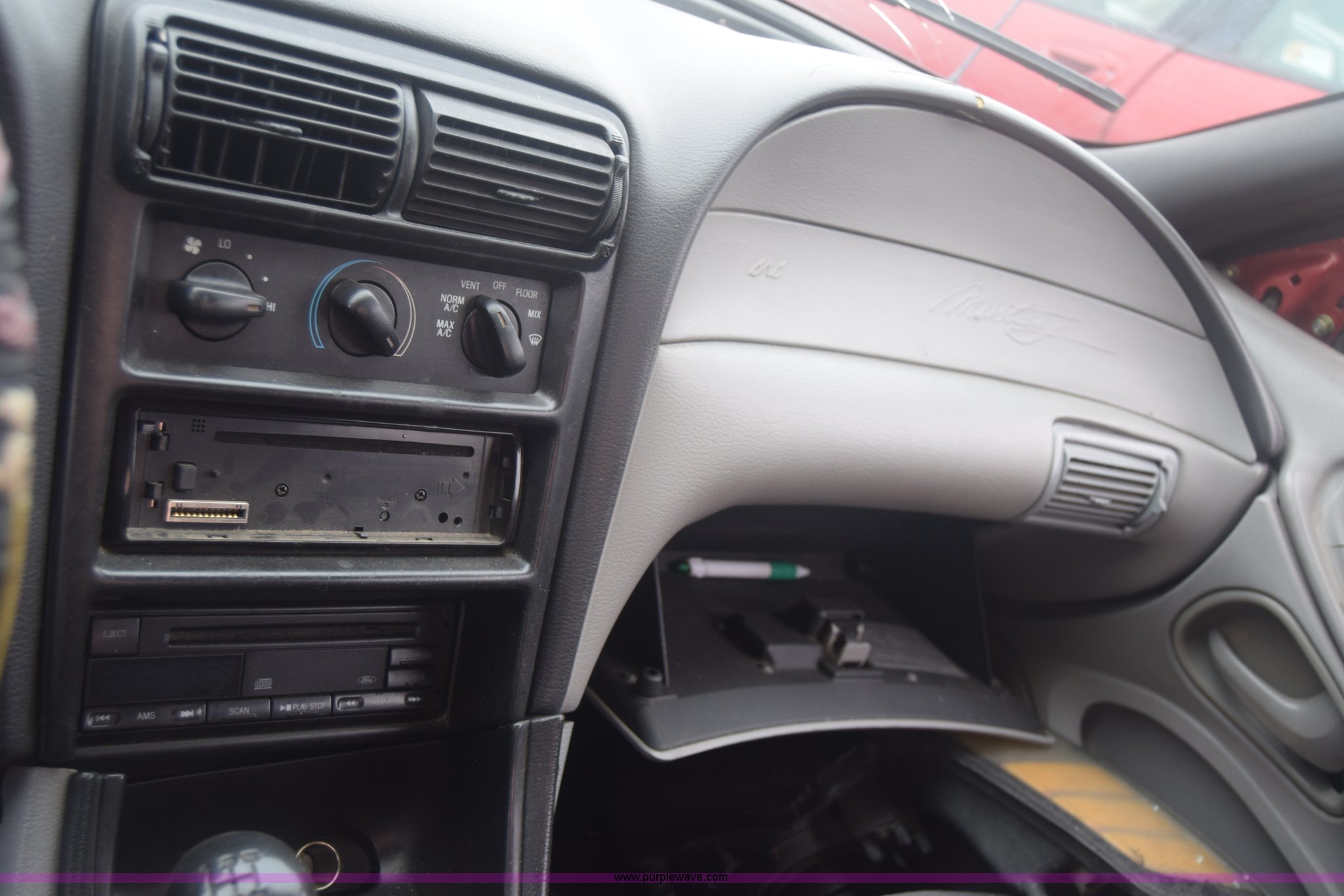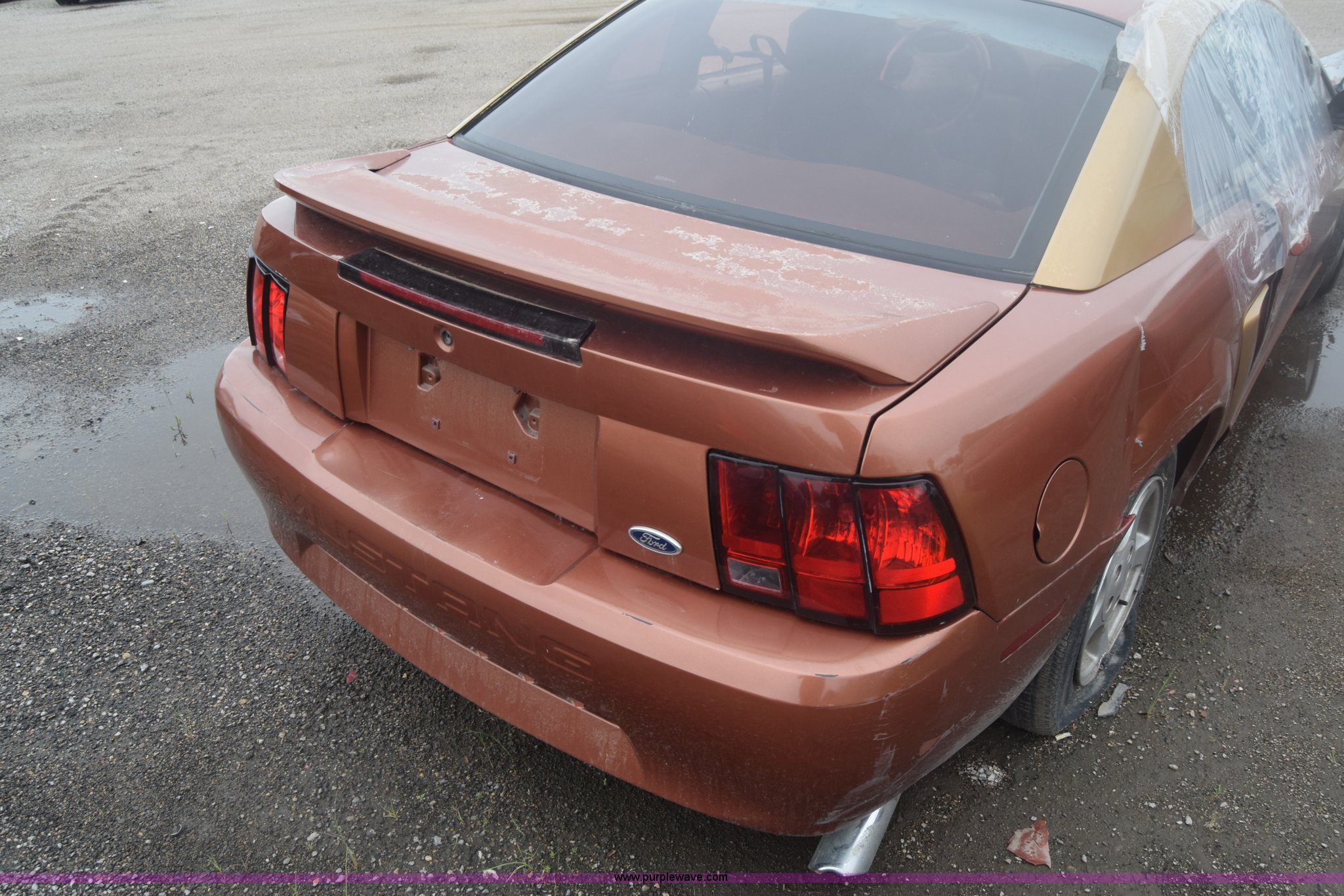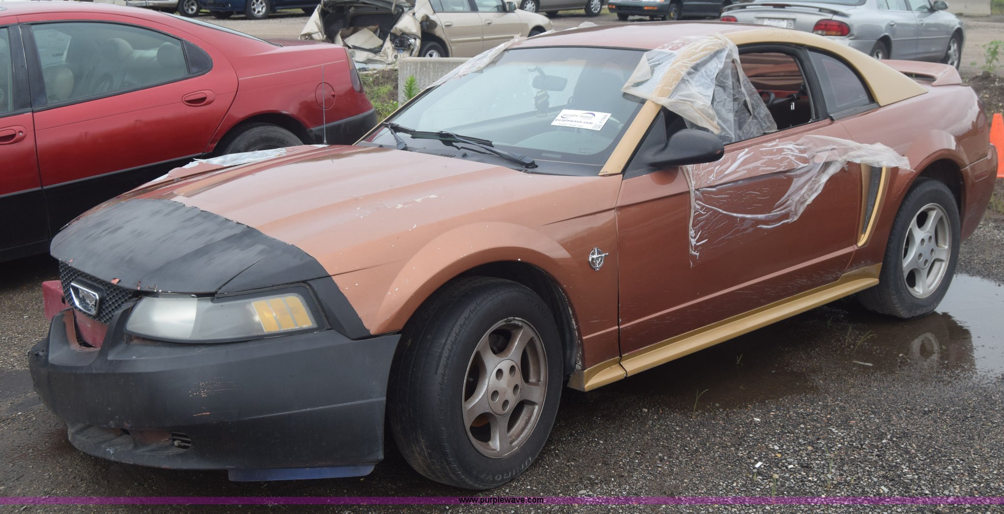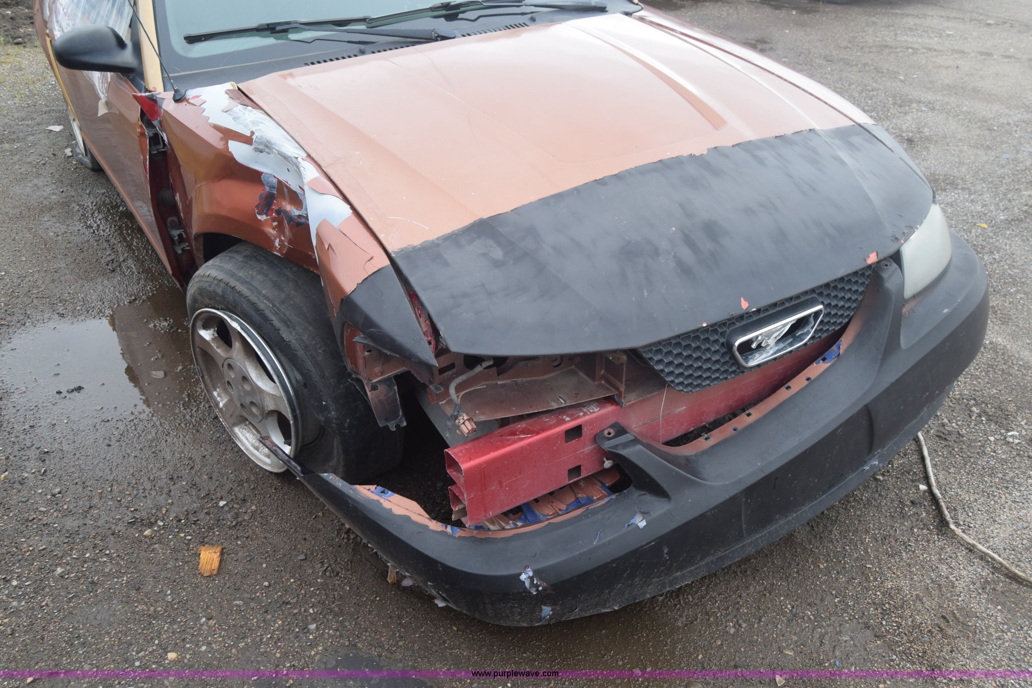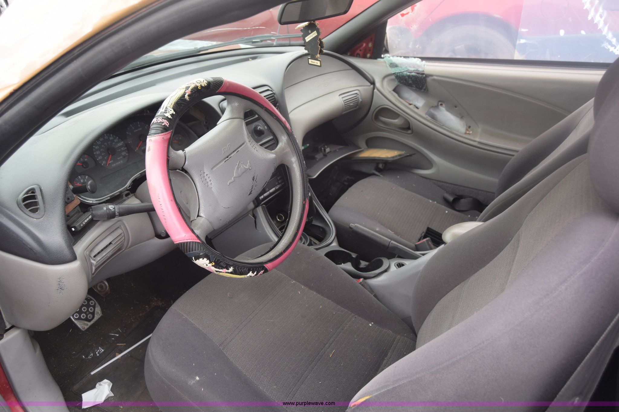Purple Wave is selling a used Passenger Vehicle in Kansas. This item is a 1999 Ford Mustang with the following: Unknown miles on odometer, 3.8L V6 OHV 12V gas engine, Five speed manual transmission, AC and heat, Tilt, Power windows, locks, and mirrors, Cloth interior, 225/60R16 tires, Substantial body damage, Front end damage, Passenger side damaged, Interior/exterior cosmetic damage, Stereo face plate missing, Seat torn, One tire flat, One tire off wheel, Case# 15C029992