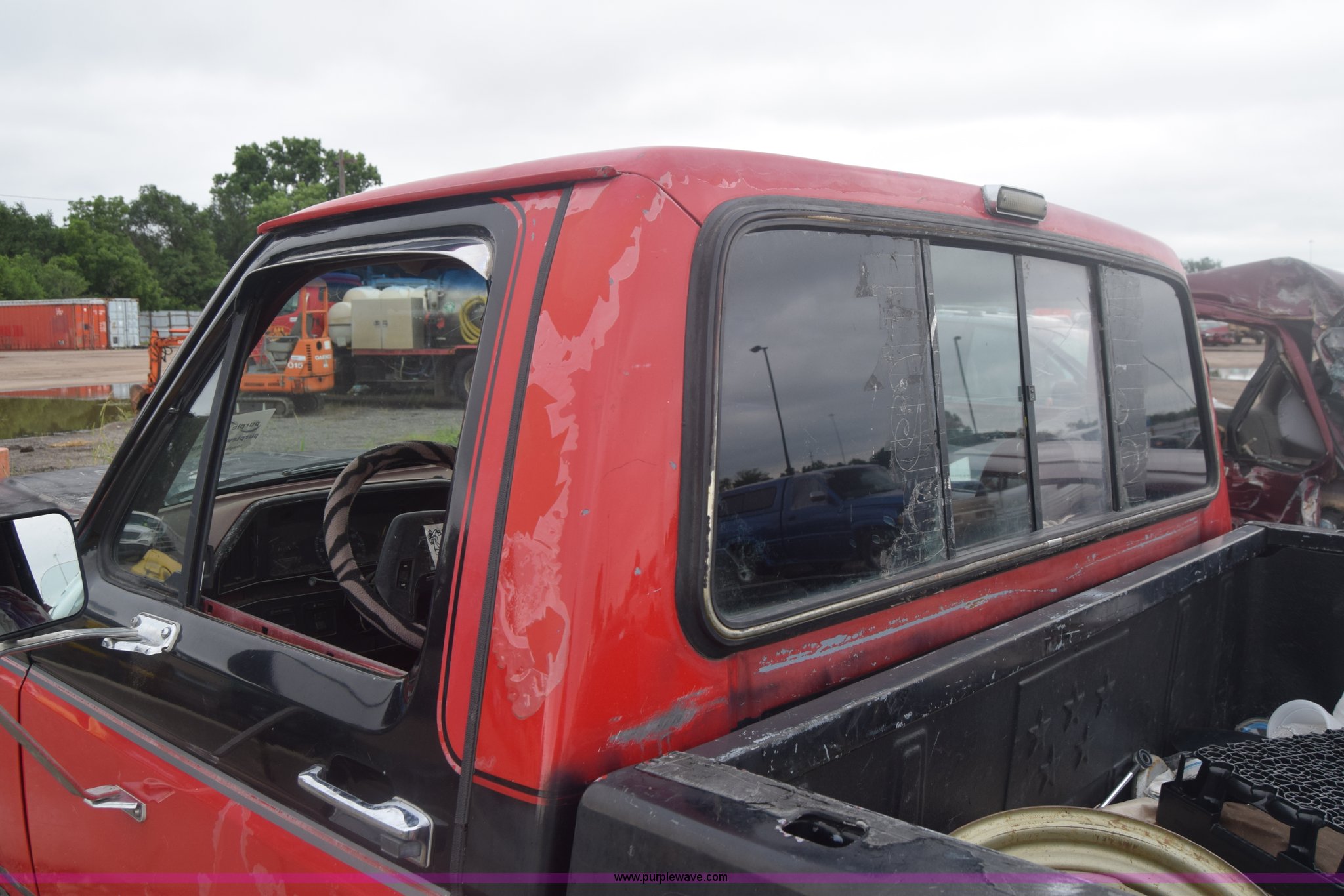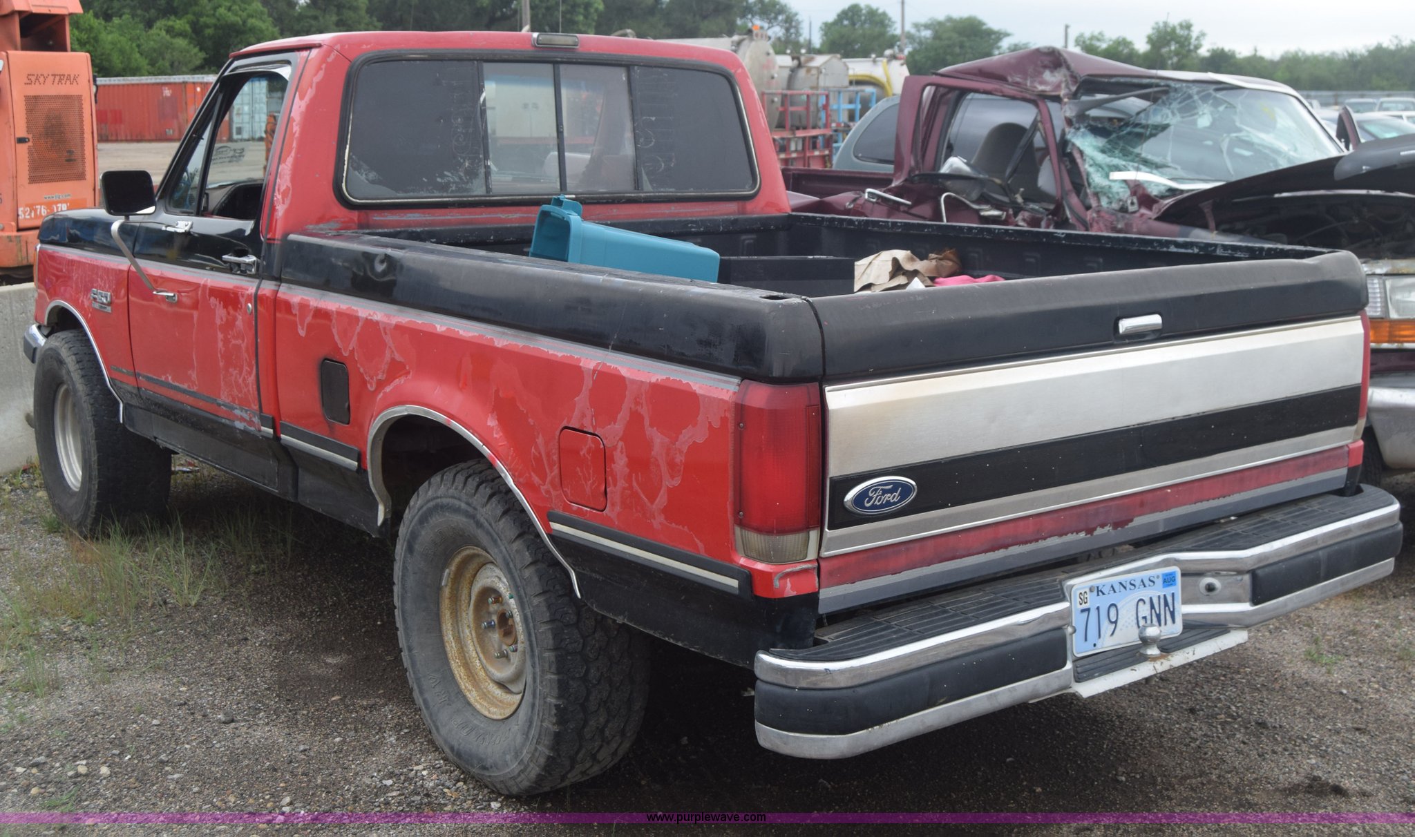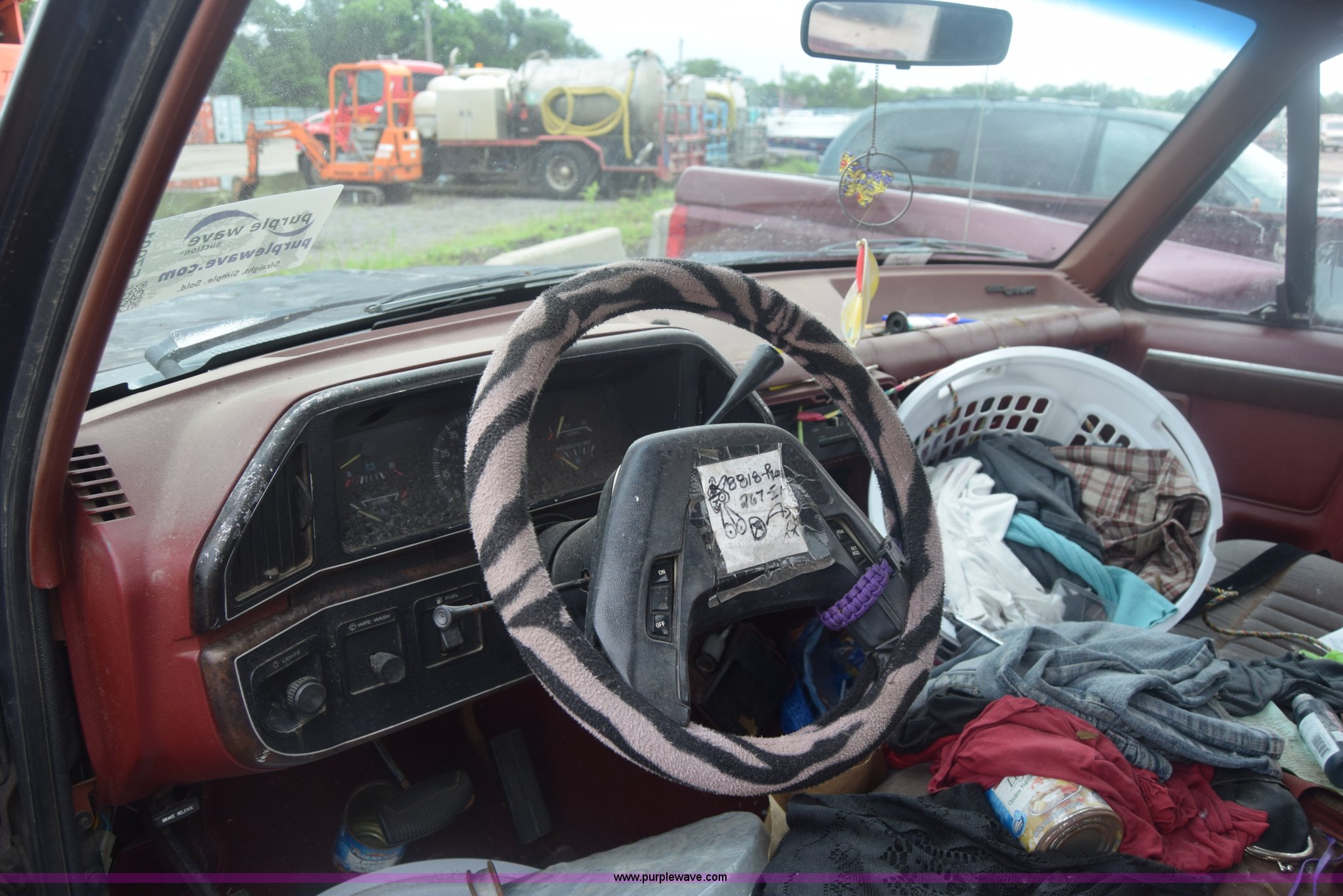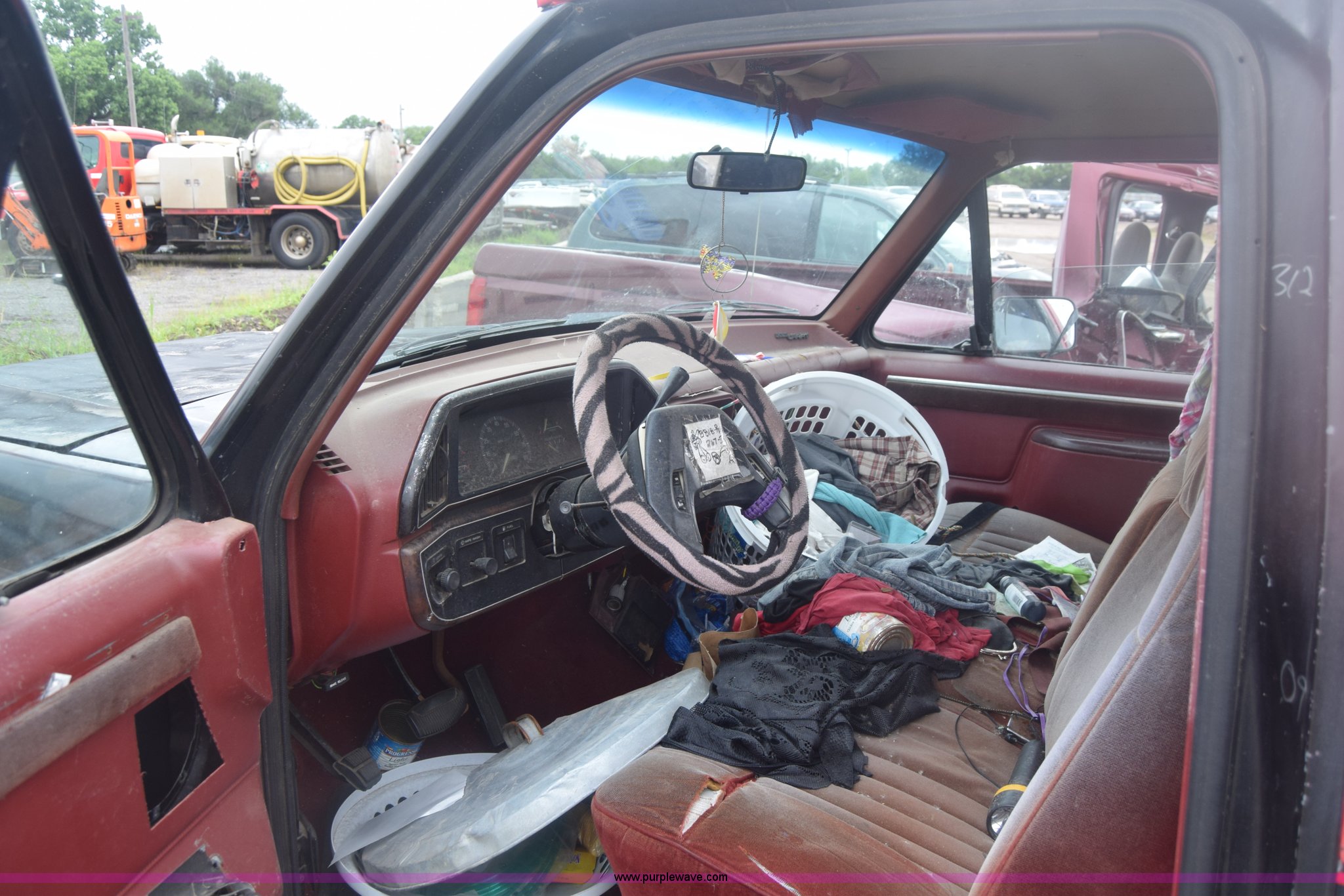 Purple Wave is selling a used 1/2 Ton Pickup or Van in Kansas. This item is a 1987 Ford F150 pickup truck with the following: 9,680 miles on odometer, Actual mileage unknown, 4.9L L6 OHV 12V gas engine, Automatic transmission, AC and heat, Cruise, Power windows and locks, Cloth interior, Receiver hitch, 33 x 10.50R15LT tires, Interior/exterior cosmetic damage, Dents and scratches, Paint faded, Seat torn, Stereo missing, Mirror damaged, Power windows and lock controls damaged, Case# 15C029665