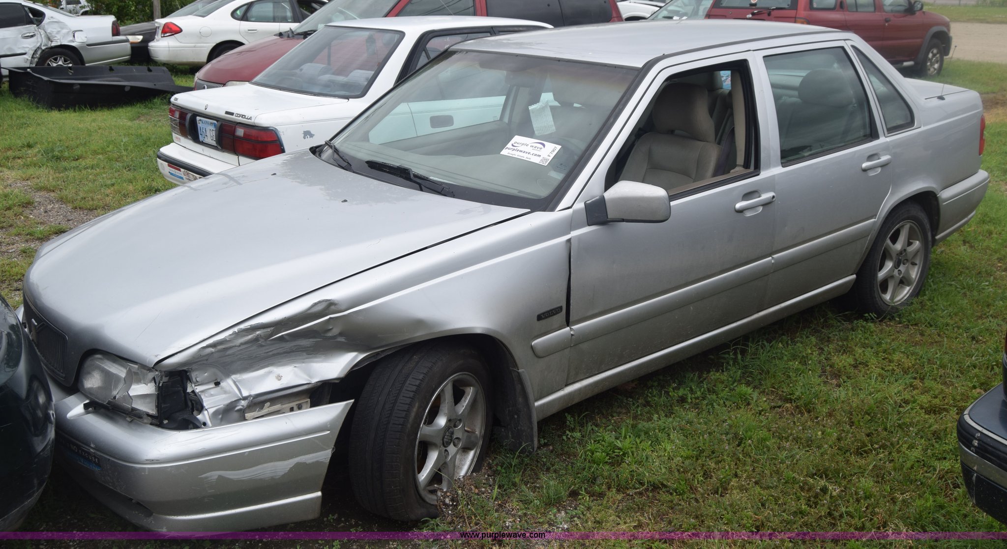 Purple Wave is selling a used Passenger Vehicle in Kansas. This item is a 1998 Volvo S70 with the following: Unknown miles on odometer, 2.4L L5 DOHC 20V gas engine, Automatic transmission, AC and heat, Tilt, Cruise, AM/FM/CD, Power windows, locks, mirrors, and seats, Vinyl interior, 195/60R15 tires, Hood will not open, Front driver's fender damaged, Interior/exterior cosmetic damage, Dents and scratches, Taillight damaged, Case# 15C28434