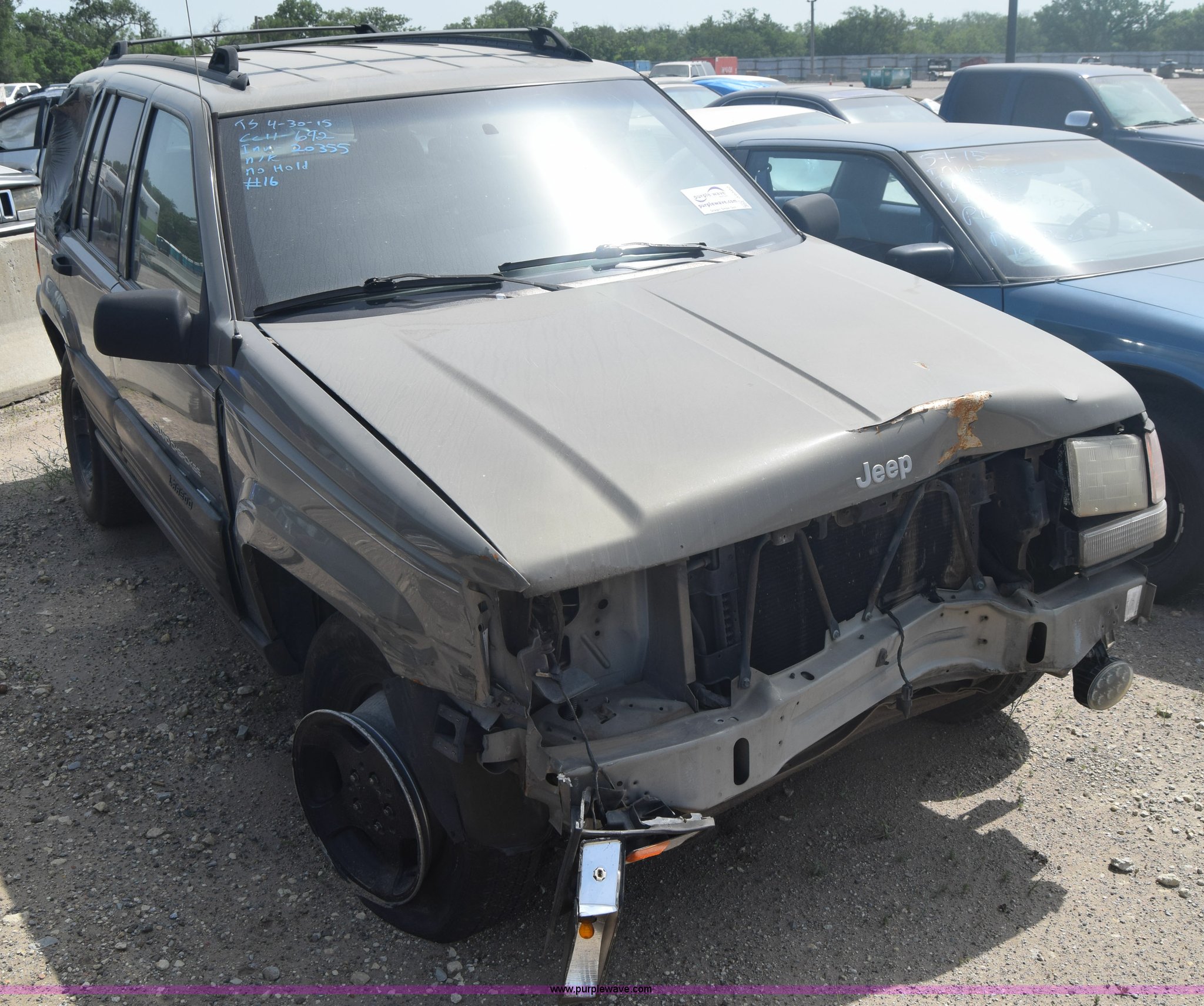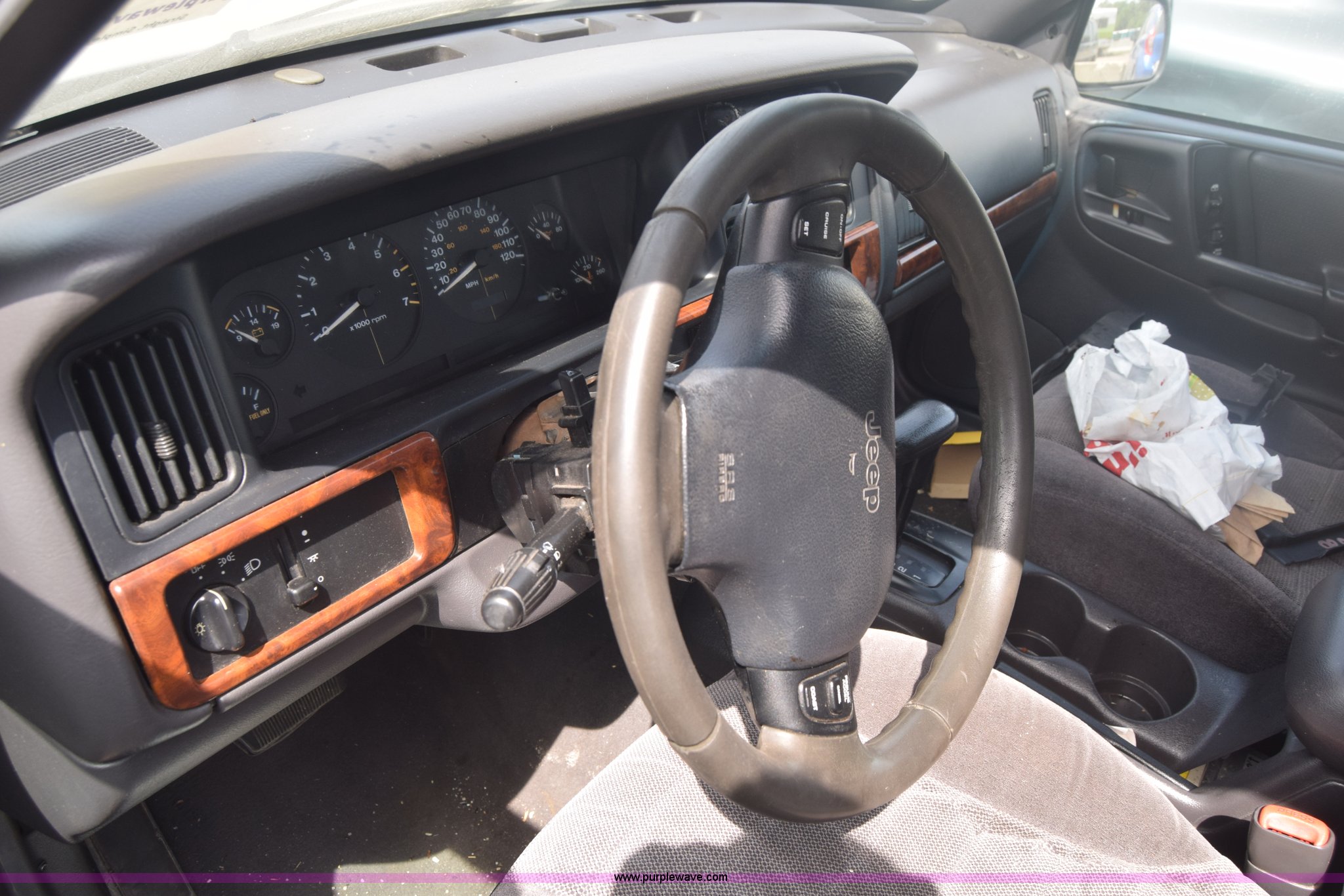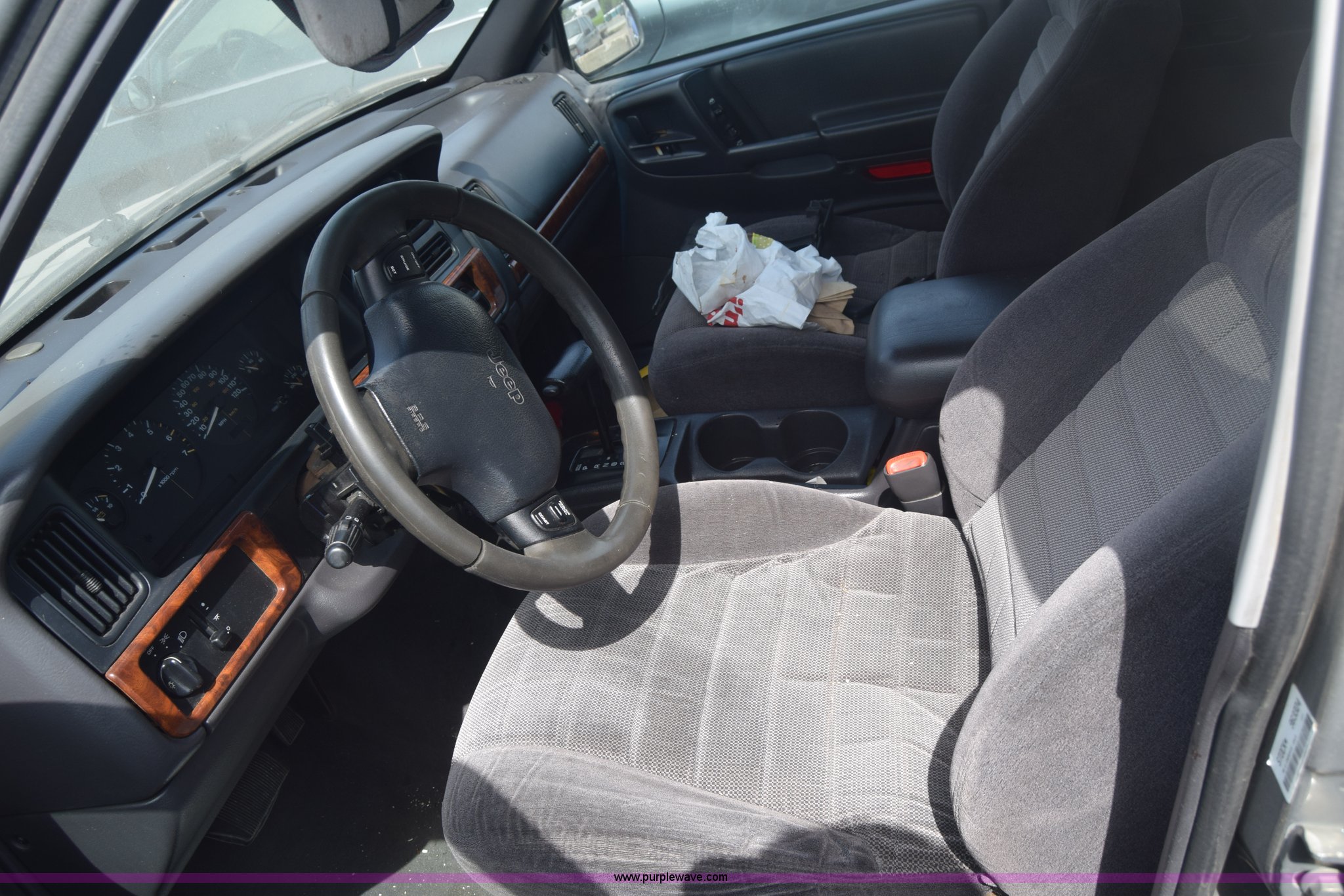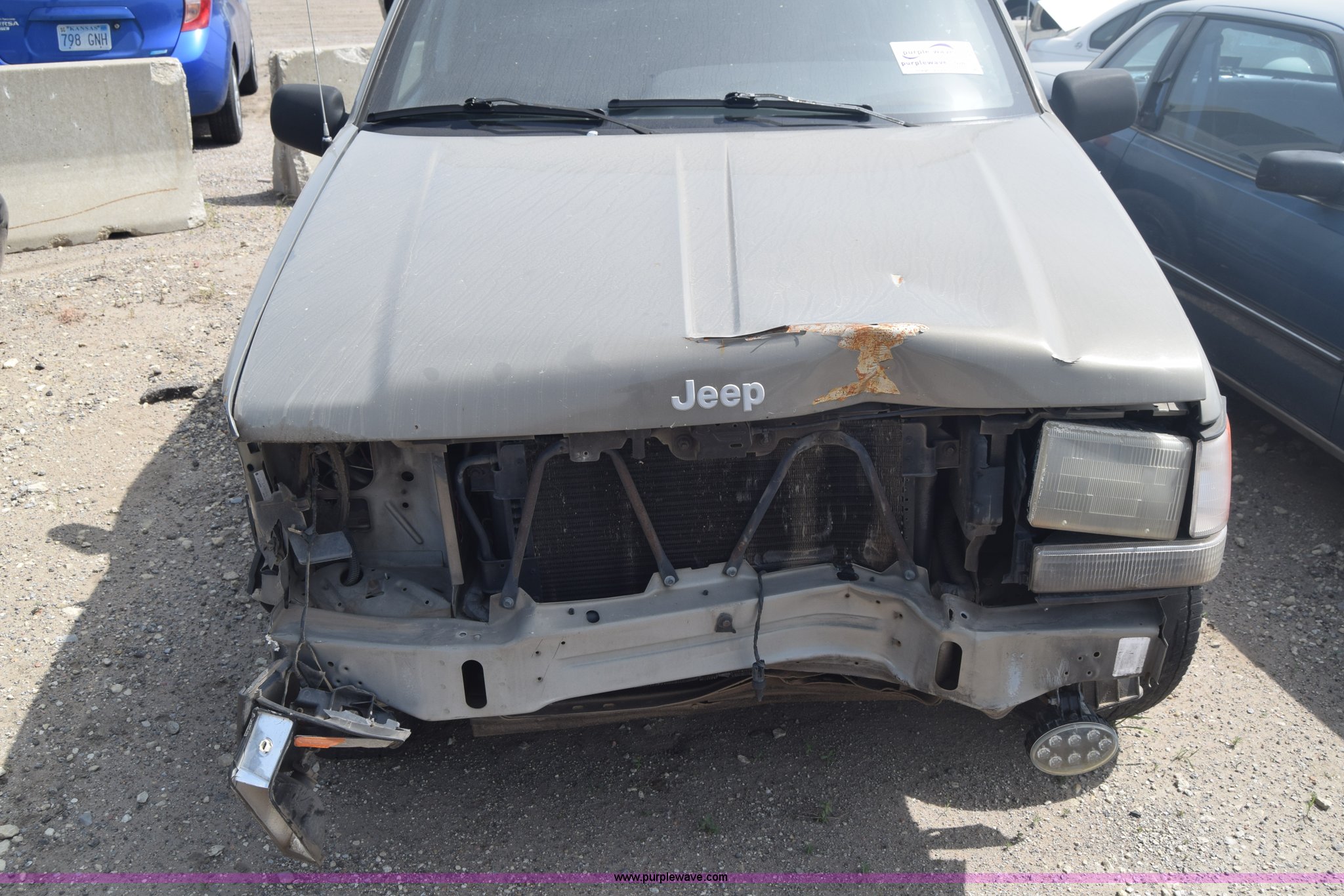 Purple Wave is selling a used Passenger Vehicle in Kansas. This item is a 1998 Jeep Grand Cherokee TSi SUV with the following: Unknown miles on odometer, 4.0L L6 OHV 12V gas engine, Automatic transmission, AC and heat, Tilt, Cruise, Power windows, locks, and mirrors, Cloth interior, 225/75R15 tires, Interior/exterior cosmetic damage, Front end damage, Front bumper missing, Interior/exterior cosmetic damage, Dents, Scratches, Rust, One tire off wheel, Stereo removed, Window broken, Headlight broken, Case# 15C027073