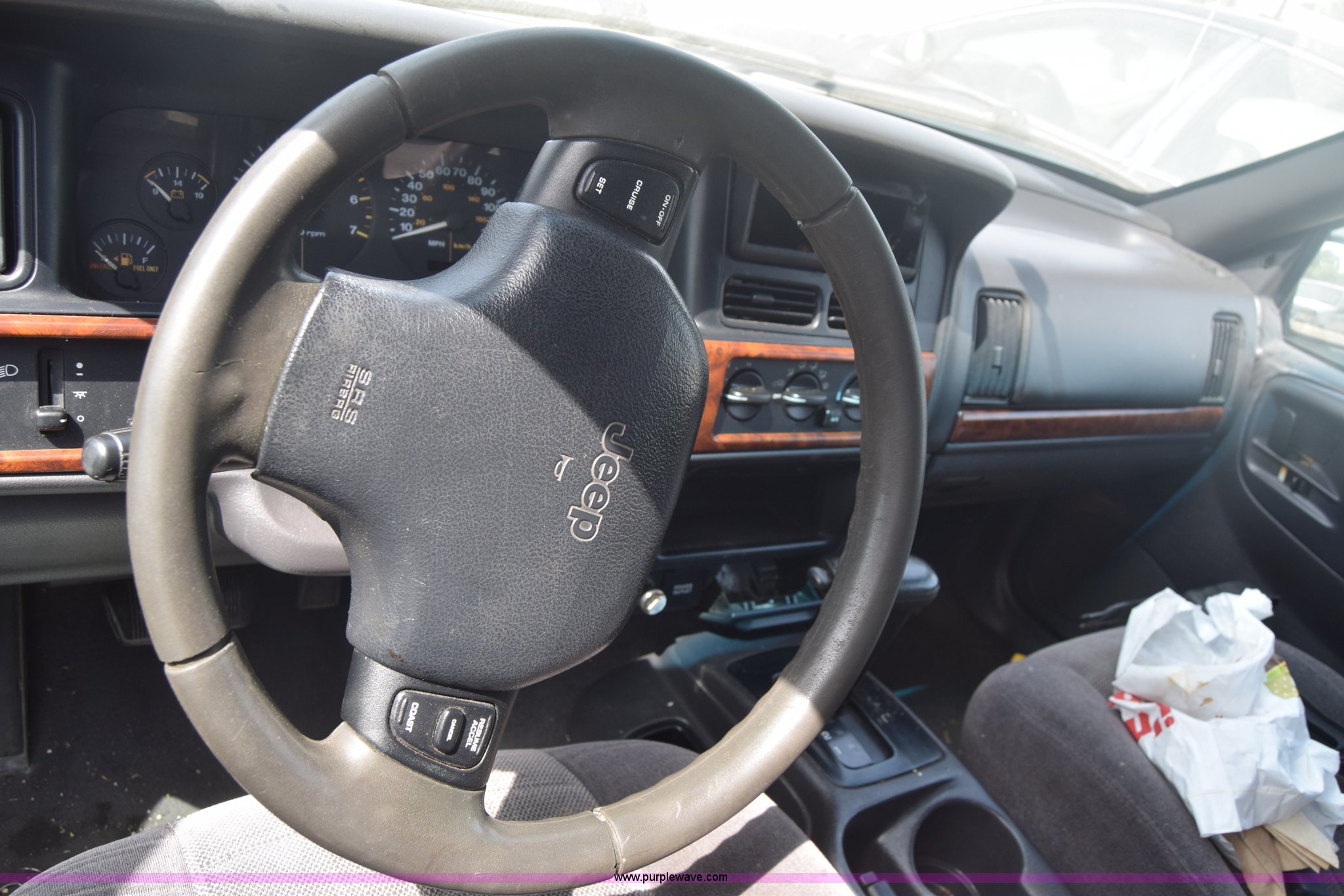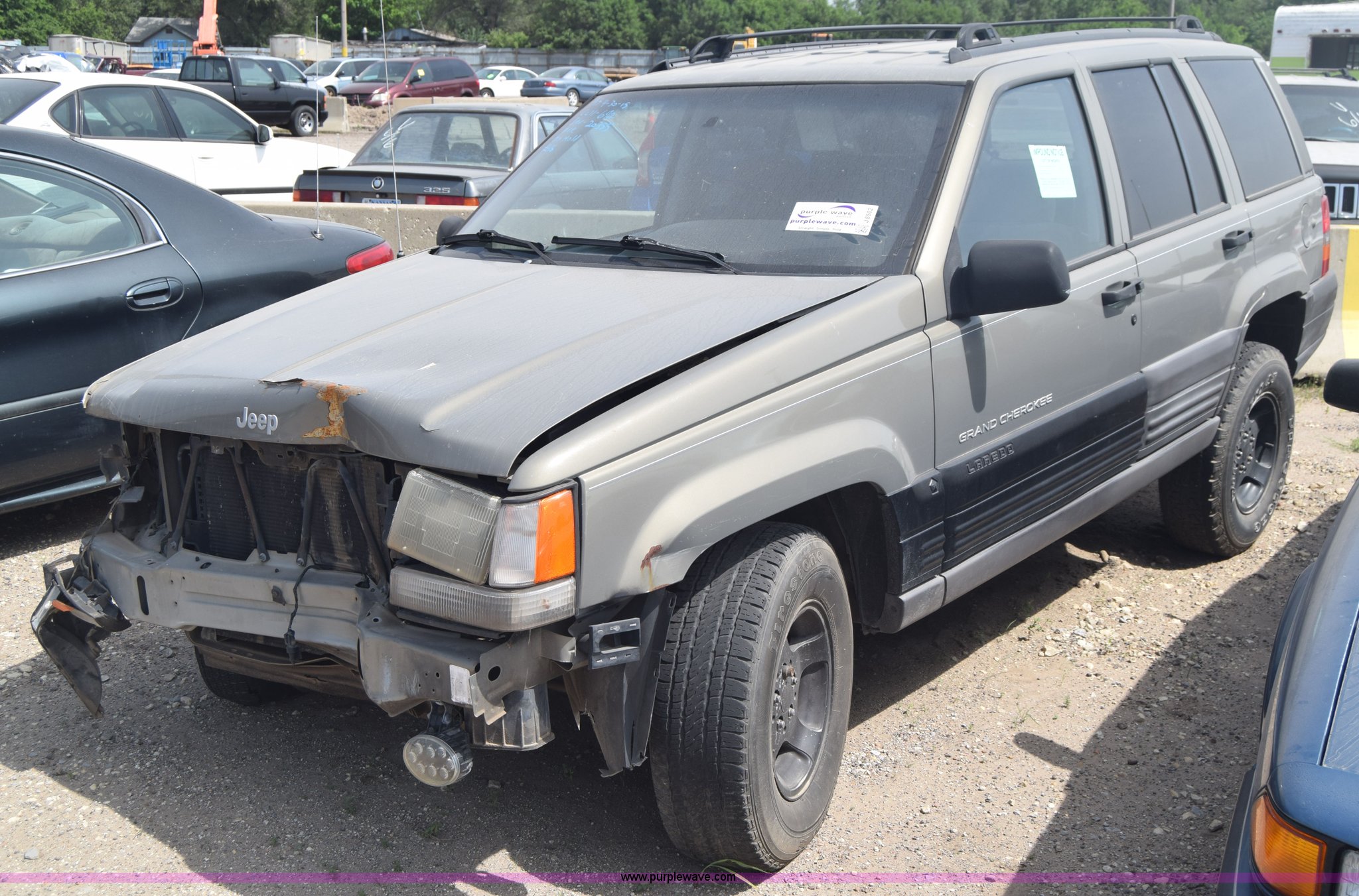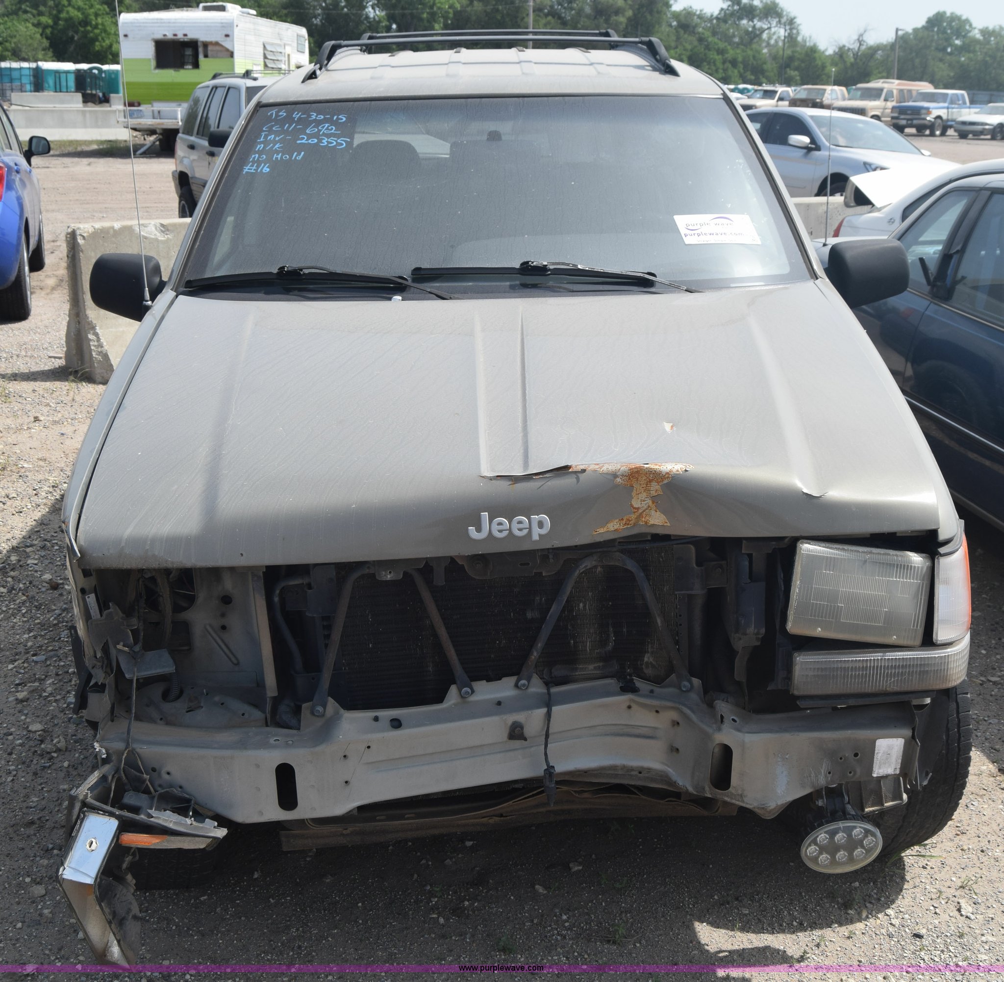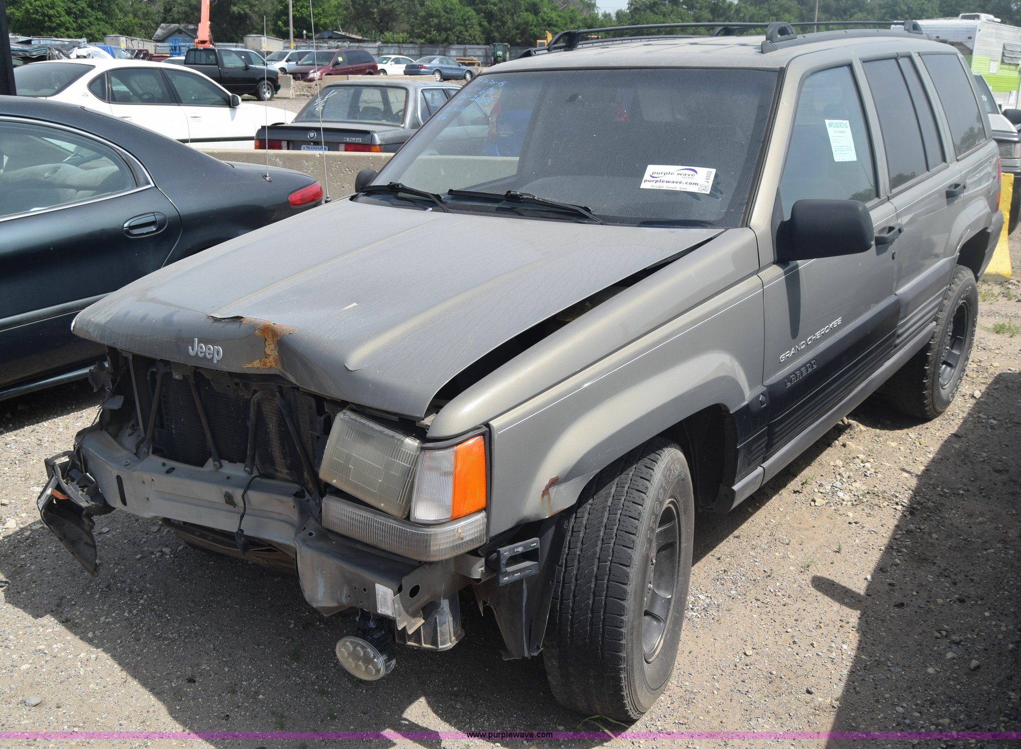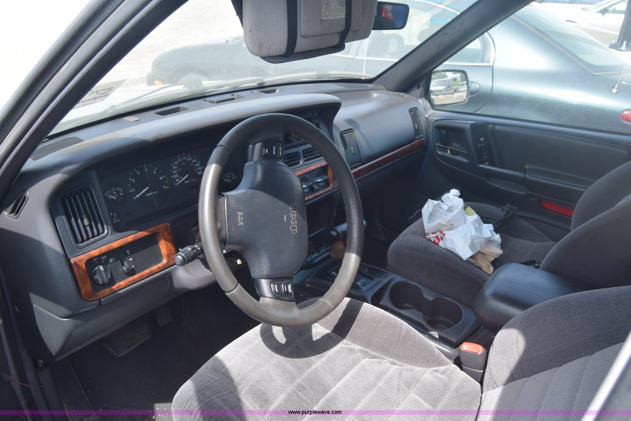 Purple Wave is selling a used Passenger Vehicle in Kansas. This item is a 1998 Jeep Grand Cherokee TSi SUV with the following: Unknown miles on odometer, 4.0L L6 OHV 12V gas engine, Automatic transmission, AC and heat, Tilt, Cruise, Power windows, locks, and mirrors, Cloth interior, 225/75R15 tires, Interior/exterior cosmetic damage, Front end damage, Front bumper missing, Interior/exterior cosmetic damage, Dents, Scratches, Rust, One tire off wheel, Stereo removed, Window broken, Headlight broken, Case# 15C027073
