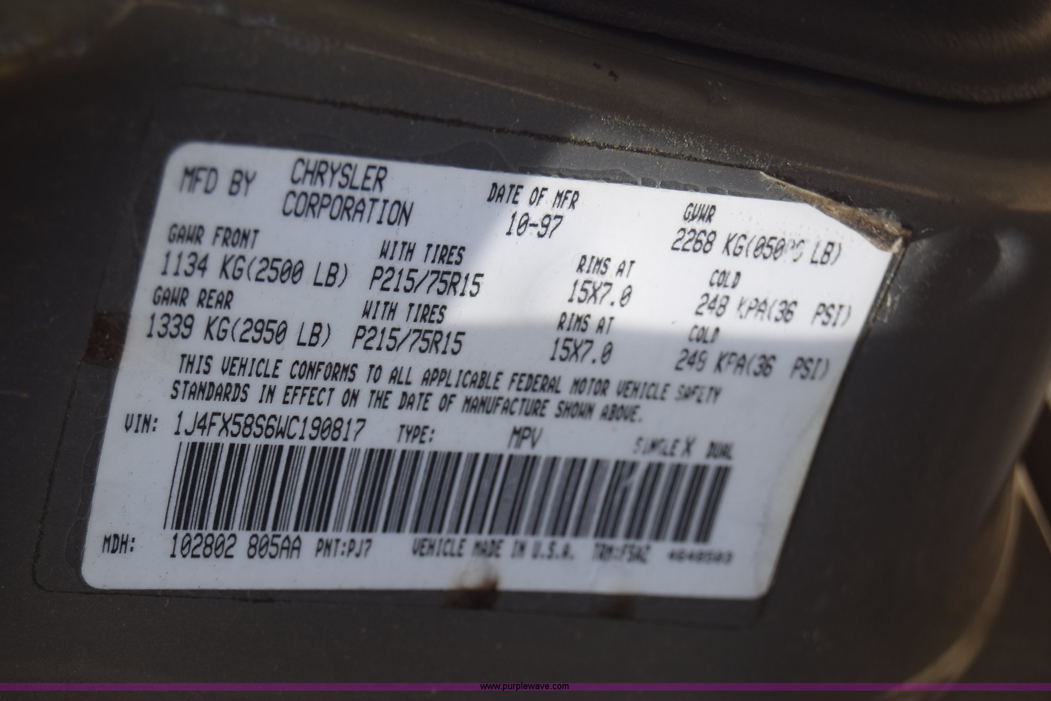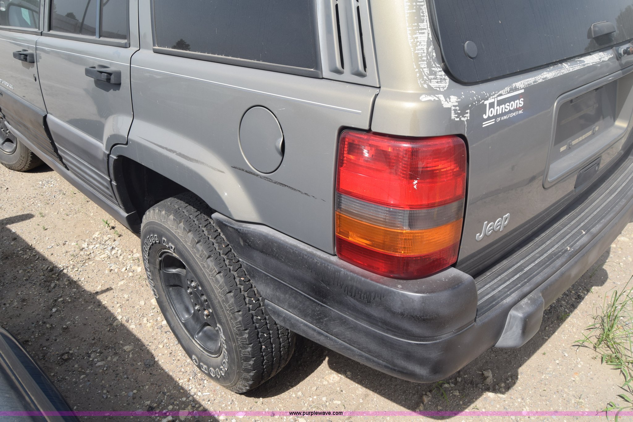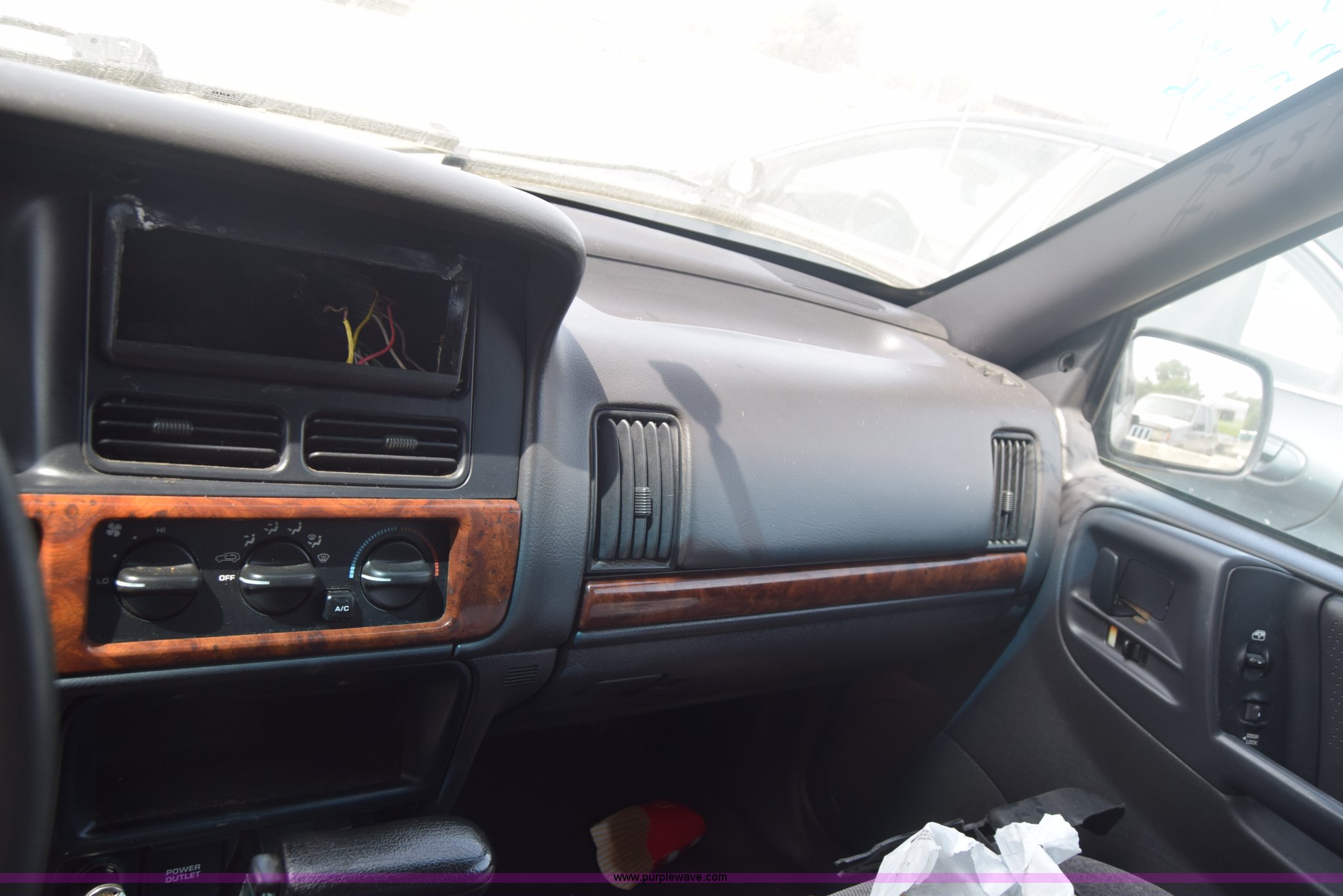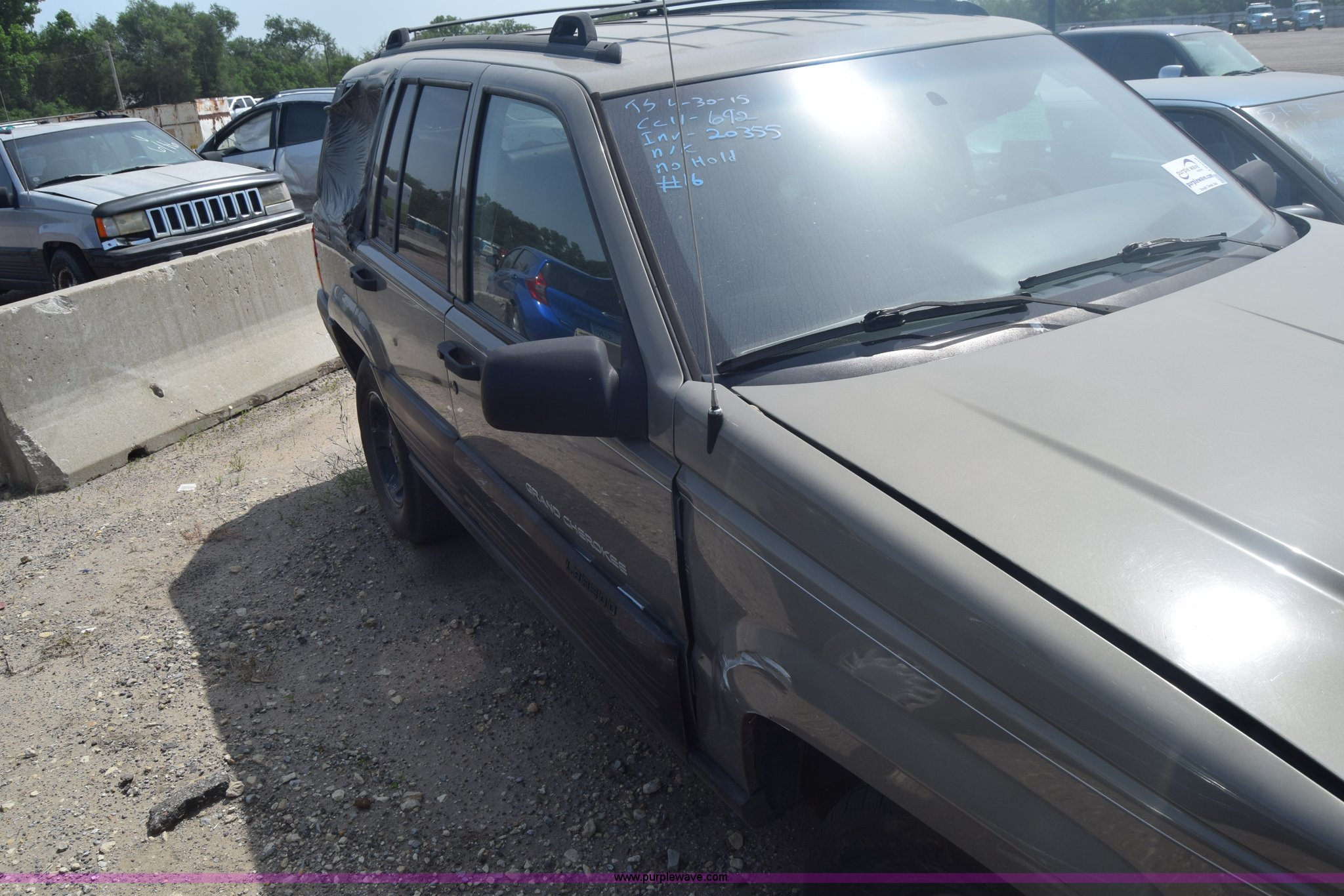 Purple Wave is selling a used Passenger Vehicle in Kansas. This item is a 1998 Jeep Grand Cherokee TSi SUV with the following: Unknown miles on odometer, 4.0L L6 OHV 12V gas engine, Automatic transmission, AC and heat, Tilt, Cruise, Power windows, locks, and mirrors, Cloth interior, 225/75R15 tires, Interior/exterior cosmetic damage, Front end damage, Front bumper missing, Interior/exterior cosmetic damage, Dents, Scratches, Rust, One tire off wheel, Stereo removed, Window broken, Headlight broken, Case# 15C027073