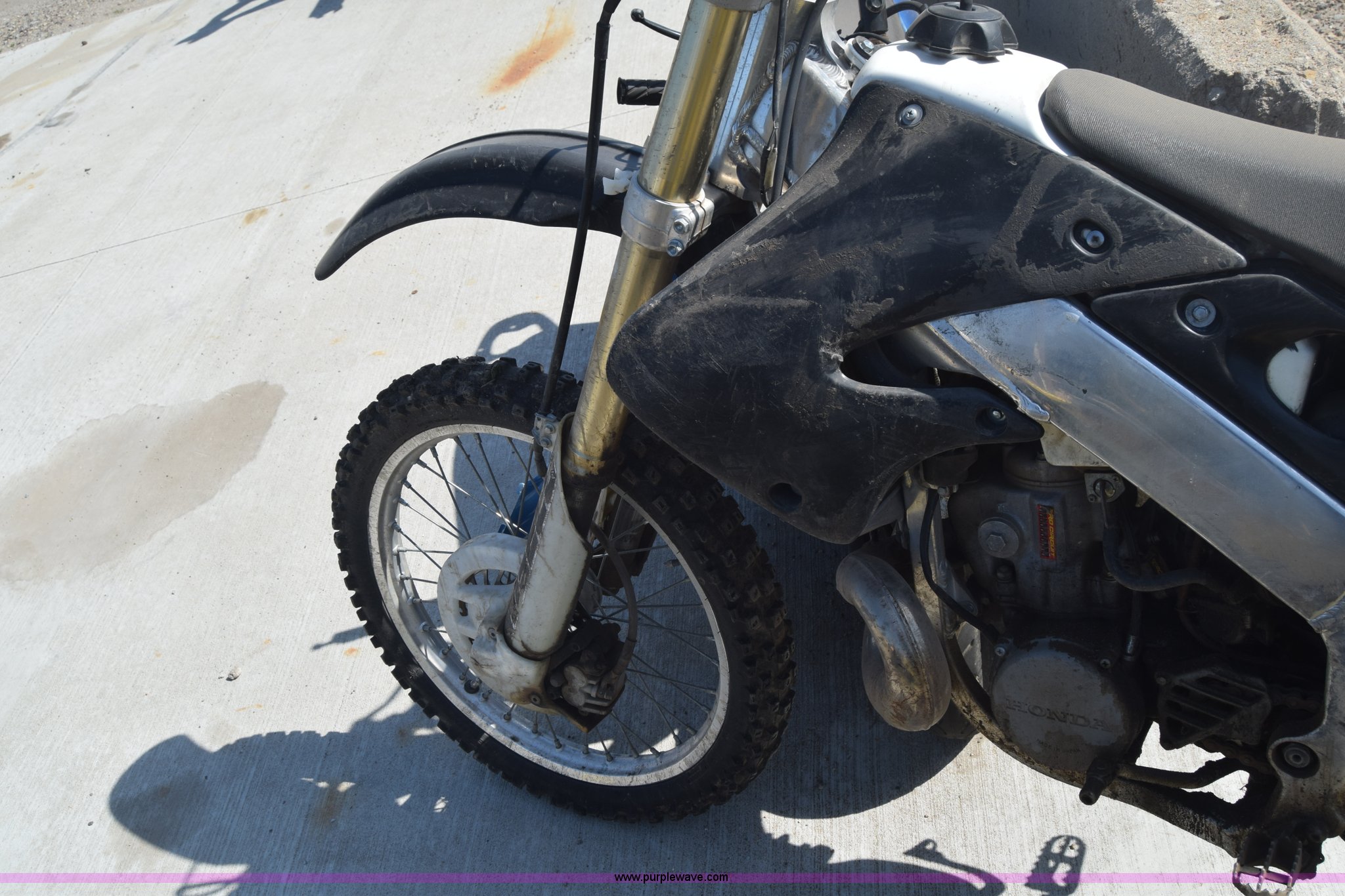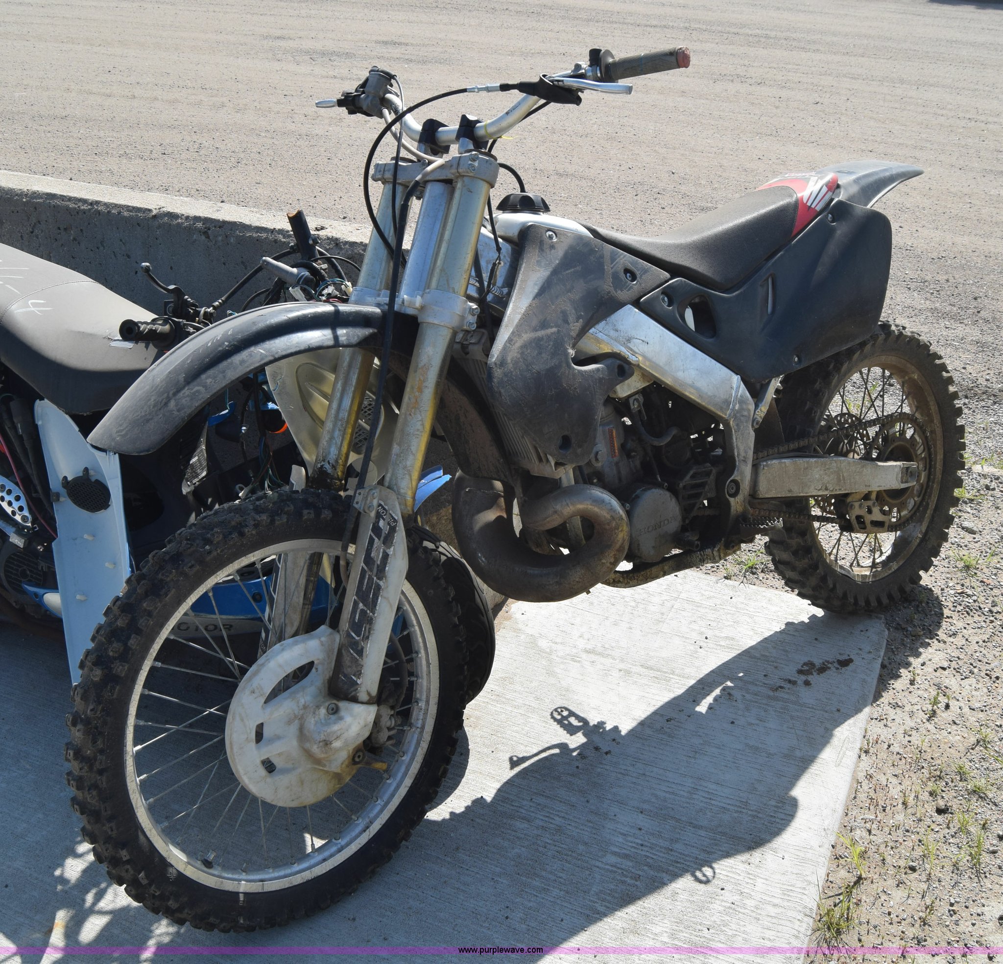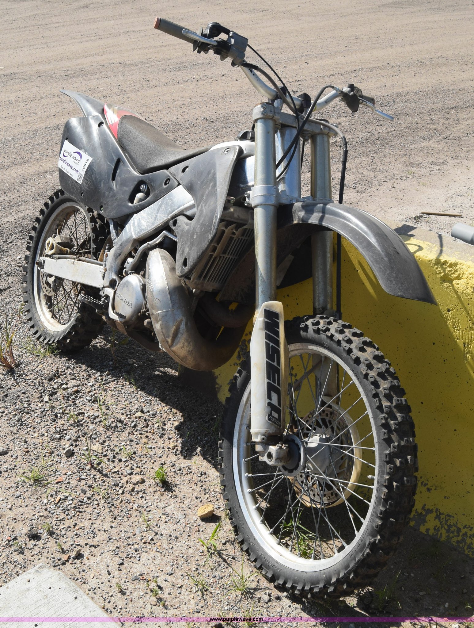 Purple Wave is selling a used Motorcycle in Kansas. This item is a 1999 Honda CR250R motorcycle with the following: Unknown miles on odometer, 249CC gas engine, Manual transmission, 80/100-21 front tire, 110/90-19 rear tire, Dents and scratches, Case# 15C024726