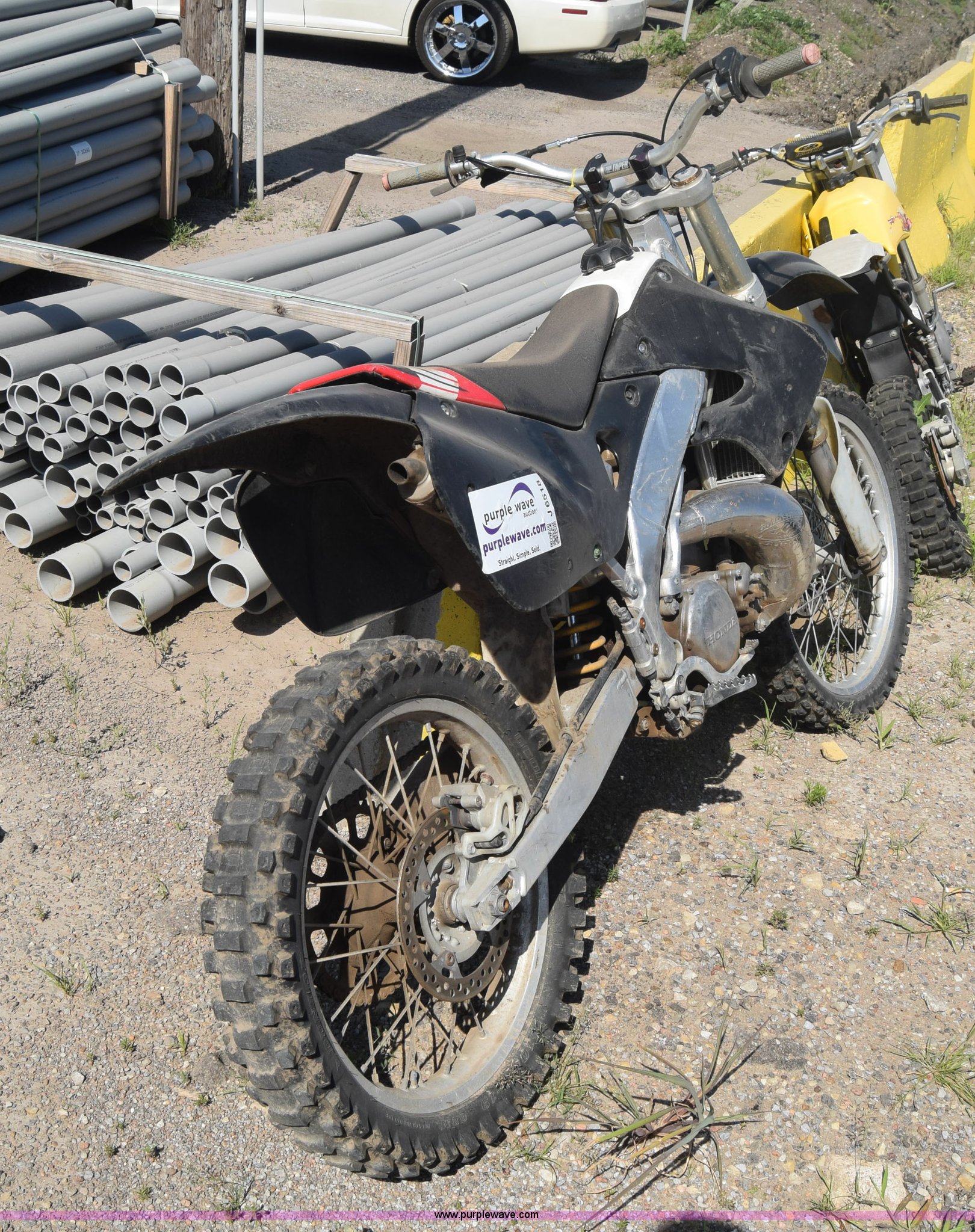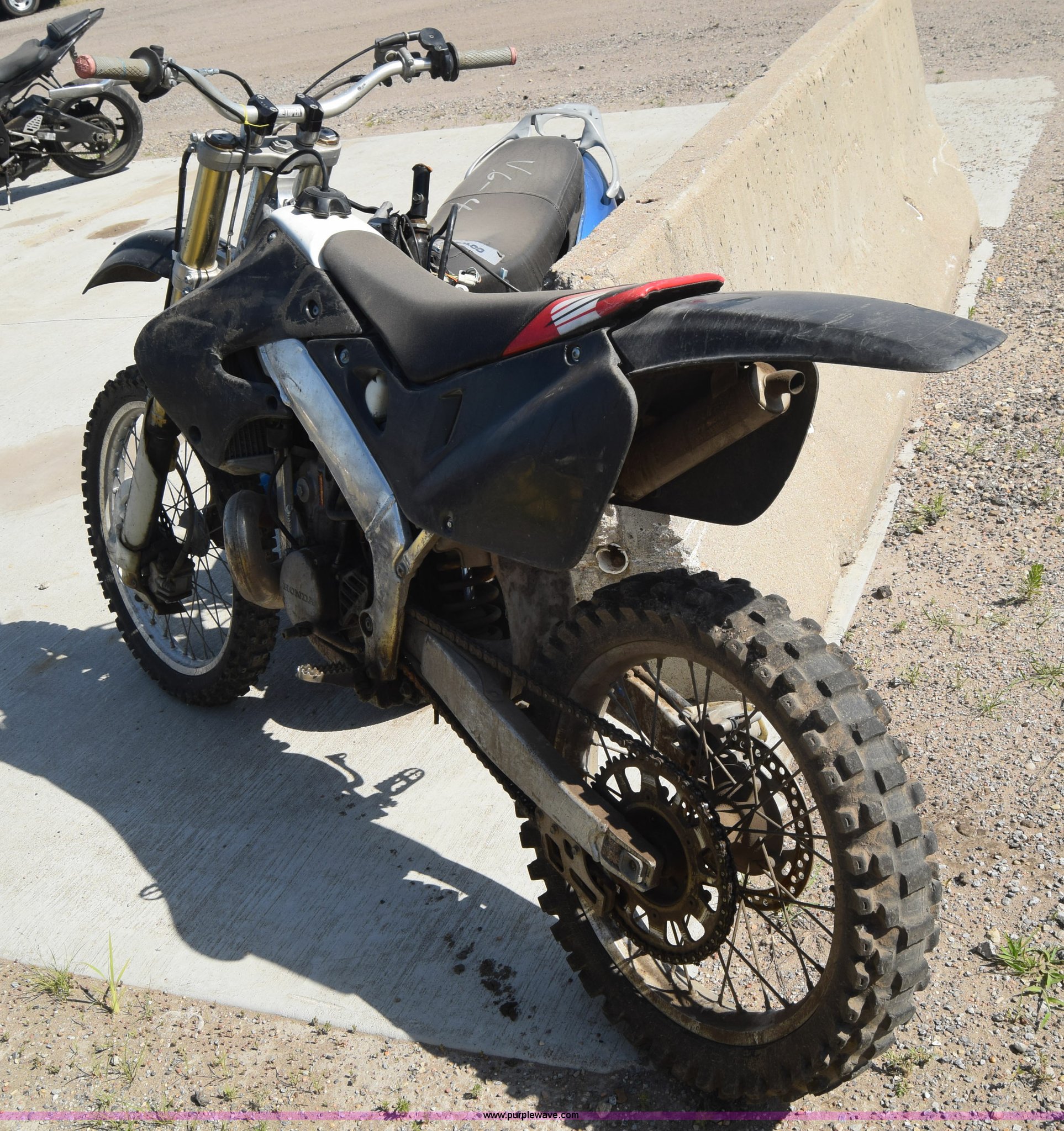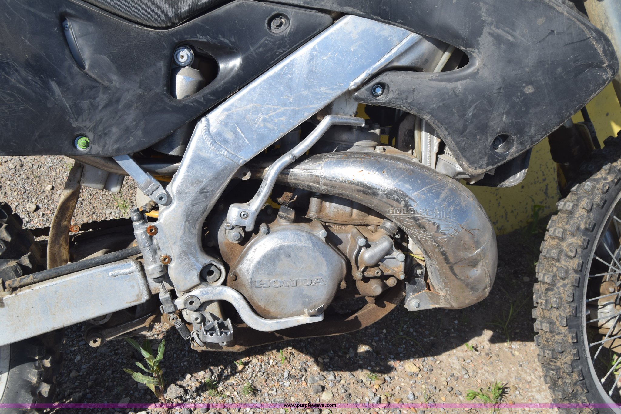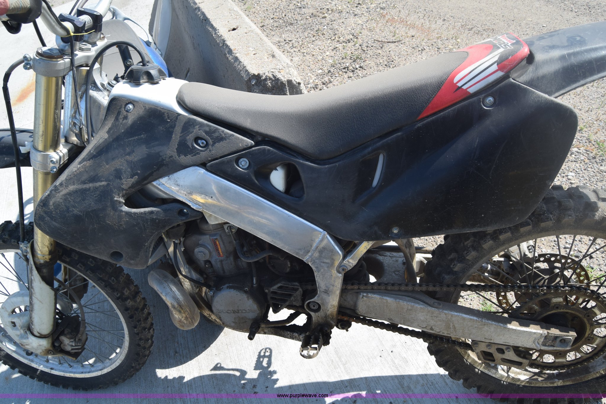 Purple Wave is selling a used Motorcycle in Kansas. This item is a 1999 Honda CR250R motorcycle with the following: Unknown miles on odometer, 249CC gas engine, Manual transmission, 80/100-21 front tire, 110/90-19 rear tire, Dents and scratches, Case# 15C024726