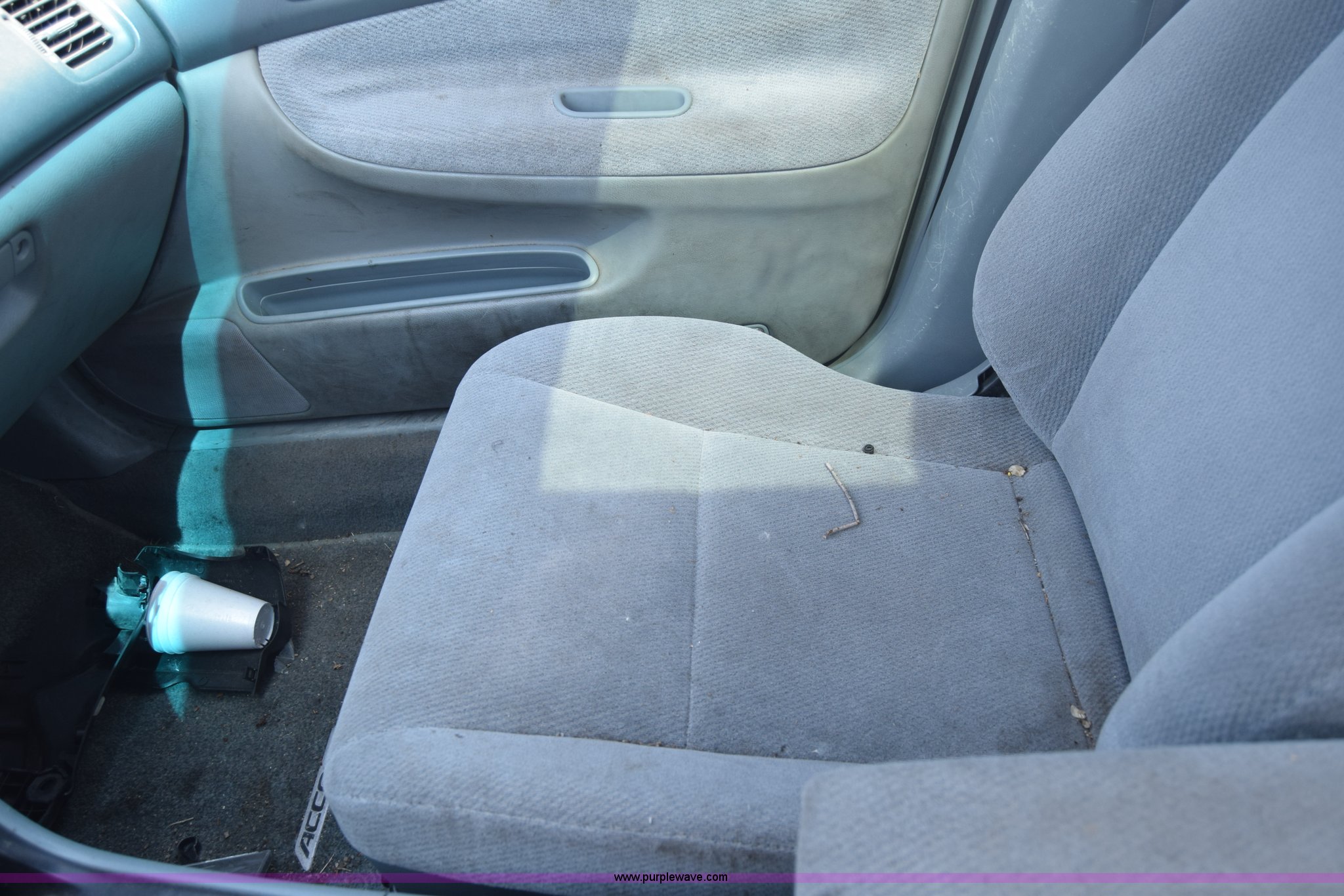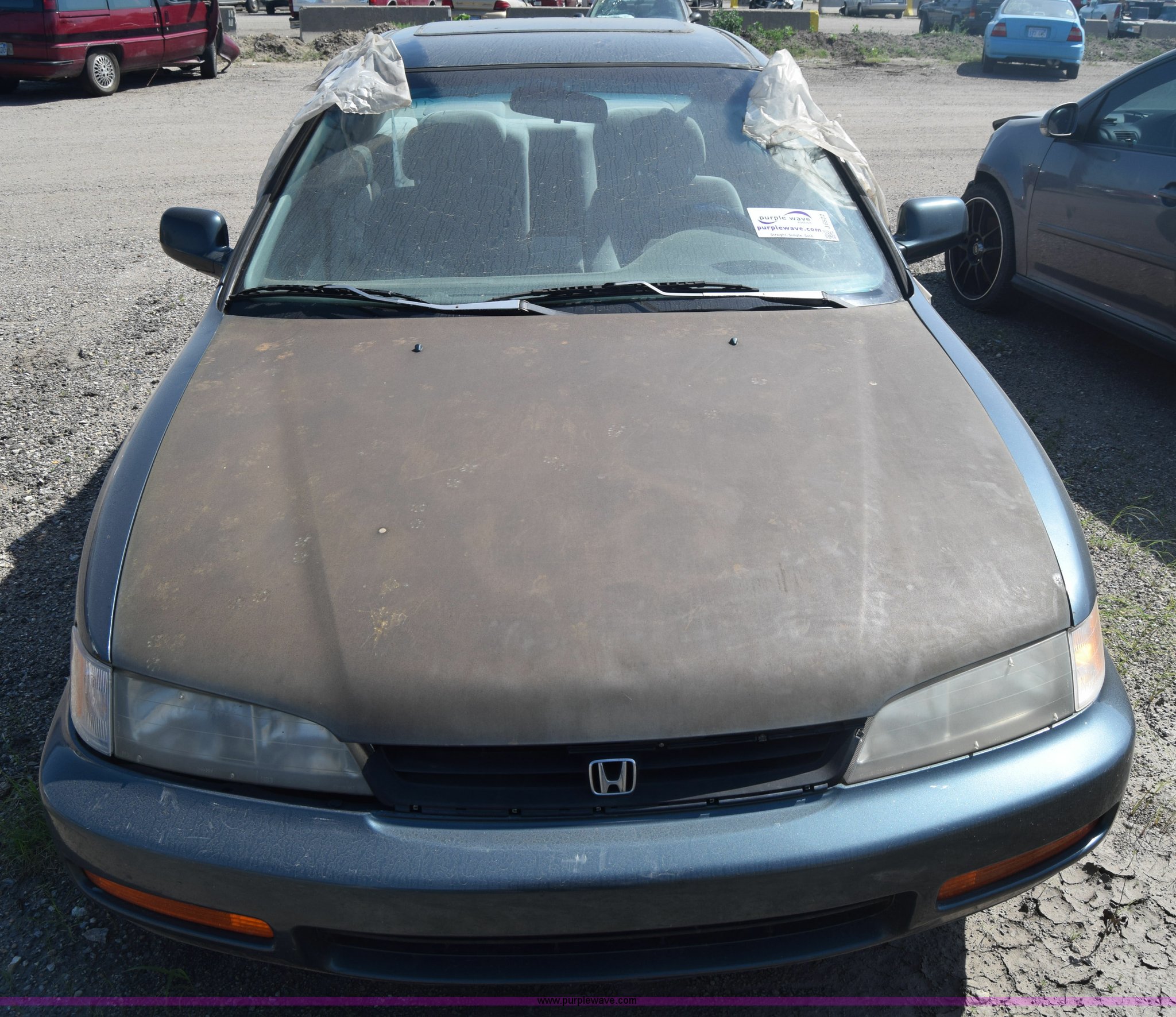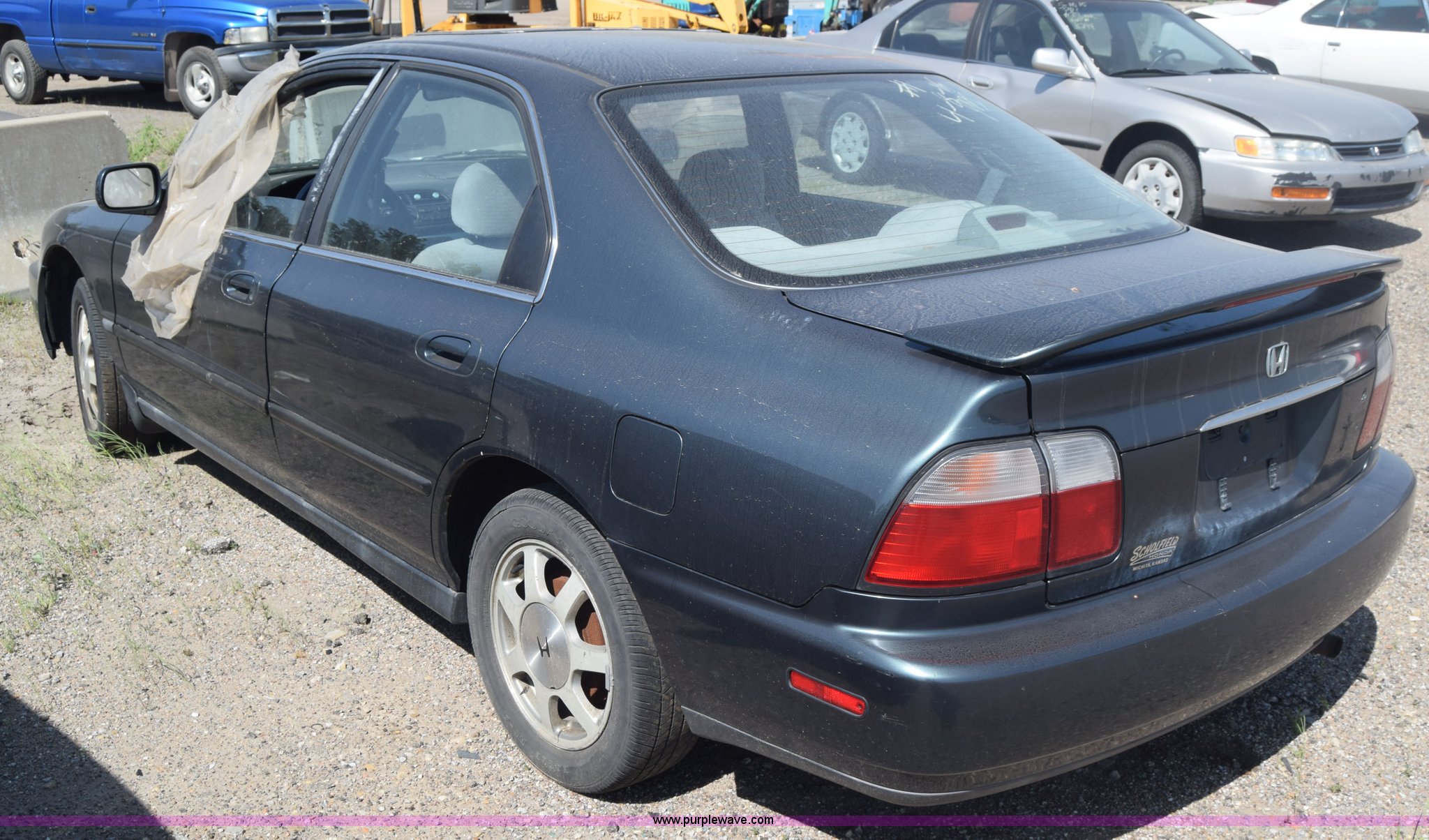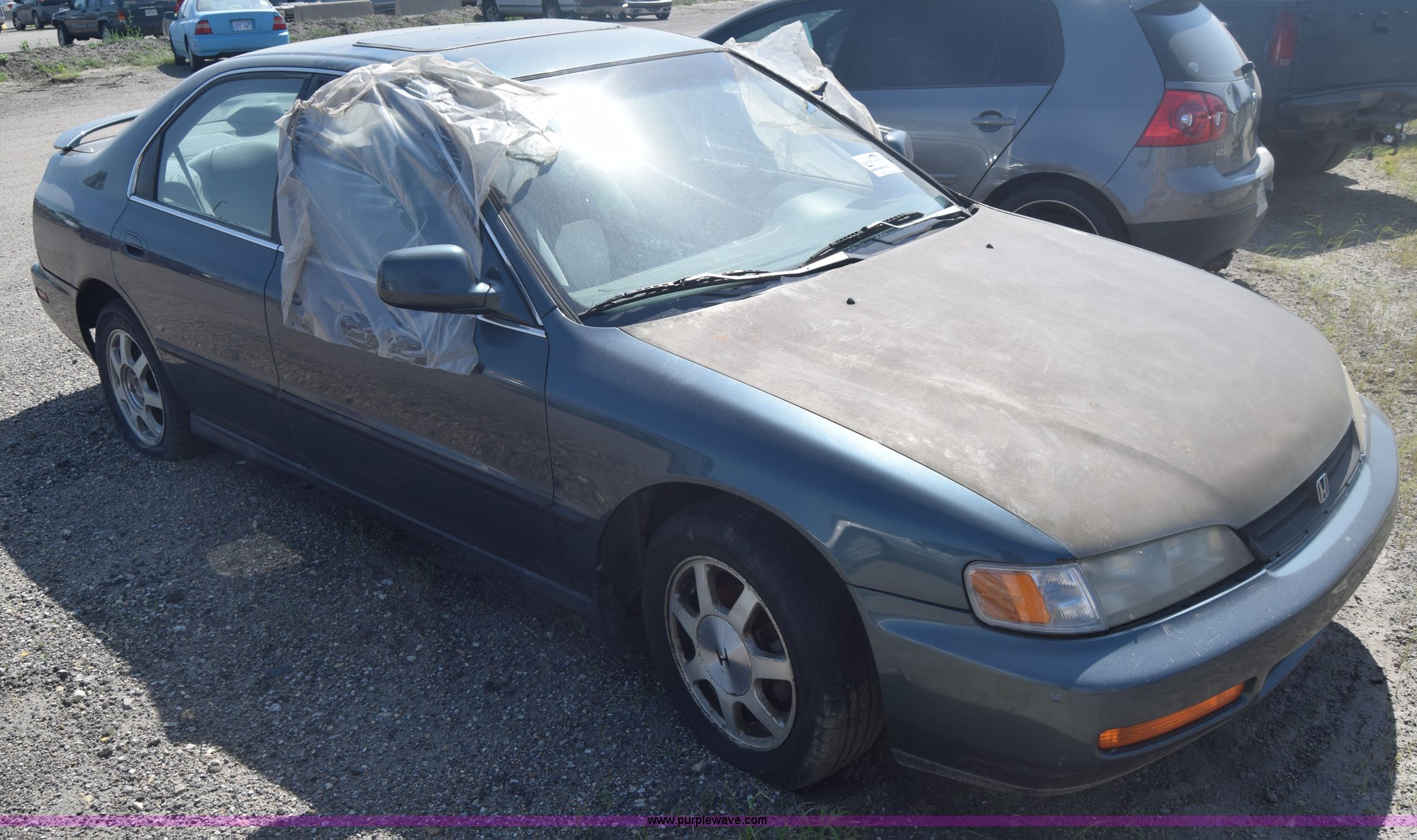 Purple Wave is selling a used Passenger Vehicle in Kansas. This item is a 1997 Honda Accord LX with the following: 199,797 miles on odometer, 2.2L L4 SOHC 16V gas engine, Automatic transmission, AC and heat, Tilt, Cruise, AM/FM/cassette, Power windows, locks, and mirrors, Cloth interior, 195/60R15 tires, Interior/exterior cosmetic damage, Dents and scratches, Paint faded, One tire flat, Window broken, Steering console disassembled, Case# 15C505660