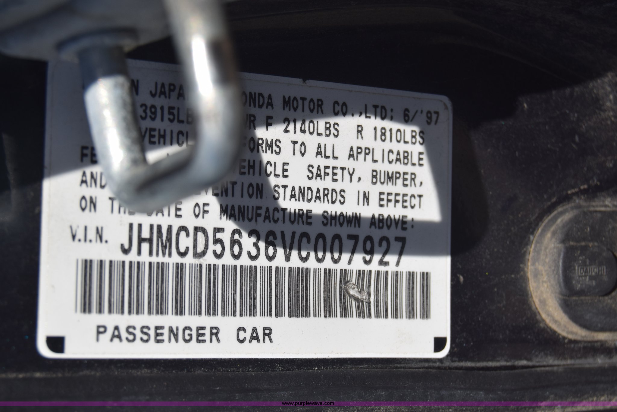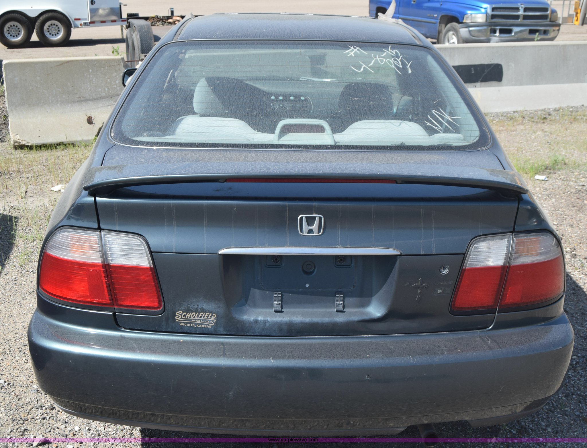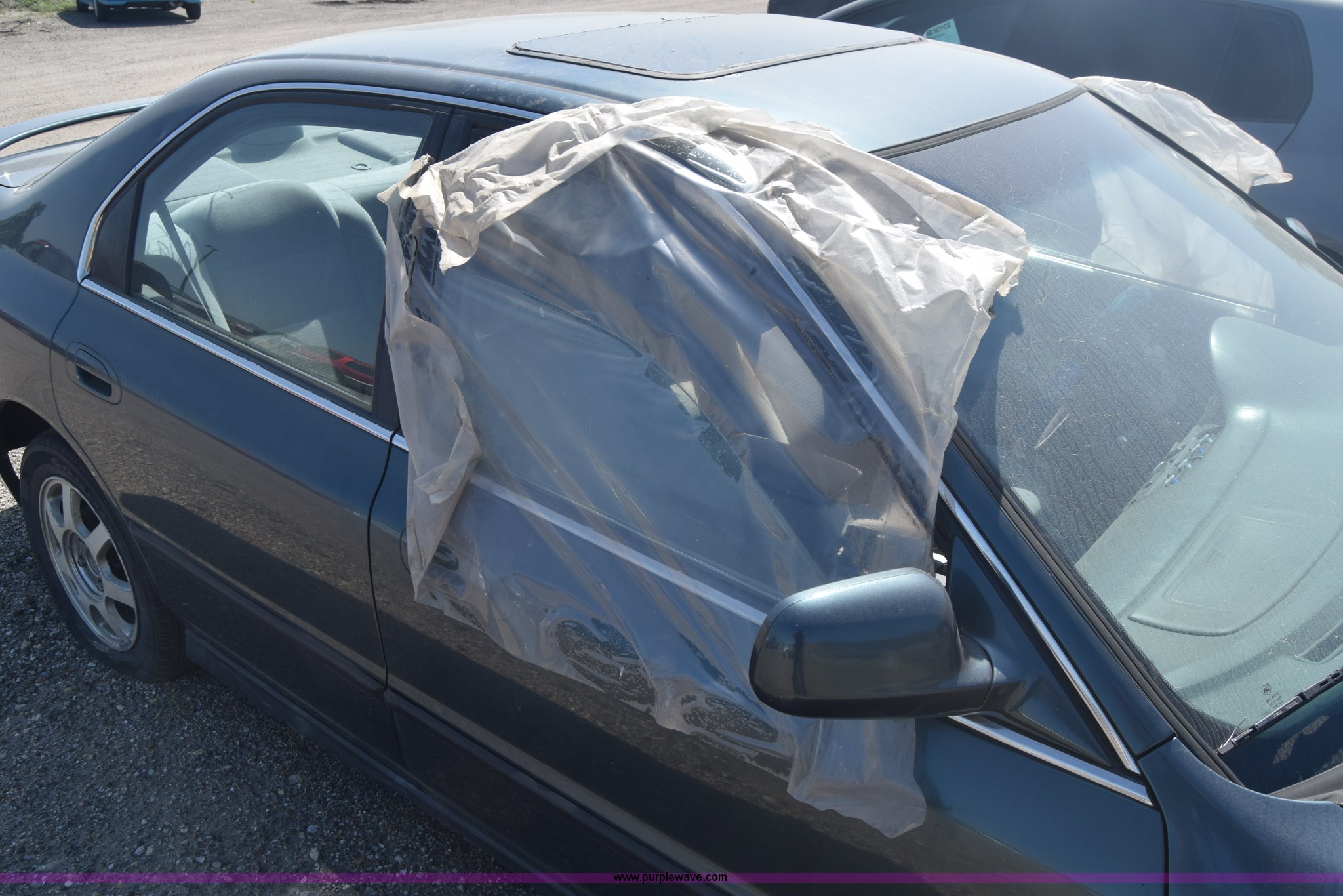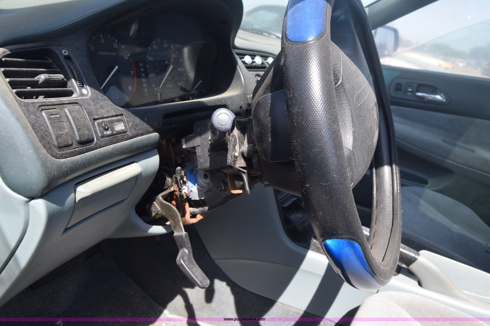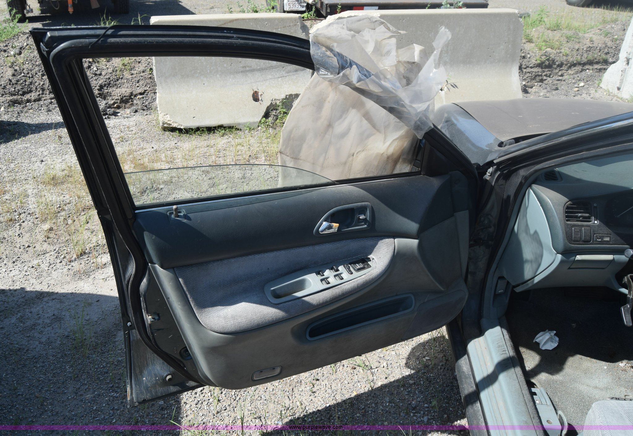 Purple Wave is selling a used Passenger Vehicle in Kansas. This item is a 1997 Honda Accord LX with the following: 199,797 miles on odometer, 2.2L L4 SOHC 16V gas engine, Automatic transmission, AC and heat, Tilt, Cruise, AM/FM/cassette, Power windows, locks, and mirrors, Cloth interior, 195/60R15 tires, Interior/exterior cosmetic damage, Dents and scratches, Paint faded, One tire flat, Window broken, Steering console disassembled, Case# 15C505660