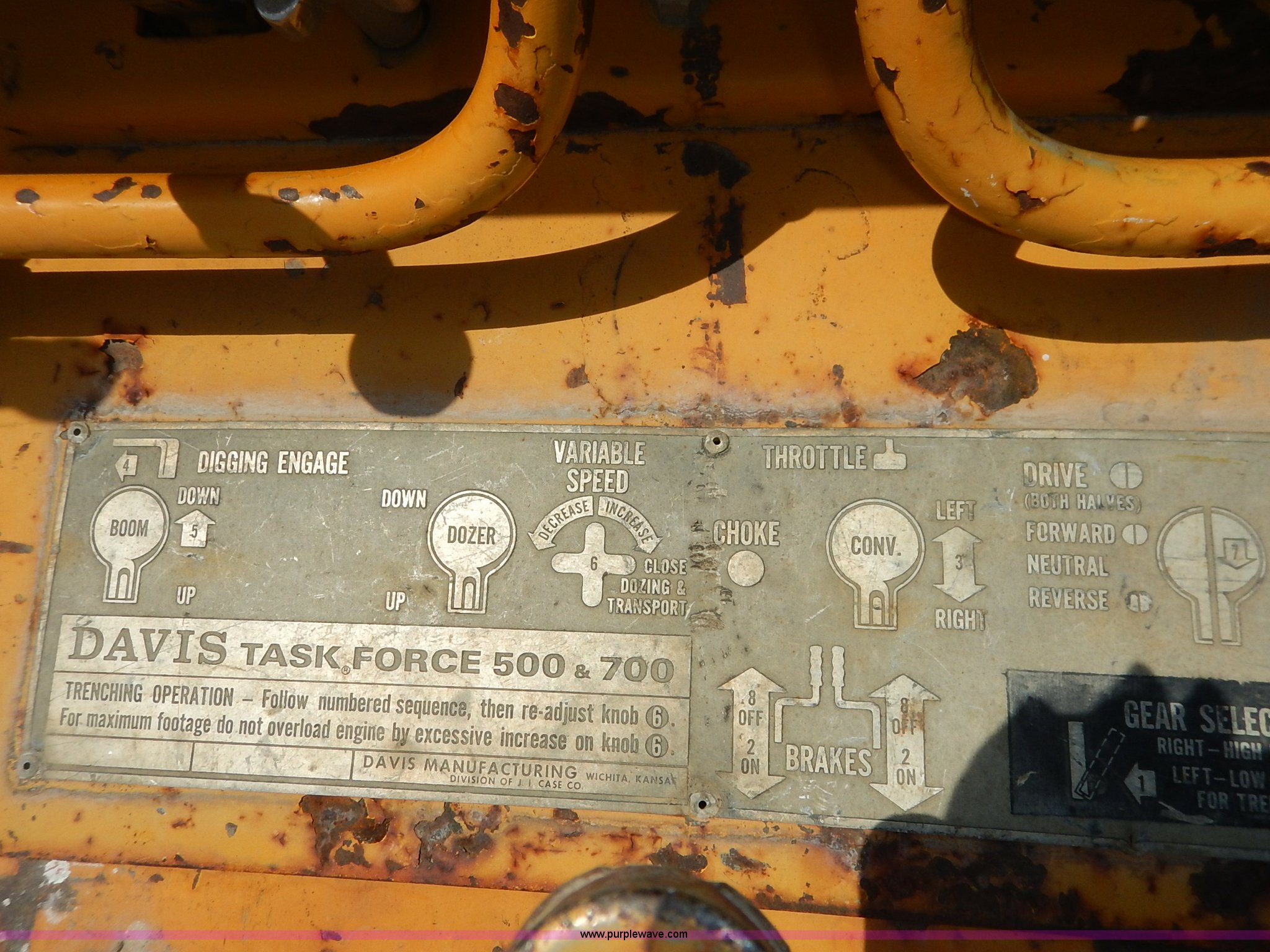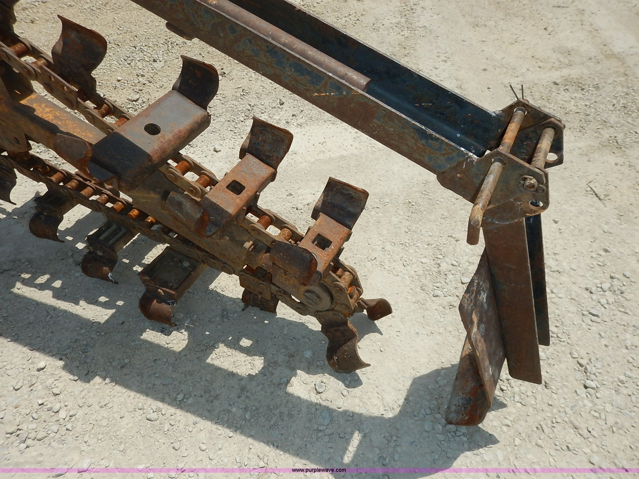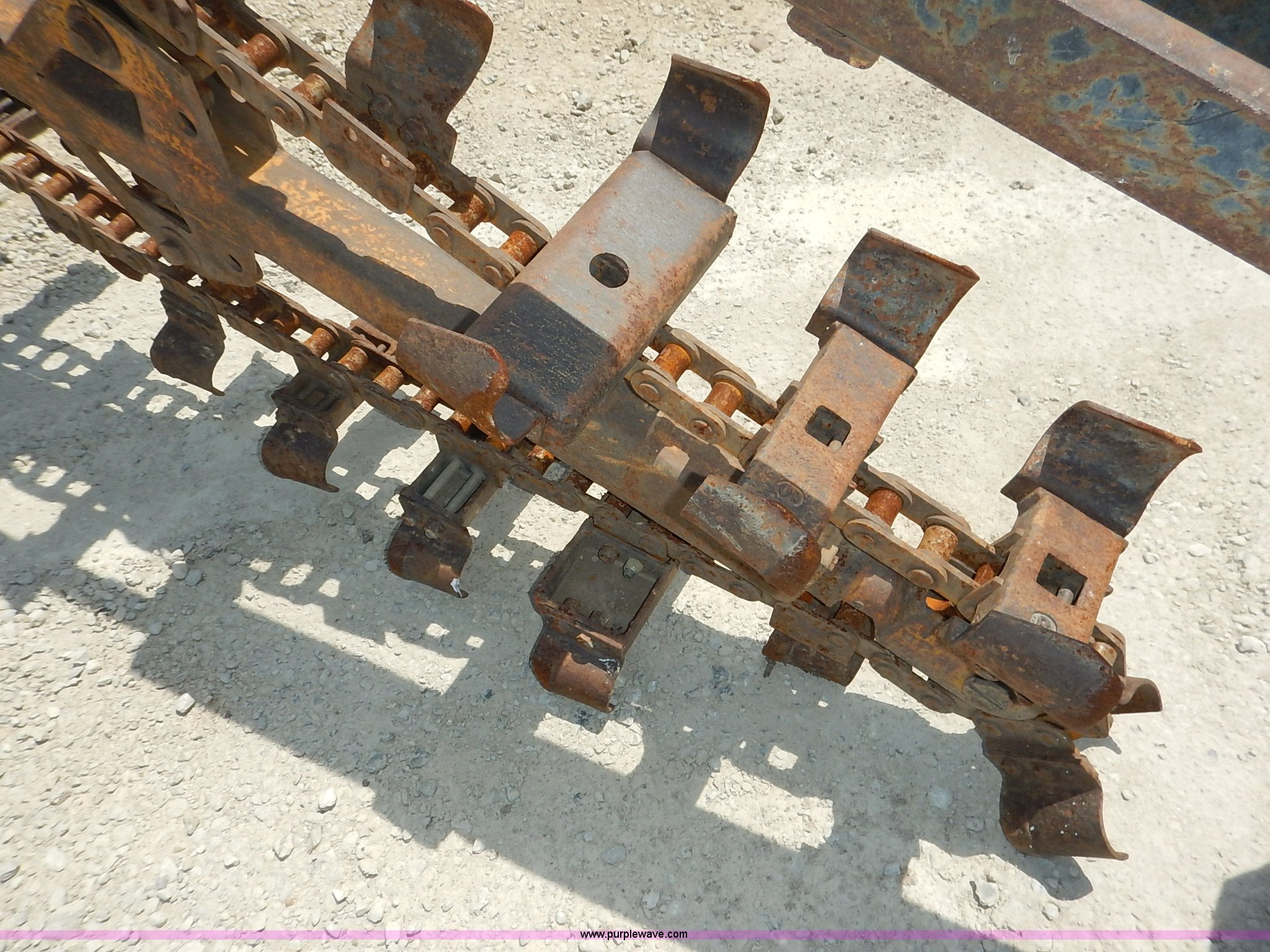 Purple Wave is selling a used Trencher or Rock Saw in Kansas. This item is a Davis TF500 trencher with the following: 604 hours on meter, Kohler Command gas engine, 25 HP, Variable speed transmission, Creep, Vinyl seat, Boom, dozer, and conveyor throttle controls, 55"L x 10"W side conveyor, 8'L x 10"W trencher, 52"W back fill blade, Weld-on blade, Rear weights, 10"W steel track pads, Recently replaced engine