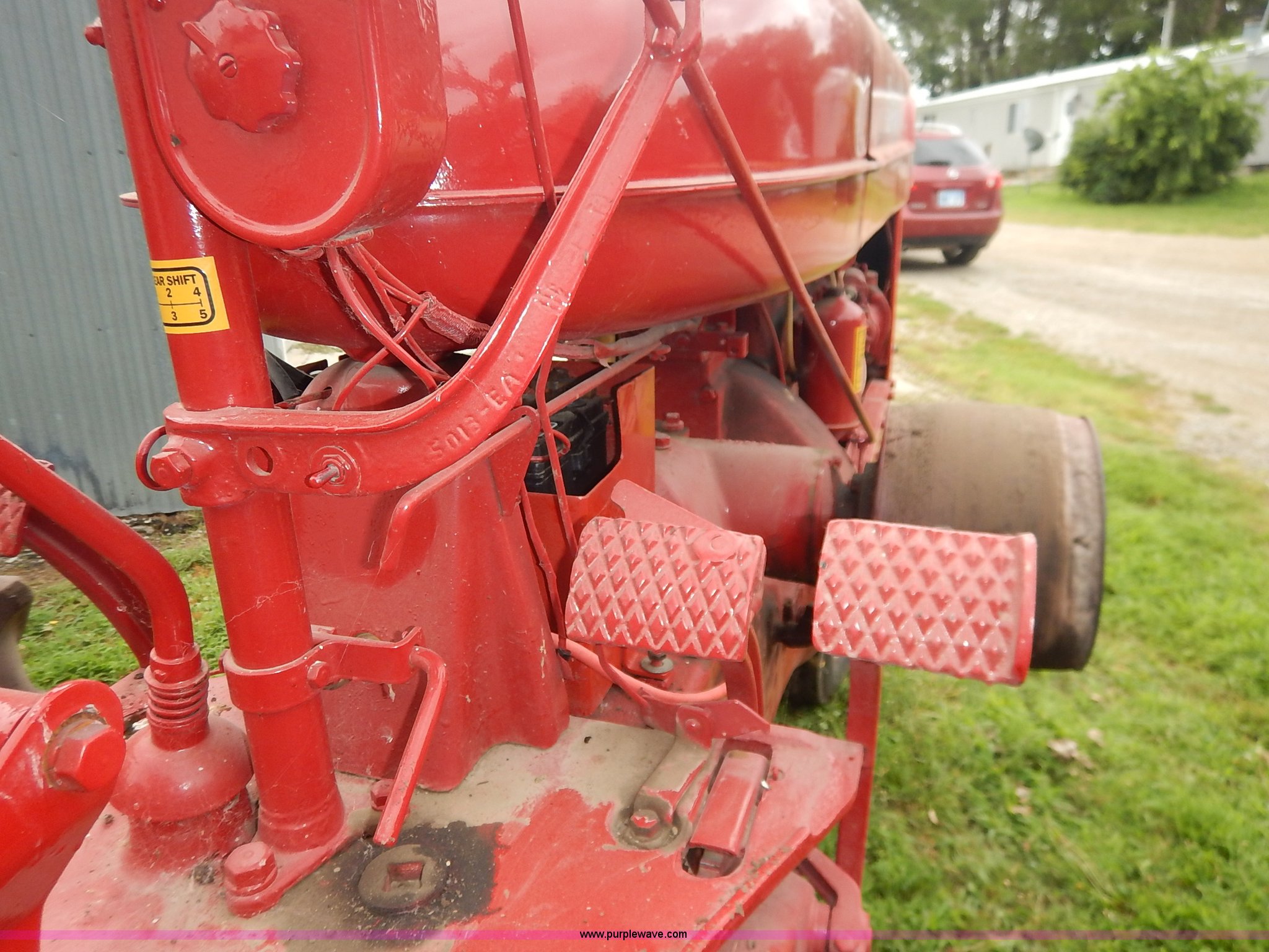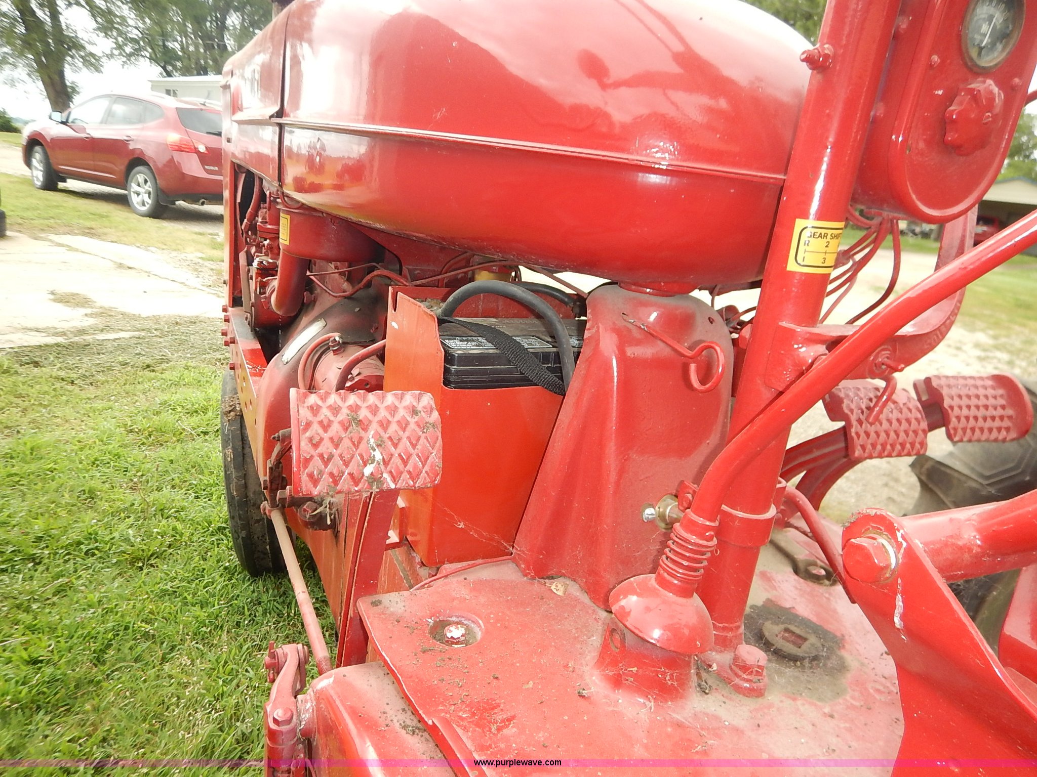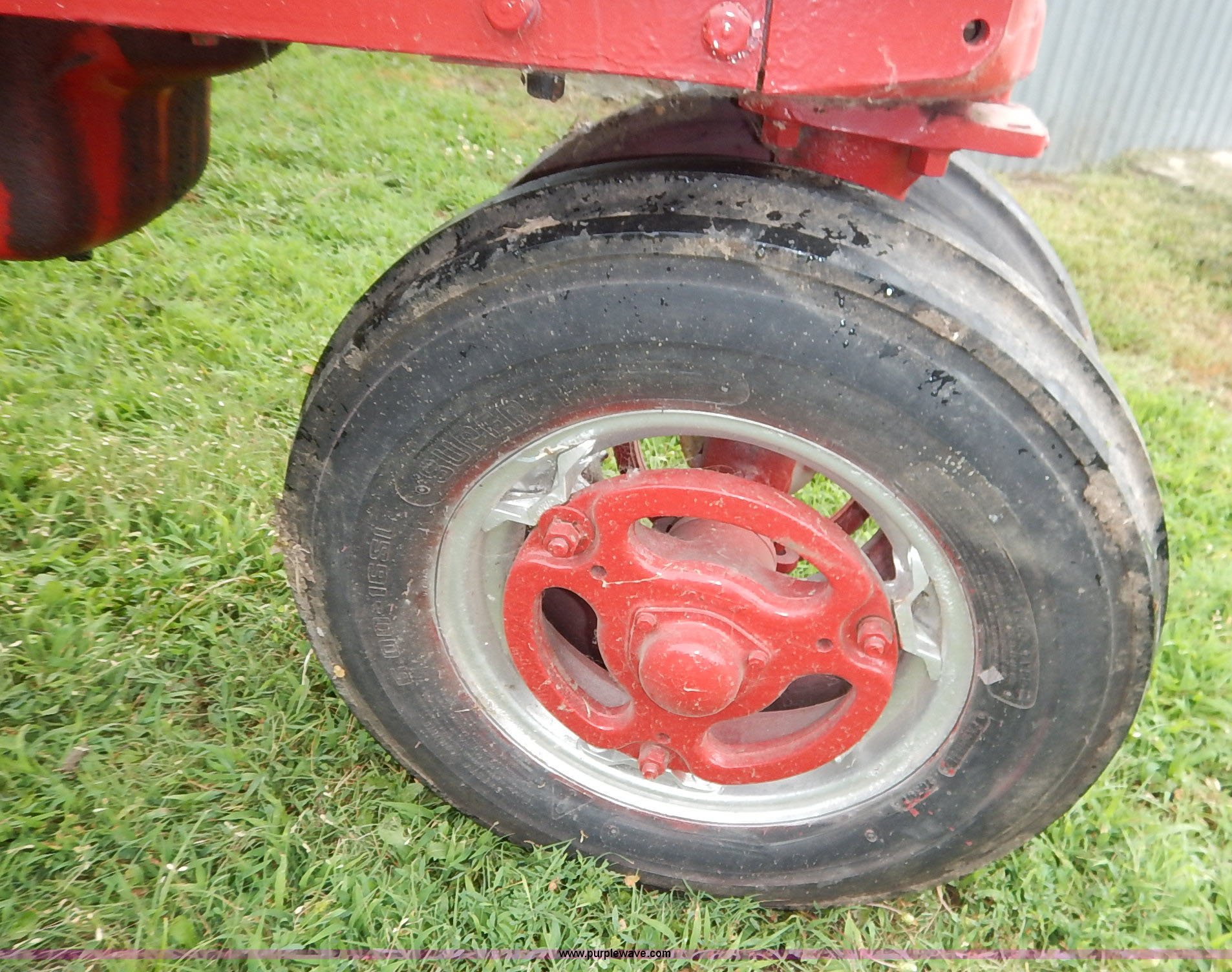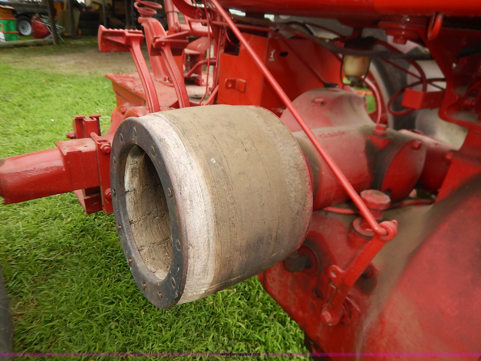 Purple Wave is selling a used Tractor in Kansas. This item is a 1950 Farmall M tractor with the following: International C248 4.1L four cylinder gas engine, 25 HP, Engine overhauled 10 hours ago, Manual transmission, 5F-1R gears, Grinder belt flywheel, 540 PTO, Draw bar, Rear wheel weights, Co-op 6.00-16 front tires, Co-op 12.6-33 rear tires, Recently replaced 12V battery, Carburetor has been rebuilt, One owner, Serial FBK223466X1