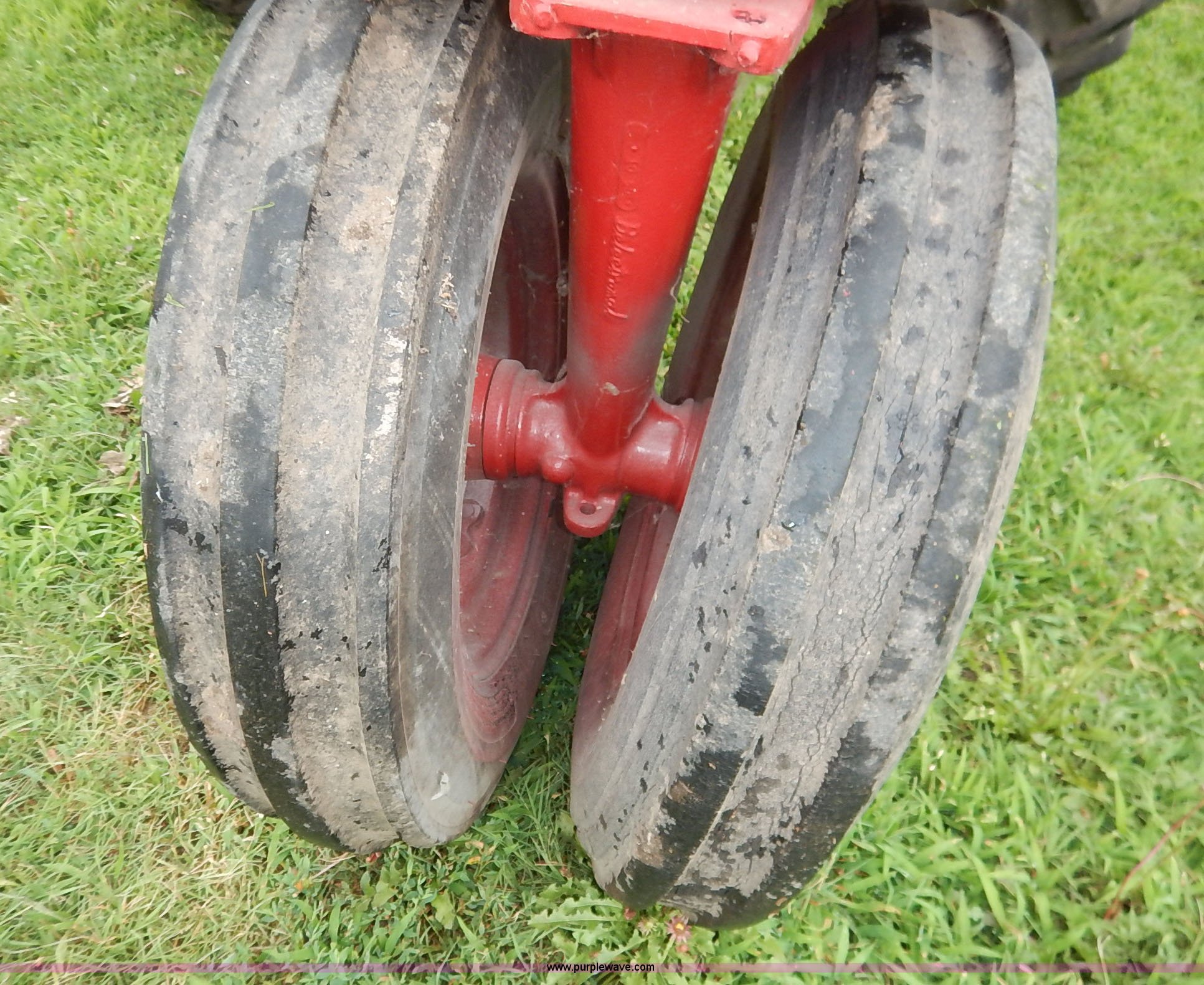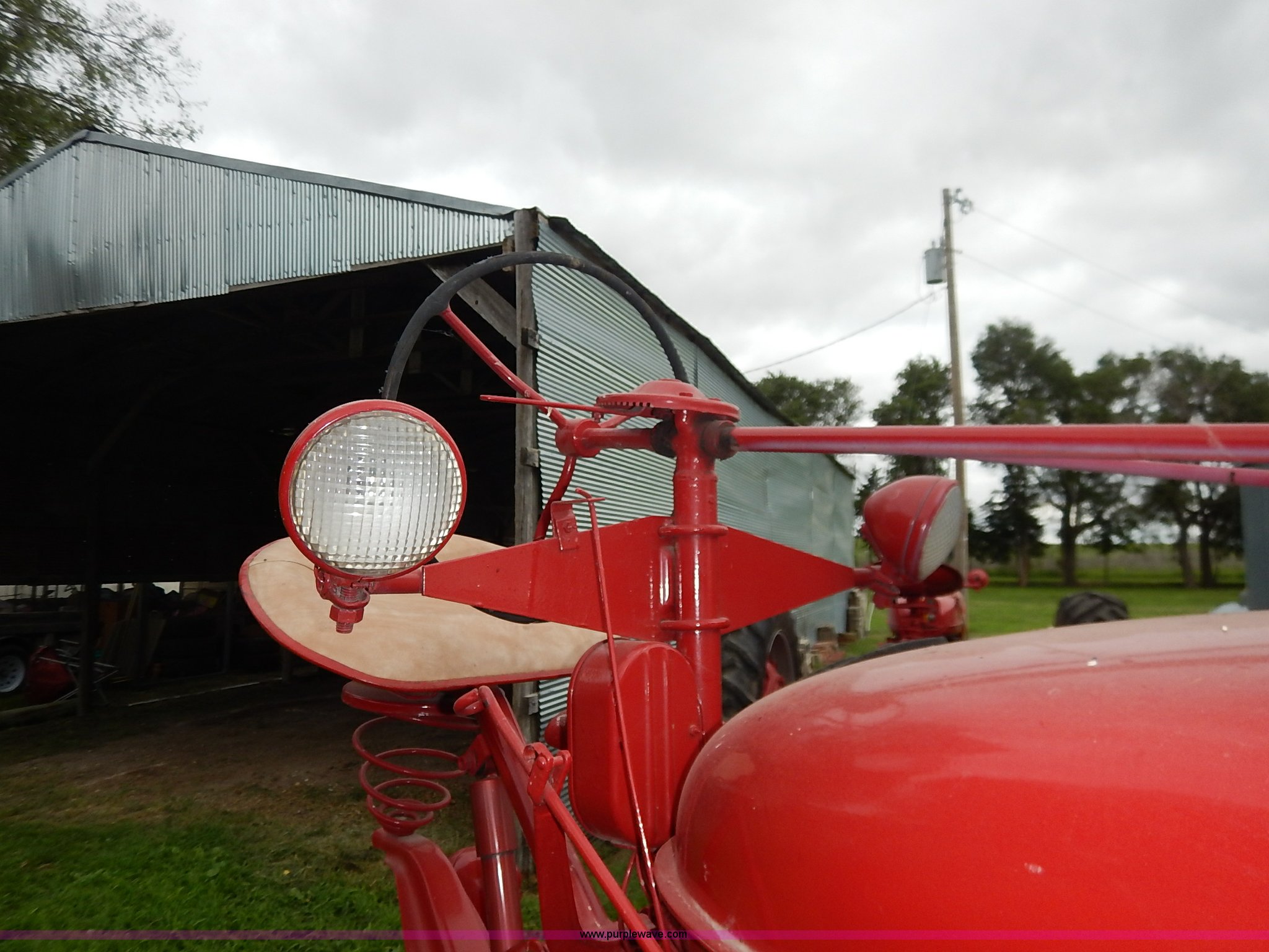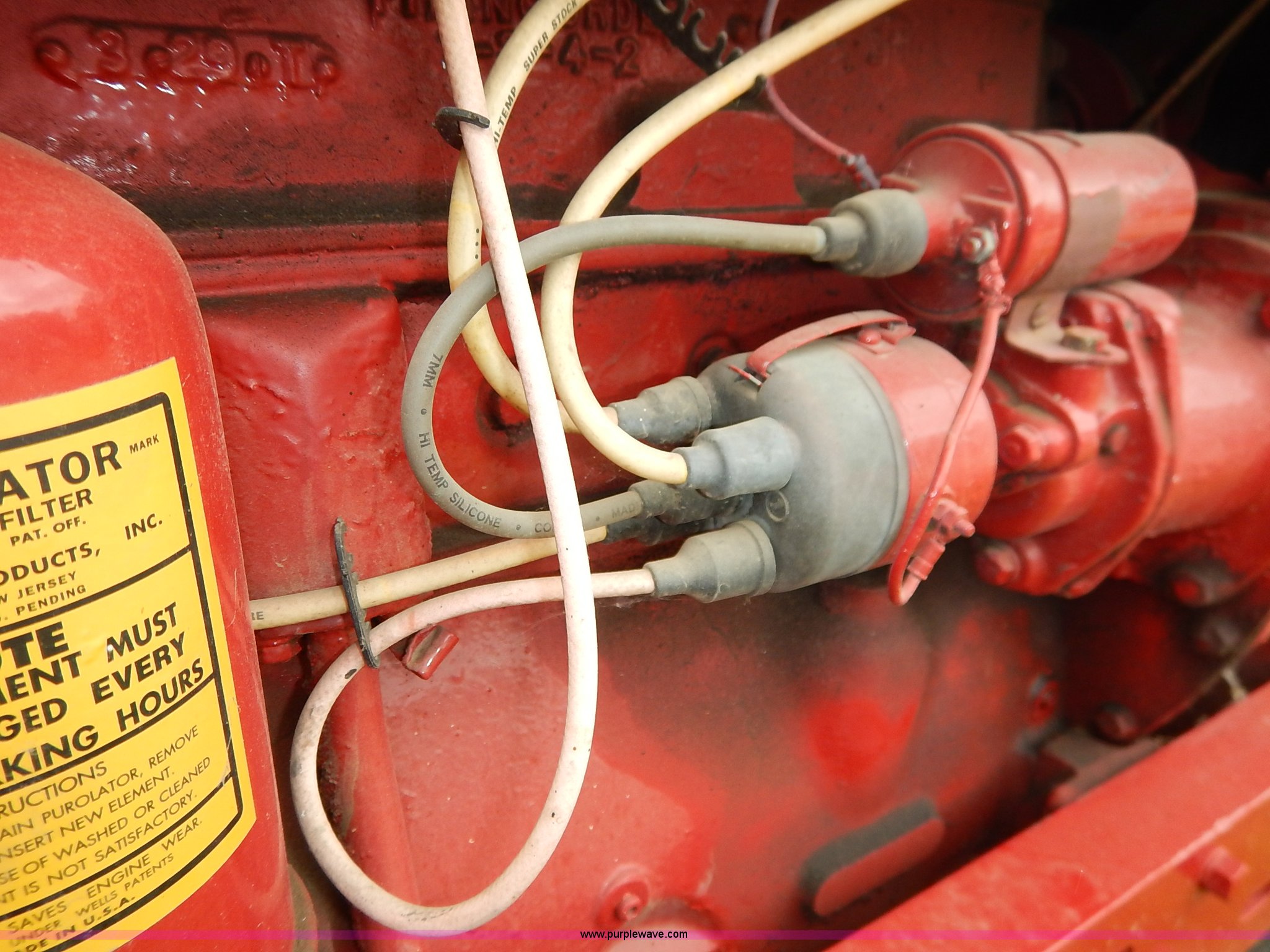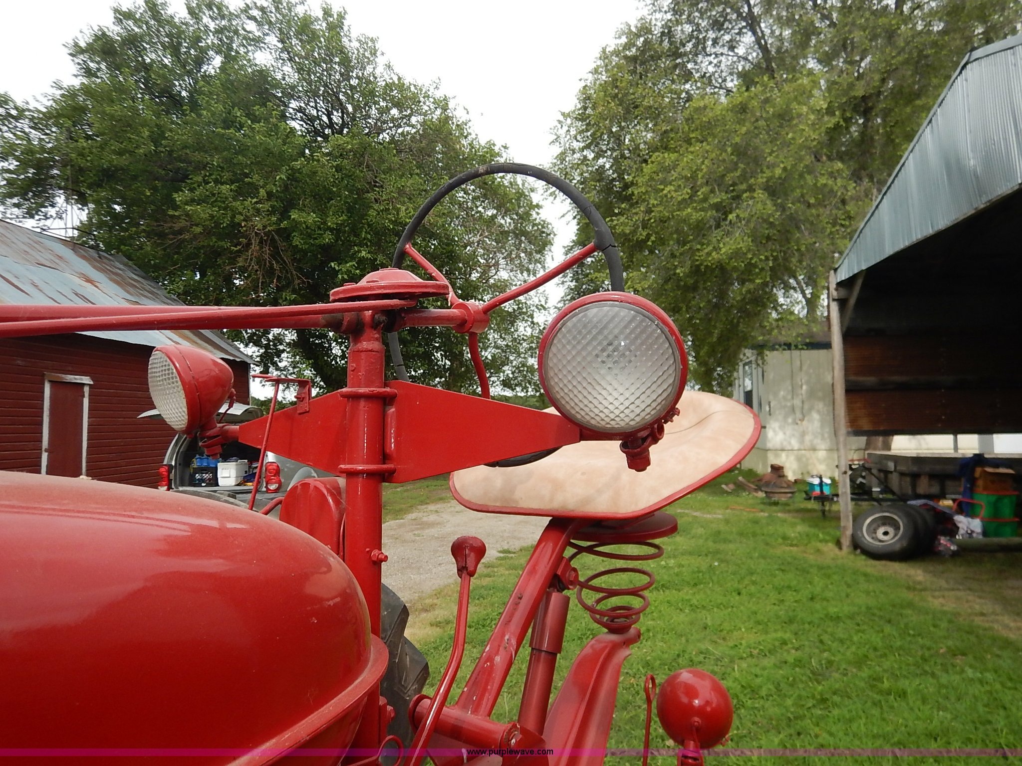Purple Wave is selling a used Tractor in Kansas. This item is a 1950 Farmall M tractor with the following: International C248 4.1L four cylinder gas engine, 25 HP, Engine overhauled 10 hours ago, Manual transmission, 5F-1R gears, Grinder belt flywheel, 540 PTO, Draw bar, Rear wheel weights, Co-op 6.00-16 front tires, Co-op 12.6-33 rear tires, Recently replaced 12V battery, Carburetor has been rebuilt, One owner, Serial FBK223466X1