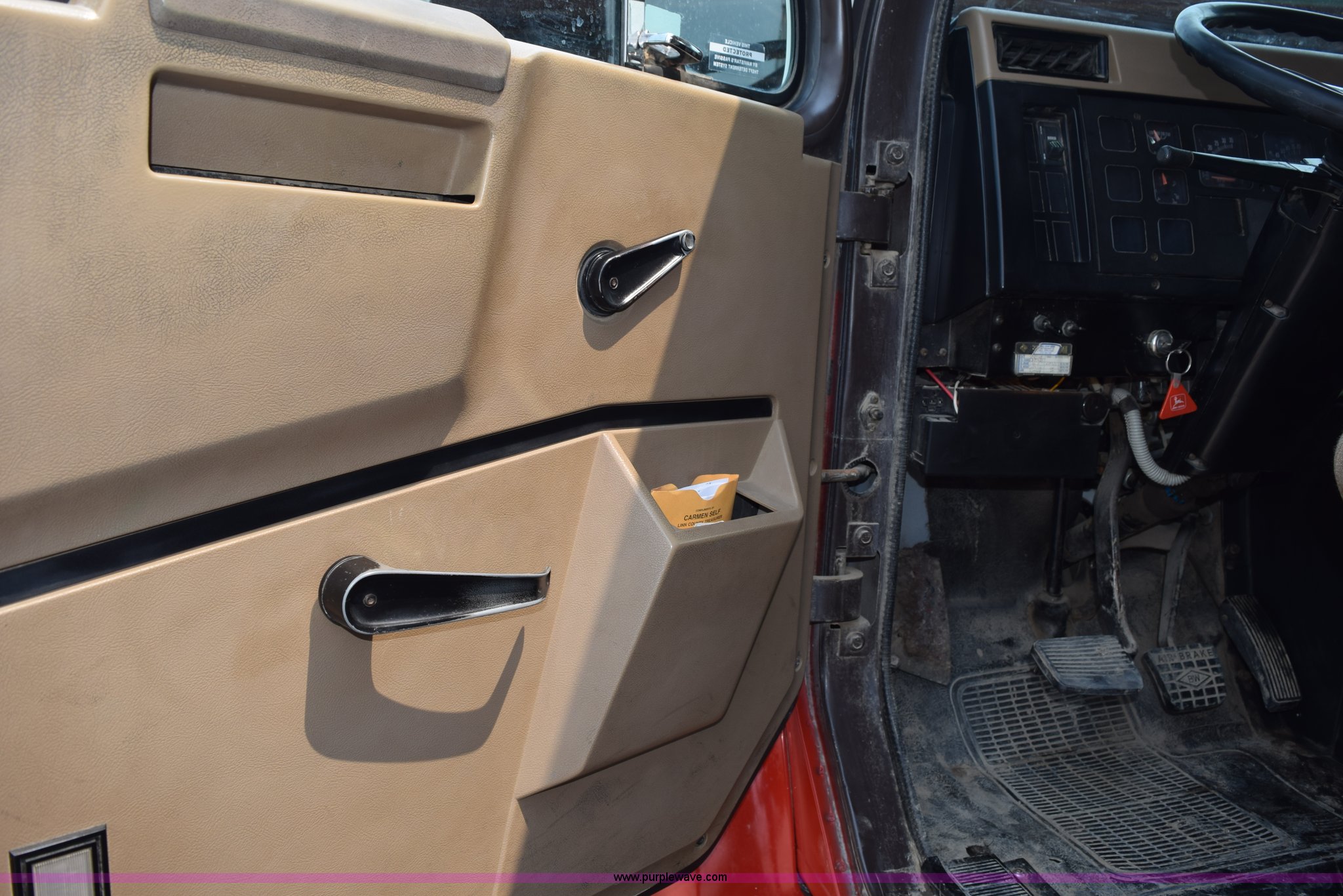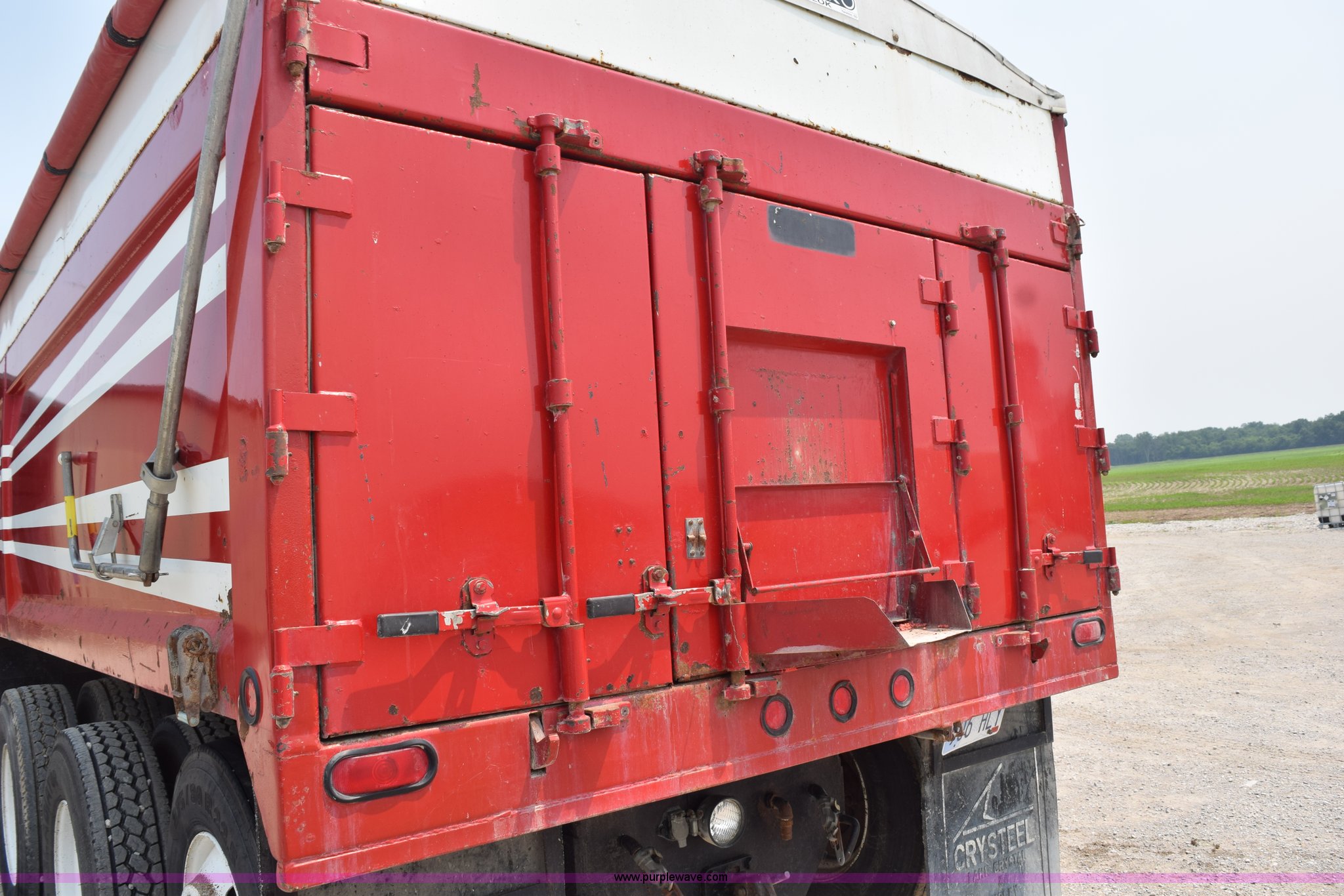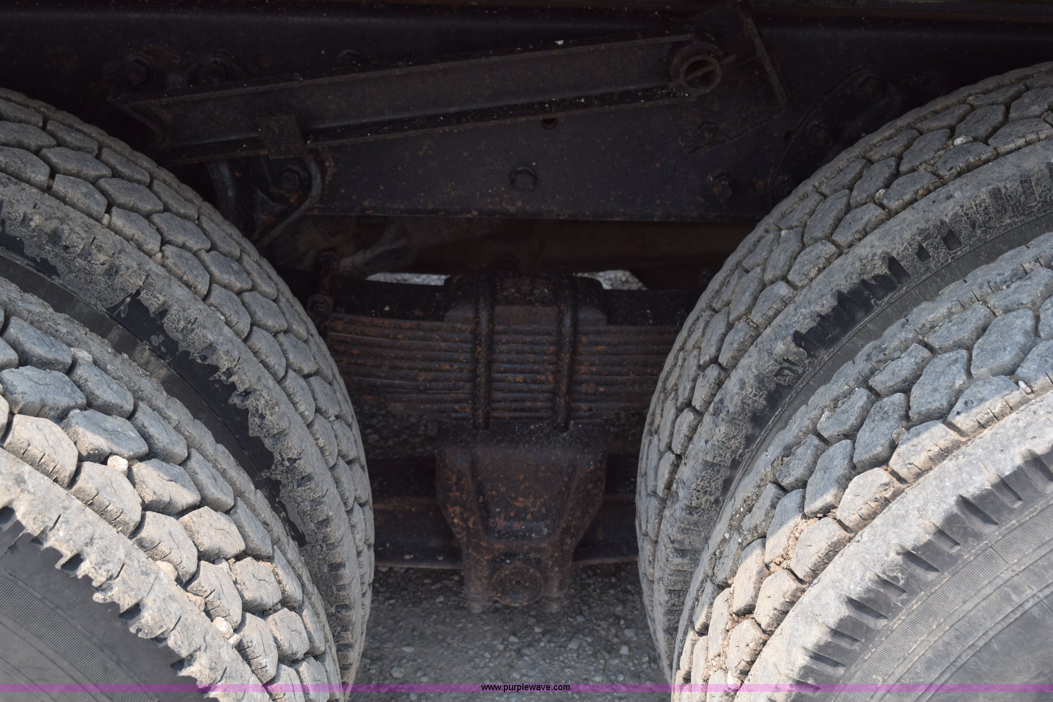 Purple Wave is selling a used Grain Truck in Kansas. This item is a 1990 International 4900 grain truck with the following: 255,824 miles on odometer, International DT466 7.6L L6 diesel engine, 13 speed manual transmission, Model RG66, Triple axle, AC and heat, AM/FM/weatherband, Air suspension seat, Heated mirrors, Exterior visor, Chrome bumper, 22'L x 8'W steel grain bed, 5'H sides, 16" side extension, Rollover tarp, Dual ram hoist, Manual end gate, Silage gate with air lock, Pintle hitch, Trailer wiring, Dual fuel tanks, PTO, Spring suspension, Air brakes, Double frame, Air up and air down tag axle, 228" wheelbase, 13/80R20 front tires, 11R22.5 rear tires, Recently replaced tires
