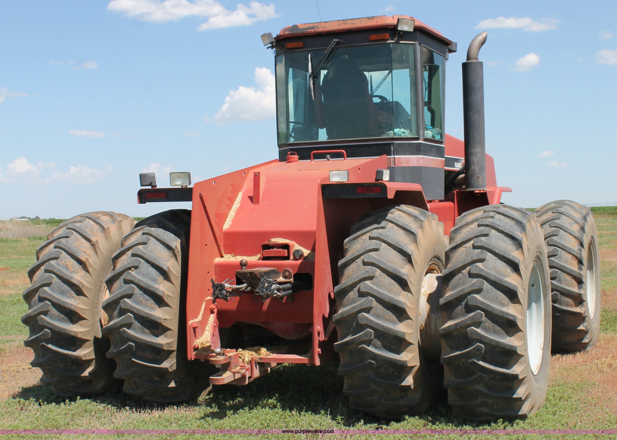 Purple Wave is selling a used Articulated 4-Wheel Drive Tractor in Texas. This item is a 1992 Case IH 9280 4WD tractor with the following: Approximately 8,900 hours, Cummins NTA-855-A 855 C.I.D. six cylinder diesel engine, 375 HP, Serial 30334780, Powershift transmission, 12F-3R gears, Fifth, seventh, and ninth gears inoperable, AC and heat, AM/FM/CD, Tilt steering wheel, Air suspension seat, (4) sets of rear hydraulic remotes, 24.5-32 tires, Serial JCB0029499
