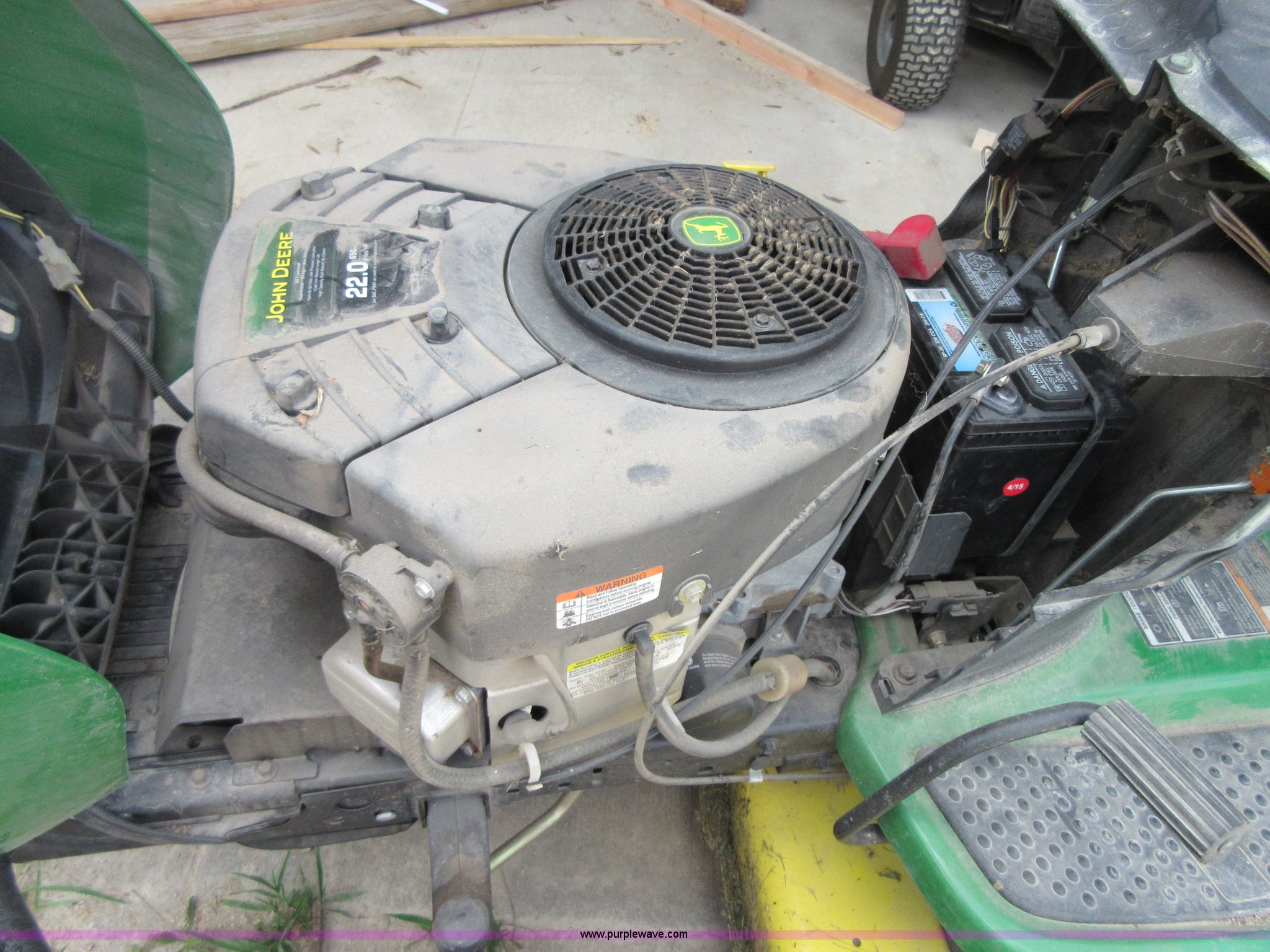 Purple Wave is selling a used Lawn Mower in Kansas. This item is a 2013 John Deere D130 lawn mower with the following: 57 hours on meter, 42" cut, John Deere gas engine, 22 HP, Hydrostatic transmission, Serial 1GXD130ETCC317767