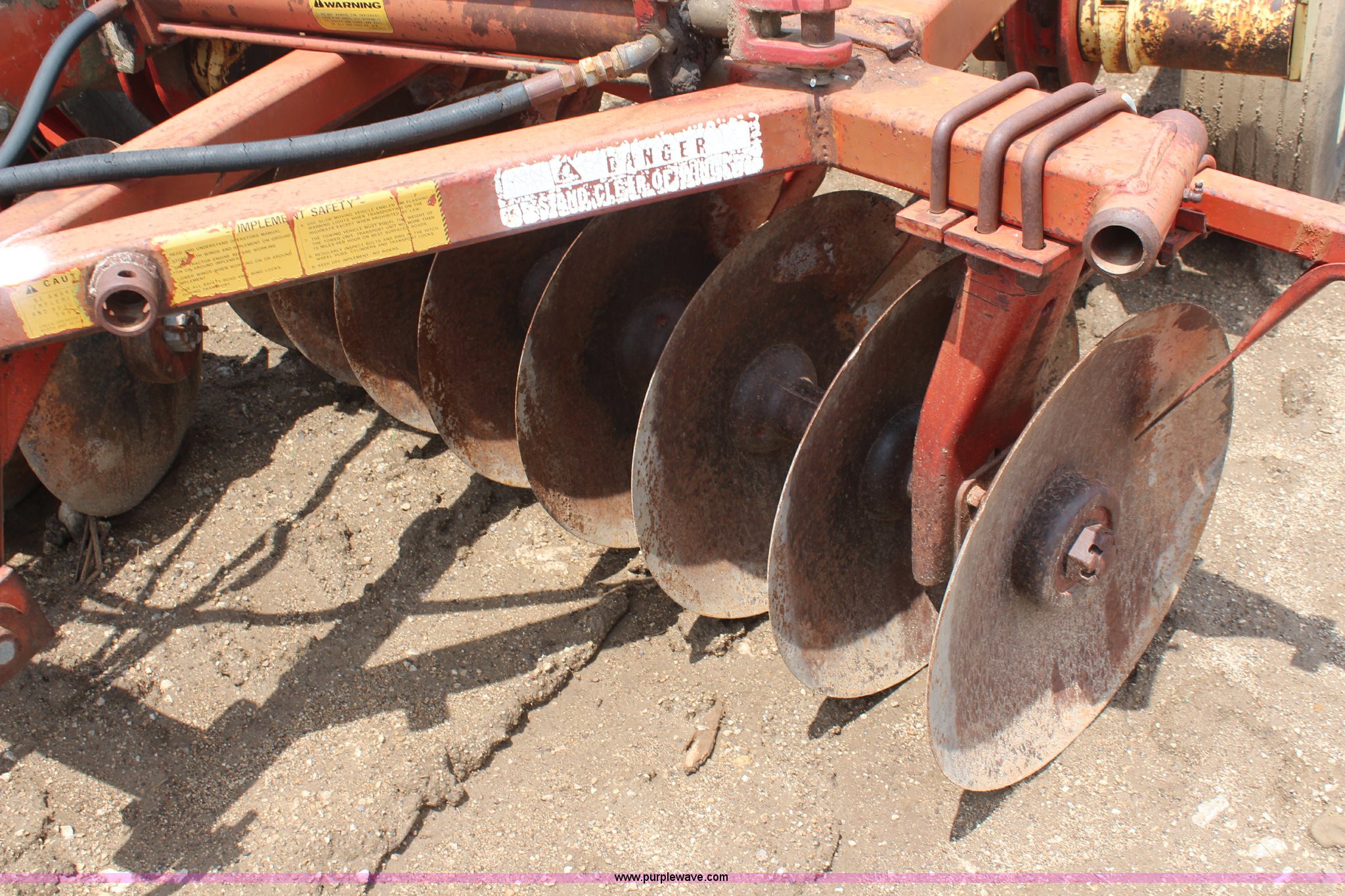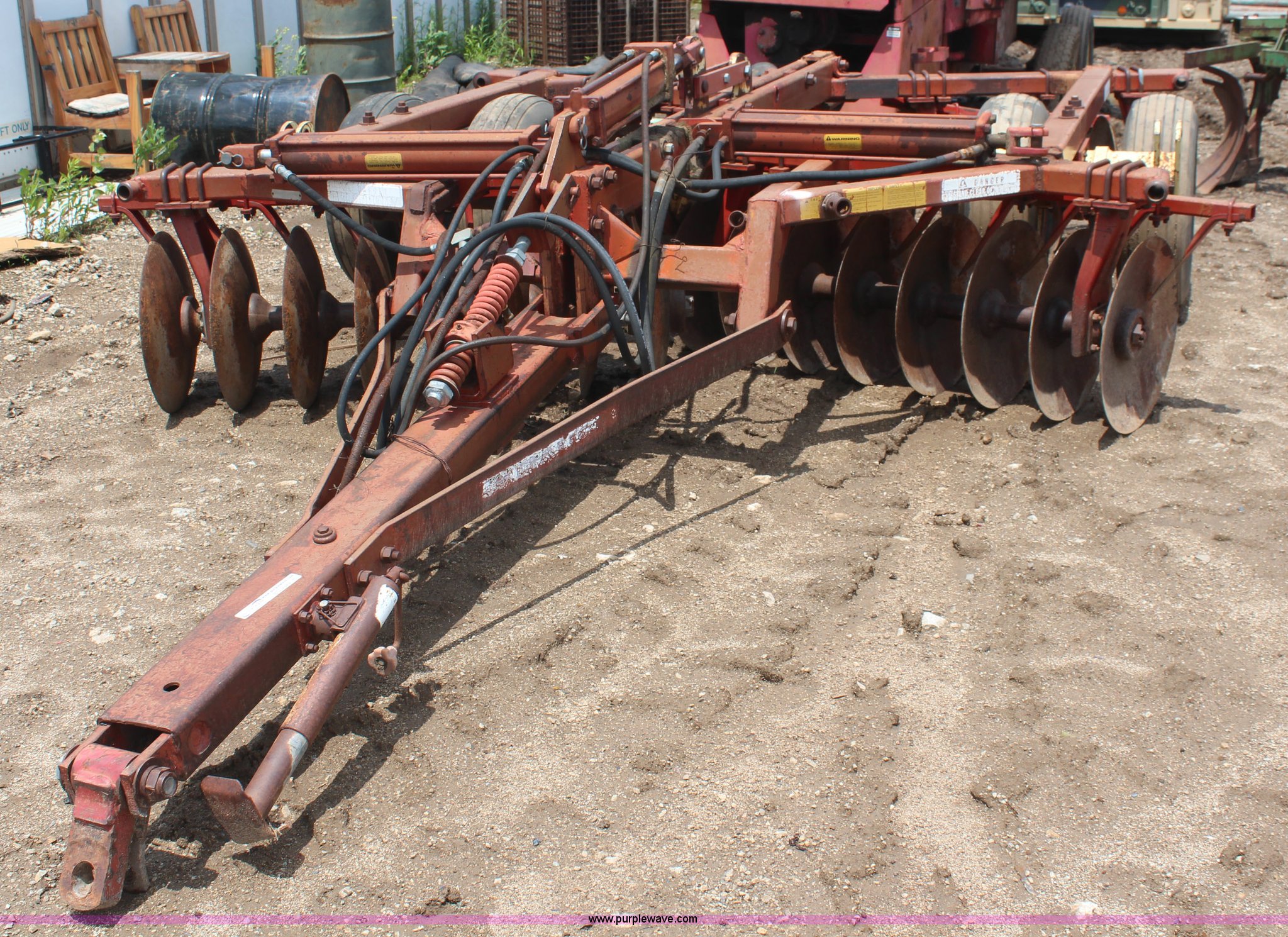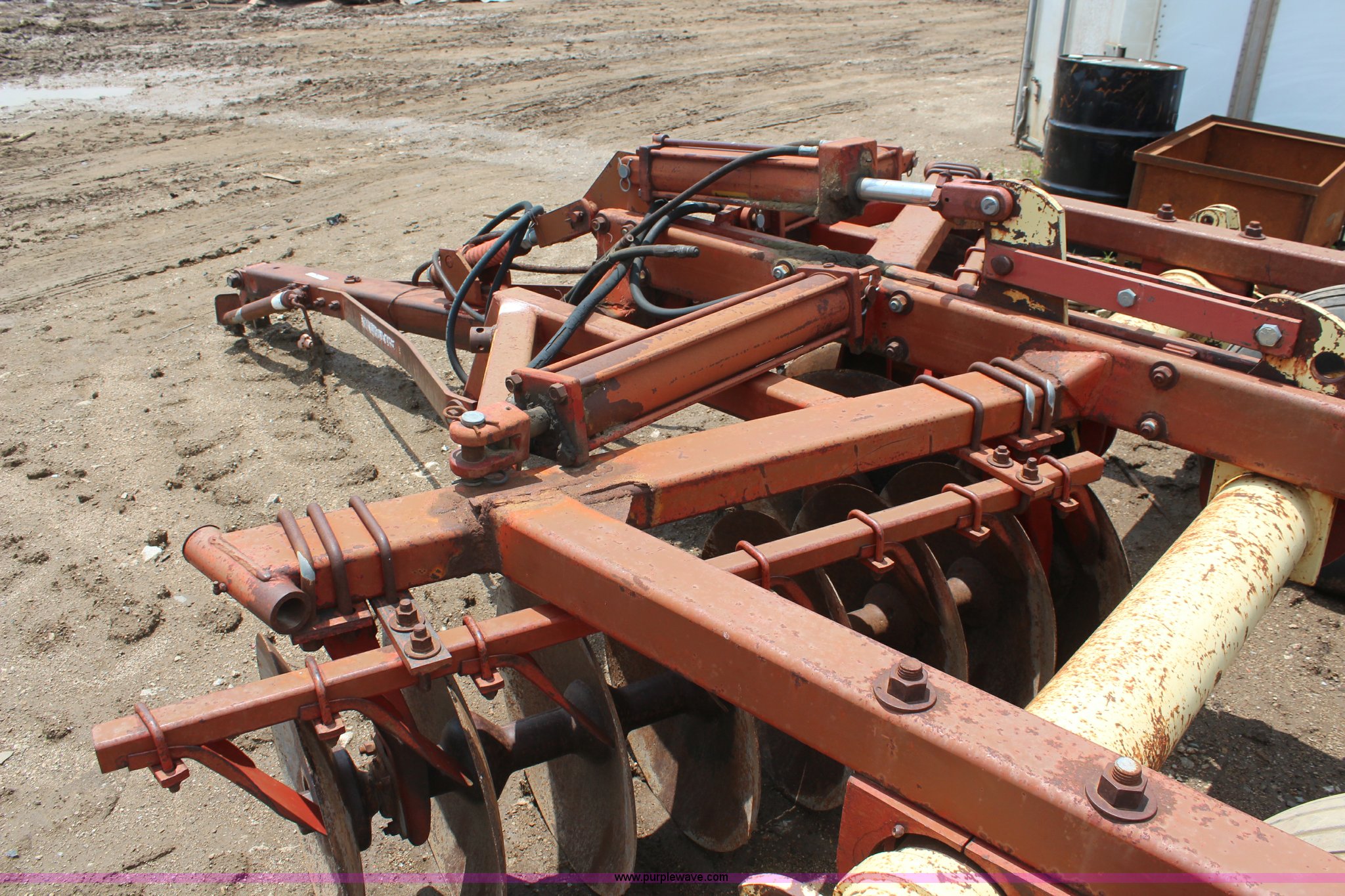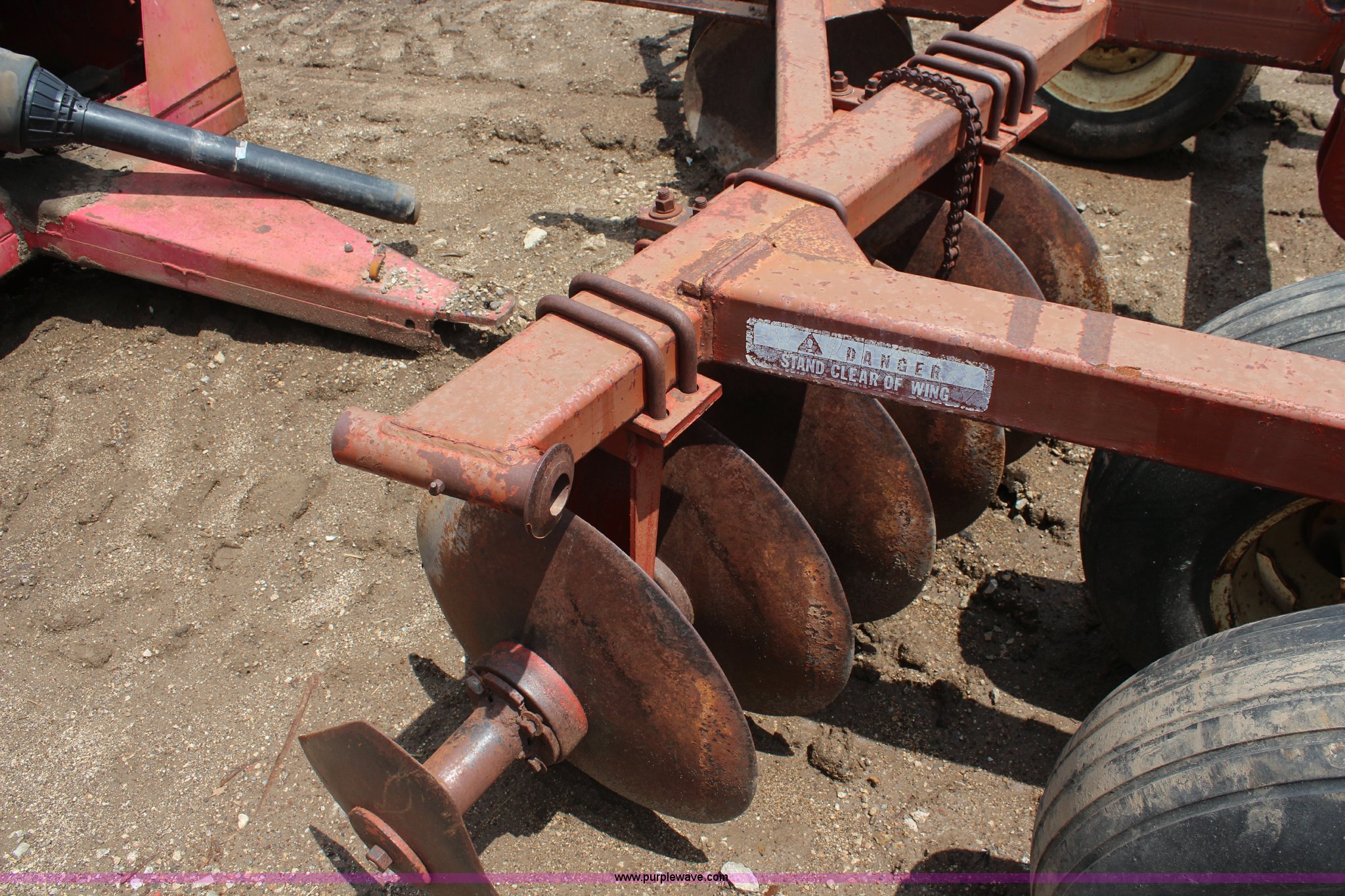 Purple Wave is selling a used Disk in Kansas. This item is a Krause disk with the following: 9'W, Center section, Hydraulic lift, 9.5L-15 tires