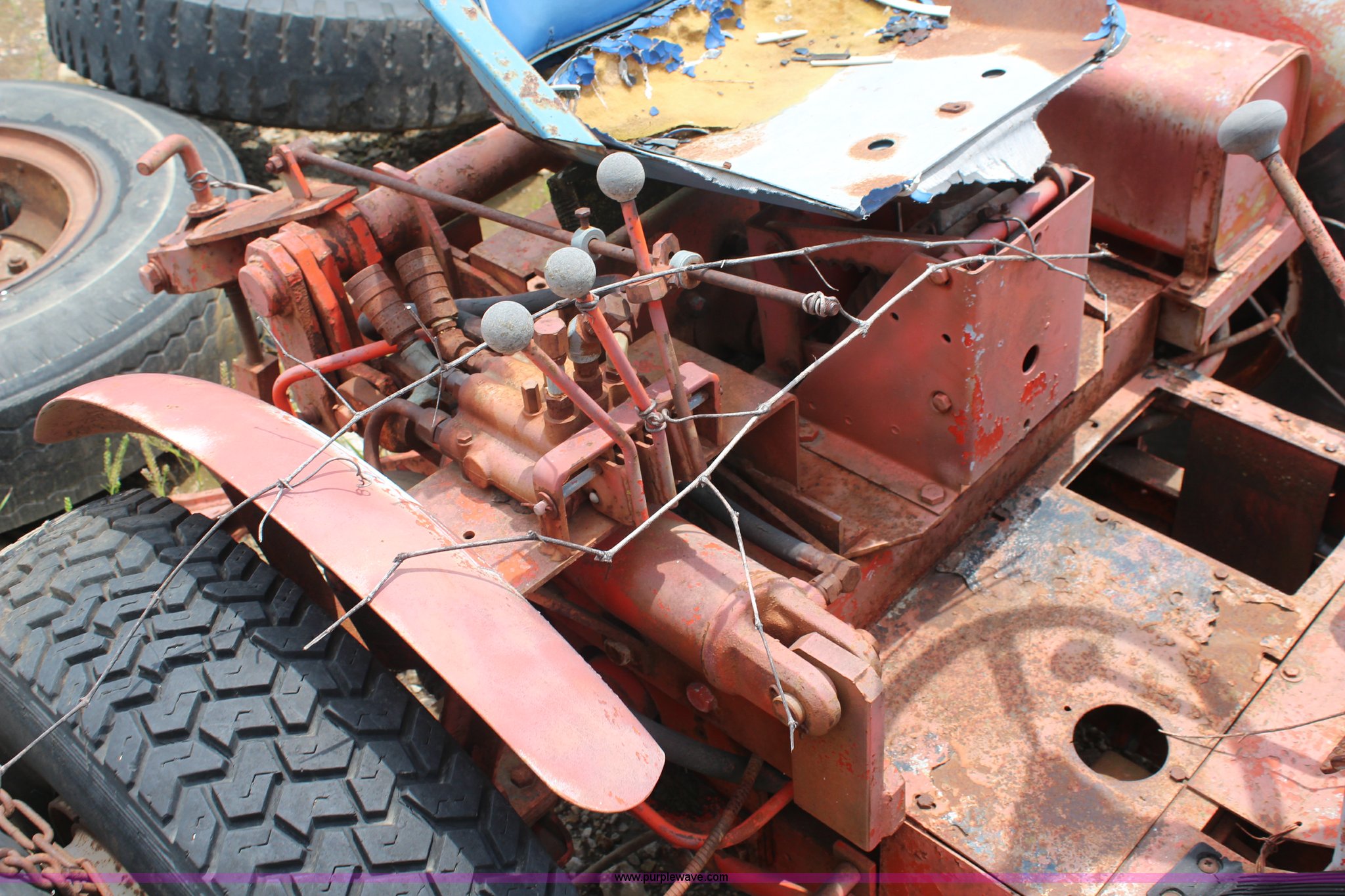 Purple Wave is selling a used Tractor in Kansas. This item is a Jacobsen G10 turf tractor with the following: Four cylinder gas engine, Four speed transmission, Three point, 540 PTO, Hydraulic remote, 9.5L-14 front tires, 7.50-16 rear tires, Non-operational unit, Serial 17046