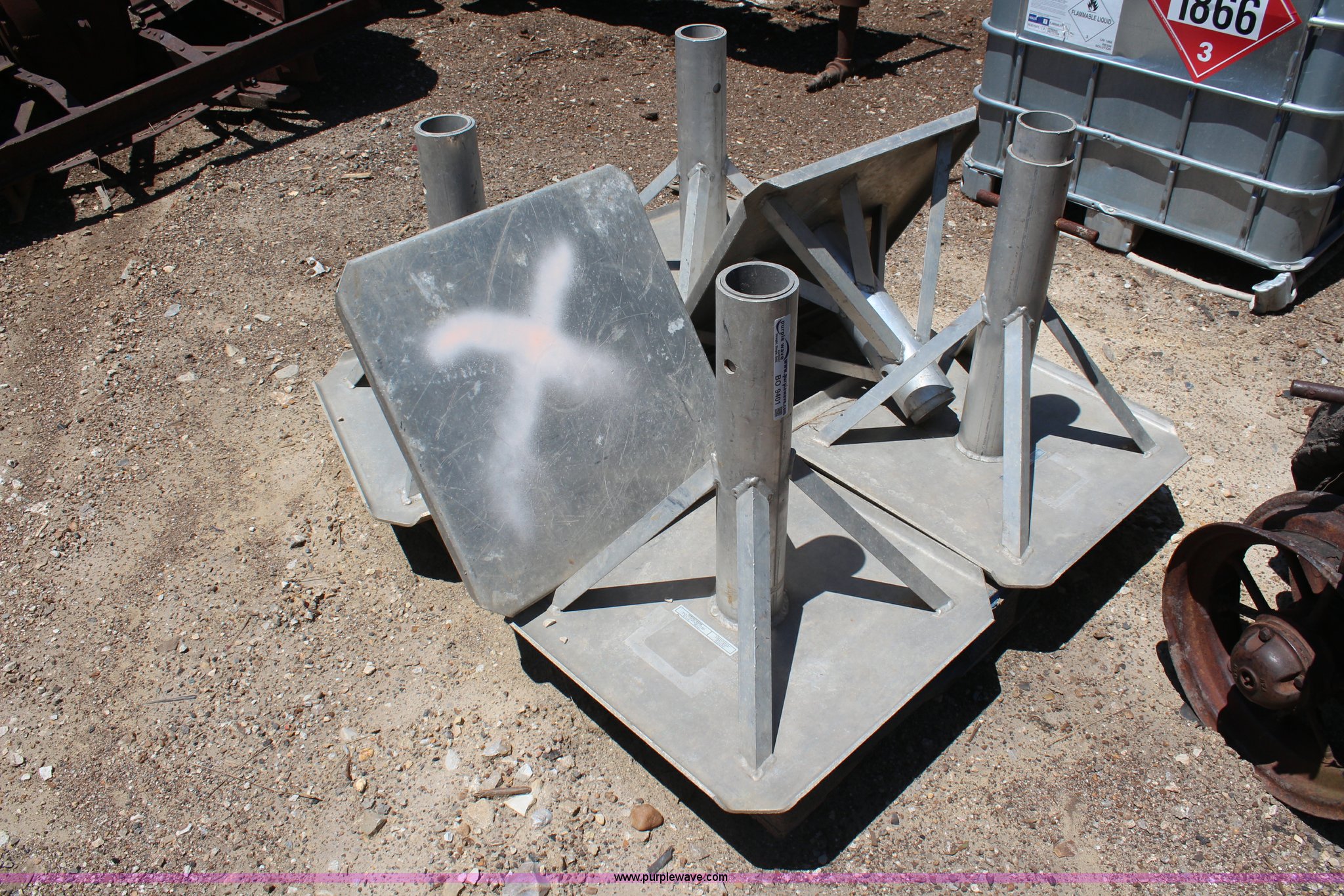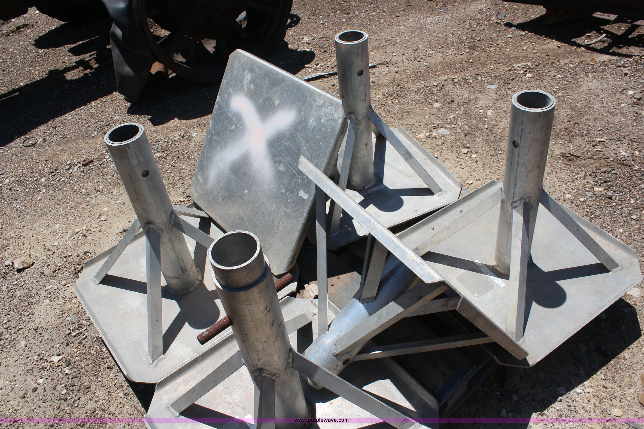 (6) aluminum jack stands. 22" x 22" base, 22" retracted height, 36" extended height. 18070 E US 24. Wamego, KS 66547