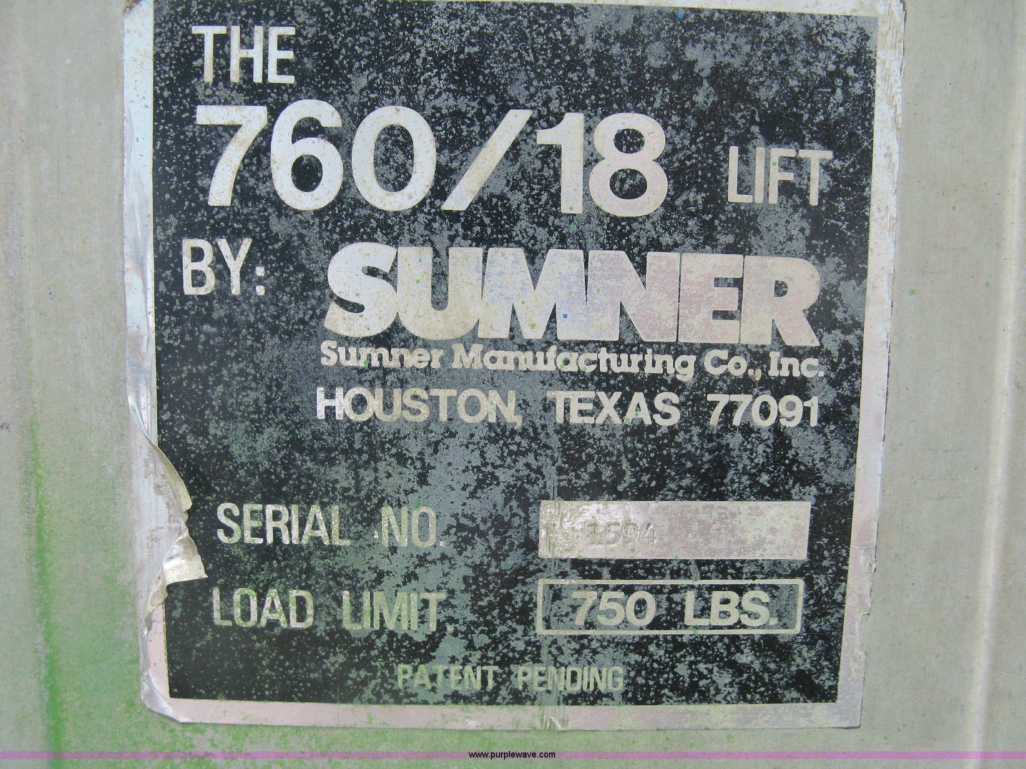 Sumner 760/18 manual platform/forklift has sold in Wichita, Kansas for $385. Item BQ9513 sold on July 29th, 2015.