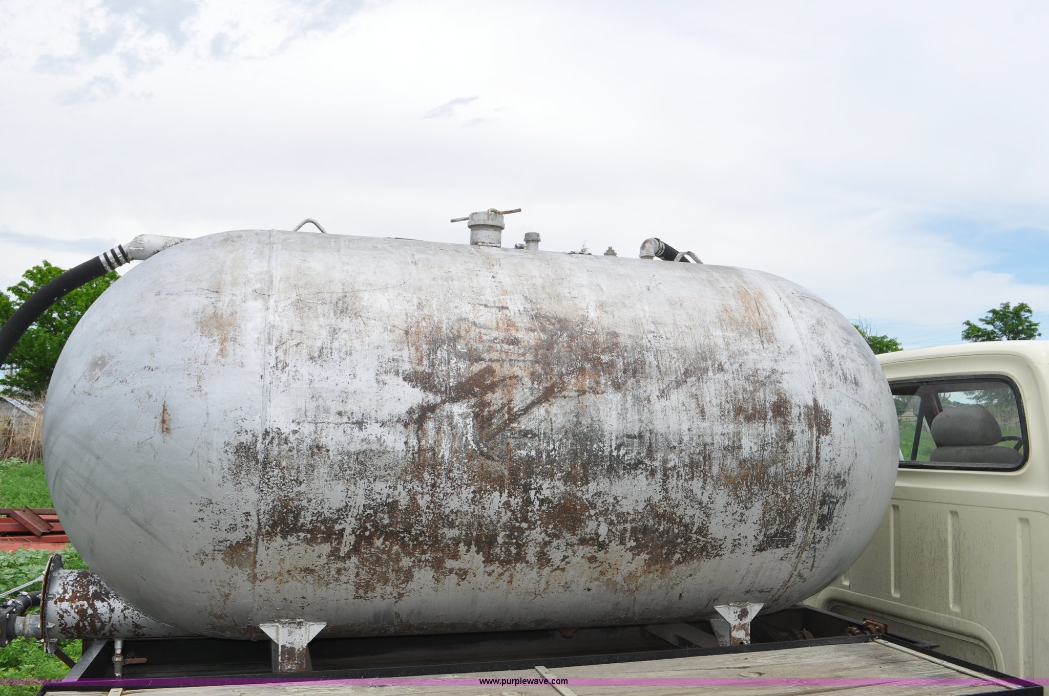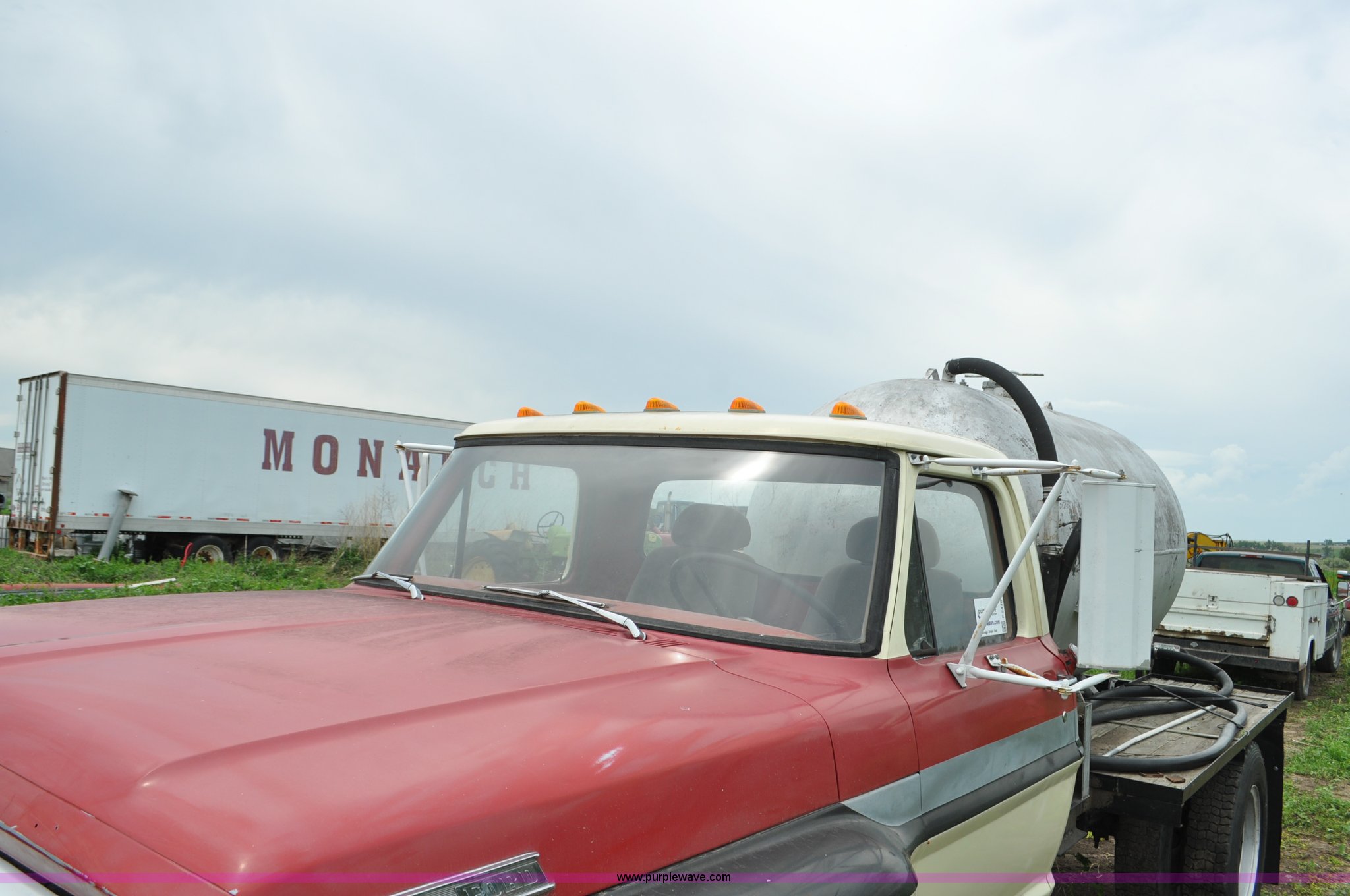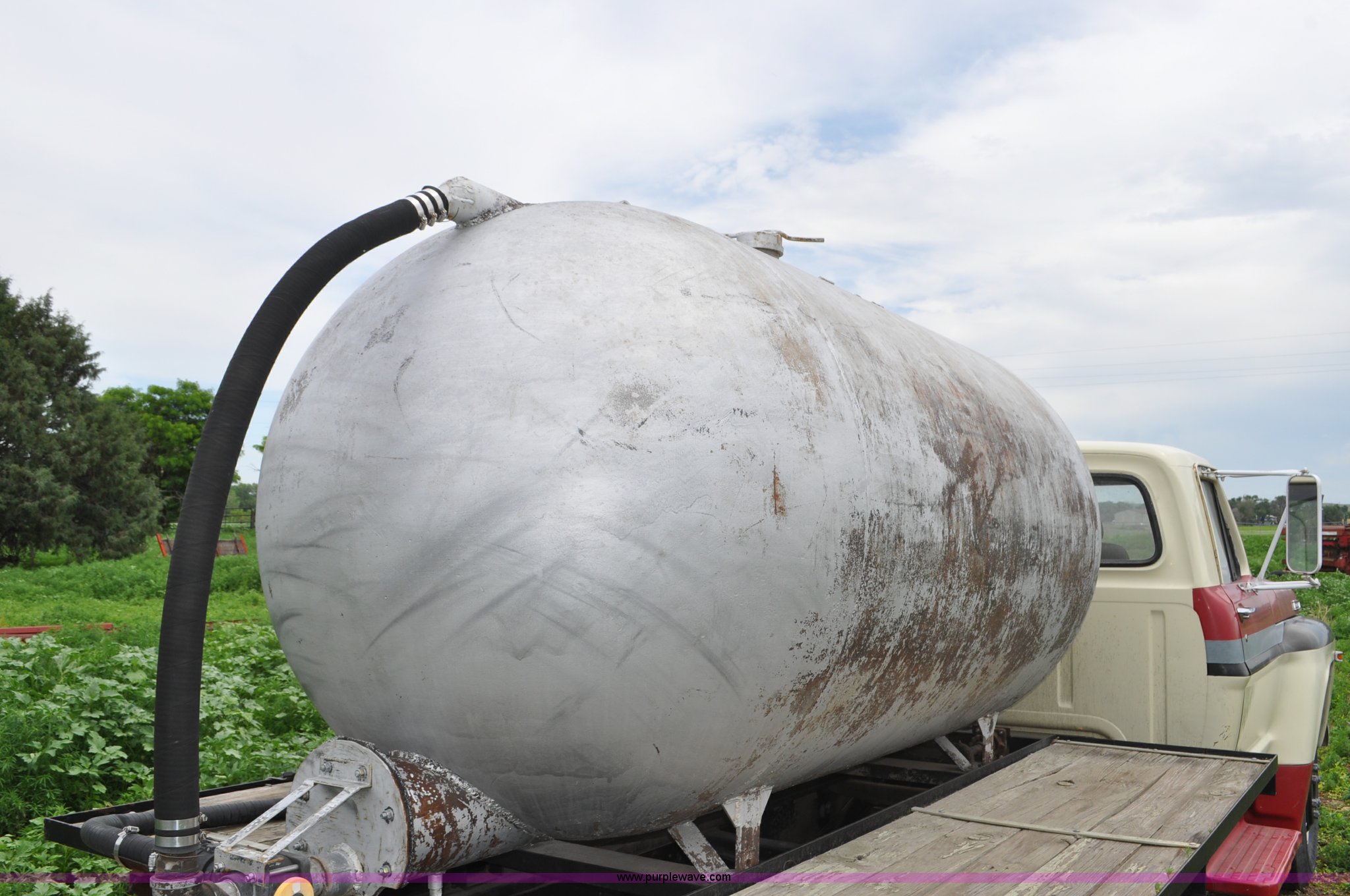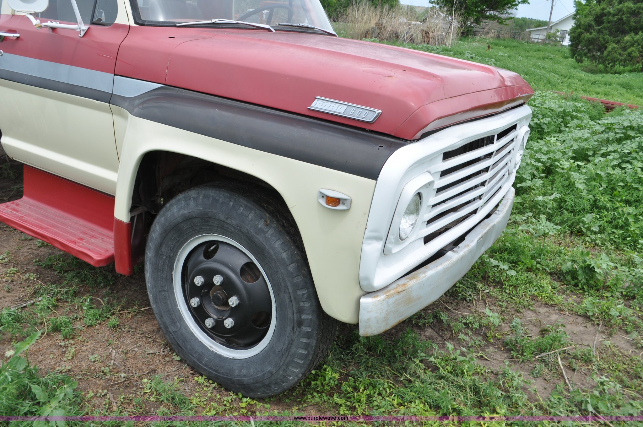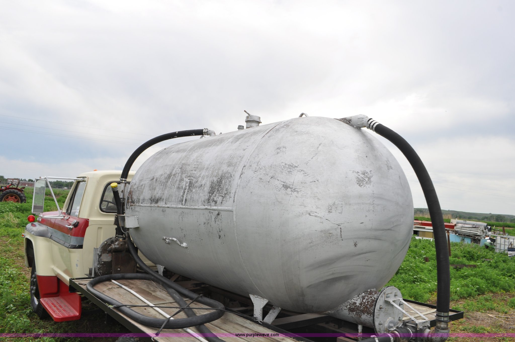 Purple Wave is selling a used Tank Truck or Water Truck in Nebraska. This item is a 1968 Ford F600 tank truck with the following: 66,302 miles on odometer, Ford 330 330 C.I.D. eight cylinder gas engine, Four speed manual transmission, Two speed rear end, Heat, 29" x 103" fender/storage panels, 1,000 gallon used oil tank, Approx. 200 gallon of oil in tank, Clay Equipment Corp. pump, Model MTA210, Pressure/vacuum, PTO driven, Serial 73G644, Spring suspension, Hydraulic brakes, 156" wheelbase, Goodyear 9.00x20 front tires, Goodyear 8.25x20 rear tires, Seat replaced with buckets seats, Interior/exterior cosmetic damage