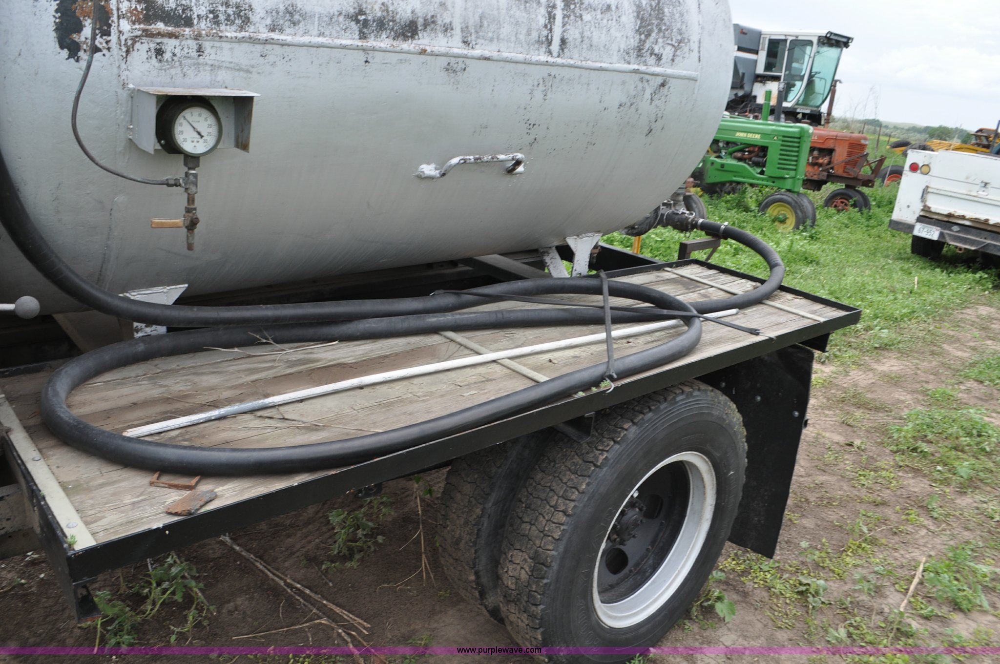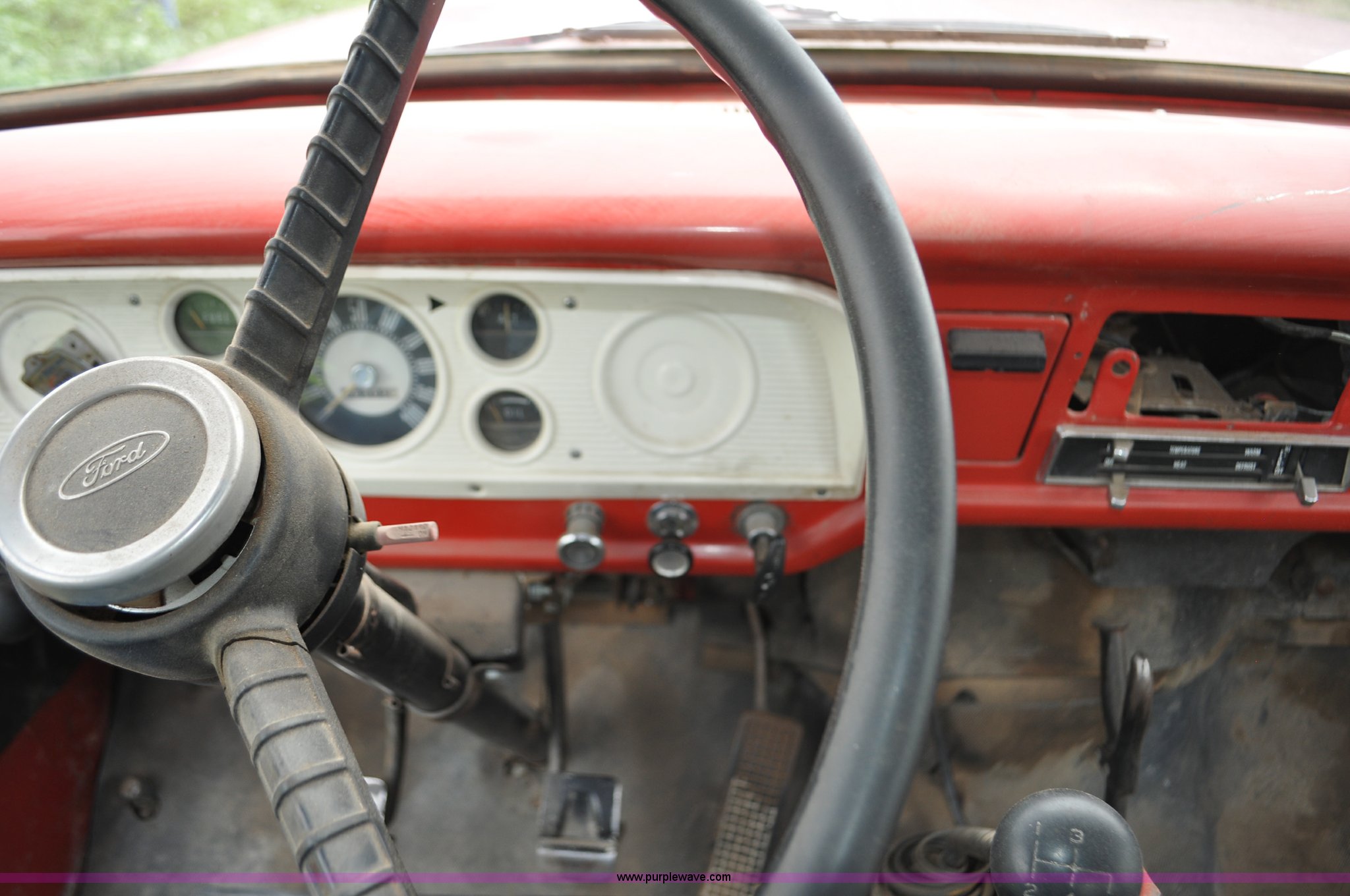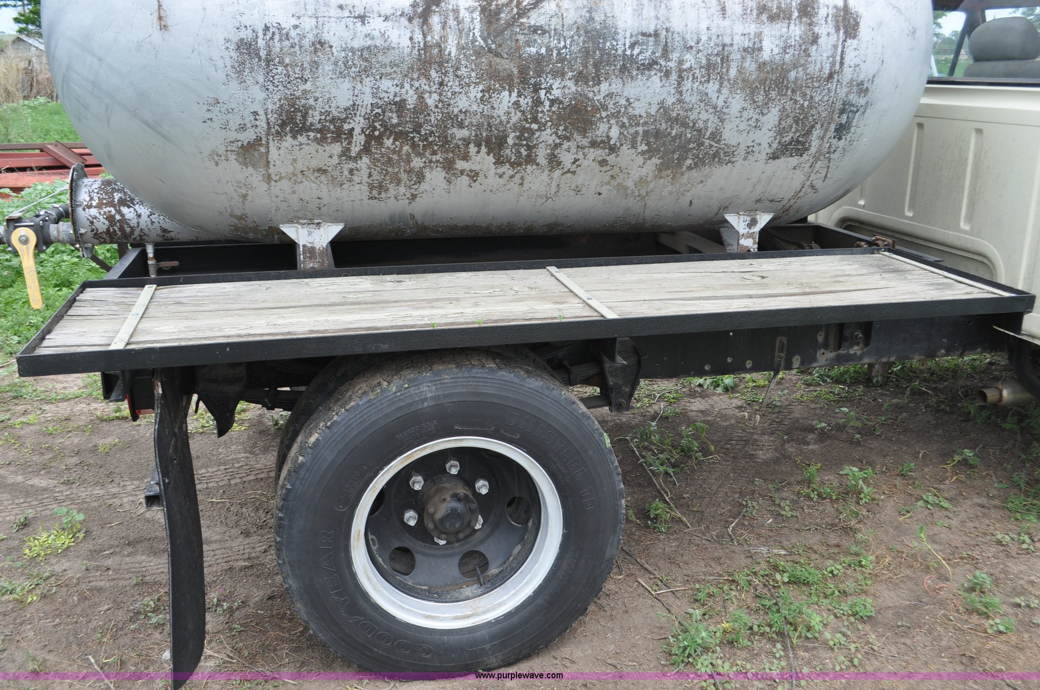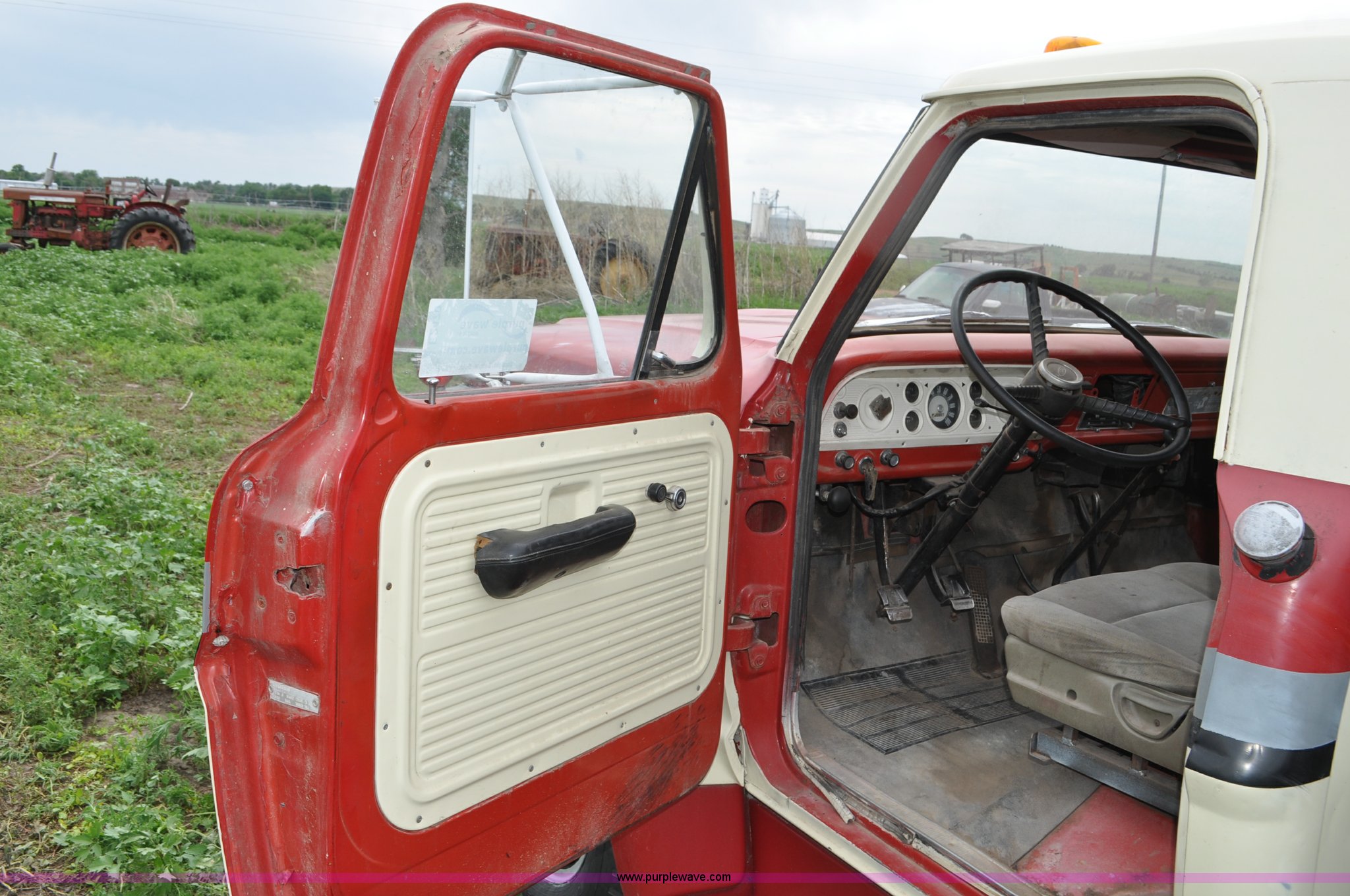 Purple Wave is selling a used Tank Truck or Water Truck in Nebraska. This item is a 1968 Ford F600 tank truck with the following: 66,302 miles on odometer, Ford 330 330 C.I.D. eight cylinder gas engine, Four speed manual transmission, Two speed rear end, Heat, 29" x 103" fender/storage panels, 1,000 gallon used oil tank, Approx. 200 gallon of oil in tank, Clay Equipment Corp. pump, Model MTA210, Pressure/vacuum, PTO driven, Serial 73G644, Spring suspension, Hydraulic brakes, 156" wheelbase, Goodyear 9.00x20 front tires, Goodyear 8.25x20 rear tires, Seat replaced with buckets seats, Interior/exterior cosmetic damage