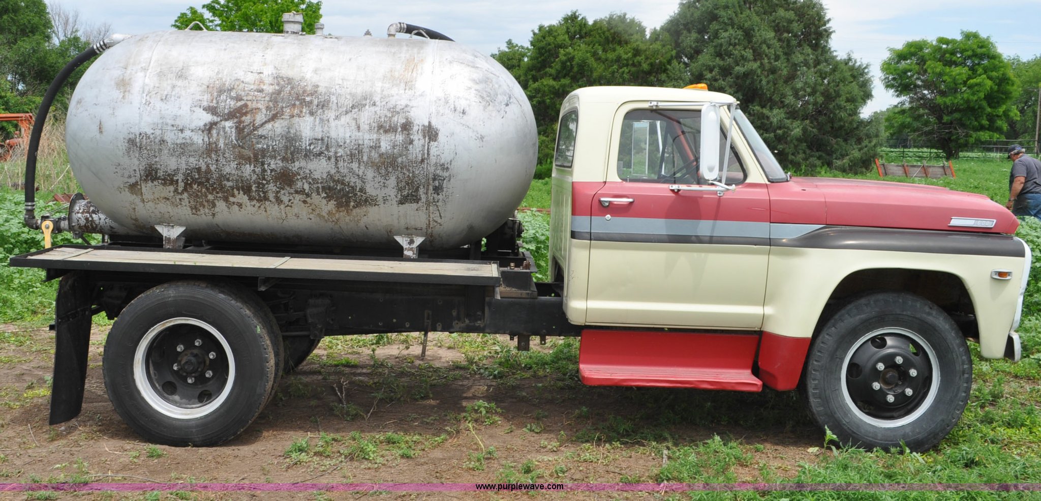 This 1968 Ford F600 tank truck will sell to the highest bidder regardless of price.