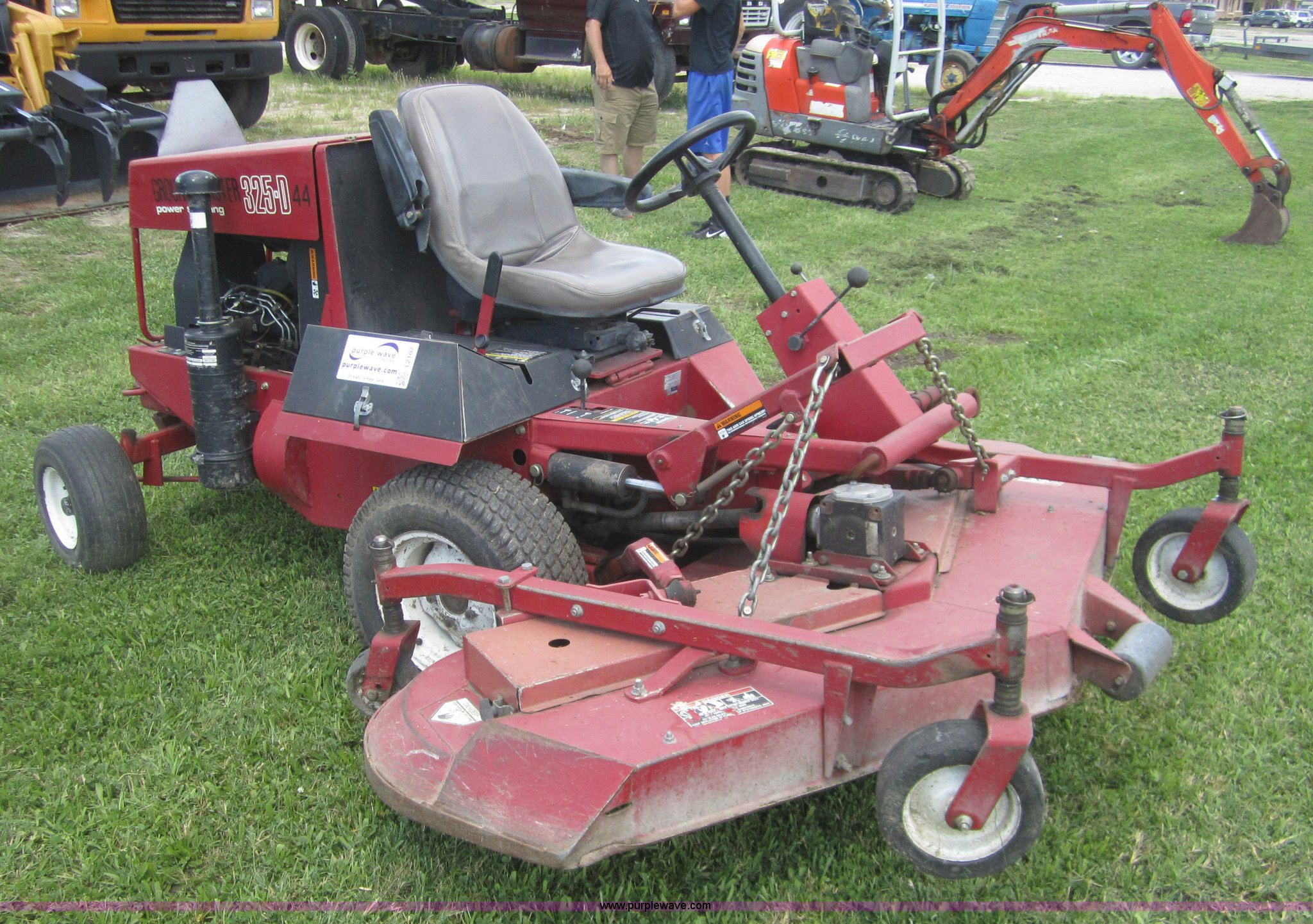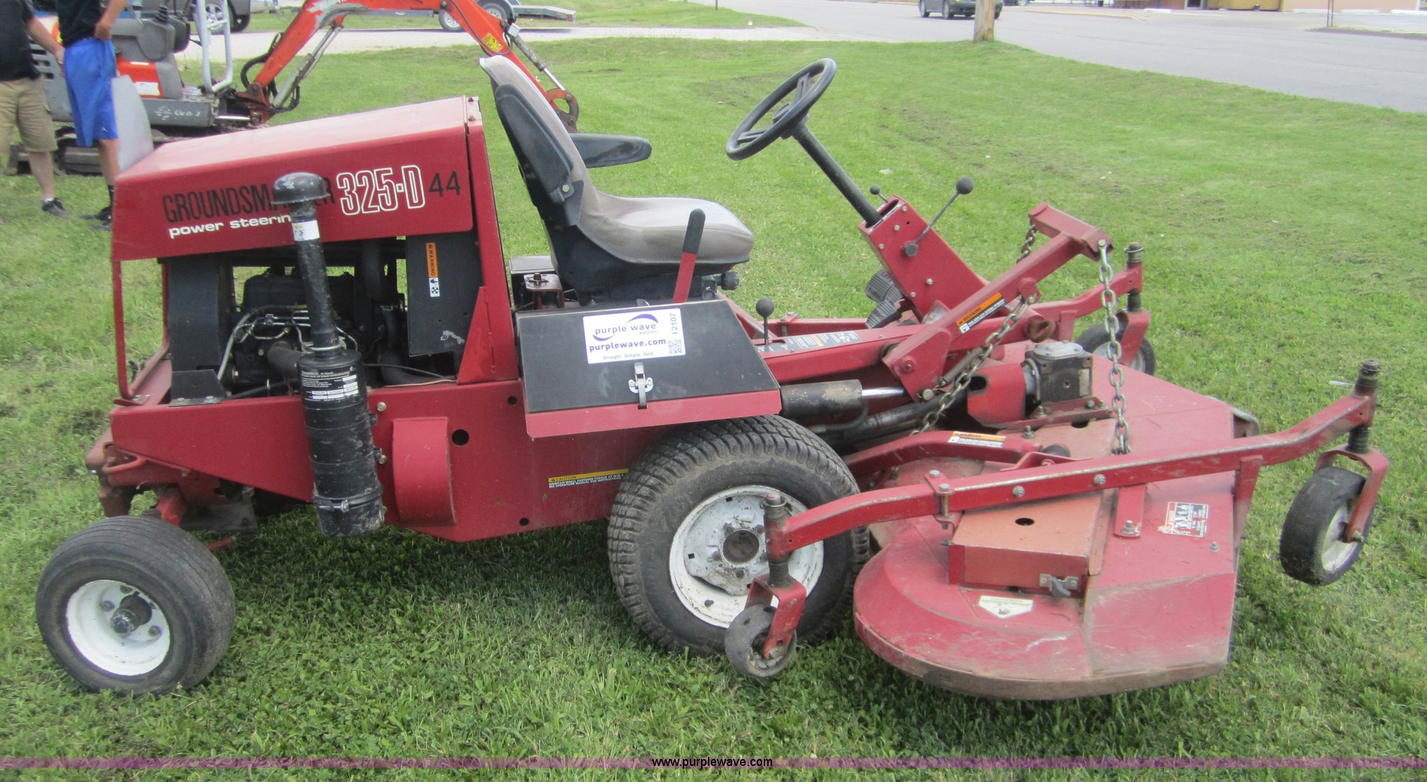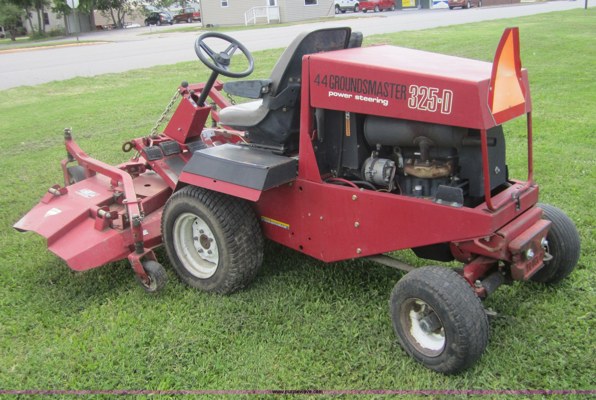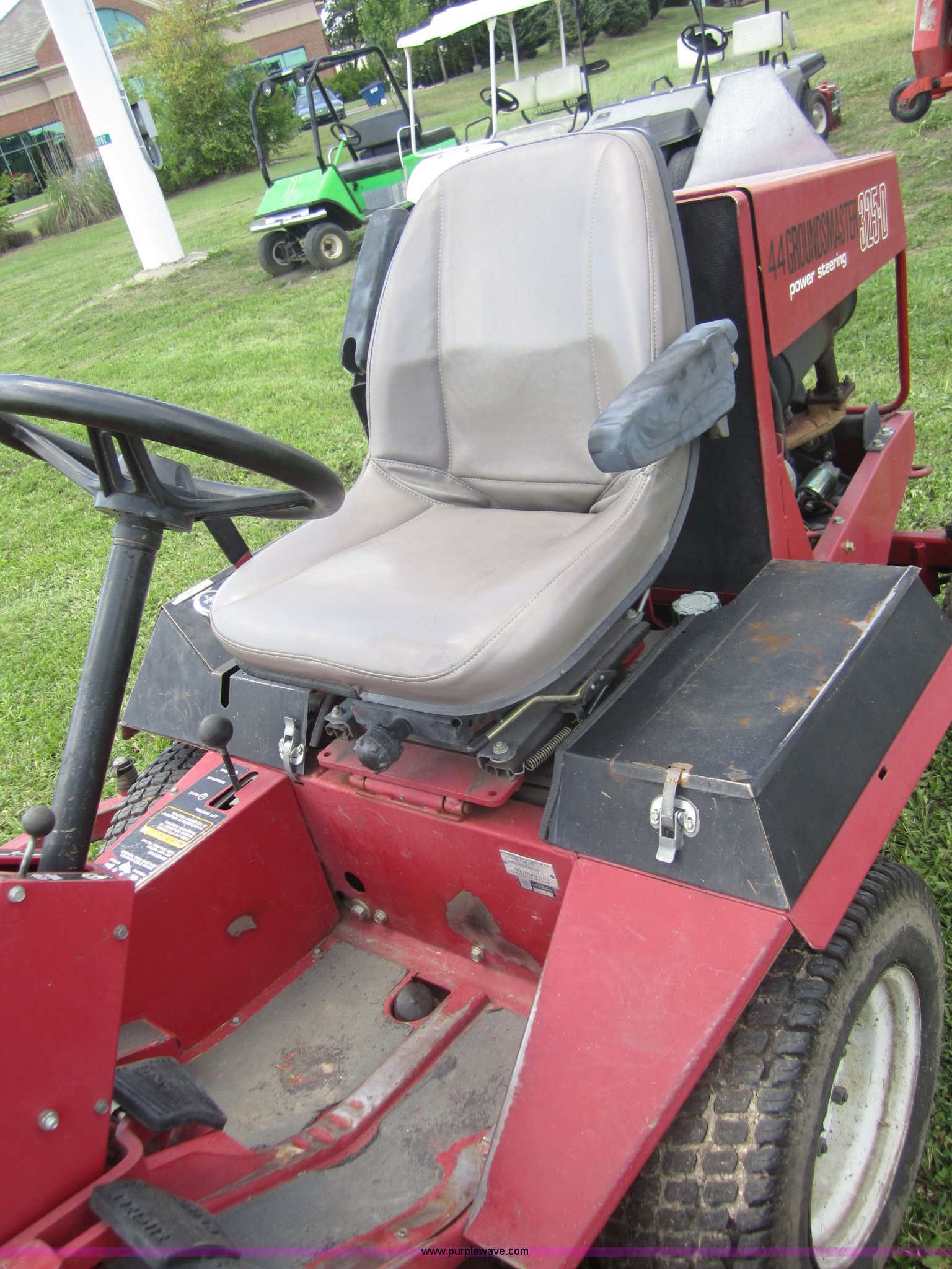 Purple Wave is selling a used Commercial Turf Mower in Kansas. This item is a Toro 325D lawn mower with the following: 4,768 hours on meter, Hours meter replaced at 5,667 hours, 6'W cut, Mitsubishi three cylinder diesel engine, Hydrostatic transmission, Suspension seat, Power steering, 23x3.50-12 drive tires, Serial 30507