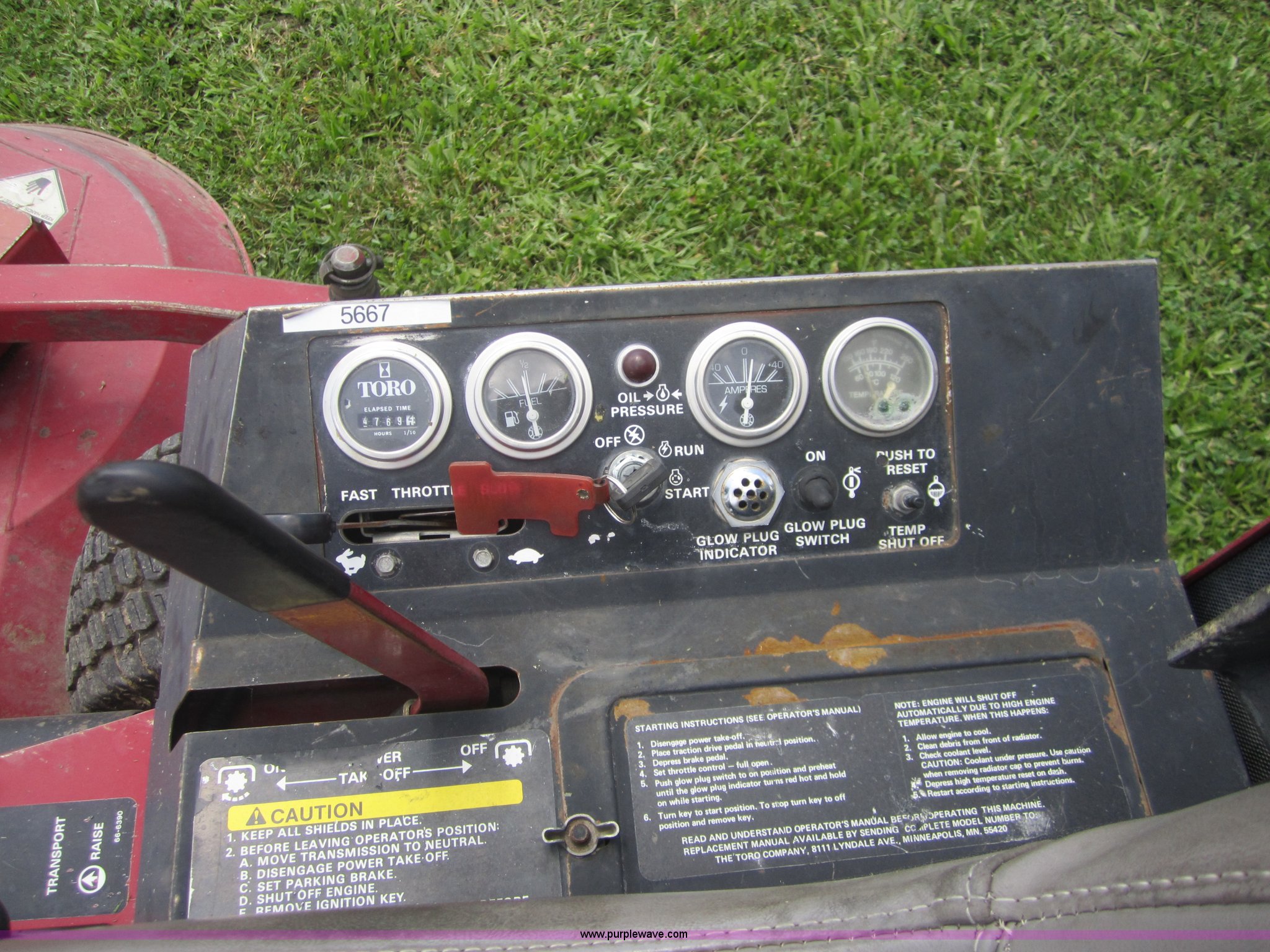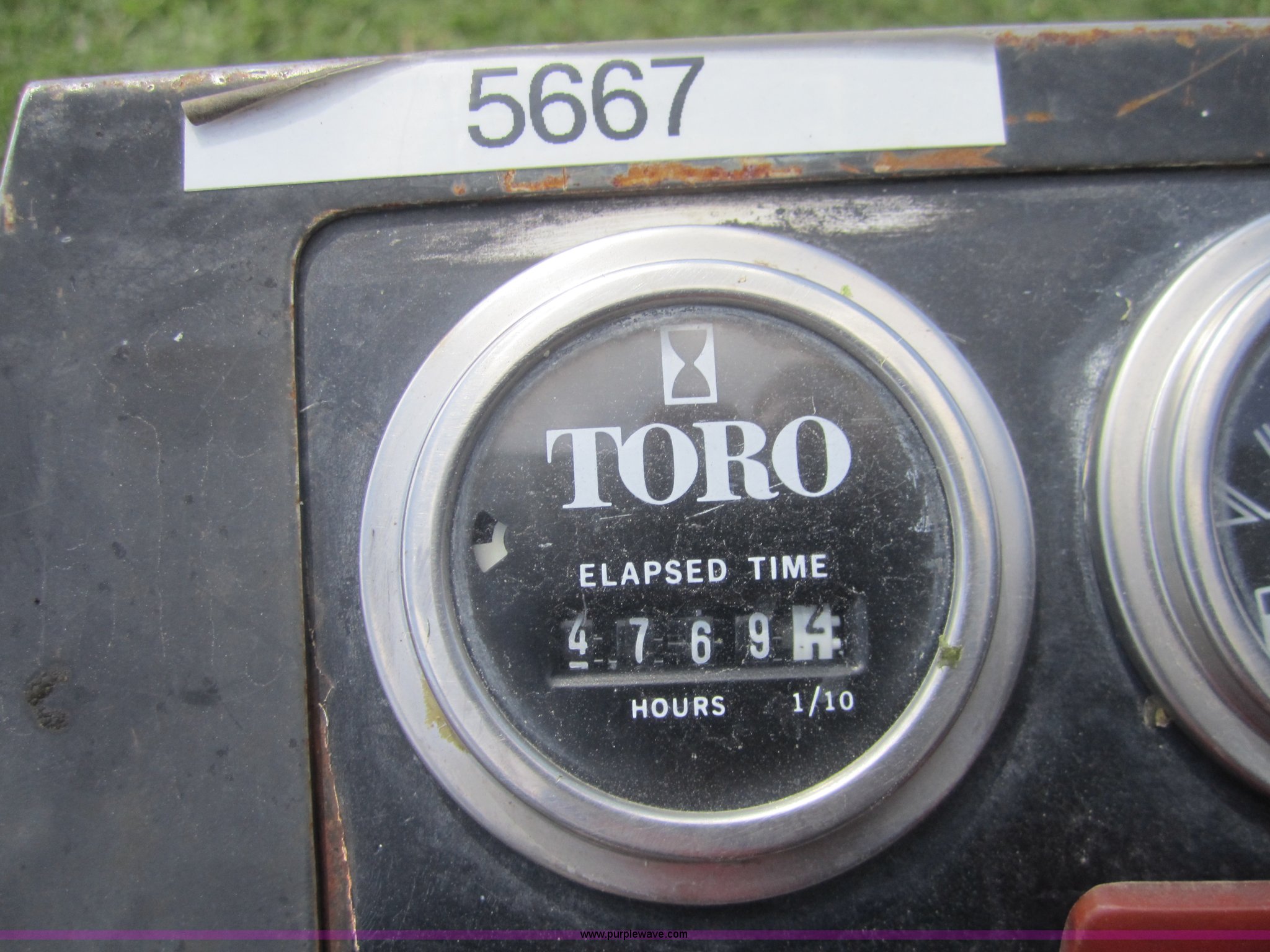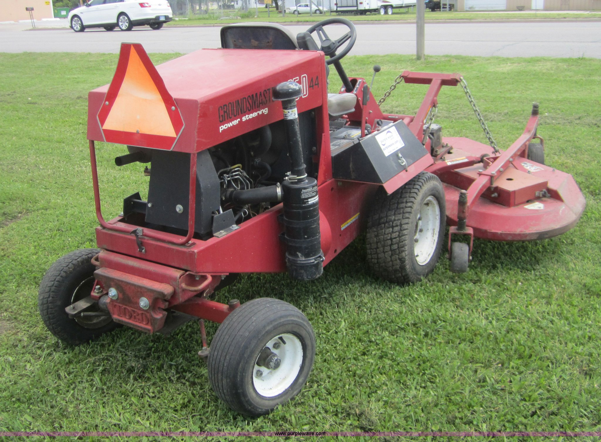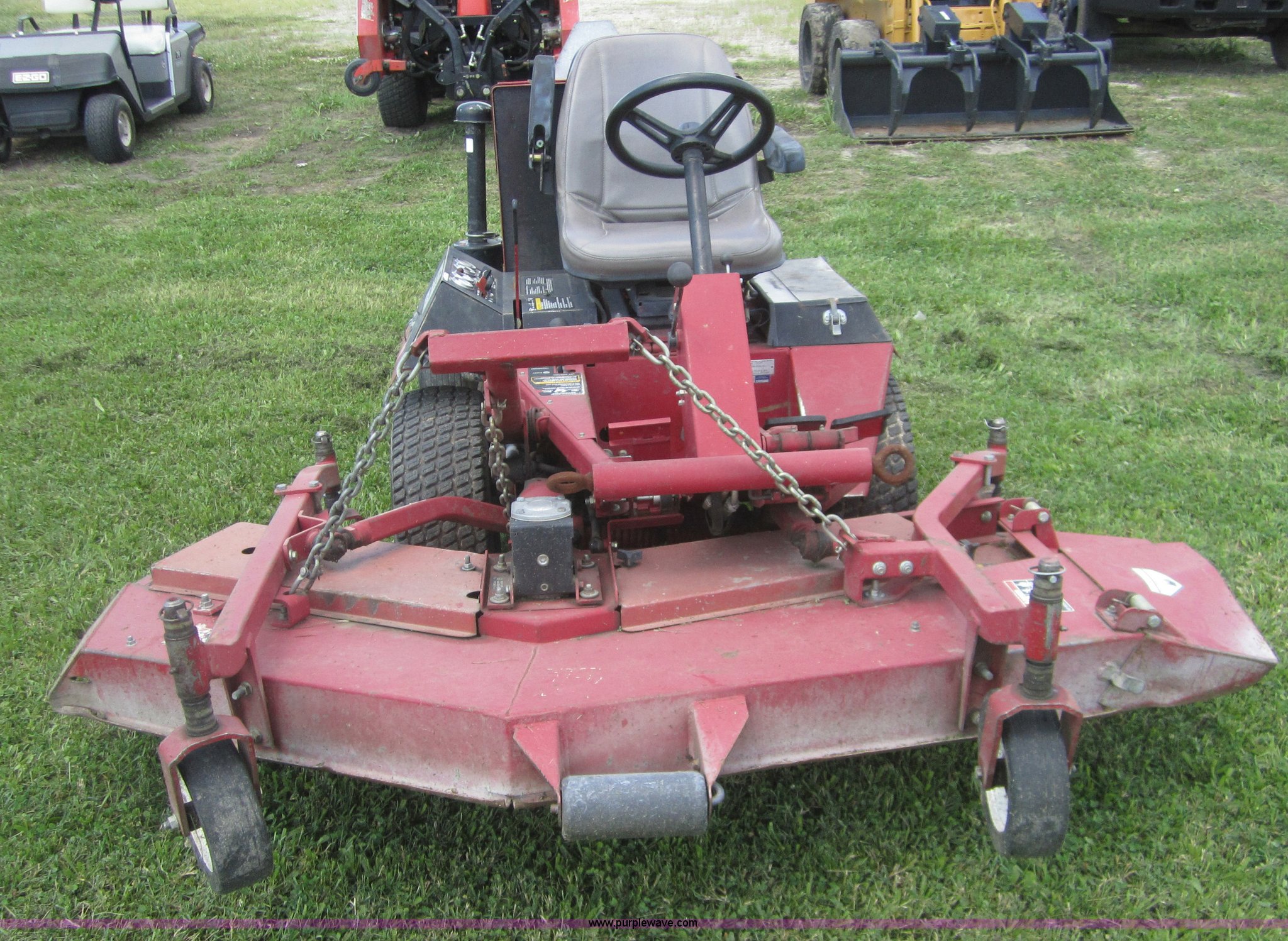 Purple Wave is selling a used Commercial Turf Mower in Kansas. This item is a Toro 325D lawn mower with the following: 4,768 hours on meter, Hours meter replaced at 5,667 hours, 6'W cut, Mitsubishi three cylinder diesel engine, Hydrostatic transmission, Suspension seat, Power steering, 23x3.50-12 drive tires, Serial 30507