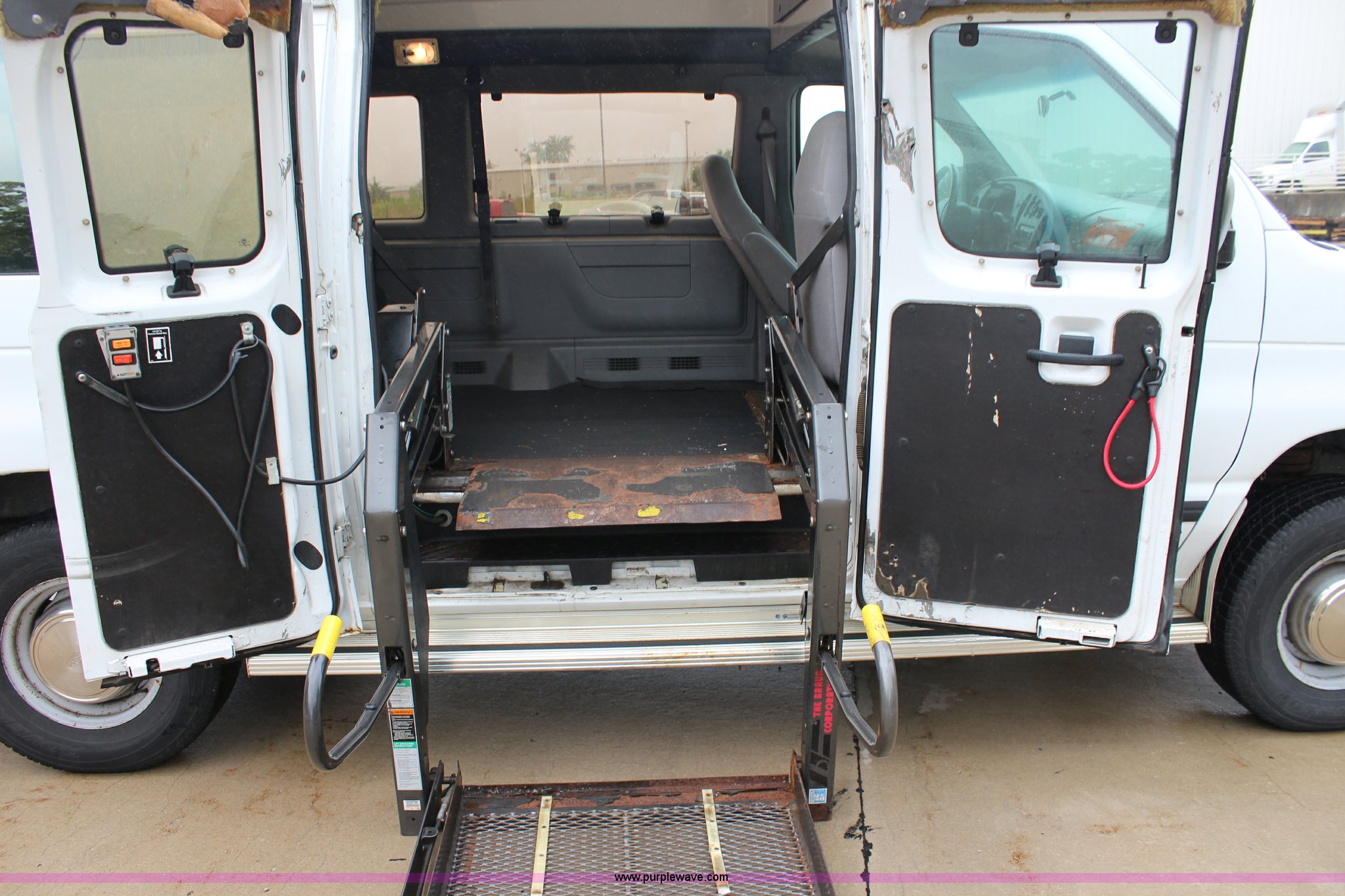 1997 Ford Club Wagon Super van. 122,511 miles on odometer, 5.4L V8 SOHC 16V gas engine, Automatic transmission, AC and heat, Tilt, Cruise, AM/FM, Power windows, Manual locks, Cloth interior, Wheelchair lift Needs to be repaired, Running boards, 245/75R16 tires, Interior/exterior cosmetic damage, Rust, Engine burns oil, Unit# JCD3850. 1FBJS31L3VHA89309. Johnson County. 19370 W 159th. Olathe, KS 66062