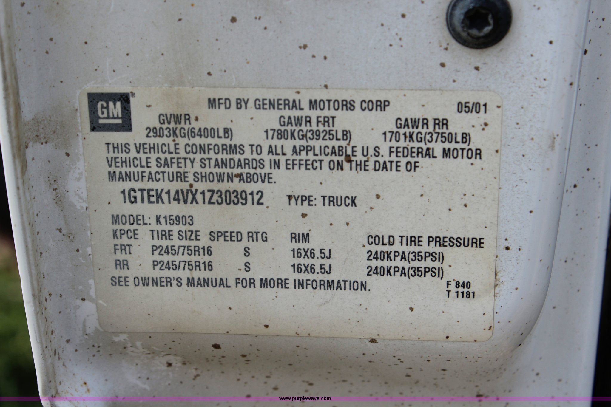 Purple Wave is selling a used 1/2 Ton Pickup or Van in Kansas. This item is a 2001 GMC Sierra 1500 pickup truck with the following: 274,034 miles on odometer, 4.8L V8 OHV 16V gas engine, Automatic transmission, Four wheel drive, AC and heat, Tilt, Cruise, AM/FM/CD, Power windows and locks, Cloth interior, Long bed, Toolbox, Receiver hitch, 265/75R16 tires, Rust, Transmission replaced 30,000 miles ago