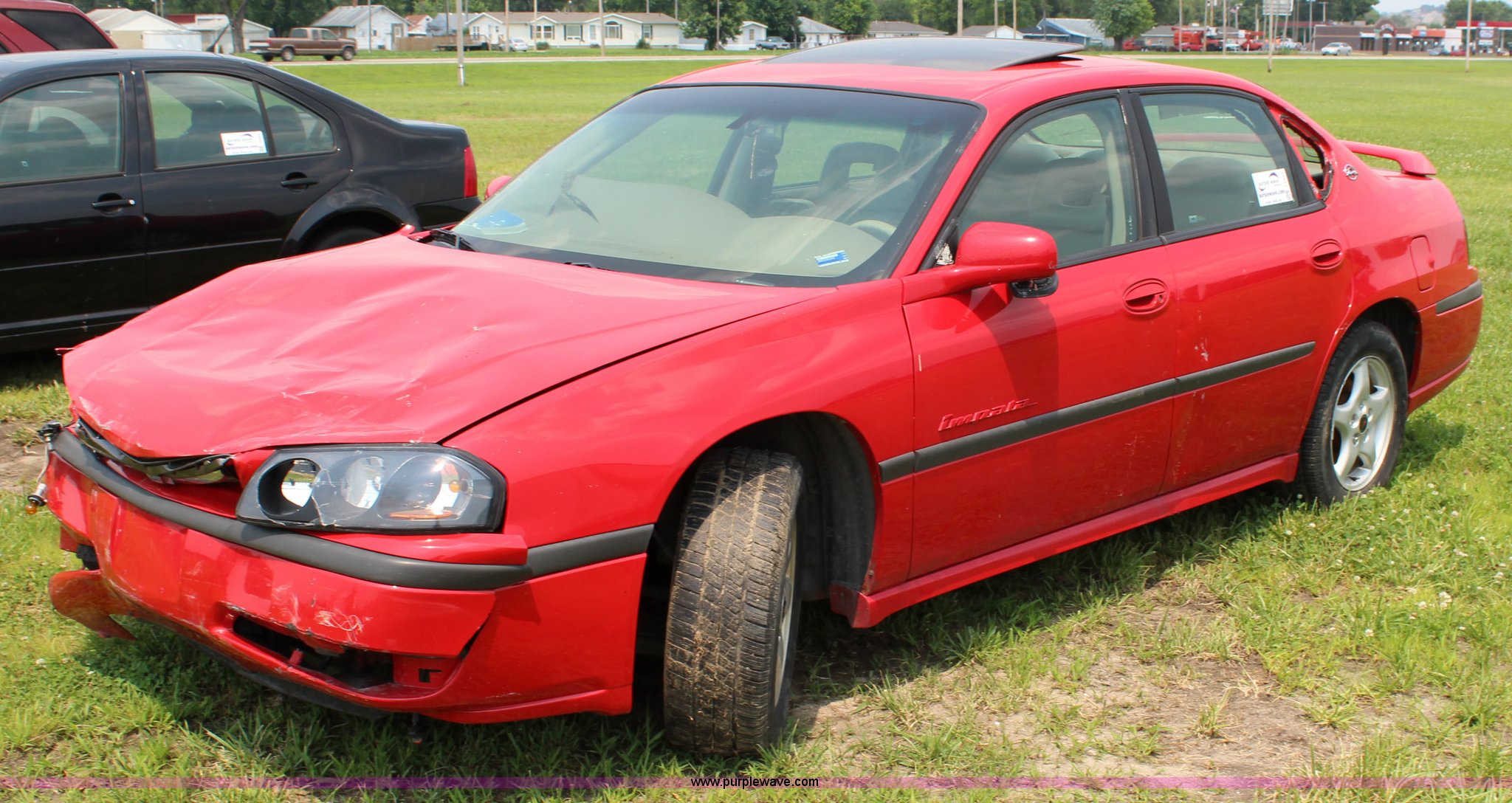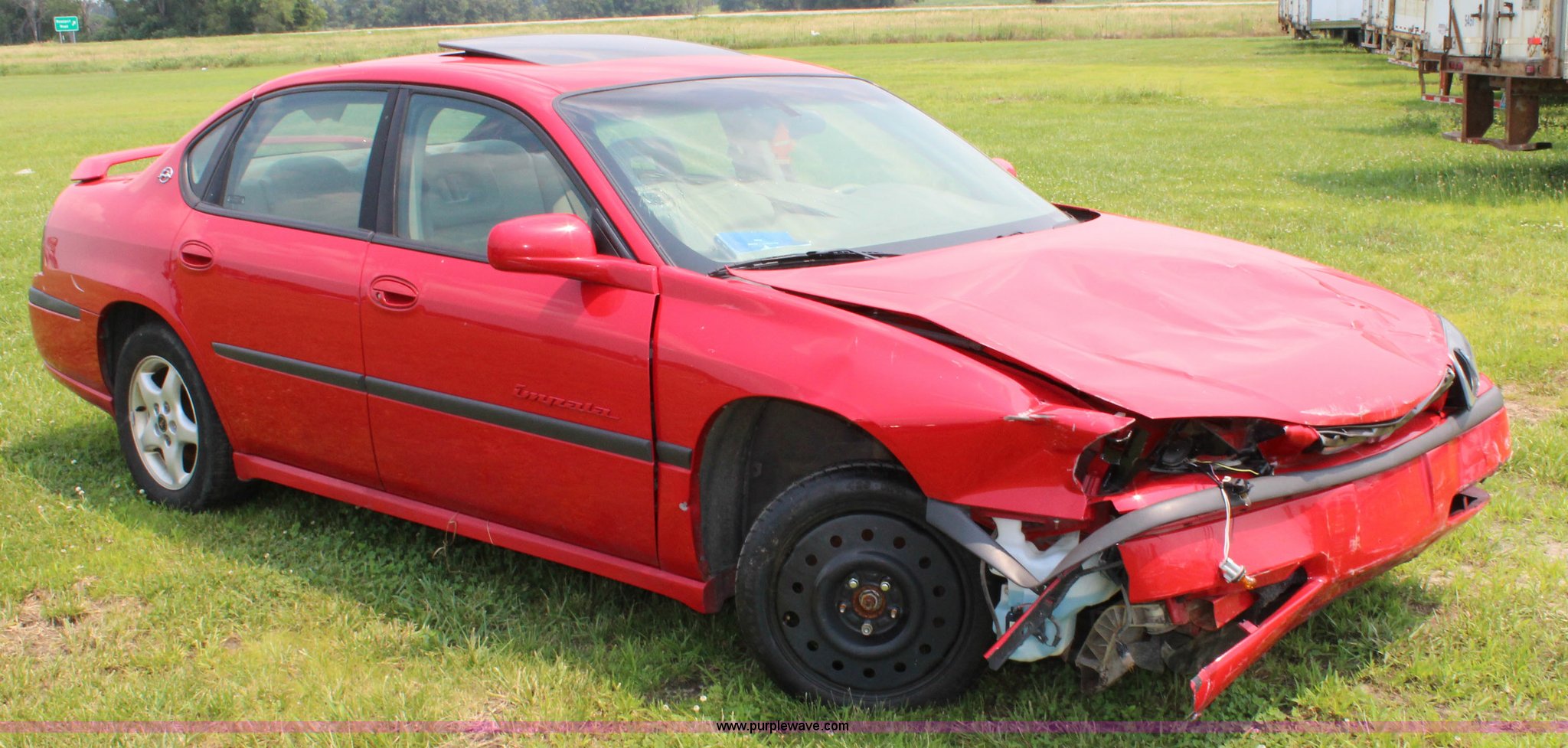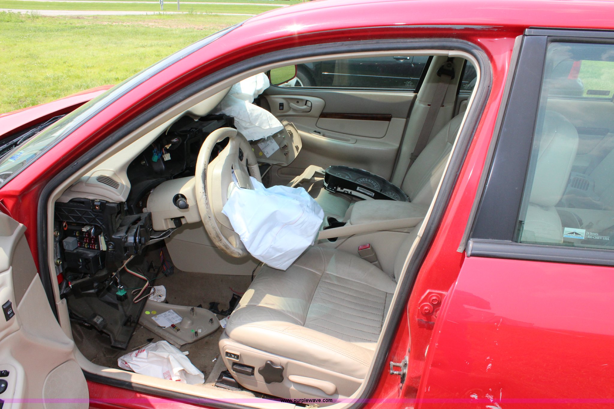 Purple Wave is selling a used Passenger Vehicle in Kansas. This item is a 2002 Chevrolet Impala LS with the following: Unknown miles on odometer, 3.8L V6 OHV 12V gas engine, Automatic transmission, Vinyl interior, Sunroof, 225/60R16 tires, Non-operational unit, parts only, Must be towed, Wrecked, Air bags deployed, Dash removed