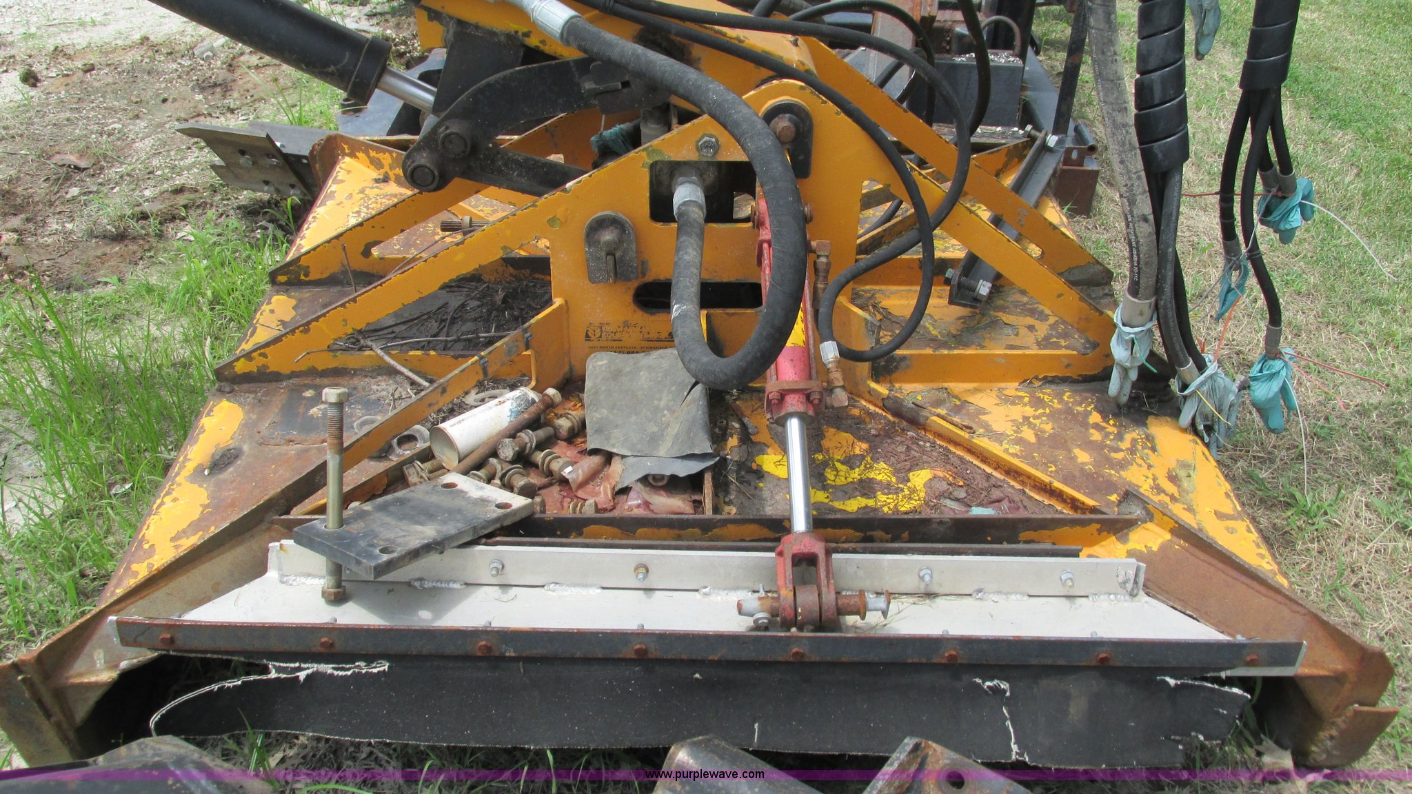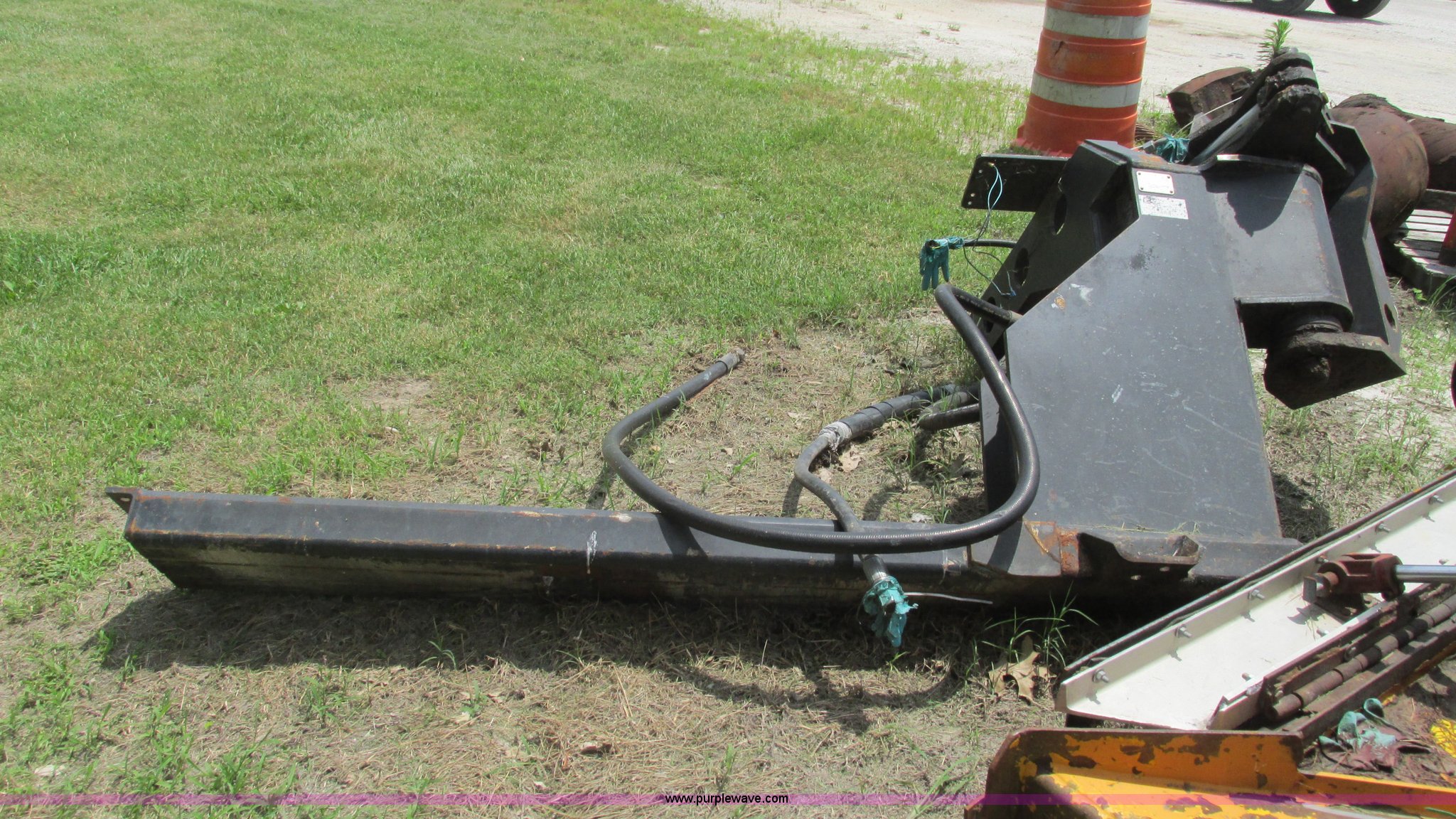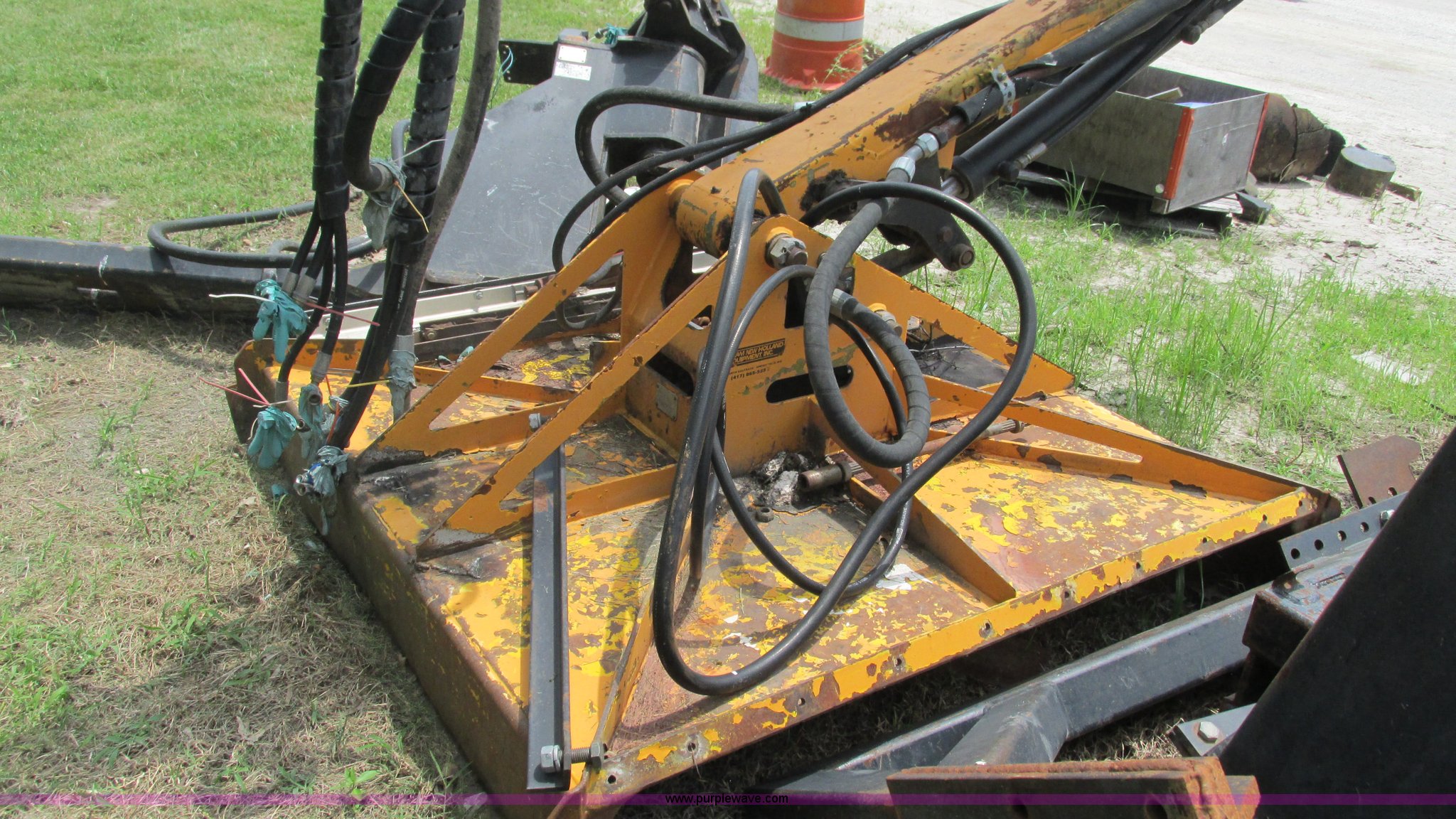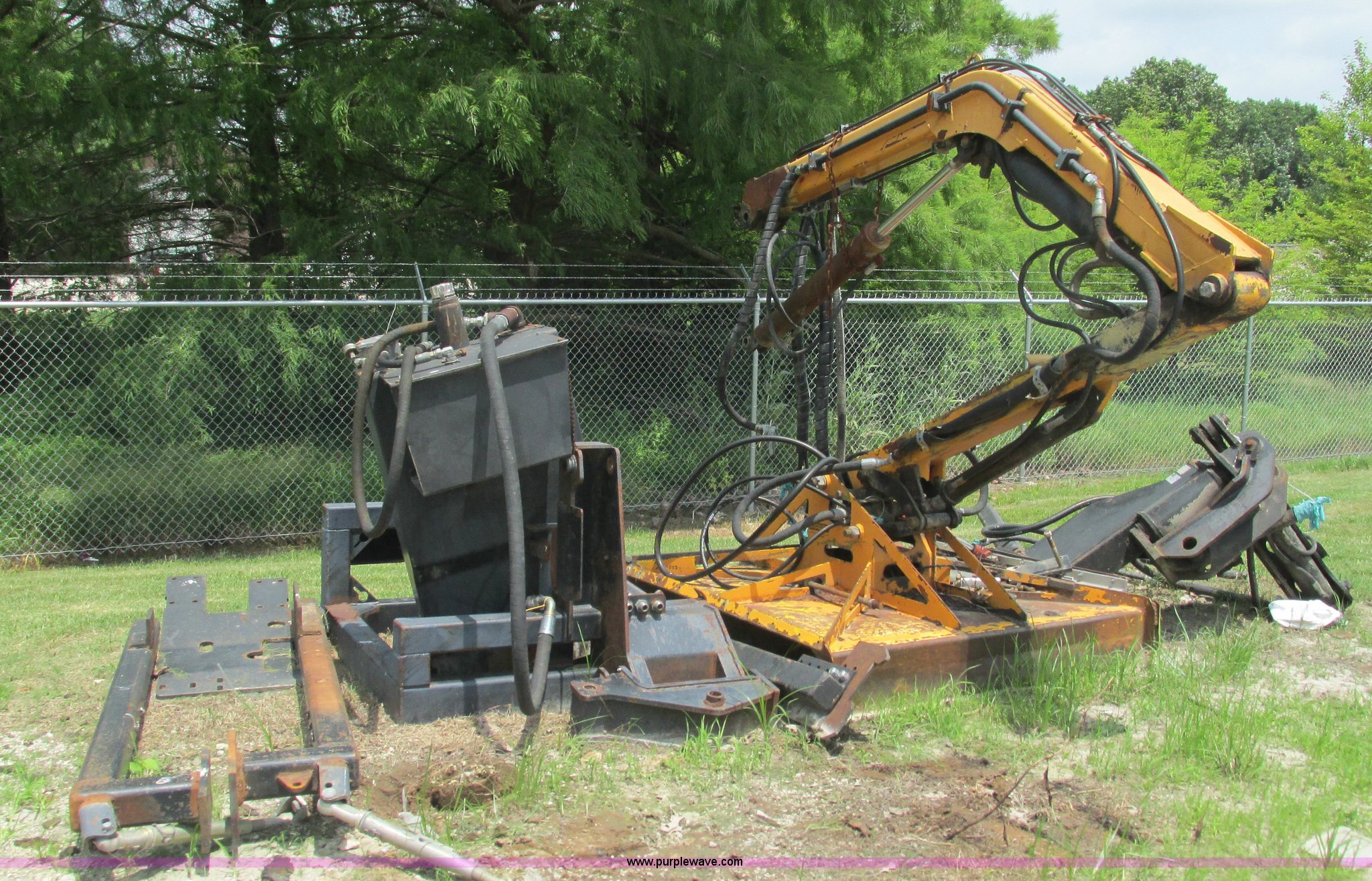 Purple Wave is selling a used Mower, Cutter, Shredder in Missouri. This item is a U.S. Mower MM20 side boom mower with the following: 60"W rotary head, 20' maximum reach raised, 19'9" horizontal reach, 22 gallon hydraulic tank, Hydraulic mower gate, Removed from a New Holland TS110 tractor, Boom and stick have been welded and repaired, Operational when removed from service a year and a half ago, Serial 0008-199