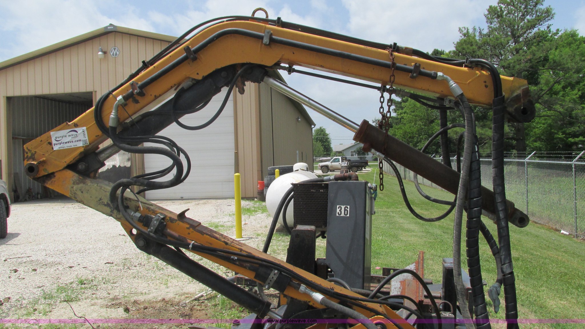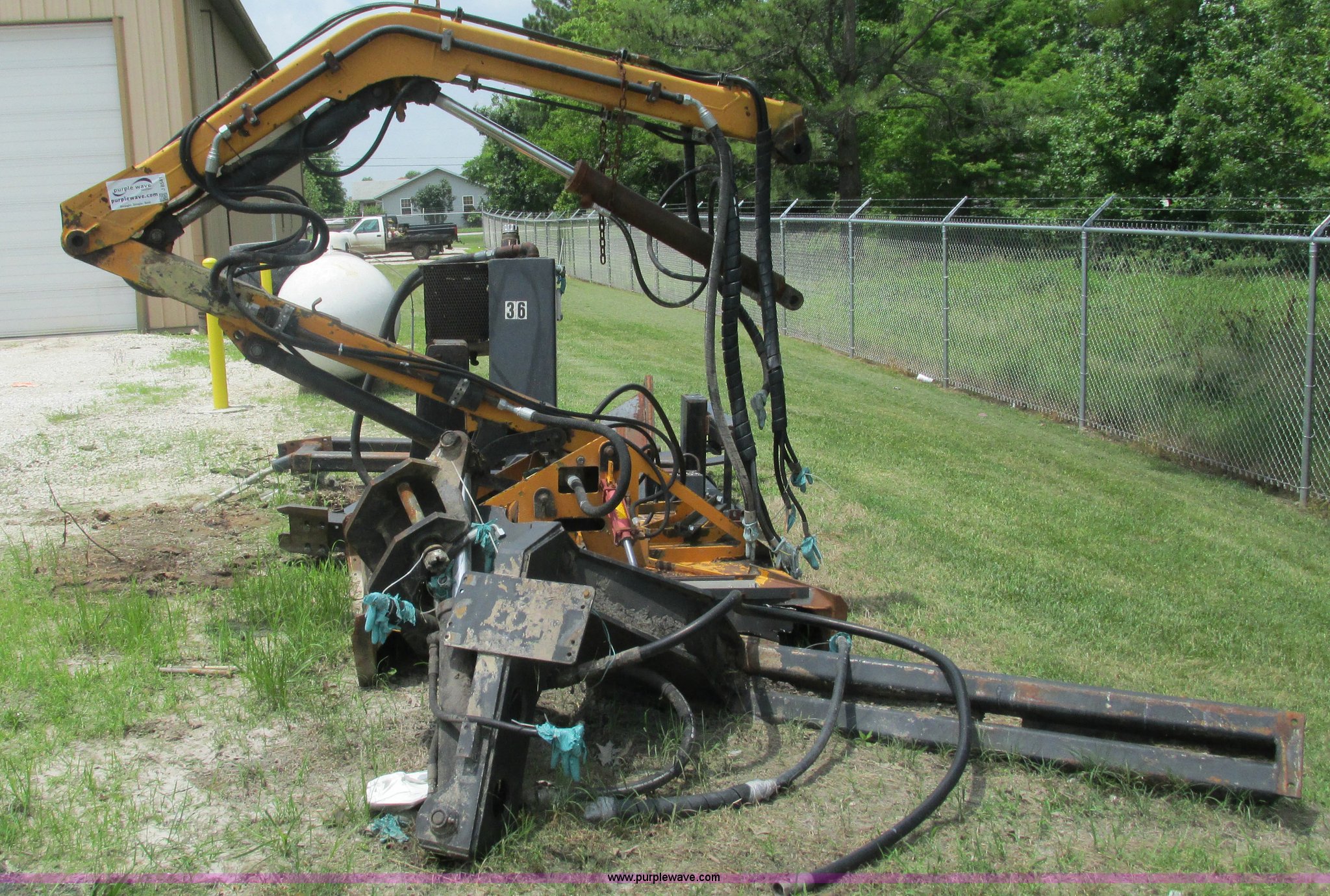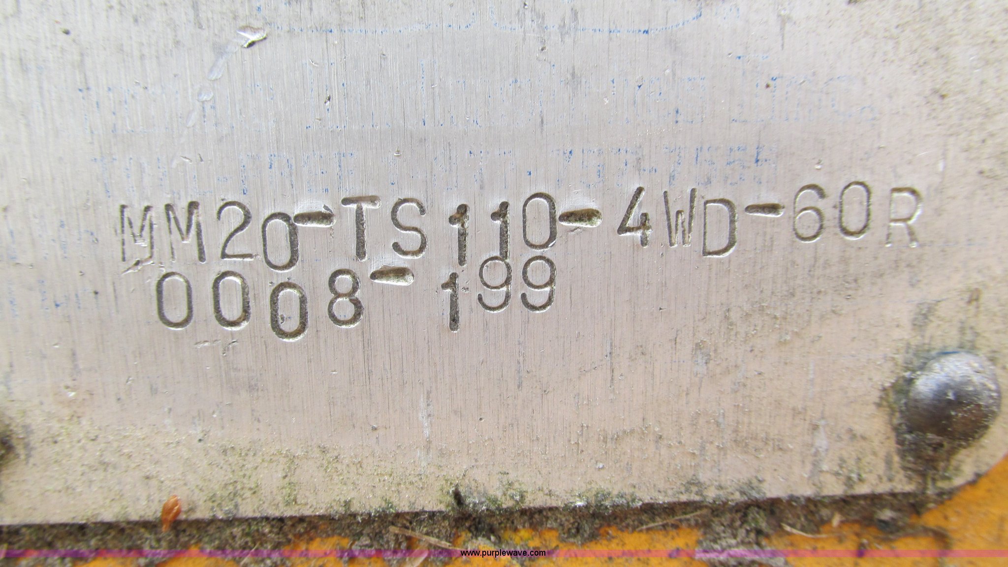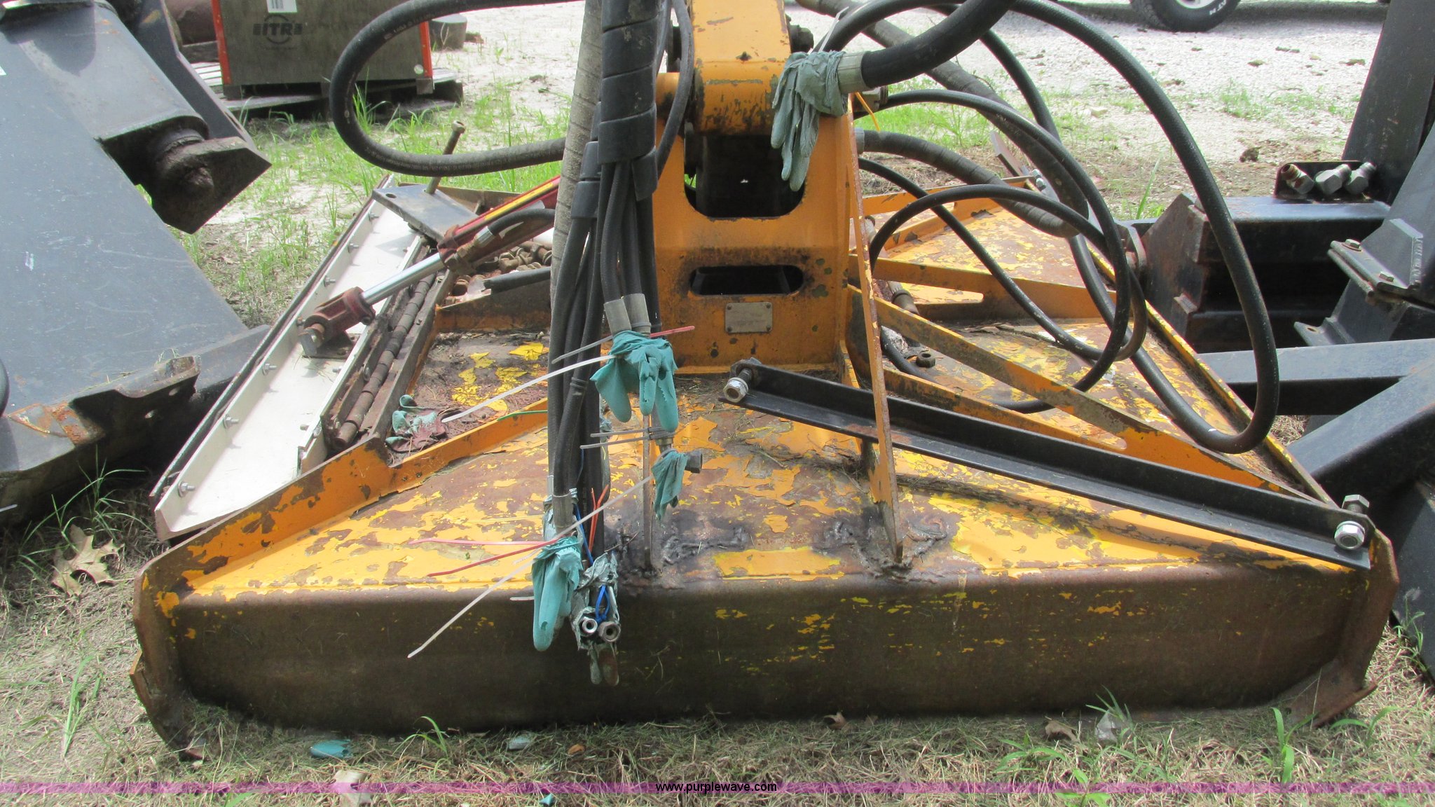 Purple Wave is selling a used Mower, Cutter, Shredder in Missouri. This item is a U.S. Mower MM20 side boom mower with the following: 60"W rotary head, 20' maximum reach raised, 19'9" horizontal reach, 22 gallon hydraulic tank, Hydraulic mower gate, Removed from a New Holland TS110 tractor, Boom and stick have been welded and repaired, Operational when removed from service a year and a half ago, Serial 0008-199